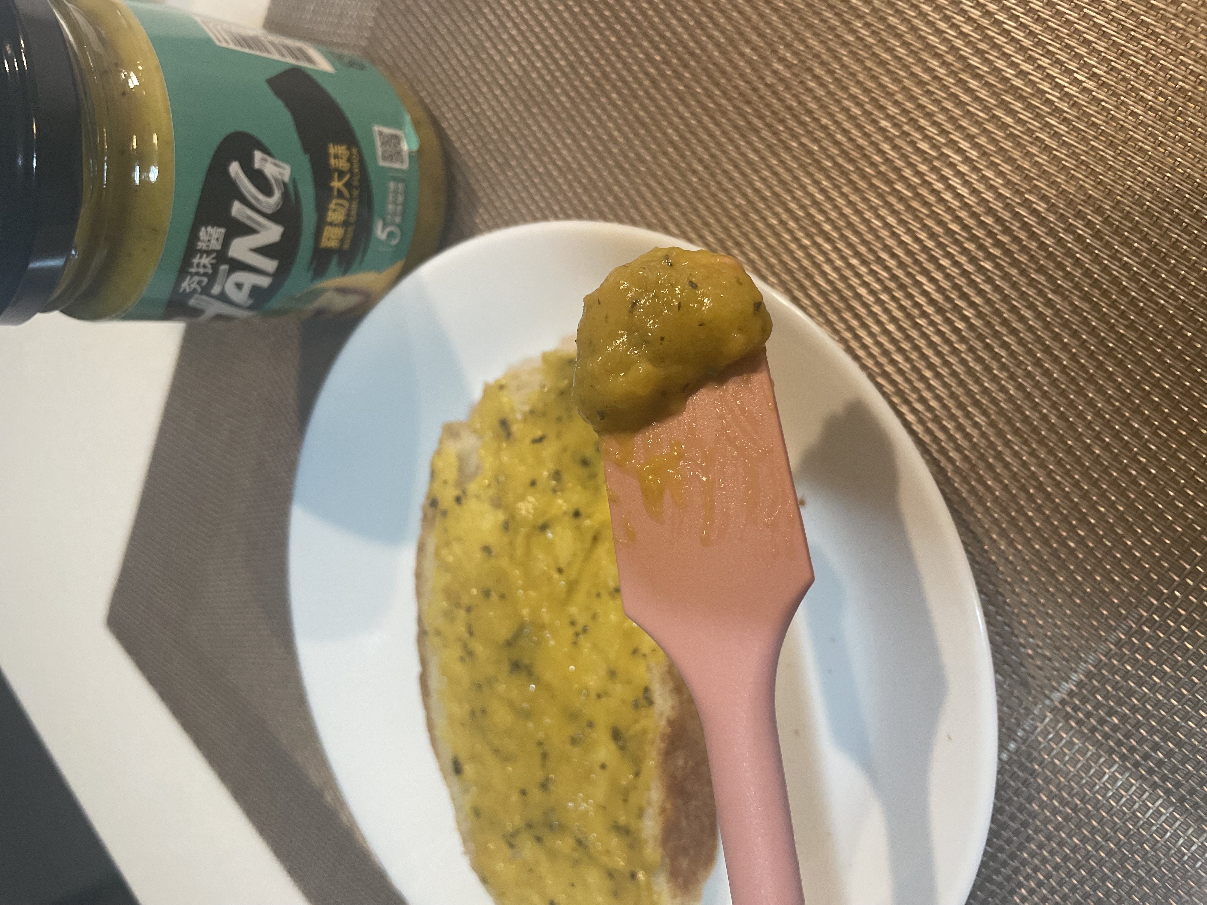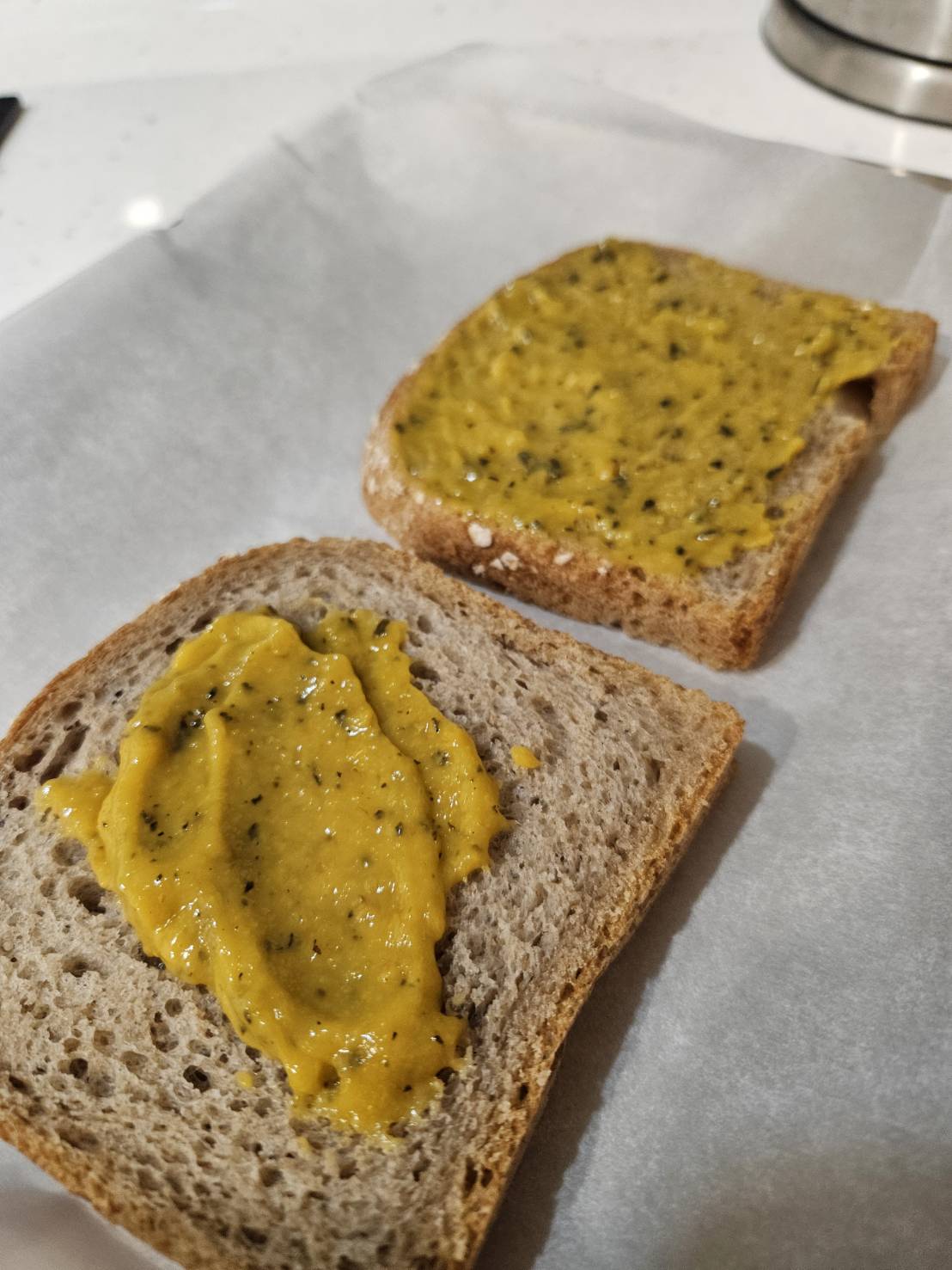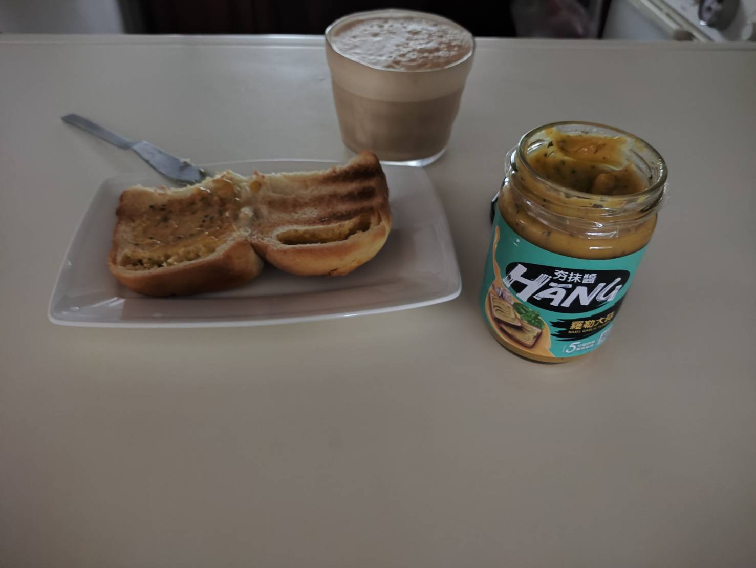 1.在土司或麵包上塗上滿滿的夯抹醬