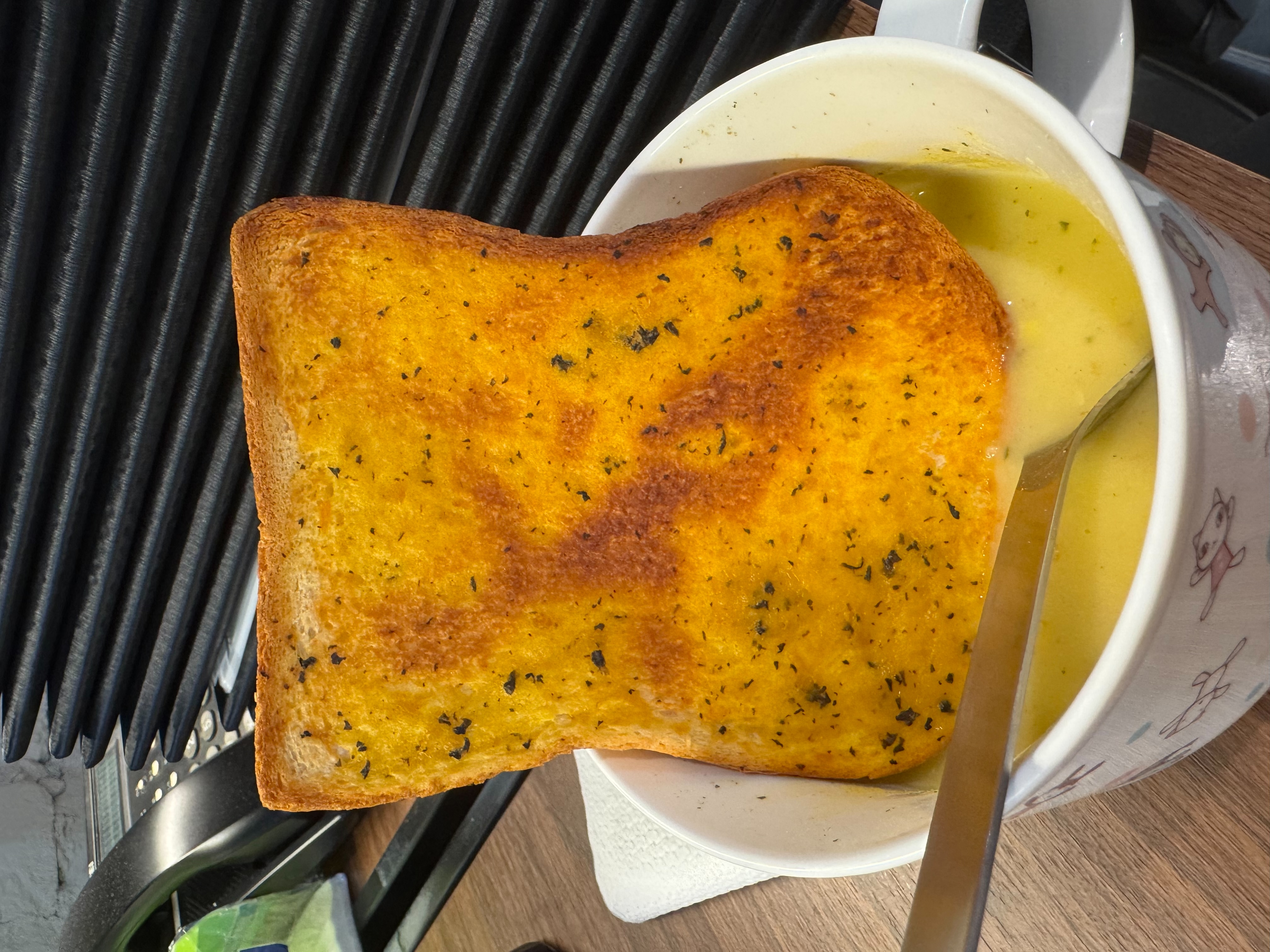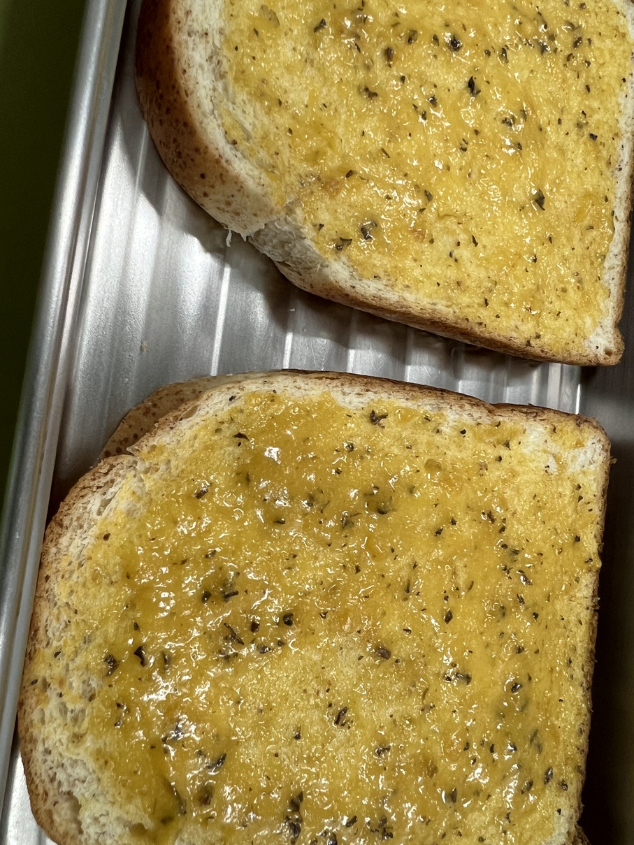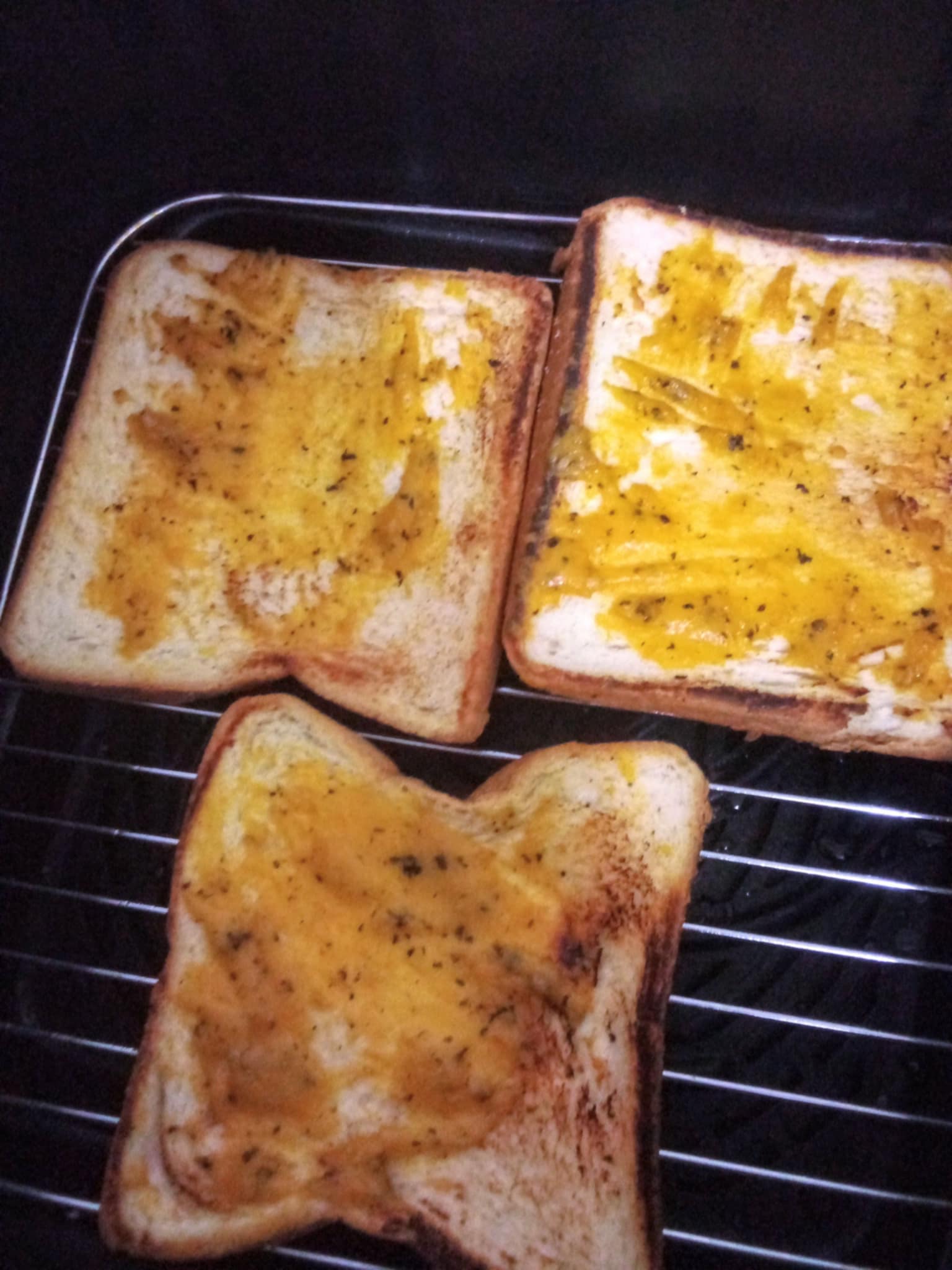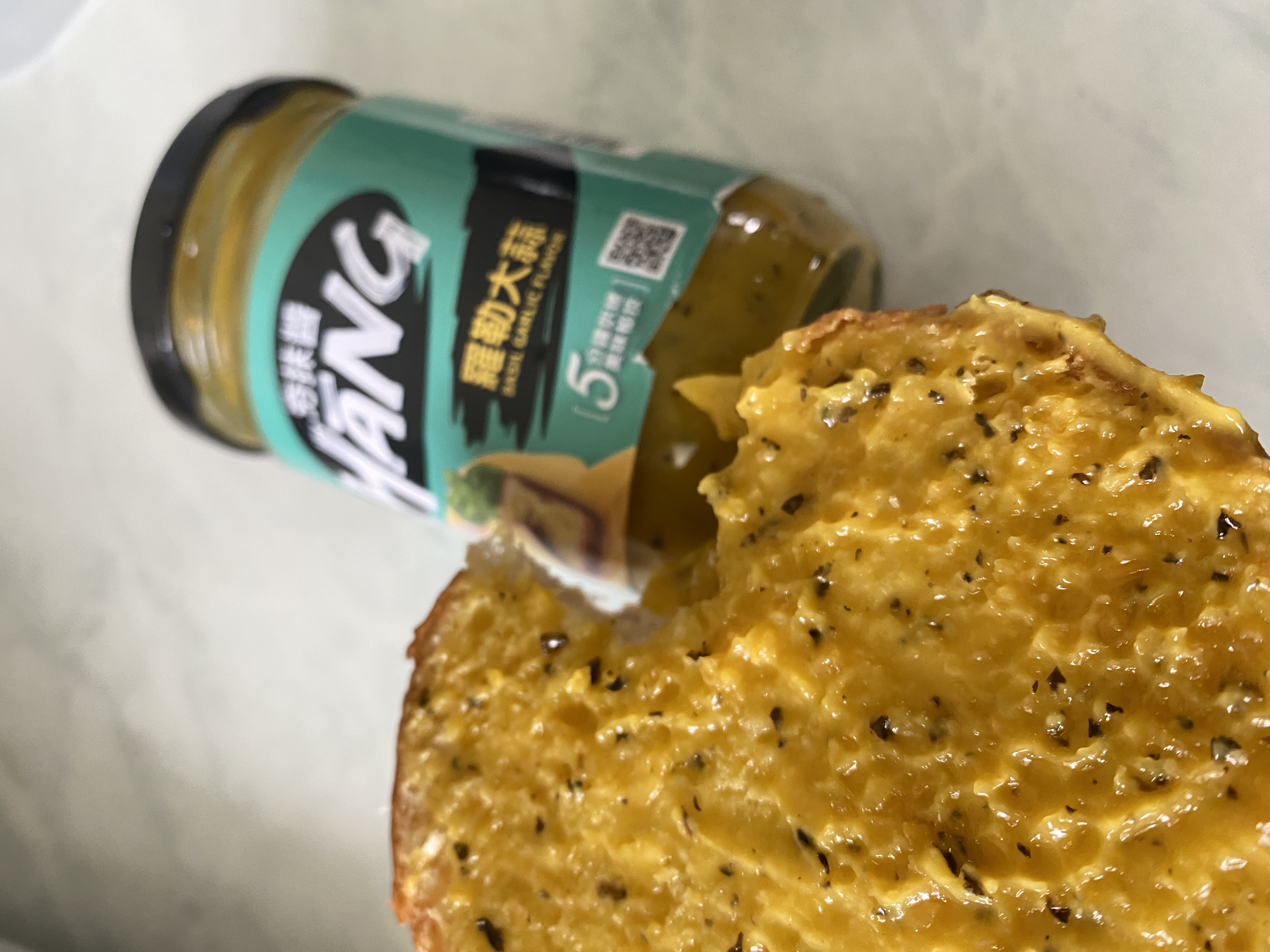 1.在土司或麵包上塗上滿滿的夯抹醬