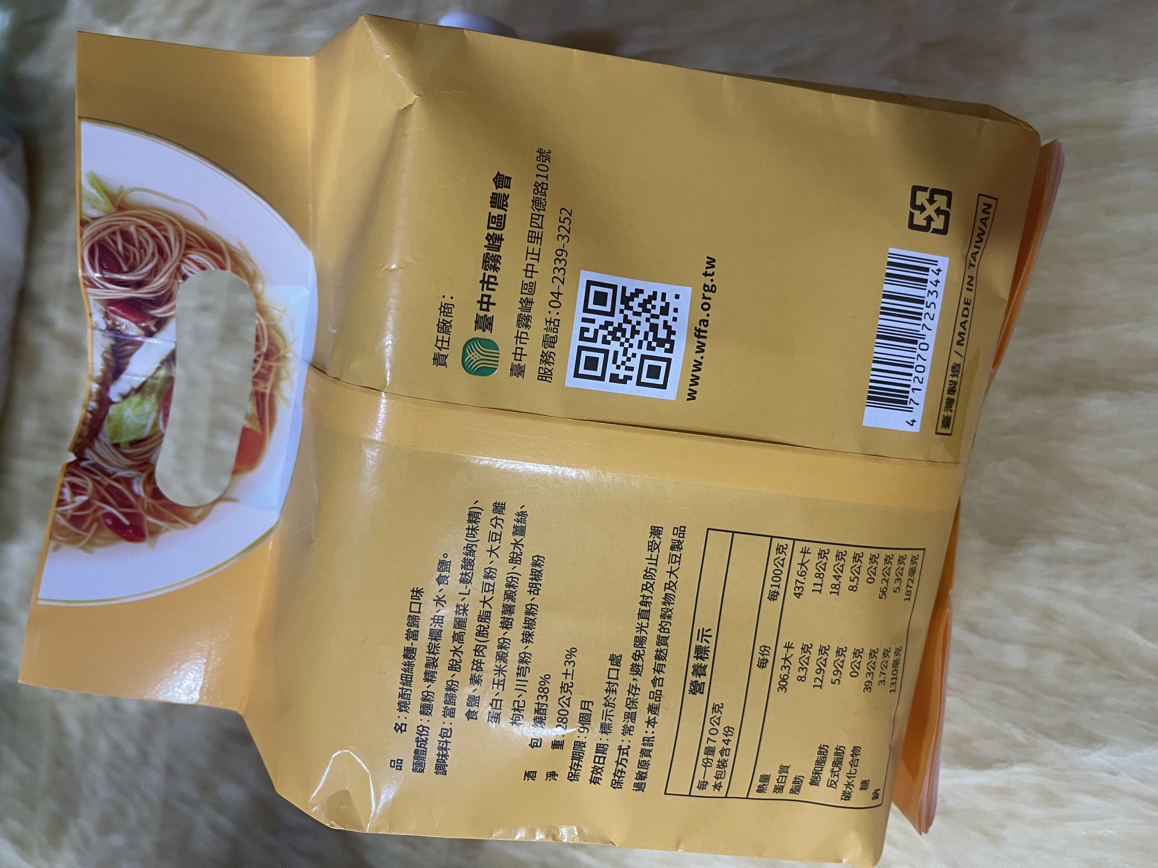 麵體成份:麵粉、精緻棕梠油、食鹽、水