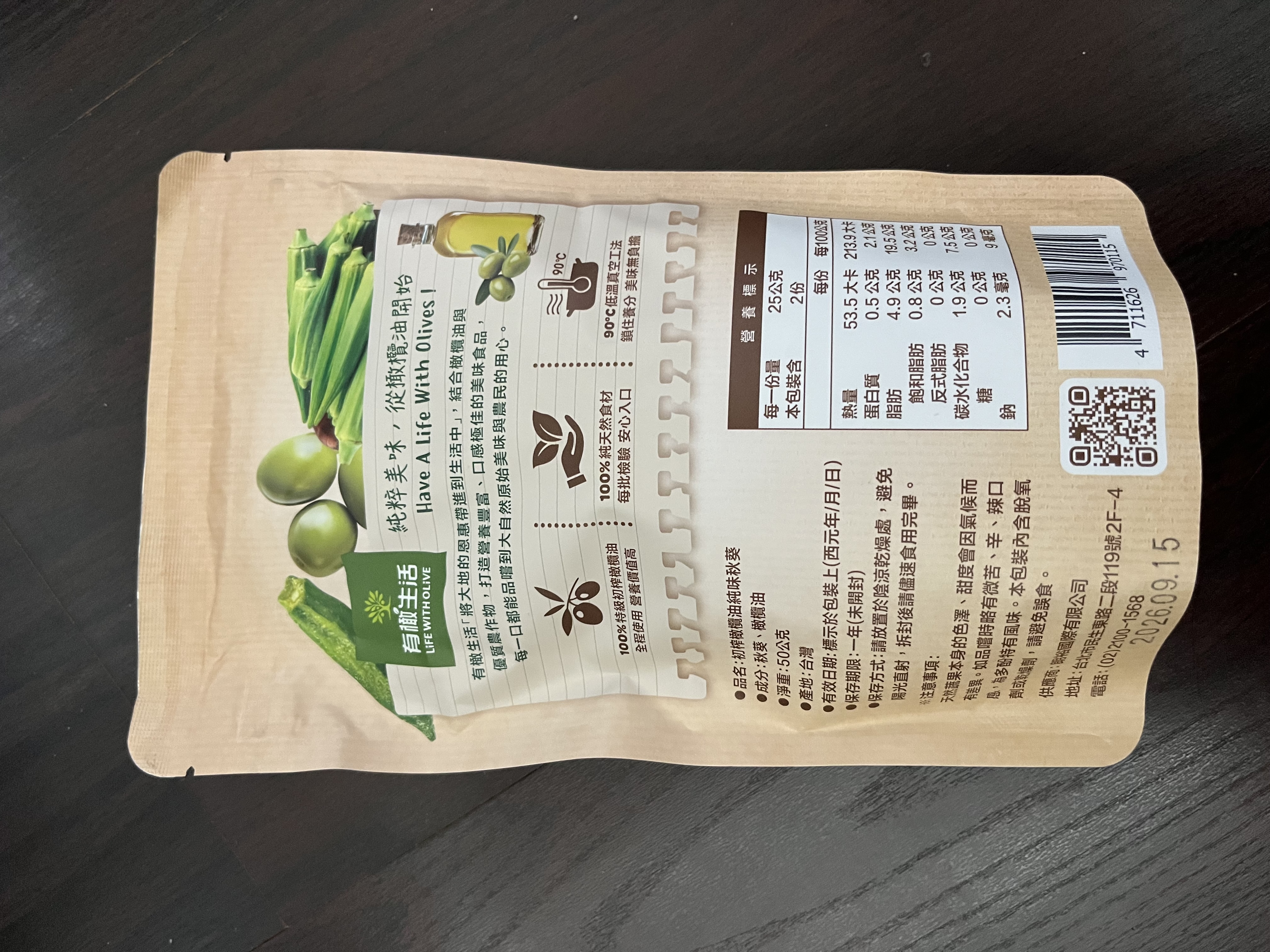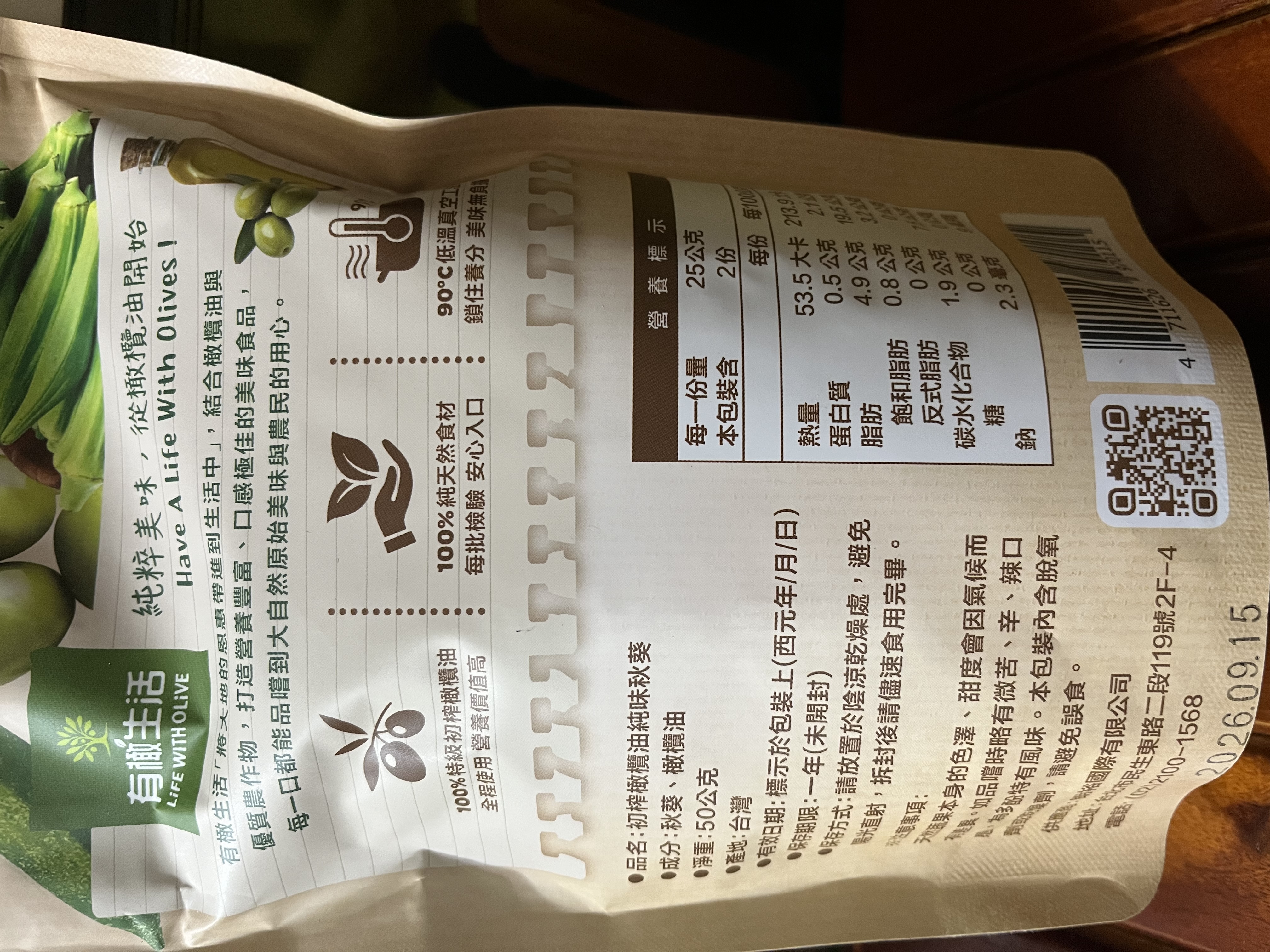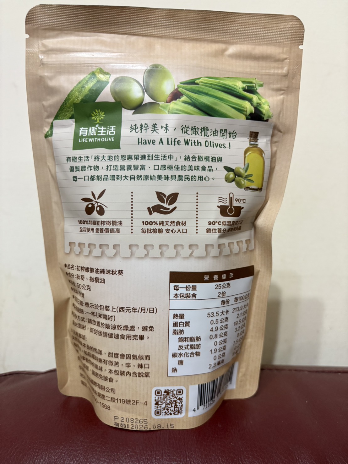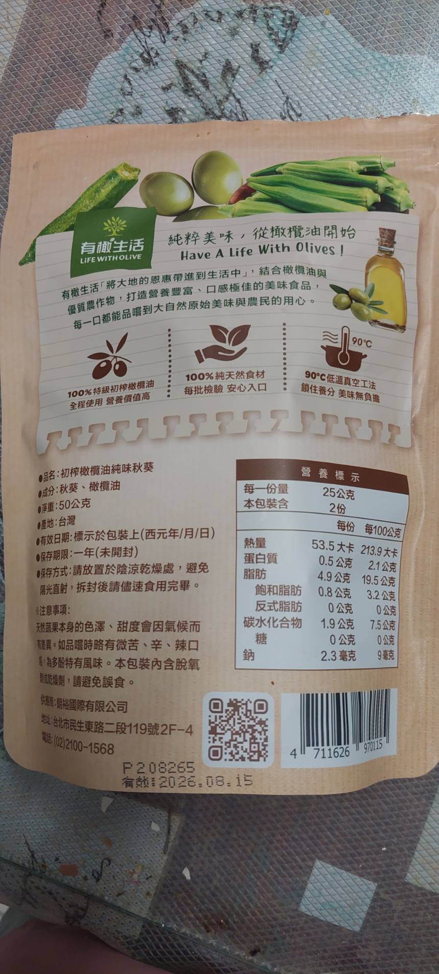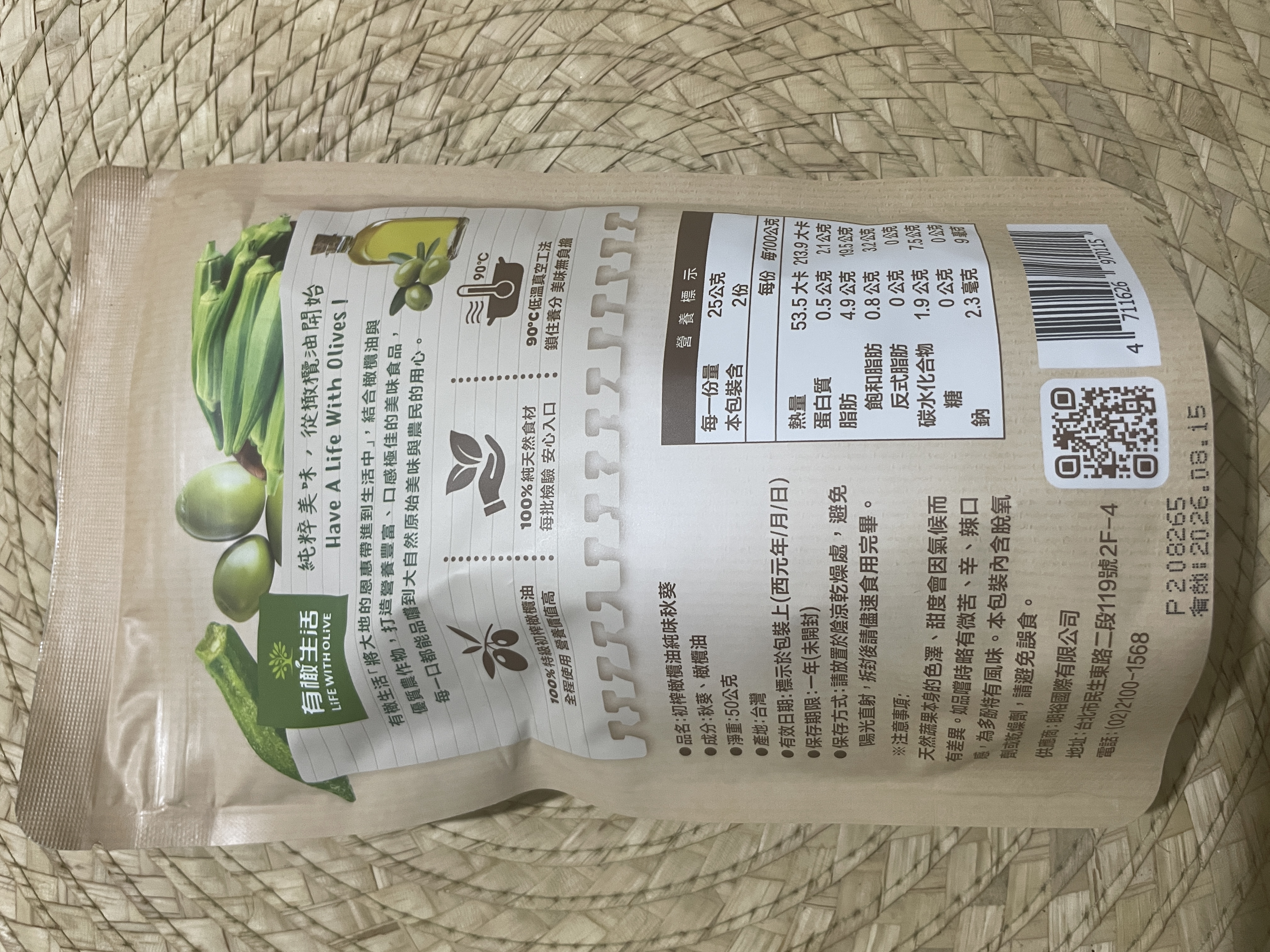 回列表 有橄生活初 榨橄欖油純味秋葵 真材實料零添加,享受無負擔美味! 市價139元 (免費申請) 所需等級 一般會員以上 所需學分 50 體驗份數 15 關注人數 1446 申請人數 250 申請截止 品牌業者:朗裕國際有限公司 負責廠商 朗裕國際有限公司 廠商地址 台北市中山區民生東路二段119號2樓之4 產地 台灣 試用產品規格 50g/包 食品業者登錄字號 A-195455661-00000-9 投保產品責任險字號 新光產物保險股份有限公司 130014AKP0P00094 心得分享 商品介紹 商品成分 使用方法 注意事項 體驗名單 9.1 有橄生活初 榨橄欖油純味秋葵 包裝美學 9.1 口感脆度 9.7 風味鹹度 8.9 涮嘴程度 8.7 建議推薦 9.2 心得分享 13則 蘇泱毓 鑽石達人 26歲 臺北市 2025/11/22 對有橄生活初 榨橄欖油純味秋葵留下評價 10 這次抽中的是「有橄生活 初榨橄欖油純味秋葵」。這個包裝有點忘記是在哪邊看到,好像是有機店,忘記是哪間了。這個品牌我是第一次接觸,甚至一開始不小心看成有趣生活ww有橄生活顧名思義就是橄欖油做的商品為主~一開始會申請秋葵脆是感覺很健康,市售凍乾食品一般會有加一些有的沒的,他們的就只有「秋葵跟橄欖油」,然後就很幸運的中了!評測項目有:包裝美學、口感脆度、風味鹹度、刷嘴程度。包裝美學部分,顏色視覺上跟口味能做連結,英文的字體給人一種高級感,好像真的是有機店會出現的東西。是夾鏈帶包裝,沒有吃完可以封好慢慢吃。不過有一點要說它真的很容易炸ww撕包裝千萬不要太用力,也不要在不能髒的桌面上吃,因為秋葵碎渣會卡在撕口邊緣,撕開難免會噴渣渣哈哈😂~口感脆度有!雖然跟我以前吃的秋葵脆有些不同(我不知道我之前吃的那款為何會有juicy的感覺,它這個感覺蠻正常的)~風味鹹度,這邊先說重口味人應該會覺得很淡。但我特別喜歡吃很原味的食材,因此我很滿意👍🏻!!它沒有過多調味,能吃出秋葵的自帶甜香原味。刷嘴程度要看個人,不過我通常會不自覺吧零食吃完ww整包吃下來不會太鹹膩~小包裝50公克,一個不小心吃光光也沒太大負擔。喔對補充個營養標示,我蠻意外每百克沒有超過300大卡!我認知的凍乾食品,普遍每百克都有超過300大卡,甚至400大卡。原因是密度高,脂肪量也很可觀。但這款只有200多大卡/百克,雖然脂肪還是不少,但已經比想像中低(我以為會有20-30克脂肪),有加橄欖油,吃完手不會油膩。他們家其他凍乾食品熱量沒有這麼漂亮,有可能秋葵不算澱粉類吧ww整體推薦!如果也喜歡這種健康零食的朋朋能試看看~ 蘇素貞 金食達人 58歲 臺北市 2025/11/22 對有橄生活初 榨橄欖油純味秋葵留下評價 10 這是我第一次吃到初榨橄欖油純味秋葵,第一口的酥脆感令人難忘,這真的是秋葵嗎?而且是完整的秋葵,現在的低溫真空油炸技術真的厲害,沒有一點油耗味。而且使用冷壓特級初榨橄欖油,保留食材最佳的營養。打開後,全家人一起來試吃,一下子就吃光了一整包!這個產品的名字叫做「初榨橄欖油純味秋葵」剛開始我還以為是油品的名字呢!「初榨橄欖油純味秋葵」的特色在於成分極其簡單,只有秋葵及橄欖油,這對於食品科系畢業的我,給予極高的評價,有一種回歸自然的純粹享受食物。現在的低溫真空工法,能讓食品美味又有營養,真是太棒了。 Hui 金食達人 27歲 桃園市 2025/11/26 對有橄生活初 榨橄欖油純味秋葵留下評價 10 很榮幸有體驗本產品的機會,家母很喜歡吃秋葵,平常也會燙秋葵來吃,在我們家中算是常見的食材。在我的認知當中,初榨橄欖油、秋葵、無添加,都是健康飲食的代表,故對於這款產品相當感興趣。此款產品外包裝很吸睛,整體配色很大自然,成分很單純,份量還滿多的,都是完整的秋葵,沒有斷裂。這次我第一次吃酥脆感的秋葵,吃起來並不會油油的,也不會脆到刮傷嘴,很清淡,完全是食材的原味!在嘴饞時很適合吃這款不會感到罪惡的小零食,我覺得最酷的地方是,咀嚼到後面會感受到一點秋葵的黏感,這是秋葵的特色,能保將黏感保留到適當程度,我覺得很加分~推薦大家試試看這款健康無負擔又特別的美味小零食! 方秋英 金食達人 67歲 新北市 2025/11/28 對有橄生活初 榨橄欖油純味秋葵留下評價 10 非常開心能夠獲選參與「有橄生活-初榨橄欖油純味秋葵」的試吃體驗活動,這次機會讓喜愛吃秋葵的媽媽和我都特別期待。有橄生活秉持「將大地的恩惠帶進生活中」的信念,採用特級初榨橄欖油與在地優質農產品,製作出健康、純天然、無添加的休閒食品,讓消費者可以輕輕鬆鬆就享受到健康無負擔的零食。此體驗商品是100%橄欖油蔬菜片系列中的秋葵,恰好我和媽媽都很喜歡吃秋葵,一收到包裹就迫不及待開箱試吃,秋葵本身沒有過多加工以及任何調味,低溫真空油炸後,入口有淡淡橄欖油的香氣,少了秋葵特有的黏稠口感,變得十分酥脆,令人驚艷,再自行撒點玫瑰鹽和黑胡椒,連不愛吃秋葵的爸爸也可以接受。唯一缺點大概就是油炸的熱量較高,要控制自己不要一根接一根吃太多(笑) 蔡佳容 金食達人 37歲 臺北市 2025/11/21 對有橄生活初 榨橄欖油純味秋葵留下評價 9 謝謝食力和製造廠商,平時就會留意產品的內容物及添加物,很開心市面上能有願意使用初榨橄欖油、而不是人造奶油或棕梠油的食品,果實油之類好的油脂對人體更友善也更健康。◆包裝:覺得產品外觀設計很漂亮,尤其背後的文字說明字也夠大夠清晰,讓人閱讀更加舒適。◆口味