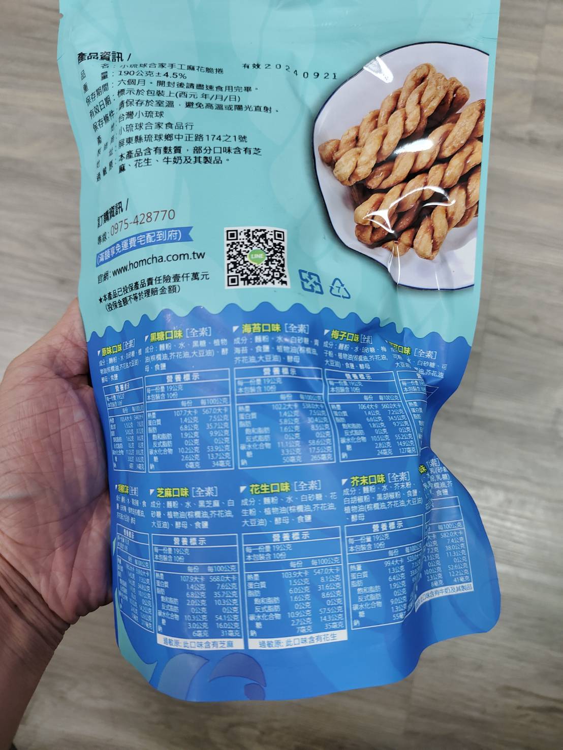 回列表 小琉球合家 手工麻花捲(花生口味) 小琉球必買伴手禮 古早味經典口感讓人無法抗拒 市價89元 (免費申請) / 兩包 所需等級 一般會員以上 所需學分 60 體驗份數 15 關注人數 1295 申請人數 320 申請截止 品牌業者:小琉球合家麻花捲 負責廠商 小琉球合家食品行 廠商地址 屏東縣琉球鄉中正路174之1號 產地 台灣 試用產品規格 190g/包 食品業者登錄字號 T-200146995-00001-3 投保產品責任險字號 心得分享 商品介紹 商品成分 使用方法 注意事項 體驗名單 8.7 小琉球合家 手工麻花捲(花生口味) 酥脆口感 9.1 花生香氣 7.0 包裝美學 8.9 份量適當 8.9 建議推薦 8.3 心得分享 14則 鄭瑞山 銀食達人 71歲 高雄市 2024/07/15 對小琉球合家 手工麻花捲(花生口味)留下評價 9 麻花捲口感獨特,以前都會加入糖粉,現在大家追求養身,沒有加入糖粉會有口感不足的問題存在,因為脆度跟甜度合在一塊會有意想不到的效果,就如同吃炸的東西要加入梅粉的概念是一樣的,但也有缺點問題存在放久了吃起來會有油膩感,不會有爽口的感覺,但這改良版的沒有這種問題,首先炸的口感剛好不會有油膩感,很適合現代人養生的概念存在,不添加糖粉也沒有讓原本的味道跑掉,吃了很爽口,不會說吃的時候嘴巴或手上都有甜膩的感覺存在,改良版很適合現代的養生潮流。 張育慧 金食達人 25歲 基隆市 2024/07/16 對小琉球合家 手工麻花捲(花生口味)留下評價 8 這一次品嚐的食驗室項目為小琉球合家手工麻花捲(花生口味)。這個品項是一個充滿地道風味特色和文化饗宴的零食。這款麻花捲以香酥的外皮和香濃的花生為特色,其中所蘊含的麻油香氣令人印象深刻。每一口都彷彿在舌尖上盡情展現著小琉球的獨特風味,但是麻花捲本身口感偏硬,建議搭配著茶水或咖啡享用,更能體會到當地人的特色美食。整體來說,小琉球合家手工麻花卷(花生口味)不僅是一種美味,更是一場與小琉球深度互動的饗宴,讓我對這個美麗島嶼的印象更加深刻和喜愛。 宇智波ひのき 金食達人 35歲 新竹市 2024/07/13 對小琉球合家 手工麻花捲(花生口味)留下評價 10 很開心這次可以抽到小琉球合家手工麻花捲,試吃品有兩包,外包裝設計是我抽過的試吃品中我認為最棒的一個,以圖騰繪製的海底生態、海龜及海面上的一艘船,完美的圖案比例及配色,顯得十分有質感,送禮時也好看,打開包裝後迎接而來的是第二次驚豔,袋內的麻花捲份量誠意十足,滿滿的細狀麻花捲,每根長度幾乎都是一致的長,吃起來帶有淡淡的花生風味,不會過於甜膩,唯一的小缺點只有偏硬了一點,試吃完的感想是,下次若有機會去小琉球,定會多買幾包此商品。 呂財能 金食達人 46歲 新竹市 2024/07/11 對小琉球合家 手工麻花捲(花生口味)留下評價 9 很高興收到小琉球的特色伴手禮花生口味的麻花捲剛好我同事去了小琉球給了我一包龍鑽原味麻花捲正好可以做比較合家在酥脆口感的評比我認為略勝一籌,吃起來比較硬脆口感紮實龍鑽的吃起來口感稍微鬆散一點,脆度略顯不足花生香氣部分我認為花生粉的覆蓋程度沒有很高,香氣比較沒那麼明顯包裝美學部分外觀顏色是大海的藍色,包裝圖案是海龜的圖形充分表現出小琉球豐富海洋資源的特色份量我覺得適合一家人分享食用,剛剛好綜合評比下來很適合小琉球的最佳伴手禮喔 邱郁婷 金食達人 38歲 臺中市 2024/07/13 對小琉球合家 手工麻花捲(花生口味)留下評價 9 之前去小琉球巷子內有名的麻花捲每間各有千秋,口味與製作方式不同嘗試過許多家,家人朋友去玩總會帶二三十包麻花捲回家,同事三不五十也會一起團購麻花捲,小琉球合家 手工麻花捲購入了數次,最常買與最愛黑糖與梅子口味。這次體驗的花生口味麻花捲是第一次品嚐,口感酥脆久嚼有麵香,淡淡的花生味畫龍點睛的效果,比起其他口味清爽許多,家人吃了也覺得味道較淡適合沒那麼重口味的人,是原味加上微微的花生香氣,口感不油膩很容易一口接一口,但我依舊最喜歡黑糖的!! 黃鵬 金食達人 46歲 新北市 2024/07/10 對小琉球合家 手工麻花捲(花生口味)留下評價 10 很高興有機會試吃小琉球合家手工麻花卷,以前公司就團購過幾次他們的麻花卷,他們的外包裝很精美,且分量剛好,一直覺得他們家的麻花滿好吃的,且不會很油膩,吃起來就是比其他家的好吃,沒吃完有夾鏈袋可保存很方便,之前有訂過原味和梅子和胡椒口味,這次第一次吃花生口味,覺得花生味道沒有很重,淡淡的,吃起來就像是原味多了一點點的花生粉感覺而已,但是餅乾本身的酥脆是沒有少的,還是會回購,只是會選擇其他口味,讚,給人充滿幸福感覺的下午茶點心 Angela 金食達人 47歲 臺北市 2024/07/12 對小琉球合家 手工麻花捲(花生口味)留下評價 8 拆開包裹即看到非常符合小琉球海洋色彩的包裝設計。之前就知道小琉球的名產是麻花捲,不過合家手工麻花捲是我第一次品嚐。口感上非常的酥脆,由於成分天然,因此對牙口不好的老人家可能一入口時會覺得有點硬,雖然口味上花生的香氣並不是太明顯,但甜香的滋味還是讓人一口接一口,停不下來的唰嘴,合家麻花捲除了有如黑糖、芝麻、海苔等一般傳統口味外,竟然還開發了梅子、可可、鮮蝦及海味等創新口味及系列,下次再買來品嚐一下~ Meng Tsai 銀食達人 25歲 新竹市 2024/07/13 對小琉球合家 手工麻花捲(花生口味)留下評價 7 合家手工麻花脆捲吃起來的