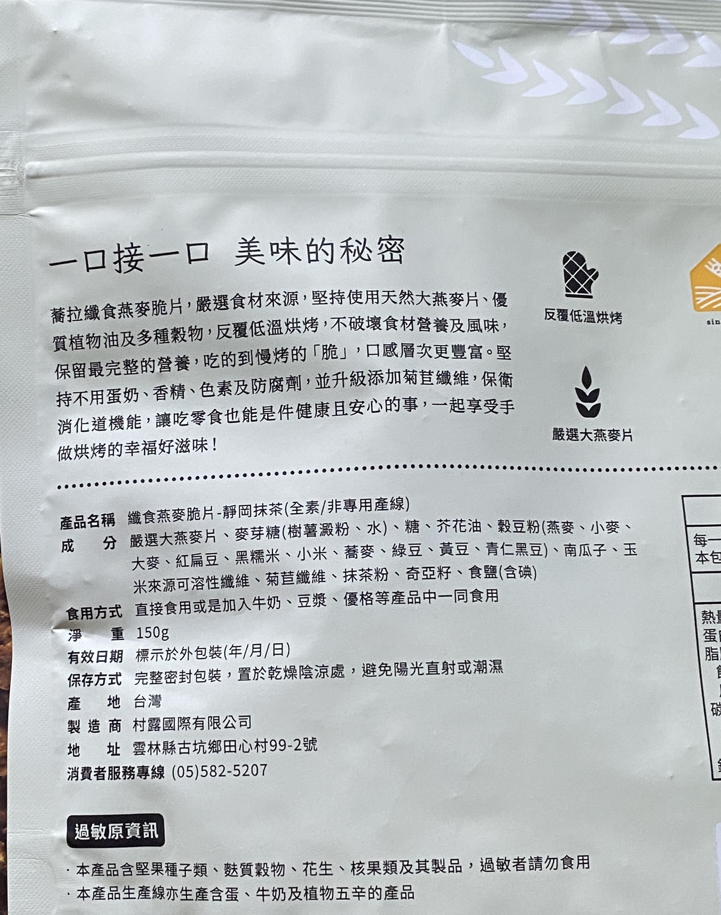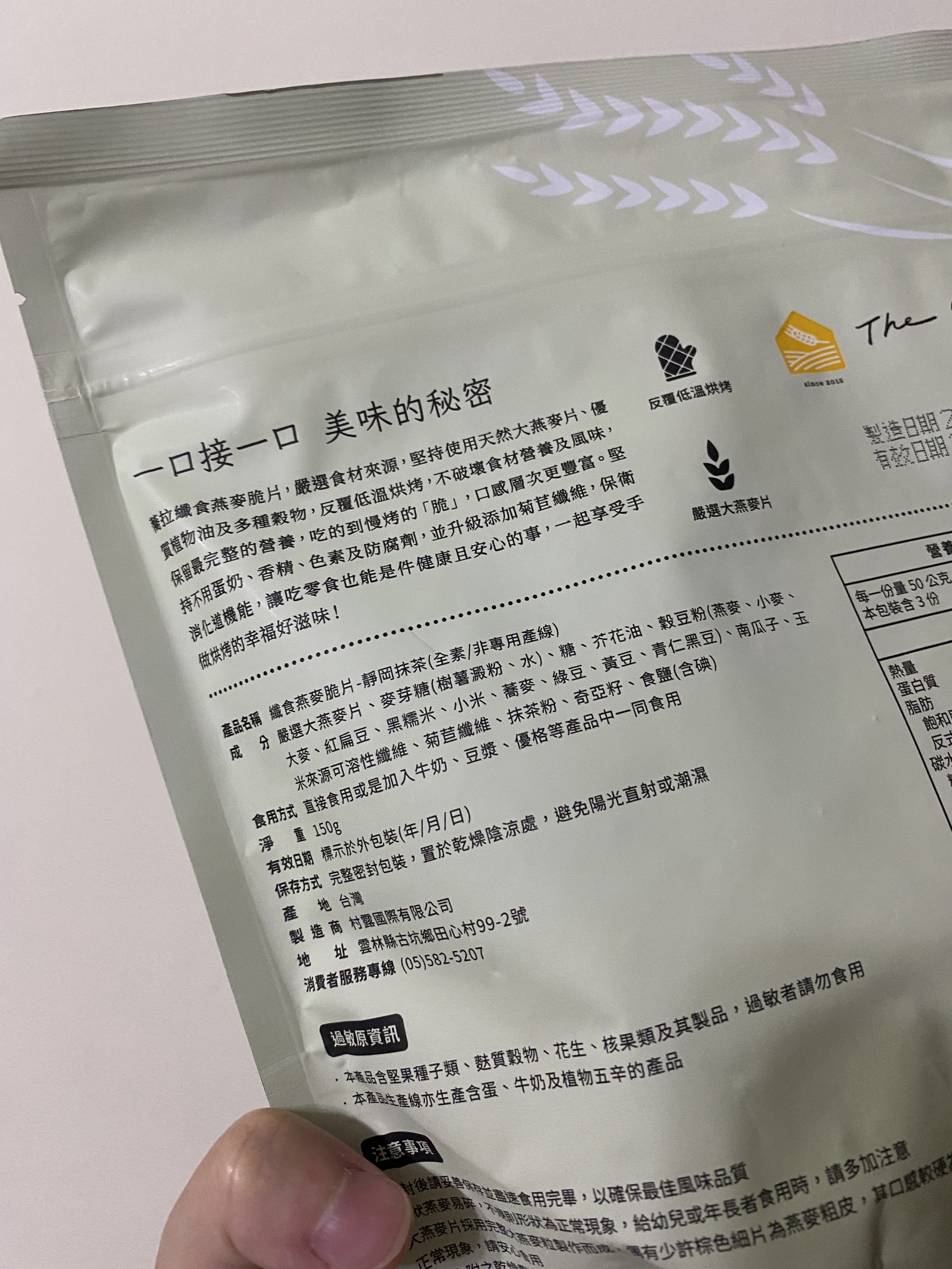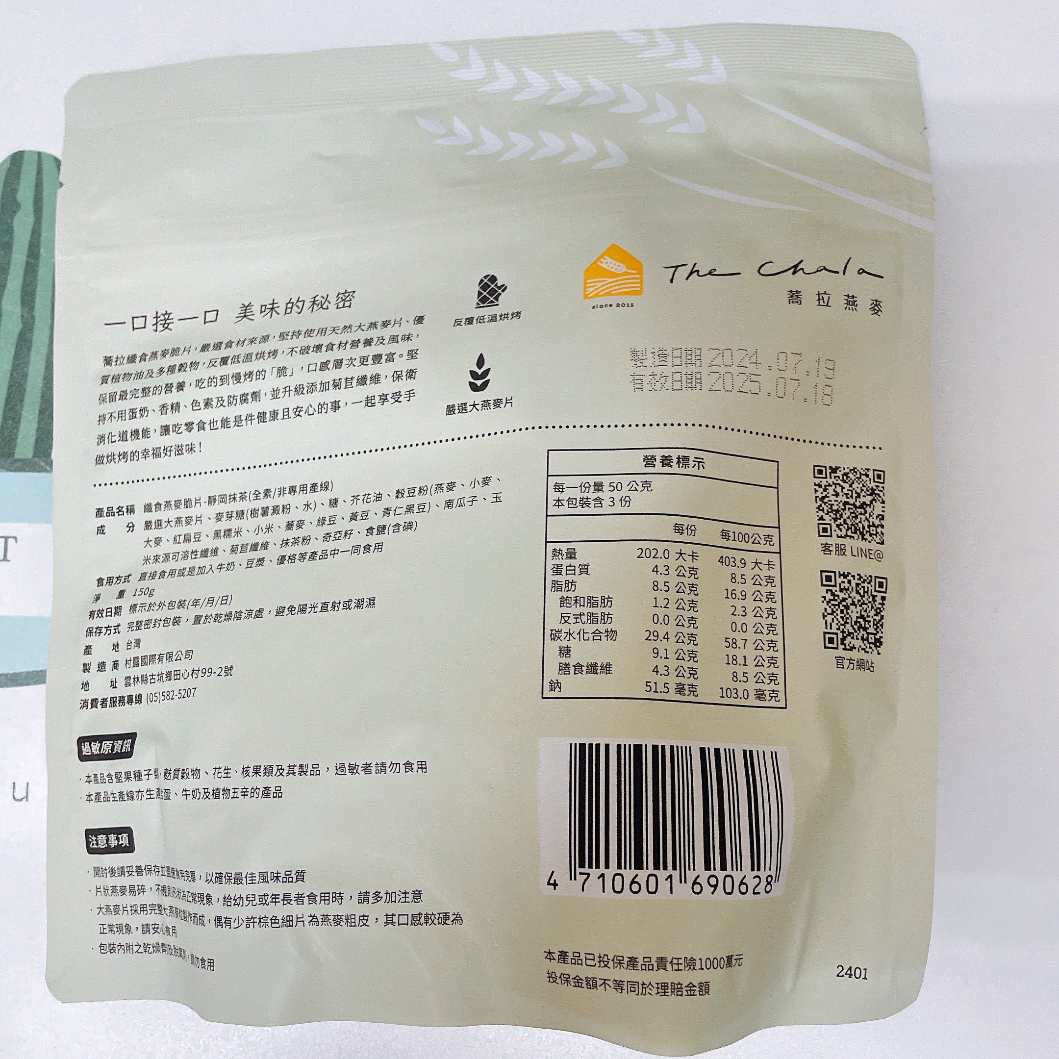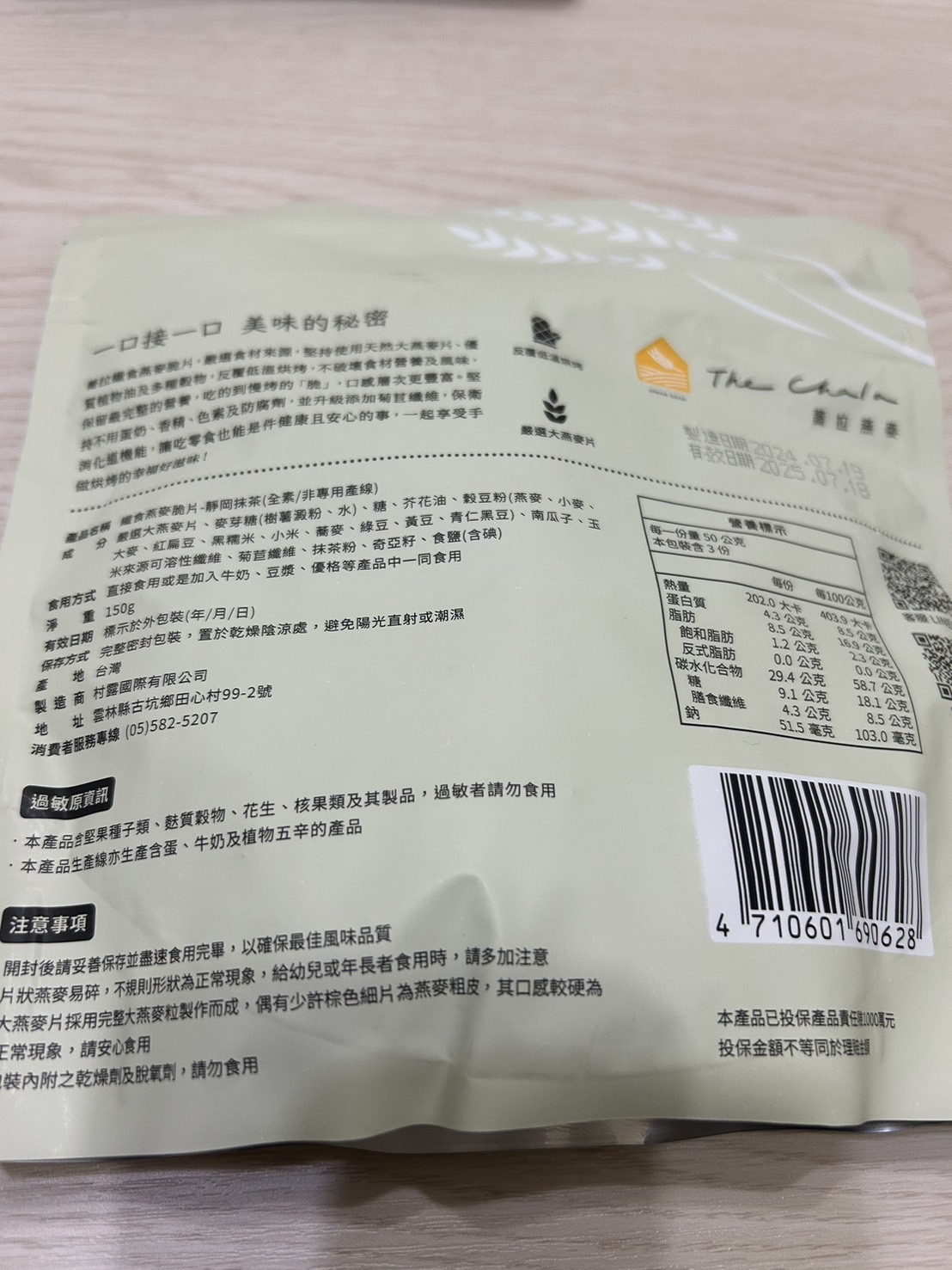 回列表 The Chala 纖食燕麥脆片(靜岡抹茶) 嚴選天然「全素」食材 簡單即是美味 市價220元 (免費申請) 所需等級 一般會員以上 所需學分 70 體驗份數 15 關注人數 1255 申請人數 327 申請截止 品牌業者:Riverbird 負責廠商 村露國際有限公司 廠商地址 雲林縣古坑鄉田心村田心99-2號 產地 台灣 試用產品規格 150g/包 食品業者登錄字號 P-142781061-00000-2 投保產品責任險字號 0902-2236004869-02 心得分享 商品介紹 商品成分 使用方法 注意事項 體驗名單 8.4 The Chala 纖食燕麥脆片(靜岡抹茶) 抹茶香氣 7.6 營養豐富 9.1 包裝美學 9.1 健康營養 8.6 建議推薦 8.6 心得分享 14則 mia 金食達人 41歲 臺北市 2024/08/25 對The Chala 纖食燕麥脆片(靜岡抹茶)留下評價 9 平常就有吃大燕麥片當早餐的習慣,主要是因為是全穀物,有豐富的膳食纖維,希望可以控制膽固醇。這次參加蕎拉纖食燕麥脆片的試吃,覺得很棒,原來燕麥片也可以做成這麼好吃的點心!口感一般來說,市售的穀物棒會偏軟黏黏的,糖分和熱量也高。蕎拉的口感則是鬆脆的,跟餅乾一樣,甜度是微甜,吃起來比較沒有罪惡感,味道有淡淡抹茶香味,適合配豆漿或咖啡。添加了豆穀粉、南瓜籽和奇亞子,口感很豐富,蠻營養的也很適合當早餐。成份成份沒有防腐劑和香料,是覺得最滿意的部分,就算給小朋友吃也很安心。包裝外袋是深色的設計,充滿日式風味,不過抹茶味淡淡的,猜想不一定是靜岡抹茶粉。夾鏈袋的開口設計,收納很方便,脆片不易受潮,適合放辦公室當下午茶,肚子餓或嘴饞時吃一點。缺點小缺點是對長輩來說稍硬,會卡牙縫,所以長輩接受度沒這麼高。整體來說,蠻推薦的,是比較健康的零食點心選擇,會推薦給朋友! Angela 金食達人 47歲 臺北市 2024/08/25 對The Chala 纖食燕麥脆片(靜岡抹茶)留下評價 8 之前就買過好幾次蕎拉燕麥,巧克力跟肉桂口味都蠻好吃的,這次收到的試吃口味是靜岡抹茶纖食燕麥脆片,包裝一樣設計精美,吃起來香脆口感並帶有淡淡抹茶香,調味也不會過於甜膩,不僅可以搭配牛奶或優格享用,單吃也很美味,讓人一口接一口,停不下來的好滋味。精選天然食材與多種穀物,低溫烘烤以保留食材的營養成分,並添加萵苣膳食纖維,讓人可以開心享用健康美味的脆片時不用擔心熱量破表!蕎拉燕麥還有研發多款不同口味,下次再買沒嚐過的味道試試。 陳則源 金食達人 45歲 新北市 2024/08/27 對The Chala 纖食燕麥脆片(靜岡抹茶)留下評價 8 感謝食驗室的試吃活動,收到這款纖食燕麥脆片時,非常開心,迫不及待打開後,真的是越吃越涮嘴,雖然個人覺得抹茶的味道沒有到非常濃厚,不管是打開包裝時,沒聞到抹茶味,吃下去的味道,抹茶味也不明顯但吃起來的口感非常好,雖然是素食可食,但吃起來不會有調味過淡,或是一般素食的味道但關於營養標示,其中糖的含量看起來有點偏高,一包150克,就有27.3克,在一口接一口的情況下,會覺得還是要留意一下,不知不覺一包就快被吃完,滿驚人的 潘仲佳 金食達人 34歲 臺北市 2024/08/26 對The Chala 纖食燕麥脆片(靜岡抹茶)留下評價 7 我有吃過這個品牌的巧克力燕麥片,非常好吃,可可味很濃。因此可以抽到燕麥脆片很開心,而且還有兩包!包裝很簡單,沒有多餘的紙盒裝,外表是深色的包裝,有種沉穩、有質感的零食。脆片是一片一片,大小不一,很有手工感。吃起來非常脆,就像一般餅乾一樣,好一點的是熱量不算高,也不甜。但有點失落的是沒有抹茶的味道,聞不出也吃不出來有茶香,只能當作一般脆片看待了。總體來看,脆片好吃,包裝也很美,可以嘗試吃吃看,但就不要太注意有沒有茶味了。 小劉 鑽石達人 27歲 臺北市 2024/08/27 對The Chala 纖食燕麥脆片(靜岡抹茶)留下評價 7 包裝很貼心,餅乾一大袋吃不完會受潮,有附上夾鏈袋這點真的超級加分,不用另外再找收納盒裝吃不完的餅乾。打開袋子時聞到淡淡的抹茶香和燕麥香,兩者平衡不會被對方搶風頭。一入口燕麥餅乾的脆度很棒,但牙口不好的人可能會稍嫌不適應。燕麥餅乾很耐嚼,一小口就可以咀嚼很久,很適合飲控但嘴饞的人,但我覺得需要配水或飲料,咀嚼久了會把唾液吸乾略為難吞嚥,吞下後燕麥的香氣在嘴巴裡口齒留香。整體而言我認為是很適合減脂的小零食,也很適合與友人分享。 郭宛珍 金食達人 37歲 桃園市 2024/08/29 對The Chala 纖食燕麥脆片(靜岡抹茶)留下評價 9 蕎拉 纖食燕麥脆片是很健康的零食之前吃過可可口味 這次來嘗鮮抹茶開封就可以直接吃方便 口感很脆 表面的抹茶粉吃的到抹茶的微苦感 抹茶香氣十足 也不甜口很棒除了即食 也嘗試了泡在豆漿裡泡過的有點軟化 個人覺得更好吃表面的抹茶粉在豆漿裡添加了些許風味 成份裡很多健康食材(鼓豆粉綜合了許多)好幾個營養食材是平時不常吃的而且還標榜全素對素食者很友善包裝也方便攜出 解個小饞也不錯同系列的纖女有出鹹口味吃過也覺得不錯甜鹹交替吃不會容易膩 Jessie 金食達人 32歲 臺中市 2024/08/26 對The Chala 纖食燕麥脆片(靜岡抹茶)留下評價 8 纖食燕麥脆片的包裝好看,而且有密封壓條,開封後保存很方便。成分非常簡單,調味除了基本的麥芽糖、糖、芥花油、鹽(使用含碘鹽,加分!),沒有添加食品添加物,很單純。含量最多的成分是大燕麥片,可以增加一些膳食纖維,也可以幫助控制血糖;雖然有另外加糖,也會影響血糖,但跟一般零食相比,添加量少很多。脆片有一點厚,但沒有