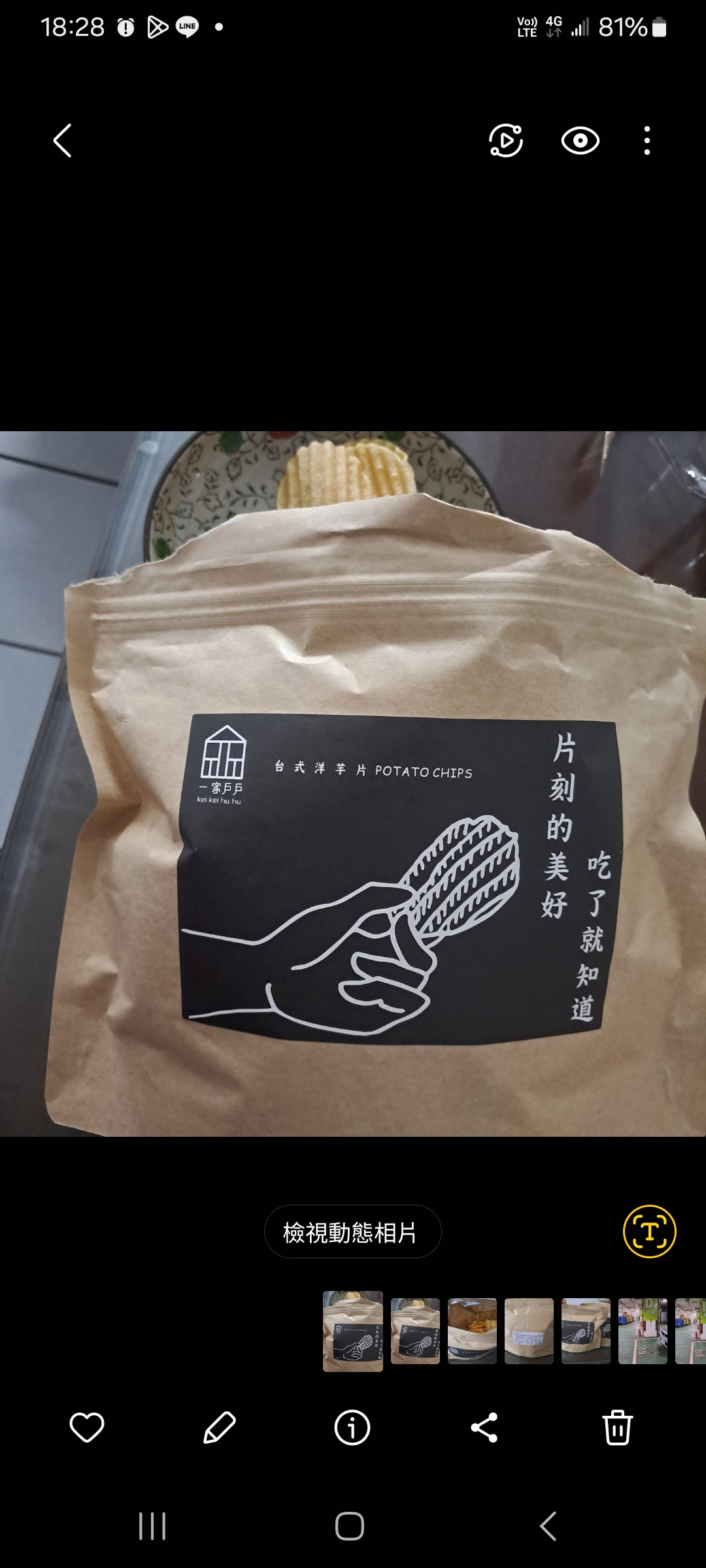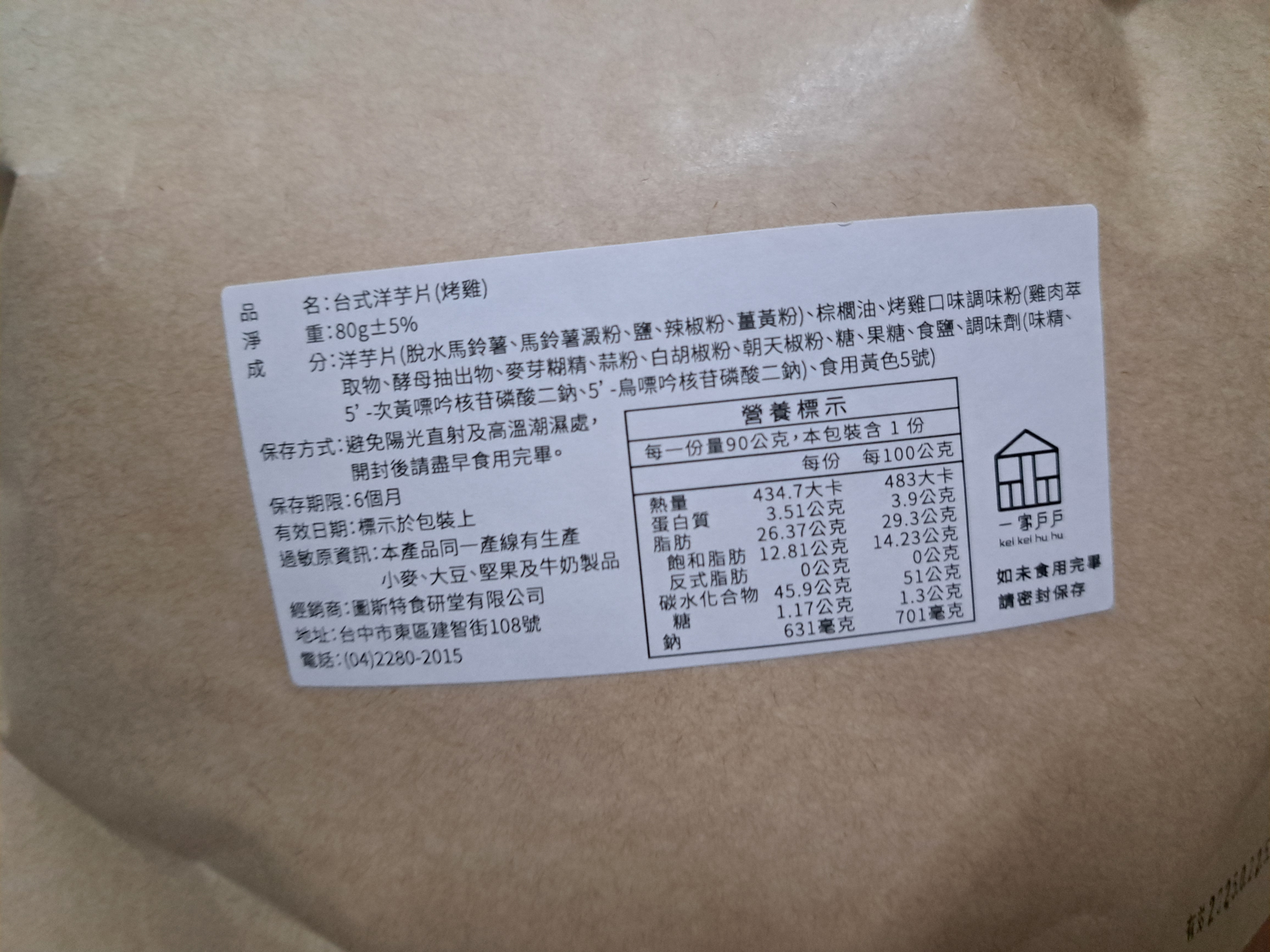 回列表 一家戶戶 台式洋芋片(烤雞口味) 經典台式烤雞風味 獨家製程技術跟油膩say bye bye! 市價110元 (免費申請) / 兩包 所需等級 一般會員以上 所需學分 50 體驗份數 15 關注人數 1576 申請人數 351 申請截止 品牌業者:一家戶戶 負責廠商 一家戶戶 廠商地址 台中市東區建智街110號 產地 台灣 試用產品規格 90g/包 食品業者登錄字號 B-153992768-00000-8 投保產品責任險字號 心得分享 商品介紹 商品成分 使用方法 注意事項 體驗名單 9.1 一家戶戶 台式洋芋片(烤雞口味) 酥脆口感 9.5 產品份量 9.2 香氣十足 8.1 包裝美學 9.3 建議推薦 8.9 心得分享 15則 陳香伶 金食達人 33歲 高雄市 2024/09/13 對一家戶戶 台式洋芋片(烤雞口味)留下評價 9 這次試吃一家戶戶 台式洋芋片包裝採用牛皮紙袋裝設計非常簡約成分及營養等標示完整採用夾鏈袋封條吃不完可以直接封起來,非常方便打開後洋芋片約裝7至8分滿洋芋片是波浪造型,有些微的厚度感覺是用原塊馬鈴薯製成直接用手拿起來吃,手指乾爽不會太油膩入口鹹香酥脆,香氣迷人,比較有口感令人忍不住一片接一片,十分涮嘴口味跟口感上很類似浪味先,越嚼越有馬鈴薯的香氣只是吃多會覺得稍微有點鹹,但整體還是很棒尤其不像一般洋芋片一樣油膩有負擔,吃完也不會滿手滿嘴油當零嘴配電視電影都非常適合,值得推薦 周姿妤 金食達人 42歲 新北市 2024/09/06 對一家戶戶 台式洋芋片(烤雞口味)留下評價 9 包裝走永續簡約風格,有無印風、簡單清新的感覺。洋芋片吃起來烤雞味道不明顯,不過對喜歡清淡口味的我來說很剛好。最喜歡還是海鹽或原味的洋芋片。此款洋芋片不油膩,酥脆爽口。很容易一片接一片的吃下去。但洋芋片畢竟熱量還是不低,會克制吃的量。夾鏈袋的包裝方便小量小量的取出食用。此款洋芋片跟市面上統一生機出的一款洋芋片雷同,都是不油膩、波浪狀,吃起來也有點像。但一家戶戶的量比較多、每一片洋芋片也比較大。口感一樣很好。 蔡小雯 金食達人 28歲 宜蘭縣 2024/09/09 對一家戶戶 台式洋芋片(烤雞口味)留下評價 10 外包裝很簡約,並不會有太多的花俏設計,而且還有夾鏈封口,真的非常貼心,很適合餅乾喜歡一包拆開後分多次享用的我。剛開封時,就聞到了淡淡的餅乾香,非常引人食慾大開,吃起來並不會太鹹,鹹甜度很剛好,也不油膩,吃完手都是乾淨的而且調味不重,非常適合年長者享用或是對於不宜享用高鈉餅乾的人吃個人認為是好吃又相對市售餅乾很健康的新選擇餅乾本身很薄,但又因為她的波浪設計,咬起來非常脆,而且一片的大小很好入口,不需要分好幾口來吃,導致身上都是餅乾屑推薦給大家 hana,H. 金食達人 40歲 新北市 2024/09/10 對一家戶戶 台式洋芋片(烤雞口味)留下評價 9 商品外包裝乾淨,清新,有質感。跟一般超商上販售的洋芋片比起來有質感多了,裡面的洋芋份量也更多,而且還有夾鏈袋的包裝,保存上和食用上更方便很多。洋芋片本身就是也比較不油膩,吃起來嘴巴內不會油油的,可以吃到滿滿的馬鈴薯和味道。感覺是比較天然和手作的產品。洋芋片的表層波浪也讓它吃起來更有脆感。這次試吃的是烤雞口味,但其實沒有雞汁味,這個部分有一點可惜,餅乾上只有微鹹味和微甜味。調味上比較稍感可惜了一些,但是可以吃到馬鈴薯味,是款偏天然的洋芋片產品。如果有做辣味或是其他調味上可以做出比較明顯的口味變化的話,會想要再吃吃看的產品!整體來說,是一樣比較健康款的零食,方便放在家裡或辦公室偶爾口饞的時候吃的小零食。 黃郁中 銀食達人 37歲 新竹縣 2024/09/12 對一家戶戶 台式洋芋片(烤雞口味)留下評價 8 簡易設計+厚實的牛皮紙袋突破一般零食的形象厚實的本體仍可以保持一定程度的酥脆著實讓人驚豔,大概是吃過的同樣厚度的洋芋片裡最脆的而且不管是手拿或者放在衛生紙上都不會感覺的油膩感這點我想是很多想吃洋芋片但因上述原因卻步的人會喜歡的點味道本體算是美中不足的地方相對於其他品牌類似的口味來說,不管是香氣或是味道的厚重感都沒有那麼強烈 如果是吃習慣市面上大牌子的人可能不太習慣但整體來說還是很耐吃 甚至你不太會注意到你已經吃進去多少覺得這樣的商品會很適合想吃洋芋片 但不想要有那麼多負擔的人 至於減肥 那是吃完之後才需要思考的事情了 Hui 金食達人 27歲 桃園市 2024/09/06 對一家戶戶 台式洋芋片(烤雞口味)留下評價 9 此產品提及使用獨家甩油技術,實際將洋芋片放到衛生紙上,真的沒有沾上油,用手拿取也不會有油油的感覺,我覺得很厲害!而提到甩油,會使我聯想到健康養生,木頭色的外包裝很優雅,加上簡約的包裝貼紙,似乎透露出簡單、無負擔的感覺~對於喜歡吃零食的我,能更安心的享受、感受美味!香氣的部分,其實沒那麼突出,但我認為這未必是壞事!可能是因為沒有添加太多額外的東西?某種程度上,也給我一種較健康的感覺~但是味道其實不會讓我聯想到烤雞?口感的部分,不確定是因為比較大片?還是比較硬?會刮到上、下顎,但酥脆口感是好的分量很足,打開就是滿滿一包,令人看了很開心綜上所述,這是一款好吃的洋芋片!雖然鈉含量似乎比市售洋芋片高,但味道不會太重,也不油膩,份量足夠、包裝簡約,算是值得推薦~ Shih 金食達人 30歲 新北市 2024/09/13 對一家戶戶 台式洋芋片(烤雞口味)留下評價 9 拿到打開的瞬間有驚豔,包裝是