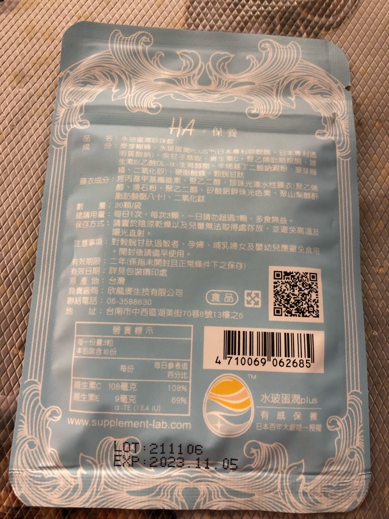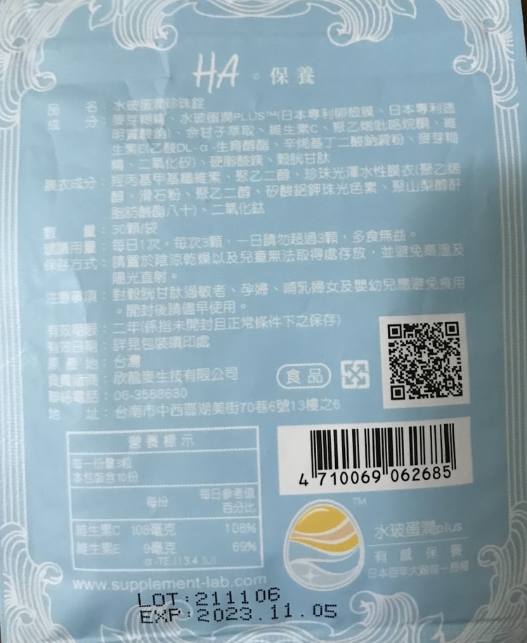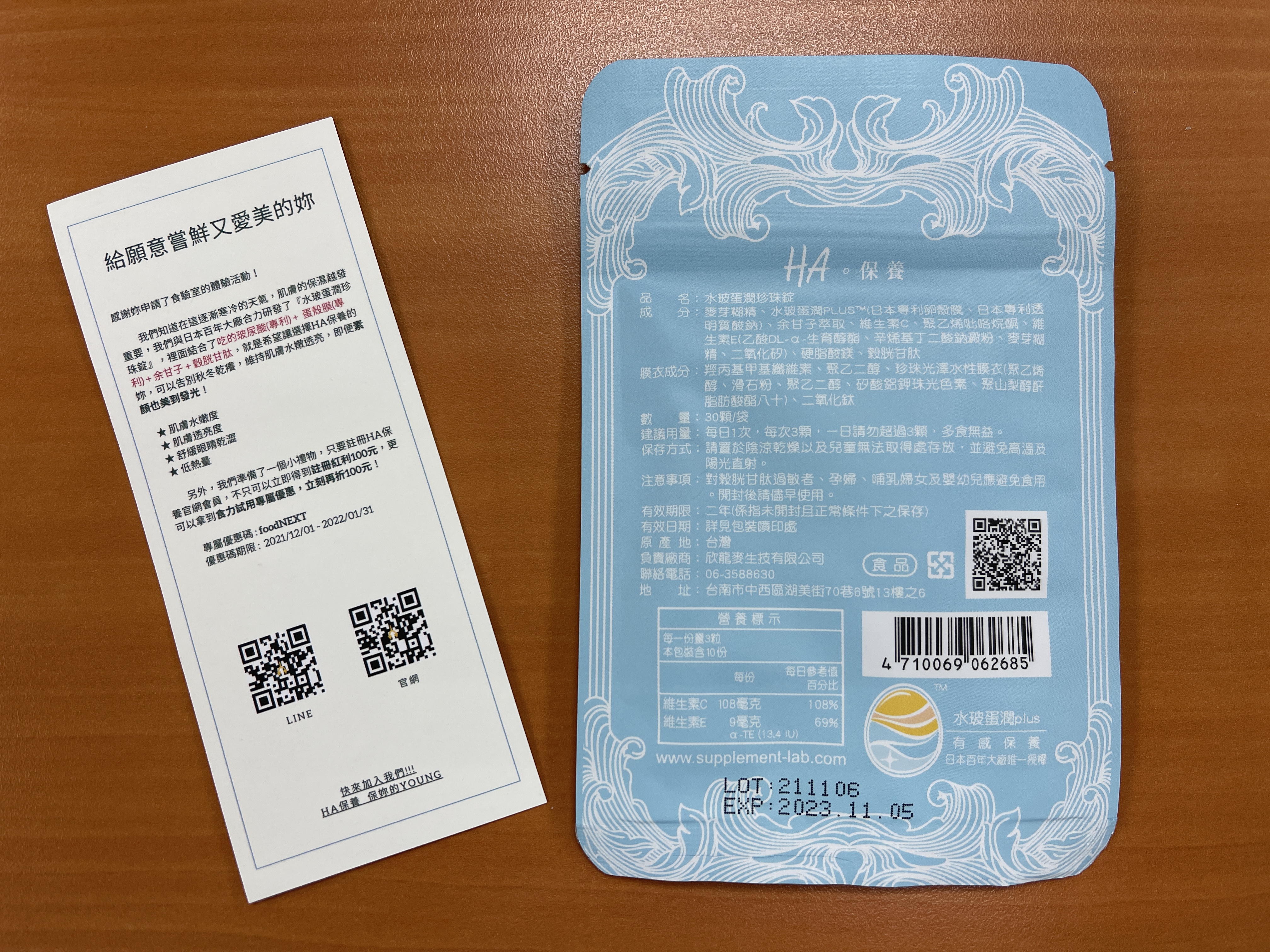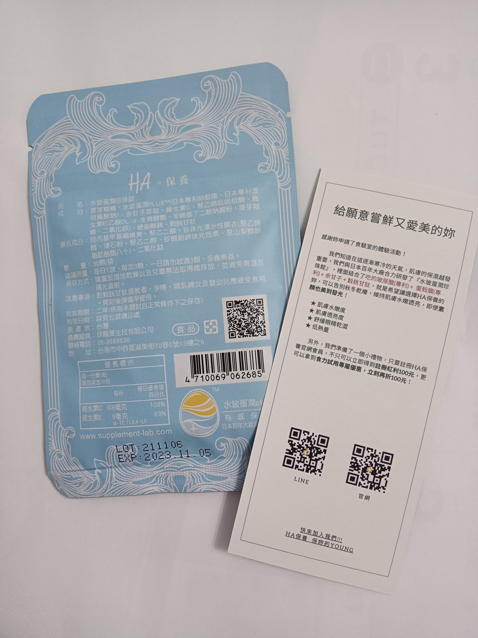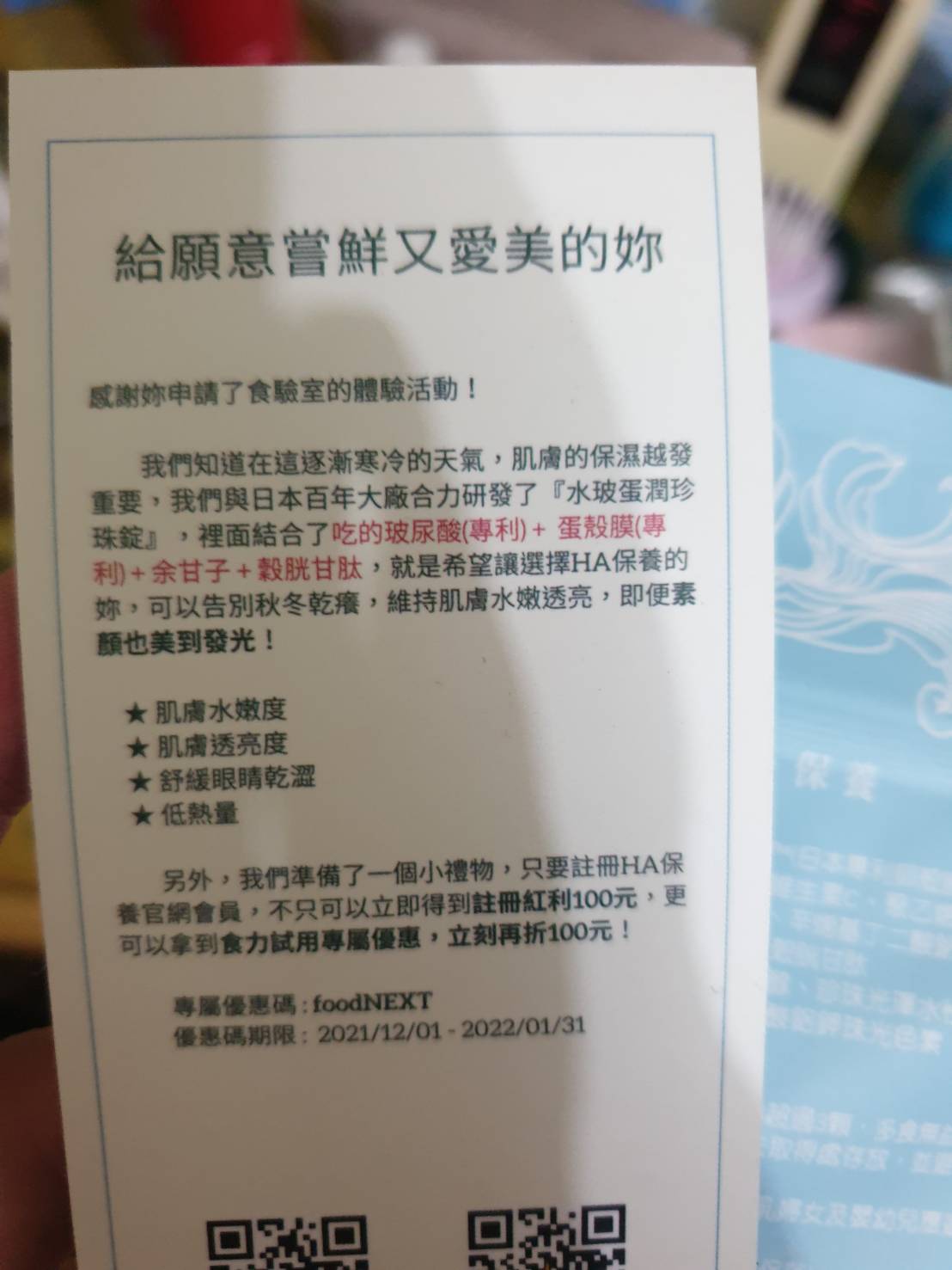 回列表 HA。保養 水玻蛋潤珍珠錠 告別暗沉、透亮再現 500元/袋 所需等級 一般會員以上 所需學分 30 體驗份數 100 關注人數 1676 申請人數 299 申請截止 立即購買 品牌業者:欣龍麥生技有限公司 負責廠商 欣龍麥生技有限公司 廠商地址 臺南市中西區湖美街70巷6號13樓之6 產地 臺灣 試用產品規格 30顆/袋,每日一次,一次三顆,十天份 食品業者登錄字號 D-191116493-00000-5 心得分享 商品介紹 商品成分 使用方法 注意事項 體驗名單 8.2 HA。保養 水玻蛋潤珍珠錠 想要養顏美容 8.3 輕鬆入口 8.8 品質信任 8.2 美學設計 8.5 建議推薦 8.0 心得分享 90則 李庭 金食達人 33歲 臺北市 2021/11/21 對HA。保養 水玻蛋潤珍珠錠留下評價 10 讓我先自首一下,對於各種貼心小語真的是無法抵抗,拆開包裝盒後除了柔和的配色非常吸睛,就是他附上的小卡【be a star for your life】直接入坑! 看看他的成分,【穀胱甘肽】、【維生素C】,因為之前短暫接觸過相關產業,知道多補充是可以達到美白效果,一白遮三醜,身為女生的我很是需要吶~如果聽起來很可疑,有一句老話說,睡飽睡好就會變漂亮,其實是增加代謝率,跟穀胱甘肽功效-幫助睡眠、抗氧化、提高代謝,這樣聽起來能讓人信服了吧!另外,他採用夾鏈袋封口,可以避免潮濕、掉出的風險,還可以重複使用,非常貼心耶,老實說,剛收到的時候一度卡關在夾鏈的部分,差點直接剪掉哩~保養品是需要長時間使用的,找到一個合你眼又安心的產品是很重要的:) 一起成為透亮自信、甩掉濾鏡的女孩吧! 黑貓 金食達人 37歲 臺北市 2021/11/20 對HA。保養 水玻蛋潤珍珠錠留下評價 9 包裝很美,是水藍色很清爽,放在包包裡拿出來吃也不會被當成吃保健食品,在辦公室吃也不尷尬。產品圓圓的還有珍珠光澤,超級喜歡,像是真的吃珍珠,需要配溫開水吞服,聞起來沒有味道,但不建議咬碎,會有一點藥味(笑),整體很喜歡。整包30顆,可以吃10天,不會有負擔,期待煥然一新的自己。 期果威 金食達人 29歲 臺北市 2021/11/20 對HA。保養 水玻蛋潤珍珠錠留下評價 9 會試用幾乎都是因為想要養顏美容吧!包裝外觀很精緻也偏日系,賞心悅目到不小心忘記先拍照就拆封~錠劑本身輕鬆好入口,最令人驚喜的部分是沒有任何特殊氣味!不過一天竟然要服用到三顆覺得有點太多,很像老人家服藥多種。且必須承認因為相關數據提供較少,還有一個美白有效成分寫在成分表最後面(這是表示含量很稀少吧嗎?),所以對於品質信任會持較為懷疑的態度,總體來說很特別,若有成效會再去購買的。 黃念怡 金食達人 32歲 桃園市 2021/11/21 對HA。保養 水玻蛋潤珍珠錠留下評價 10 以前總覺得內服的保健品臭又大顆難嚥下總將保養一昧著重在外敷為主但細想我們體內的器官又得靠什麼保健呢?很開心能被000邀約體驗 HA。保養 水玻蛋潤珍珠錠雖然只是10天的份量可能沒那麼快感受到保養的實質功效但我覺得顆粒大小適中、顏色不鮮豔、無味就已經取勝了👍👍👍是可以睡前直接三顆吞下服用的大小完全不用321深呼吸一顆顆的吞然後擔心會反嘔出來身為一名社工進進出出辦公室、案家、法院、法扶基金會、各種面訪地點即使擦了保養品也有可能因為外勤而無法徹底防護反而一層灰塵跟你說嗨這小巧包裝攜帶方便顏色讓人看了很想去海邊看看海景呢而我認真覺得水玻蛋,社工必須得要有一罐-社工不外勤的時候長時間就得待在冷氣房與記錄搏鬥-社工跑訪奔波還要忍受風吹日曬被個案放鳥的可能又或者案家整個大亂鬥心很累的時候-不論你是男社工女社工都要注意日常保養室內室外的溫度抨擊都有可能讓我們…容易過敏、泛紅甚至乾癢適度的日常保養換取新鮮好心情適度的調整放鬆換取新鮮肝最後的最後,貼心小提醒❗️孕婦、哺乳婦女還有嬰幼兒🈲️食用呦! 陳奕丞 鑽石達人 37歲 新北市 2021/11/22 對HA。保養 水玻蛋潤珍珠錠留下評價 8 首先感欣龍麥生技有限公司和食力提供本次試用的機會,因為工作常常要熬夜加班,三不五時我會有黑眼圈及皮膚粗糙的現象,所以我有特別留意這方面的保養,得知本次的試用體驗,我非常的期待,服用後,果然不失所望,效果還不錯,黑眼圈及皮膚黯淡的現象有一點點的改善,相信長期服用後,效果會更加明顯,使用吞嚥上也相當方便,一次只要吞嚥三顆,不像一些其他的品牌,一次要吞的顆粒數量眾多,這對吞嚥較為困難的朋友比較不友善。而且外觀包裝獨立設計,這點對於攜帶外出使用相當方便,不像某些品牌採整罐包裝設計,這對於外出使用較不方便。我十分推薦(HA。保養 水玻蛋潤珍珠錠)給大家,也感謝食力&欣龍麥生技有限公司提供這次的試用機會,再次謝謝 林強 金食達人 46歲 高雄市 2021/11/22 對HA。保養 水玻蛋潤珍珠錠留下評價 9 包裝設計讓人覺得很有趣包裝袋上線條布局有種覺得相當活潑的感覺符合這產品專利、創新、高科技的形象與設計基調但是藍白的色調搭配上略顯的單調尤其當包裝後說明字體過小、文字較多整體看來比較容易「一片白」倘色調豐富點,較能帶有「青春」、「活力」感覺更能符合產品「保養」的調性至於產品內容則容易吞嚥顆粒看起來也很光潤誘人值得推薦 林敬智 金食達人 31歲 臺中市 2021/11/22 對HA。保養 水玻蛋潤珍珠錠留下評價 9 這個水玻蛋珍珠錠對我來說是一個很好吞的吃的保養品,具有日本專利技術,加上是台灣廠商,所以很放心食