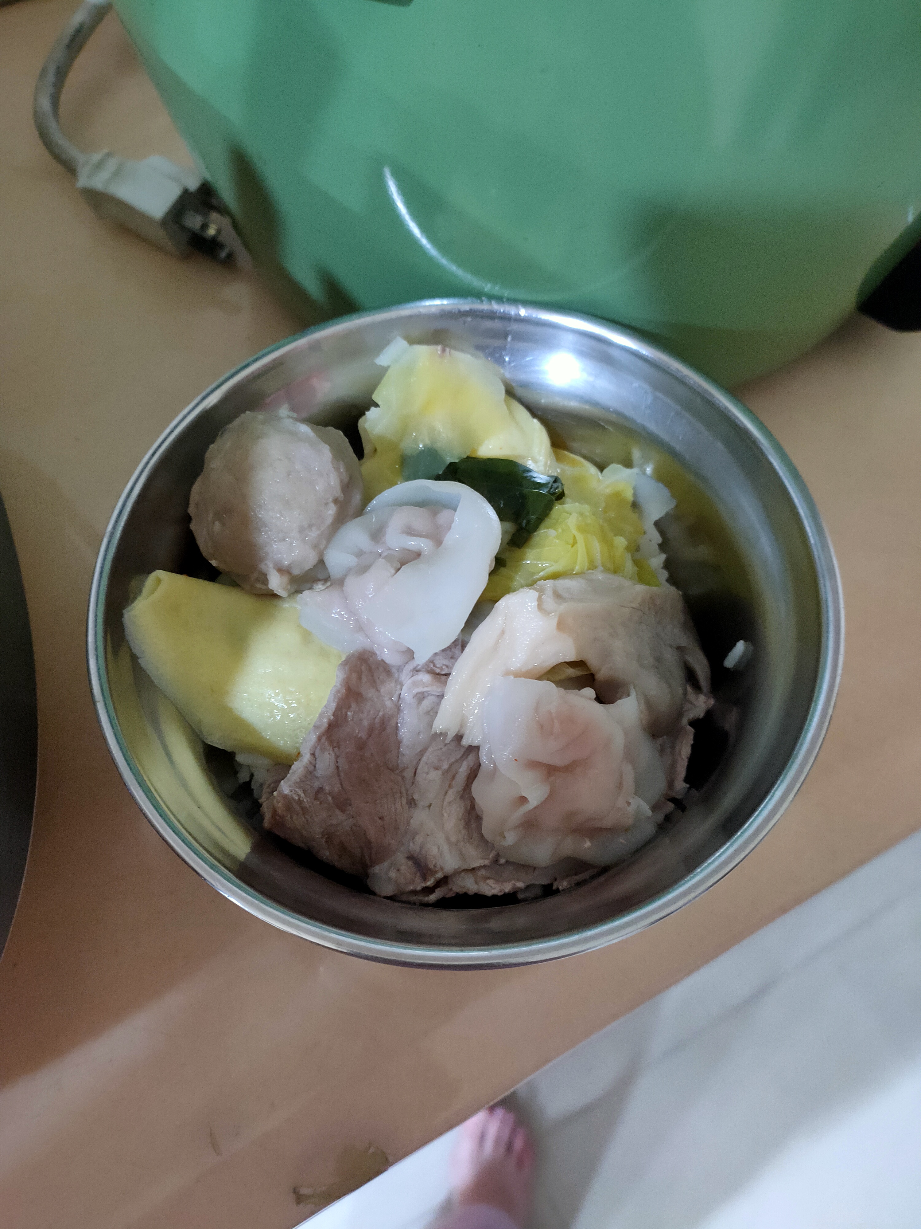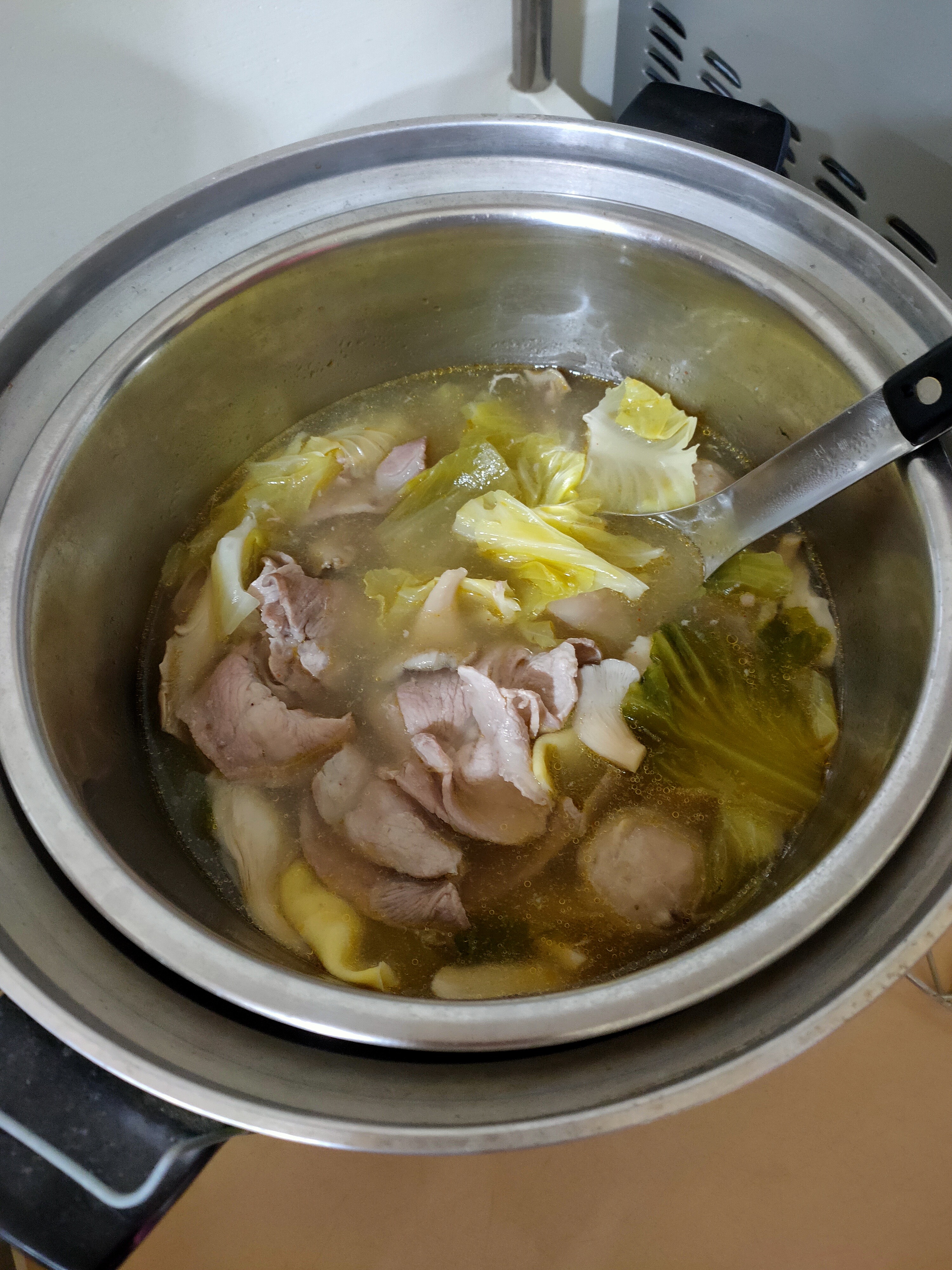 注水450CC加入鍋內,倒入食材,食材熟後即可食用