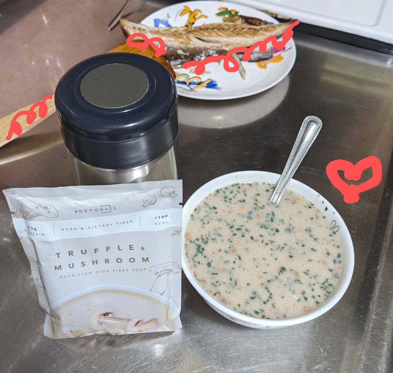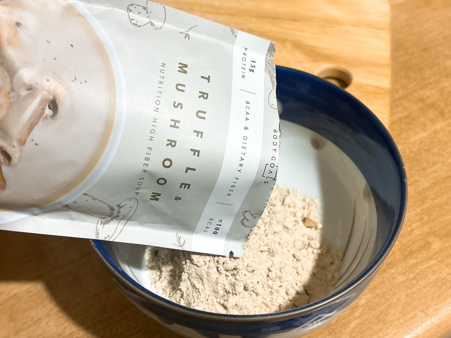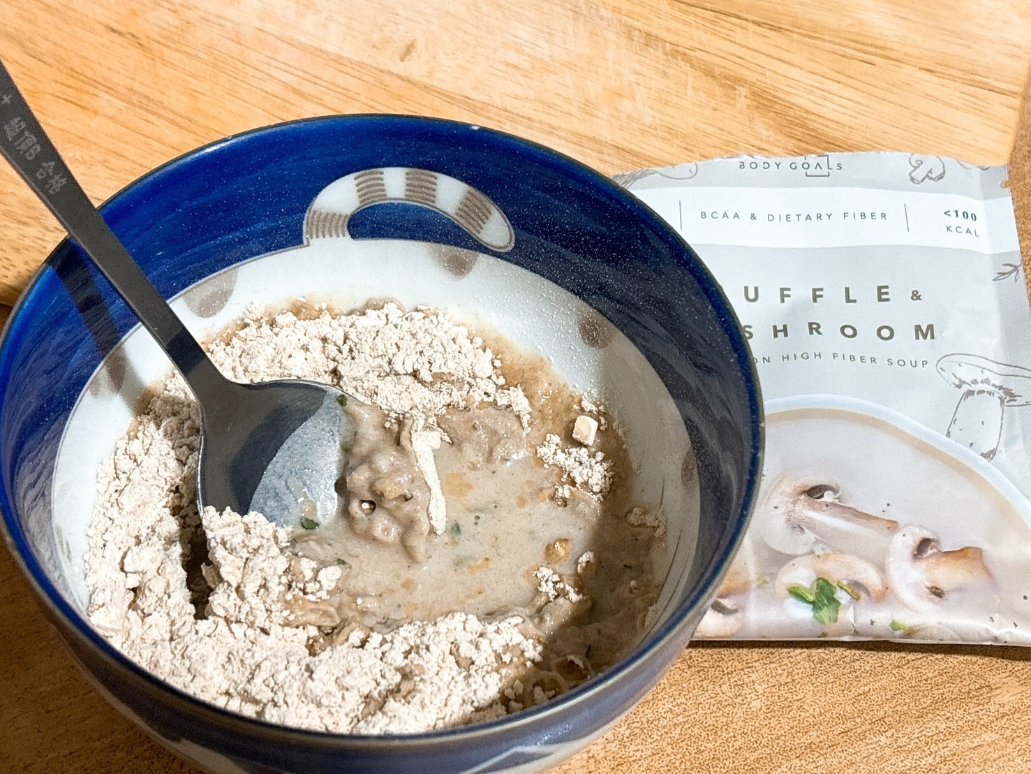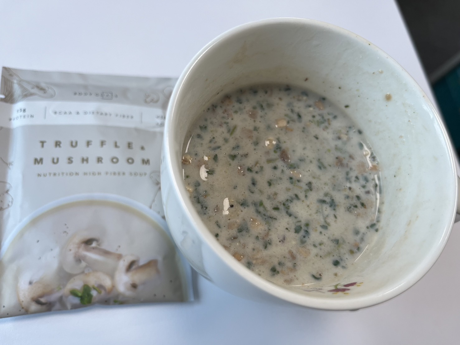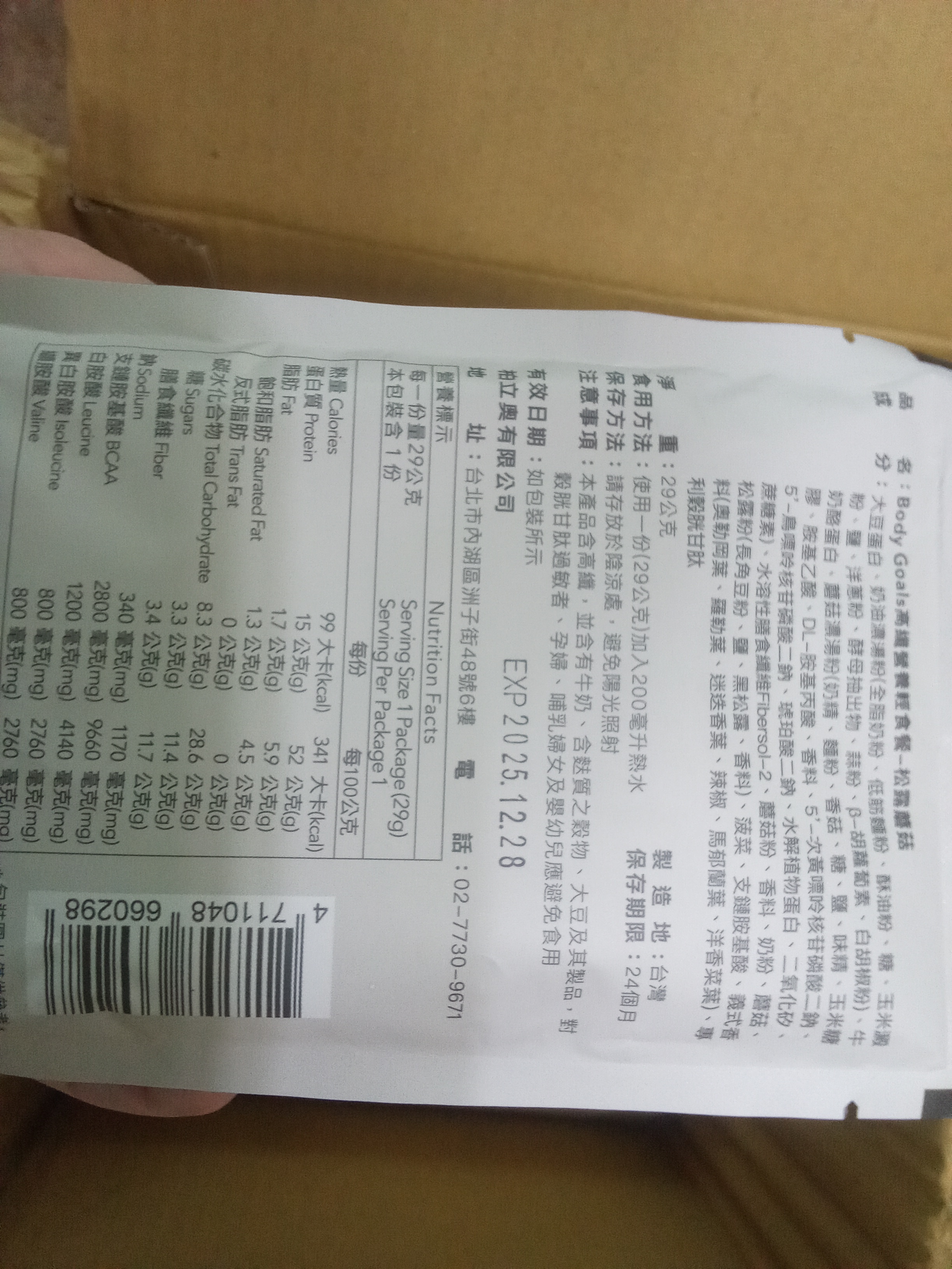大豆蛋白、奶油濃湯粉(全脂奶粉、低筋麵粉、酥油粉、糖、玉米澱粉、鹽、洋蔥粉、酵母抽取物、蒜粉、β-胡蘿蔔素、白胡椒粉)、牛奶酪蛋白、蘑菇濃湯粉(奶精、麵粉、香菇、糖、鹽、味精、玉米糖膠、胺基乙酸、DL-胺基丙酸、香料、5' –鳥嘌呤核苷磷酸二鈉、琥珀酸二鈉、水解蛋白、二氧化矽、蔗糖素)、水溶性膳食纖維Fibersol-2、蘑菇粉、香料、奶粉、蘑菇、松露粉(長角豆粉、鹽、黑松露、香料)、菠菜、支鏈胺基酸、義式香料(奧勒岡葉、羅勒葉、迷迭香葉、辣椒、馬郁蘭葉、洋香菜葉)、專利穀胱甘肽