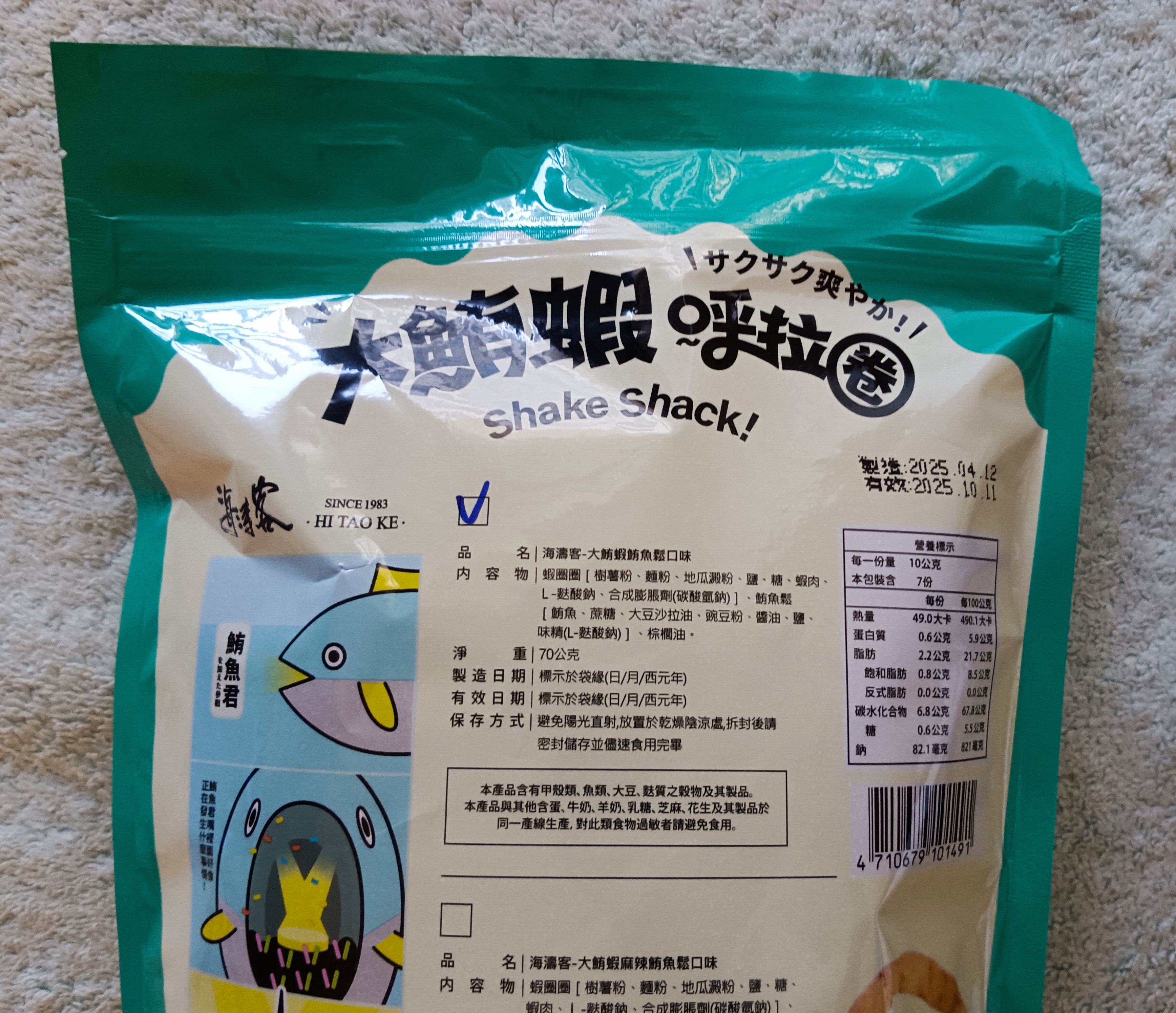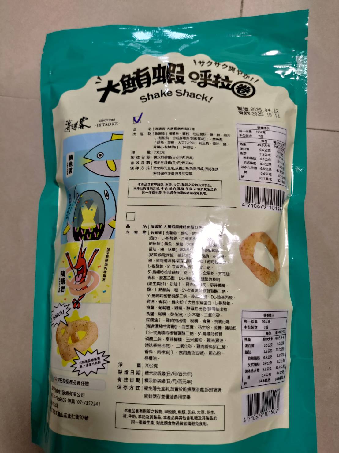 回列表 海濤客 大鮪蝦呼拉圈 小琉球超狂人氣王! 讓人吃了停不下來的海味小點 市價190元 (免費申請) 所需等級 一般會員以上 所需學分 60 體驗份數 15 關注人數 1391 申請人數 238 申請截止 品牌業者:容鴻有限公司 負責廠商 容鴻有限公司 廠商地址 高雄市鳳山區北仁街37號 產地 台灣 試用產品規格 70g/包 食品業者登錄字號 E-159275861-00000-5 投保產品責任險字號 富邦產險0507字第20AML0001756號 心得分享 商品介紹 商品成分 使用方法 注意事項 體驗名單 9.1 海濤客 大鮪蝦呼拉圈 鮮蝦香氣 8.9 鮪魚香氣 8.1 鹹度適中 9.2 口感酥脆 9.4 建議推薦 9.1 心得分享 15則 丁瑛子 鑽石達人 34歲 彰化縣 2025/07/01 對海濤客 大鮪蝦呼拉圈留下評價 10 在小琉球旅遊時,絕不能錯過超狂人氣王——大鮪蝦呼拉圈!這款海味小點一口咬下,酥脆的外皮中包裹著鮮甜飽滿的大鮪魚與蝦仁,香氣四溢,海味十足,讓人一吃就停不下來。呼拉圈的創意造型也充滿趣味,不但吸睛,還讓人忍不住拍照分享。最迷人的是那種鹹香中帶點甜味的口感,讓人忍不住一圈接一圈地吃,越吃越涮嘴。不論是當地人還是遊客,幾乎人手一包,可見其超高人氣。這不僅是味蕾的享受,更是小琉球海味文化的完美展現。來小琉球,絕對要試試這款讓人上癮的海味點心——大鮪蝦呼拉圈! 張芷蓉 金食達人 33歲 新北市 2025/07/03 對海濤客 大鮪蝦呼拉圈留下評價 10 感謝食力讓我有機會吃到小琉球超狂人氣王!海濤客的大鮪蝦呼拉圈,真的會讓人一吃就停不下來的海味小點~吃起來就像做成圈圈形狀的蝦餅,鹹香酥脆,一口咬下去海味直接爆棚!鮮蝦的香氣加上鮪魚鬆真的超級搭,鹹度剛剛好,嘴巴完全停不下來,直接秒殺嗑光😂我吃完馬上跑去看官網才發現還有麻辣口味,超想再試試看!這款真的很適合當追劇或聚會的小零嘴,拿來當下酒菜也很不錯,搭配啤酒、調酒或氣泡酒都很可以,鹹香的海味完全不膩口,越吃越涮嘴,完全就是一個人默默吃光都沒發現的那種罪惡感🤣重點是現在官網就能直接買到(而且還特價),不用特地跑去小琉球也能補貨,超方便!吃完真的會想直接回購,分給朋友一起吃也超讚! 邱詩婷 金食達人 38歲 高雄市 2025/07/09 對海濤客 大鮪蝦呼拉圈留下評價 10 以前都會買海濤客的干貝醬,沒想到竟然出餅乾!本身很喜歡吃餅乾,第一次吃有海鮮口味的餅乾,本以為會很衝突,沒想到吃下去一口接一口,完全停不下來欸!餅乾的大小很適合小朋友吃,很好咀嚼又不死鹹,也很適合半夜追劇配啤酒,超級無敵涮嘴又,一包份量也很多,吃不完有夾鏈口可以封起來,放三天也不會軟掉,一樣酥脆好吃,對於我這種無法一次吃完餅乾的人是一大福音,拿來送禮或請客人吃也很大方,看官網也有賣辣的,價格也非常合理,已經打算要來囤貨了🤤這會列入我的長期餅乾櫃清單之一 林莉 金食達人 57歲 嘉義縣 2025/07/09 對海濤客 大鮪蝦呼拉圈留下評價 10 海濤客的「大鮪蝦呼拉圈」鮪魚鬆口味一看外包裝就很吸睛,鮮明的海洋風設計讓人一眼就知道是海味小點,拿在手上有種要出海旅遊的感覺。打開包裝,裡面的餅乾呈現圓圈圈造型,跟呼拉圈名字很呼應,造型可愛又特別,讓人忍不住多看幾眼。口感上酥酥脆脆,入口輕盈不油膩,吃起來很「涮嘴」,咬下去還會有微微空心感,很像小時候吃的蝦味仙,但再升級一點。我覺得調味粉是這款的重點,鹹香中帶有明顯鮪魚味,不會過重但卻很有存在感,讓人吃了還會想再抓幾片。最後,我認為這是一款包裝有趣、造型吸睛、口感酥脆又創新的零食,很適合當下午茶配劇時食用。 翁菁穗 鑽石達人 55歲 桃園市 2025/07/09 對海濤客 大鮪蝦呼拉圈留下評價 10 試吃 #海濤客 大鮪蝦呼拉圈#海濤客 大鮪蝦呼拉圈-經典原味,是小琉球超人氣伴手禮,現在不用去小琉球就能坐在家中享用,實在好窩心。從小到大吃的蝦味零食,都是條狀。海濤客 大鮪蝦呼拉圈是蝦肉做的洋蔥圈狀的圈圈,完全沒有海產腥味,圈圈外還有香濃鮪魚鬆加持,口感酥脆、咔滋咔滋的,每一口都吃的到蝦的鮮甜,而且沒有蝦味零食普遍有的過分調味,小朋友吃也很合適,爽口不鹹膩,手指頭完全不會油,一下子就能把一整包大鮪蝦呼拉圈吃光光。海濤客 大鮪蝦呼拉圈,很適合在冷氣房裡追劇時完美搭配,小酌片刻時的輕食下酒菜,還是逢年過節時的送禮好選擇。年紀漸長,口味不再那麼重,選擇零食也偏向健康取向,海濤客 大鮪蝦呼拉圈成分相對單純,不只是風味調味;造型可愛有趣,口感酥脆,雙重海味、口味厚實,是很優質的零食選擇!海濤客 大鮪蝦呼拉圈,除了經典原味還有麻辣椒香,讓人躍躍欲試。 曾隆乾 金食達人 71歲 高雄市 2025/07/09 對海濤客 大鮪蝦呼拉圈留下評價 9 當初看到介紹文時,想說小琉球有了麻花捲以外的新伴手禮了?! 好奇地填了申請。家人收到後看到包裝的第一眼,還有點搞不清楚是台灣還是日本的零食,也在猜想會適什麼樣的口味及口感,有人說是洋蔥圈、有人覺得是蝦味X的改版。一開封香氣散發,家人聞香後一口氣拿了不少,每一圈的大小大概比50元硬幣大一些,剛好一口一圈很好入口,爽脆度很適合小孩及長輩,而且調味不會過鹹,也真的會讓人一吃停不下來,雖然沒甚麼鮪魚味有些可惜,但整體來說算是好吃的,下次有機會想再買買另一口味麻辣椒香試試。 Jessie 金食達人 32歲 臺中市 2025/07/08 對海濤客 大鮪蝦呼拉圈留下評價 9 海濤客-大鮪蝦呼