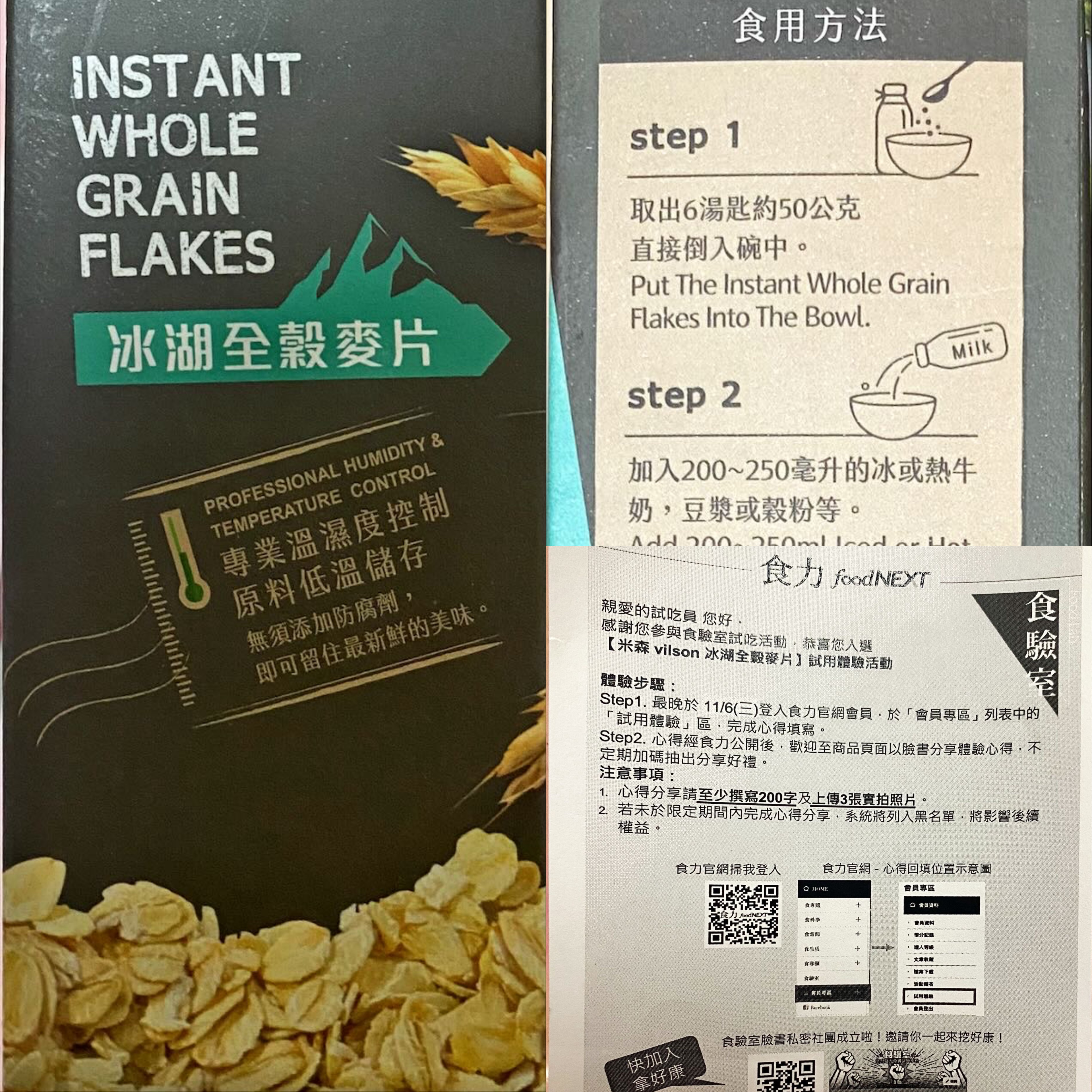 回列表 米森 vilson 冰湖全穀麥片 天然全穀營養豐富 麥香脆口讓健康與美味同行 市價160元 (免費申請) 所需等級 一般會員以上 所需學分 60 體驗份數 15 關注人數 1619 申請人數 295 申請截止 品牌業者:米森 vilson 負責廠商 青荷國際有限公司 廠商地址 桃園市龜山區振興路1165-1號 產地 芬蘭、丹麥 試用產品規格 500g/盒 食品業者登錄字號 H-124407269-00000-9 投保產品責任險字號 心得分享 商品介紹 商品成分 使用方法 注意事項 體驗名單 8.8 米森 vilson 冰湖全穀麥片 包裝美學 9.3 口感綿密 8.9 麥片甜度 7.9 麥片脆度 8.3 建議推薦 8.7 心得分享 15則 關小因 金食達人 42歲 臺北市 2024/10/30 對米森 vilson 冰湖全穀麥片留下評價 10 這次很幸運被選中試吃米森的冰湖全穀麥片,一直都有購買米森的產品,講求有機又純天然是我選擇的首要條件。我通常都用麥片製作成隔夜燕麥,是極為方便又快速的早餐,只要將全穀麥片與牛奶或豆漿混合,放入冰箱過夜;第二天早上食用之前再加入堅果,馬上就可以享用美味又健康的早餐,省去了早上匆忙的準備時間。米森的麥片口感柔軟且滑順,搭配堅果一起吃的層次感十分豐富;而且全穀麥片含有豐富的纖維,能夠增加飽足感;早上吃過這頓營養豐富的早餐,能讓我保持精力充沛,迎接一天的挑戰。 鍾慈 銀食達人 26歲 臺南市 2024/11/05 對米森 vilson 冰湖全穀麥片留下評價 9 我很喜歡「米森」冰湖全谷麥片的整體口感及風味。這款麥片有淡淡的麥香,用奶製品短暫沖泡後軟硬適中,相信再多放幾分鐘應該會得到綿密細緻口感的麥片。 裡面除了含有多種麥片,還加上了玉米脆片,讓口感更有層次。因為是即食麥片,早已蒸熟,所以早上起床沖泡不用5分鐘就可以開吃。此外,「米森」的麥片是使用夾鏈袋包裝的,如此一來,我不僅能輕鬆倒出麥片,保存上也更方便。麥片富含膳食纖維,我都會在早上食用,小小一碗就能帶來滿滿的飽足感。 我很開心能有機會體驗、試吃「米森」的麥片,讓我可以快速吃上好吃又健康的一餐。 Bno Zhang 金食達人 30歲 臺南市 2024/11/05 對米森 vilson 冰湖全穀麥片留下評價 10 當我拿起備感份量的盒身,封面設計的配色和質感已悄悄地在我的一日之計增添了不言而喻的小確幸。本身就喜愛牛奶配玉米片再另外加點麥片當早餐及點心的我,特別開心米森冰湖全穀麥片是一款集合了兩者、總共4種元素的綜合麥片,它們和牛奶合作,在我的舌頭上共同經營出了豐富綿密的口感,甜度適中讓不吃太甜的我不會感到有負擔。內袋設計為貼心快速的夾鏈袋,即使不另外密封的情況也能保存好麥片。在食用和使用方便程度上甚是加分,總體來說是一個快樂的體驗。我很幸運能獲得機會,讓早晨從這份膳食纖維啟動! jon 鑽石達人 42歲 新北市 2024/11/03 對米森 vilson 冰湖全穀麥片留下評價 7 外包裝很樸實整體設計不突出但很協調也感覺產品很天然健康內包裝有設計撕開口但可能為了保存袋子有些厚度不好撕開夾鏈袋的設計方便收藏打開後淡淡穀物香氣4種穀物均勻混和加入牛奶讓穀物充分吸滿泡了一陣子仍然有口感且不同穀物口感上都略有變化口味上無糖只吃的到穀香整體來說走健康路線不像市售麥片杯都很甜只吃小小一碗就很有飽足感很適合忙碌的早上快速地來一碗或餐間與消夜來充飢 賴妮瑄 金食達人 33歲 新北市 2024/11/04 對米森 vilson 冰湖全穀麥片留下評價 8 感謝此次試用體驗抽到我,之前就很常買各式各樣的燕麥,個人就不太喜歡加椰粉的燕麥,或是過於甜膩的燕麥,米森此款燕麥我很喜歡,整體中規中矩,很適合大部分的人入手,食用上也非常方便,有些燕麥要泡很久才會軟,味道上很天然感覺沒有負擔跟化學香料,也沒有添加多餘的東西,直接當早餐泡豆漿吃兼顧健康跟營養,直接一碗到中午沒有問題,也沒有血糖過高不舒服的感覺。包裝上也很方便,有夾練設計,不害怕受潮容易保存,只是包裝做的撕開設計撕開時候有點困難要拿剪刀剪才能打開~ 冬 金食達人 63歲 新北市 2024/11/03 對米森 vilson 冰湖全穀麥片留下評價 9 平時會吃麥片當早餐,這次體驗看看米森vilson冰湖全穀麥片,特選來自芬蘭及丹麥冰湖的全穀麥原料,自然栽培無添加。外觀設計滿有質感的,有展現出商品特色,一盒500g拿在手上很有份量,打開外盒裡面內袋有夾鏈可以密封保存,很貼心。本產品混合了大燕麥片、小麥片、黑麥片及玉米脆片,4種穀物一次滿足。麥片為細緻薄片且已經經過熟化步驟完全蒸熟,直接加冷/熱水或飲品沖泡後即可食用,不需要泡很久,簡單攪拌一下讓麥片復水馬上就軟化了,而且冷熱皆可這點滿不錯的,熱天就能配冰牛奶一起吃。泡開的麥片吃起來綿綿糊糊有麥香,口感比較軟糊,喜歡吃麥片Q度的人可能就不適合,推薦給想快速沖泡或搭配冰飲的人。後來有嘗試冷泡,麥片口感會稍微粗糙一些些,用熱水泡才能完全糊化。 陳一婷 鑽石達人 27歲 新北市 2024/10/31 對米森 vilson 冰湖全穀麥片留下評價 8 感謝食力提供試吃的機會。本次試吃的品項,是號稱最健康的早餐之一。純大燕麥最有名的品牌相信大家都知道,在賣場上都是大包裝,打開來就必須分裝到其他容器中。而米森的冰湖全穀燕麥,首先將包裝製成夾鏈袋的形式,方便食品的保存,這一點值得稱讚。打開內容物有四種的燕麥,與其他只有一種燕麥的商品又更具有豐富性及營養性。我以熱牛奶進行沖泡,個