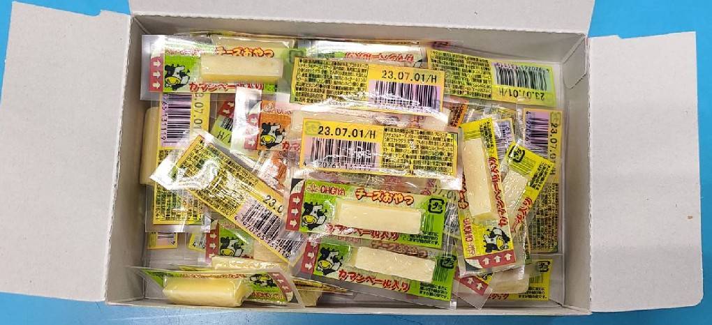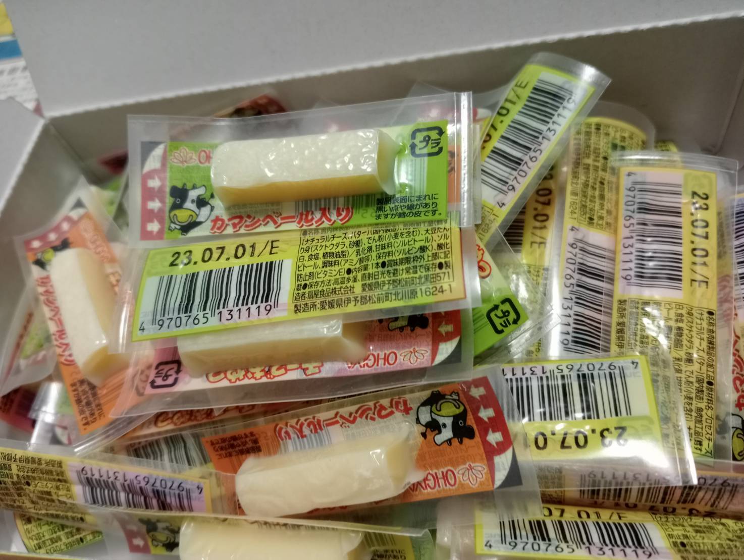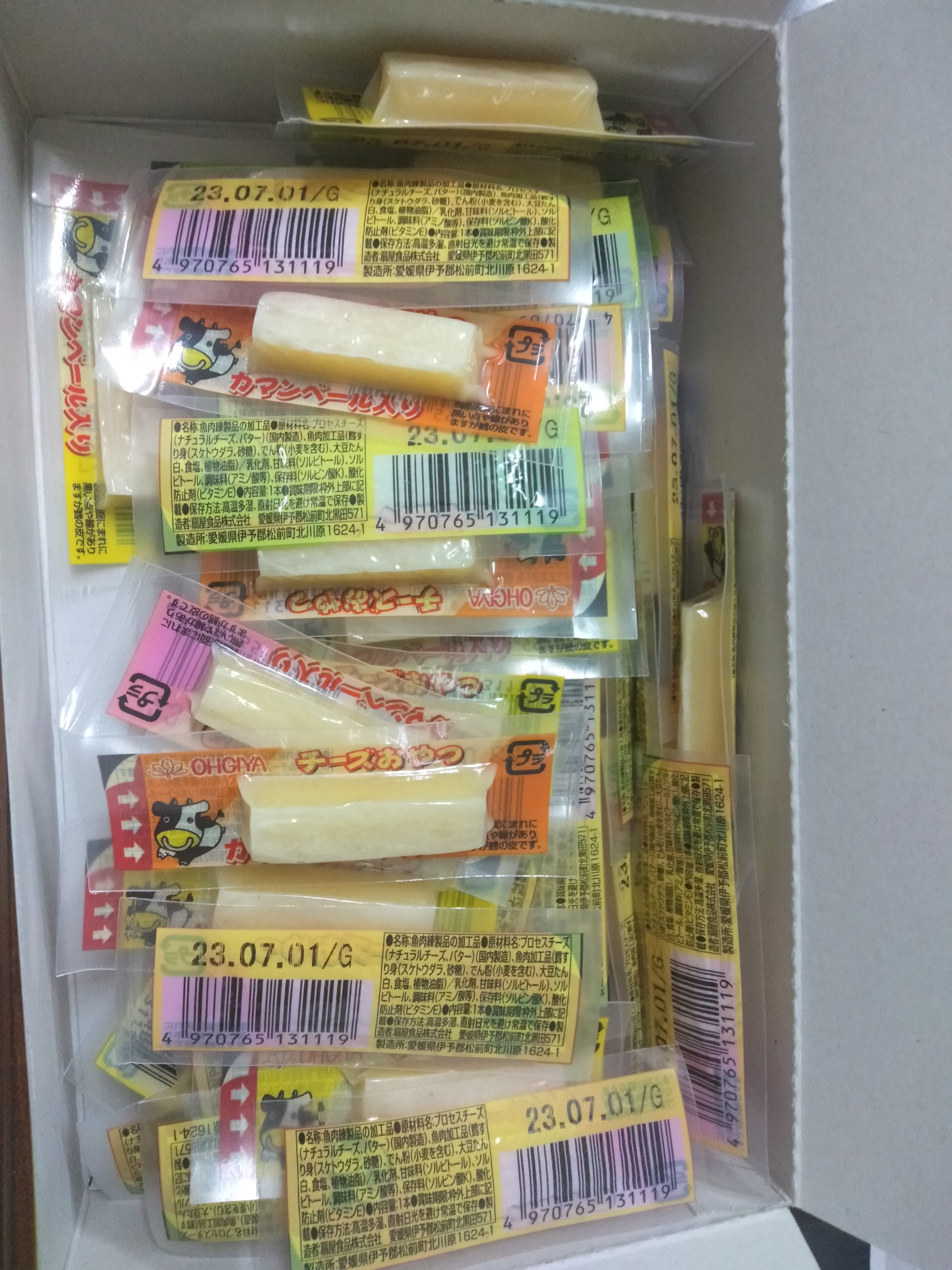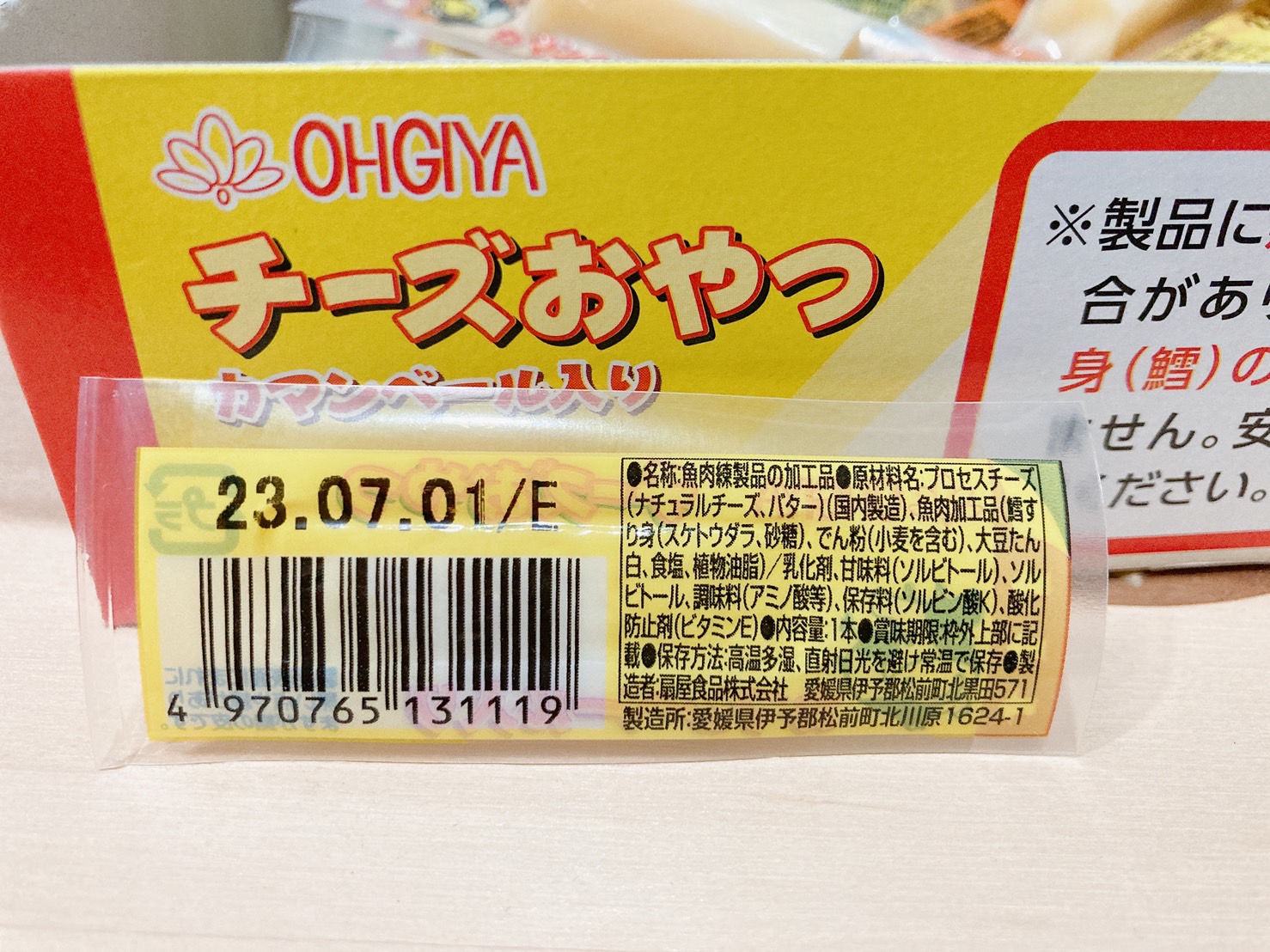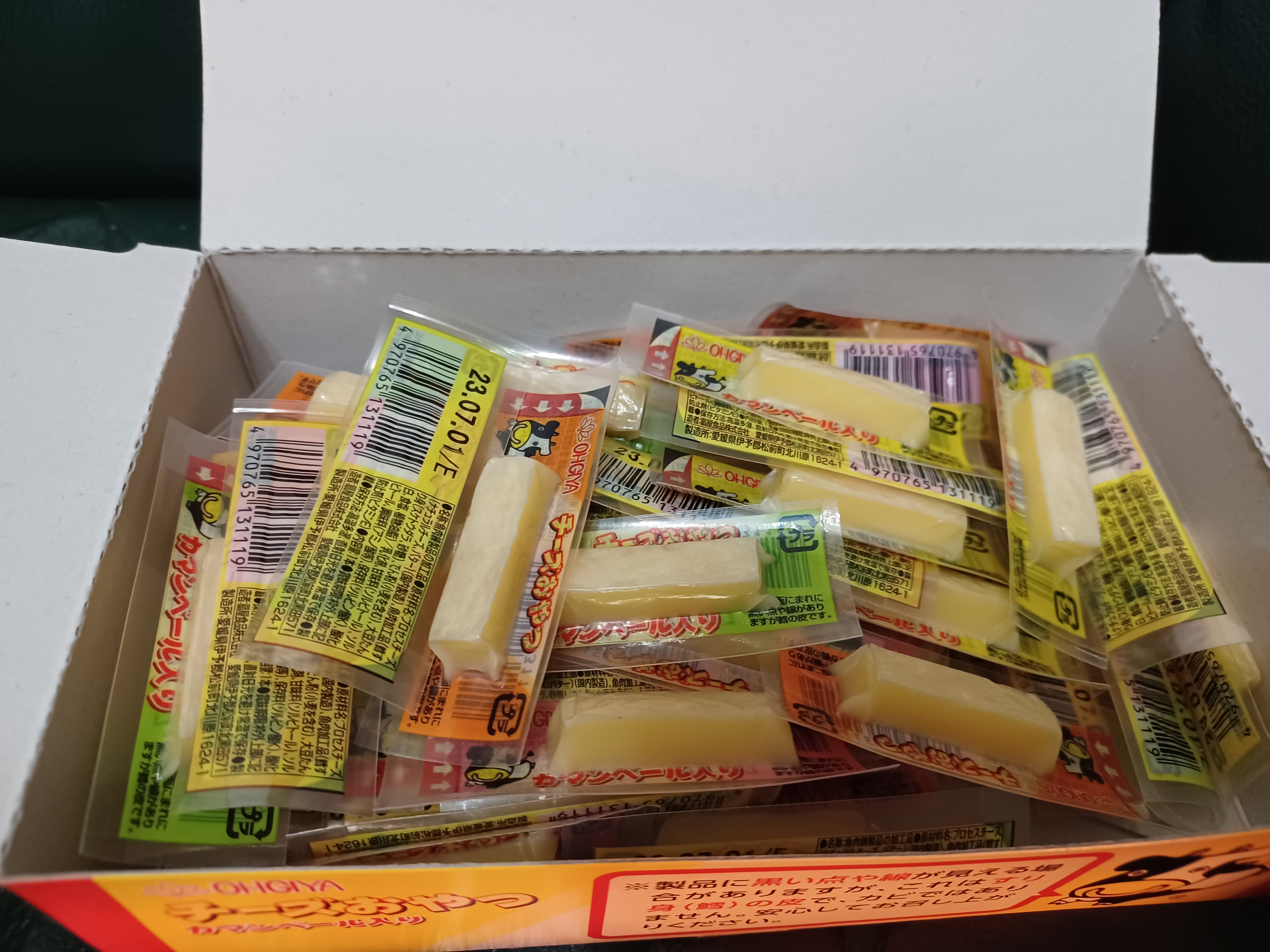 乾酪起司(巧達,豪達,加曼貝爾起司),鱈魚漿,玉米澱粉,小麥澱粉,奶油,食鹽,大豆蛋白,棕櫚油,磷酸鈉,多磷酸鈉,焦磷酸鈉(無水),磷酸二氫鈉(無水),甜味劑(D-山梨醇),L-麩酸鈉,5’-次黃嘌呤核磷酸二鈉,乳酸鈉,抗氧化劑(維生素E),防腐劑(己二烯酸鉀)