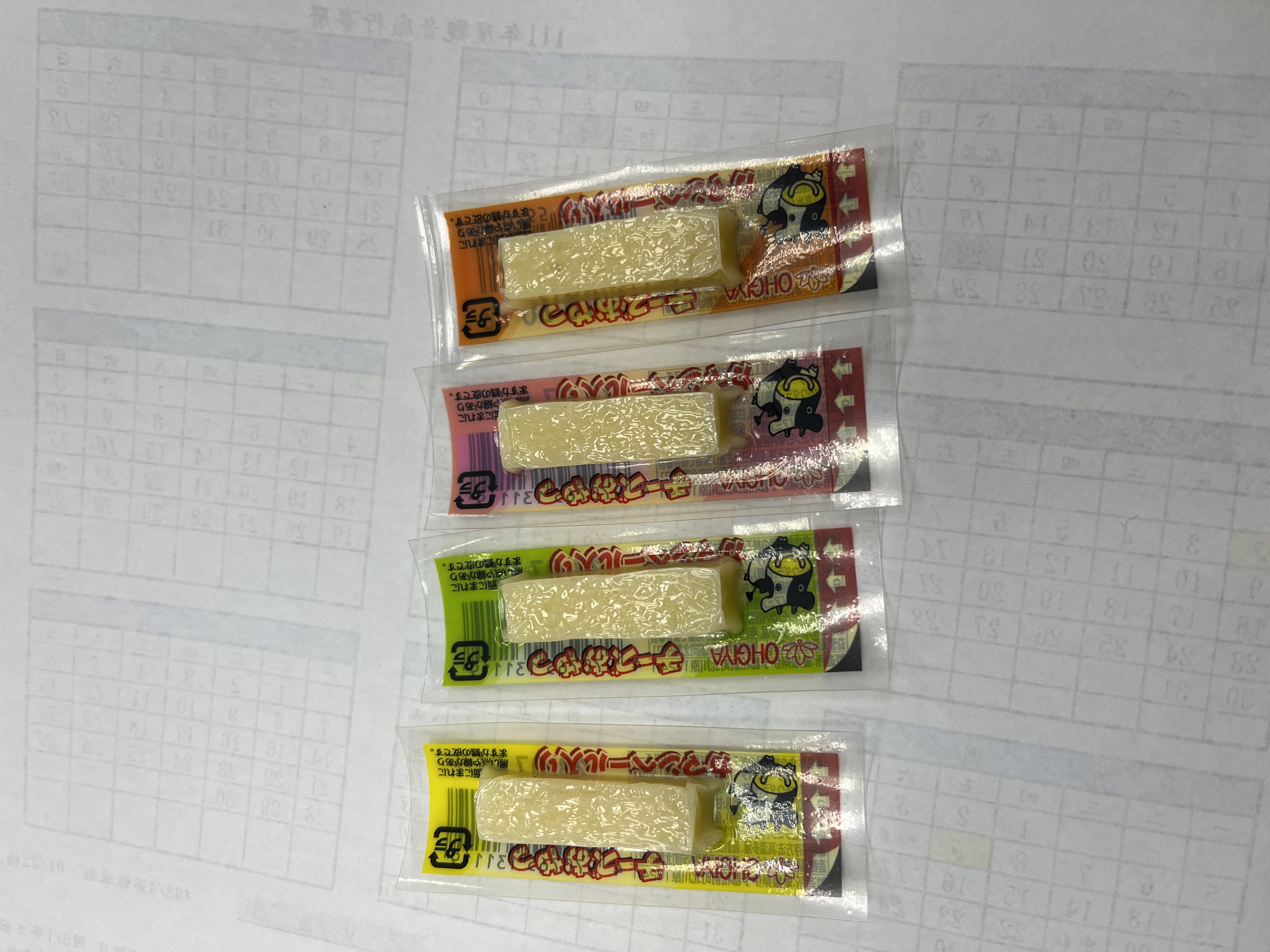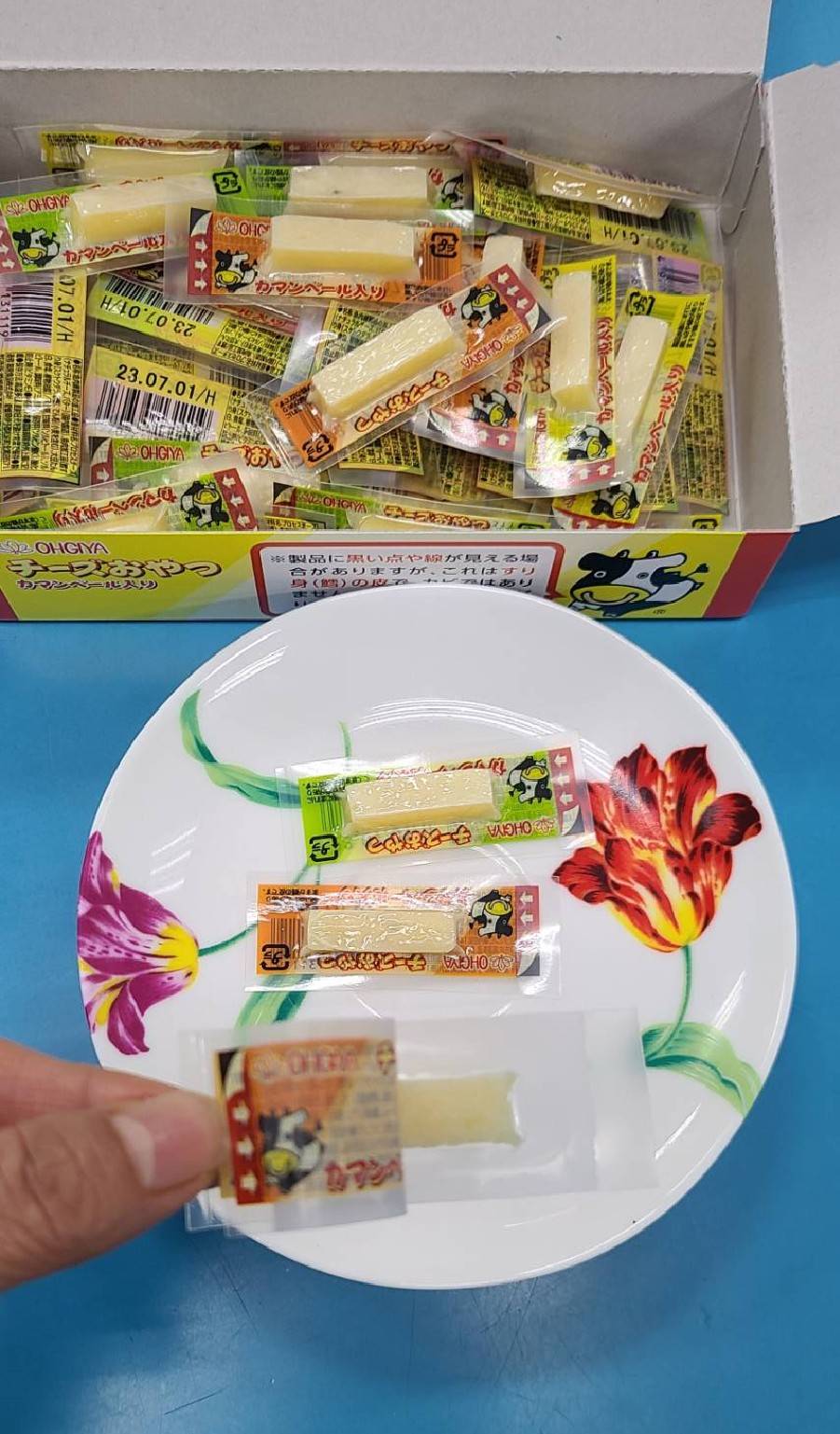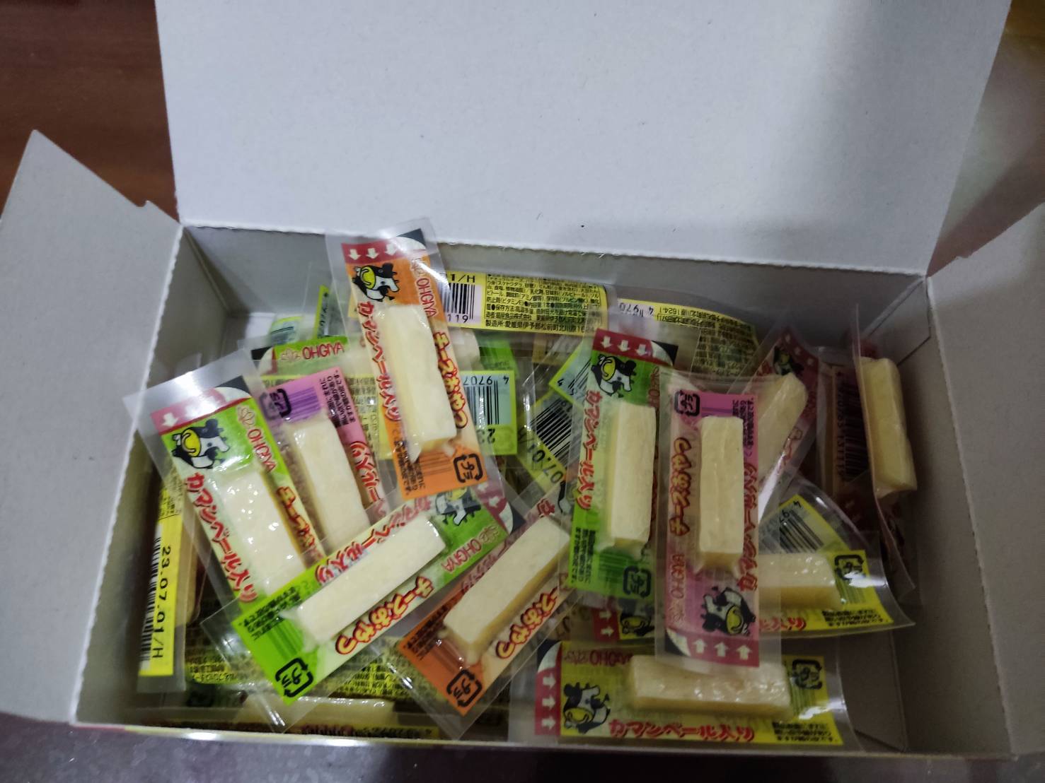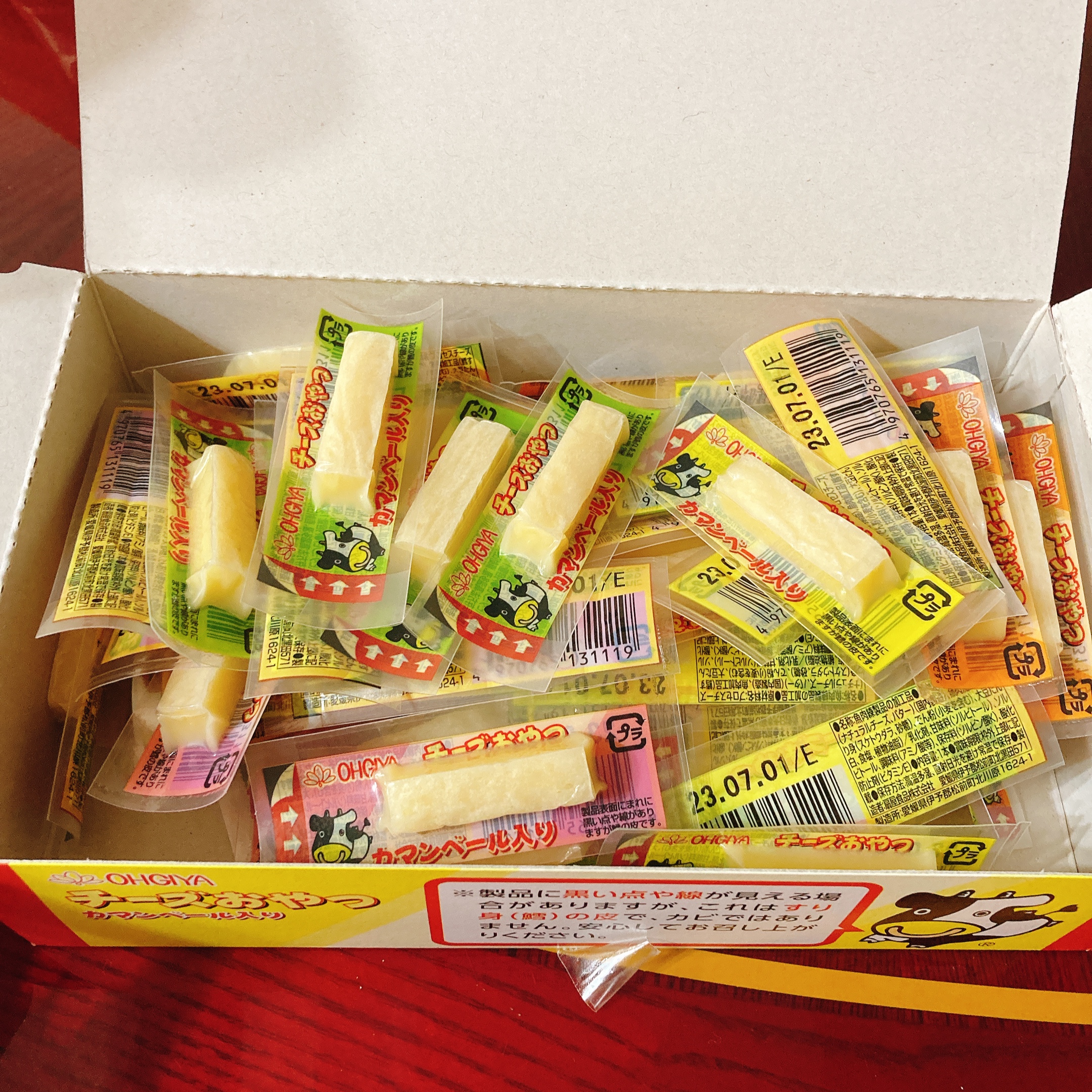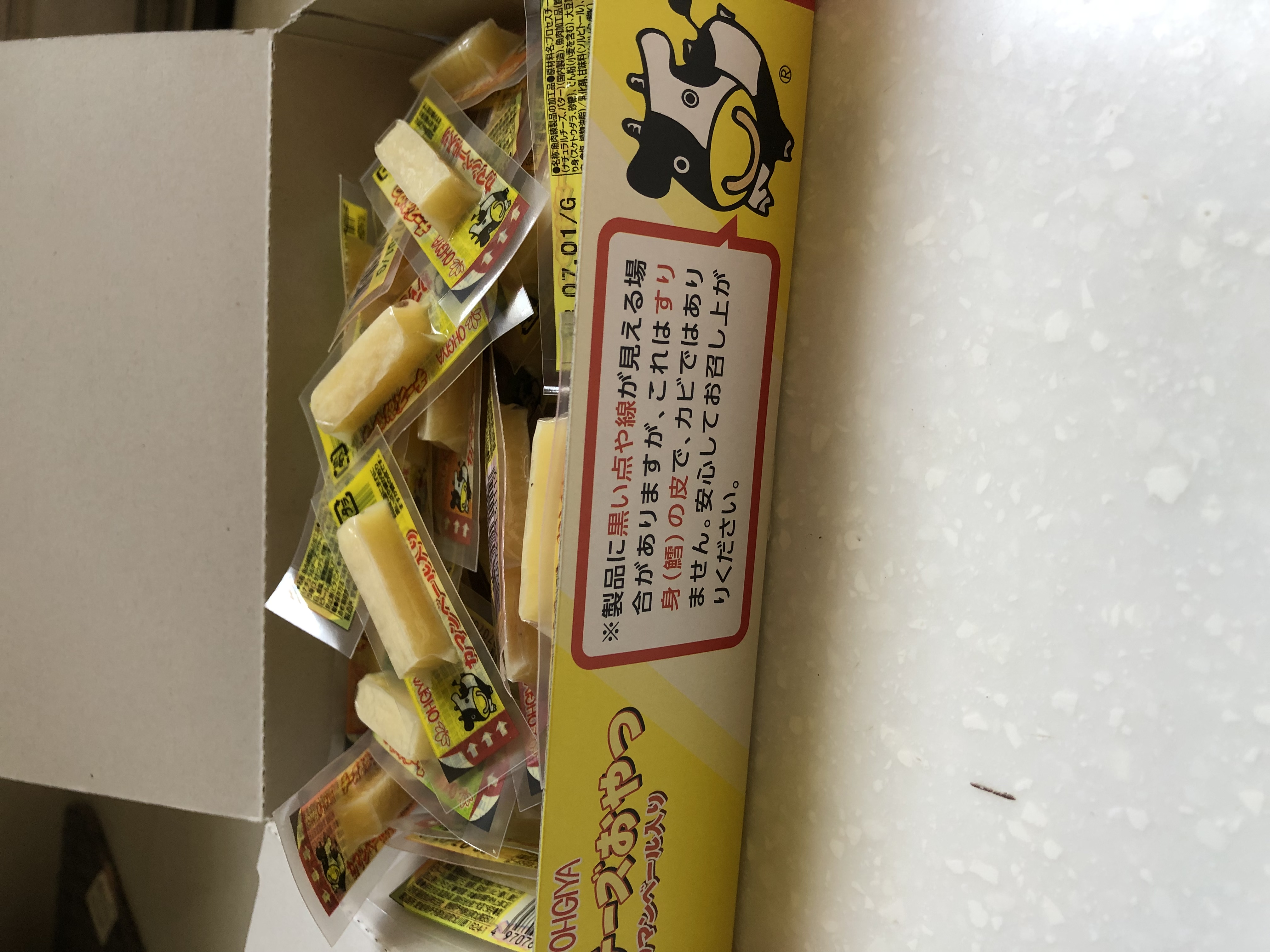 乾酪起司(巧達,豪達,加曼貝爾起司),鱈魚漿,玉米澱粉,小麥澱粉,奶油,食鹽,大豆蛋白,棕櫚油,磷酸鈉,多磷酸鈉,焦磷酸鈉(無水),磷酸二氫鈉(無水),甜味劑(D-山梨醇),L-麩酸鈉,5’-次黃嘌呤核磷酸二鈉,乳酸鈉,抗氧化劑(維生素E),防腐劑(己二烯酸鉀)
