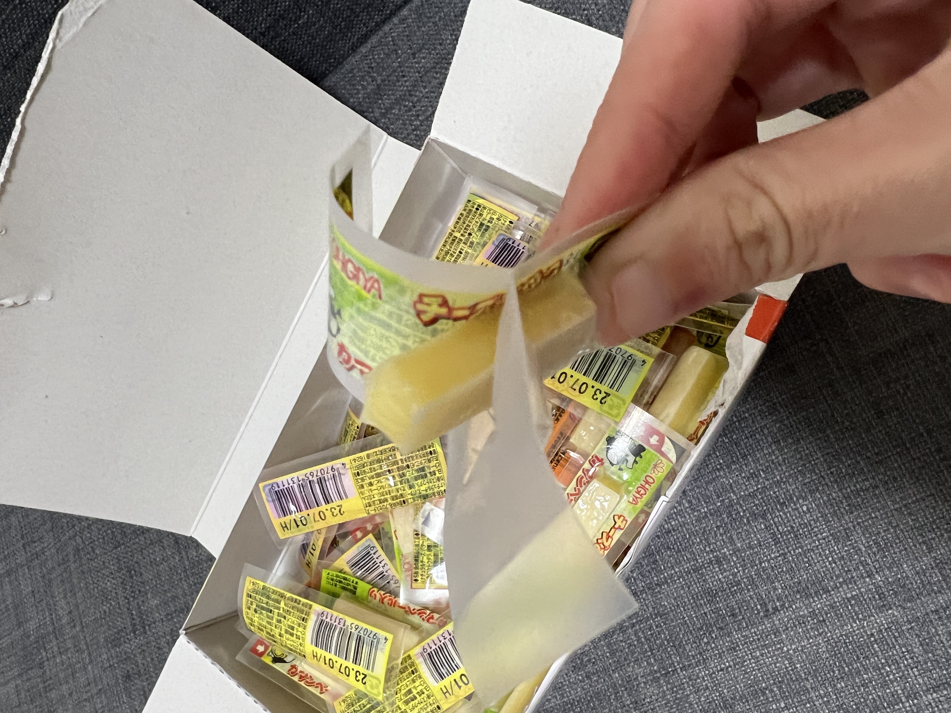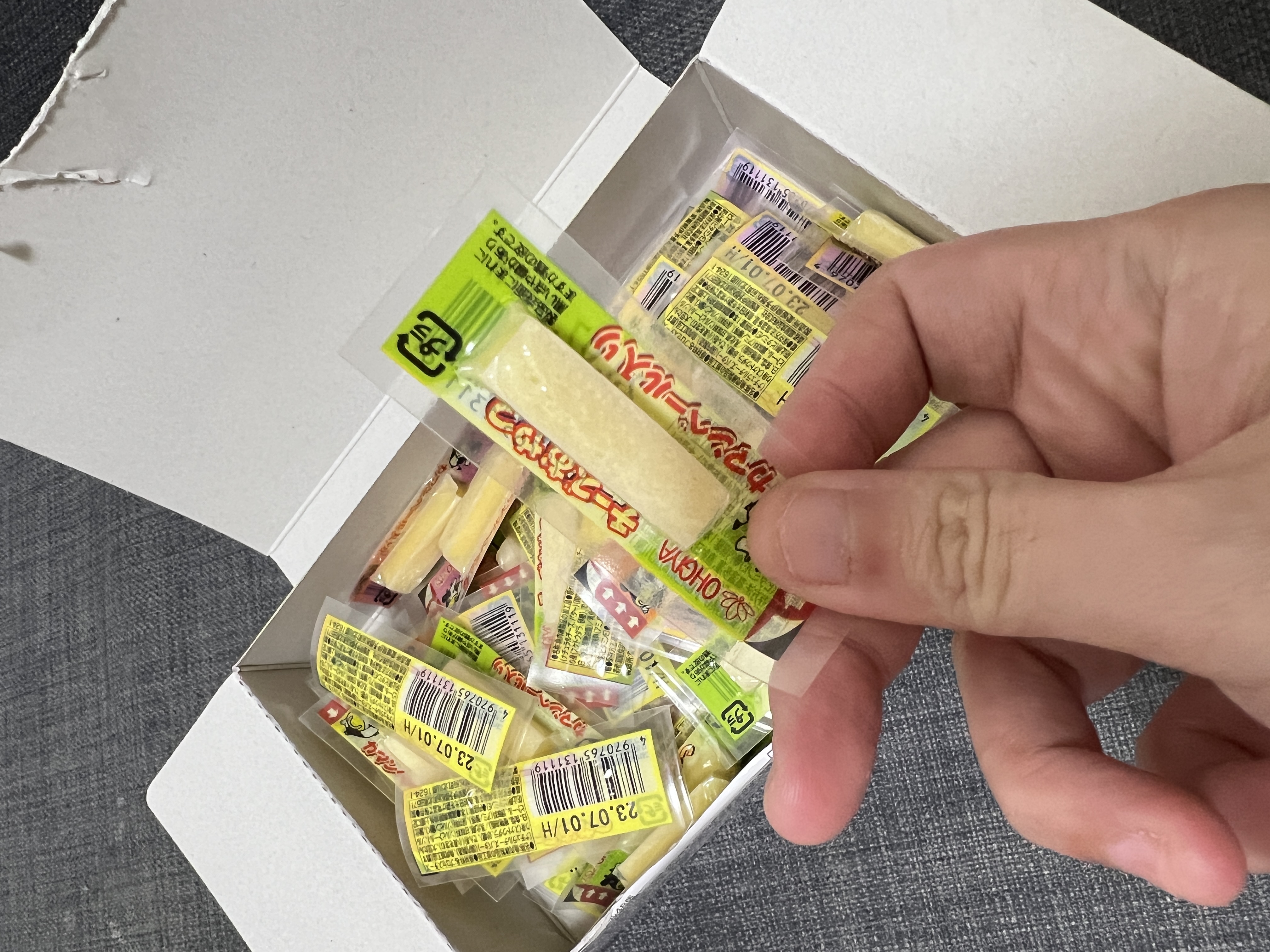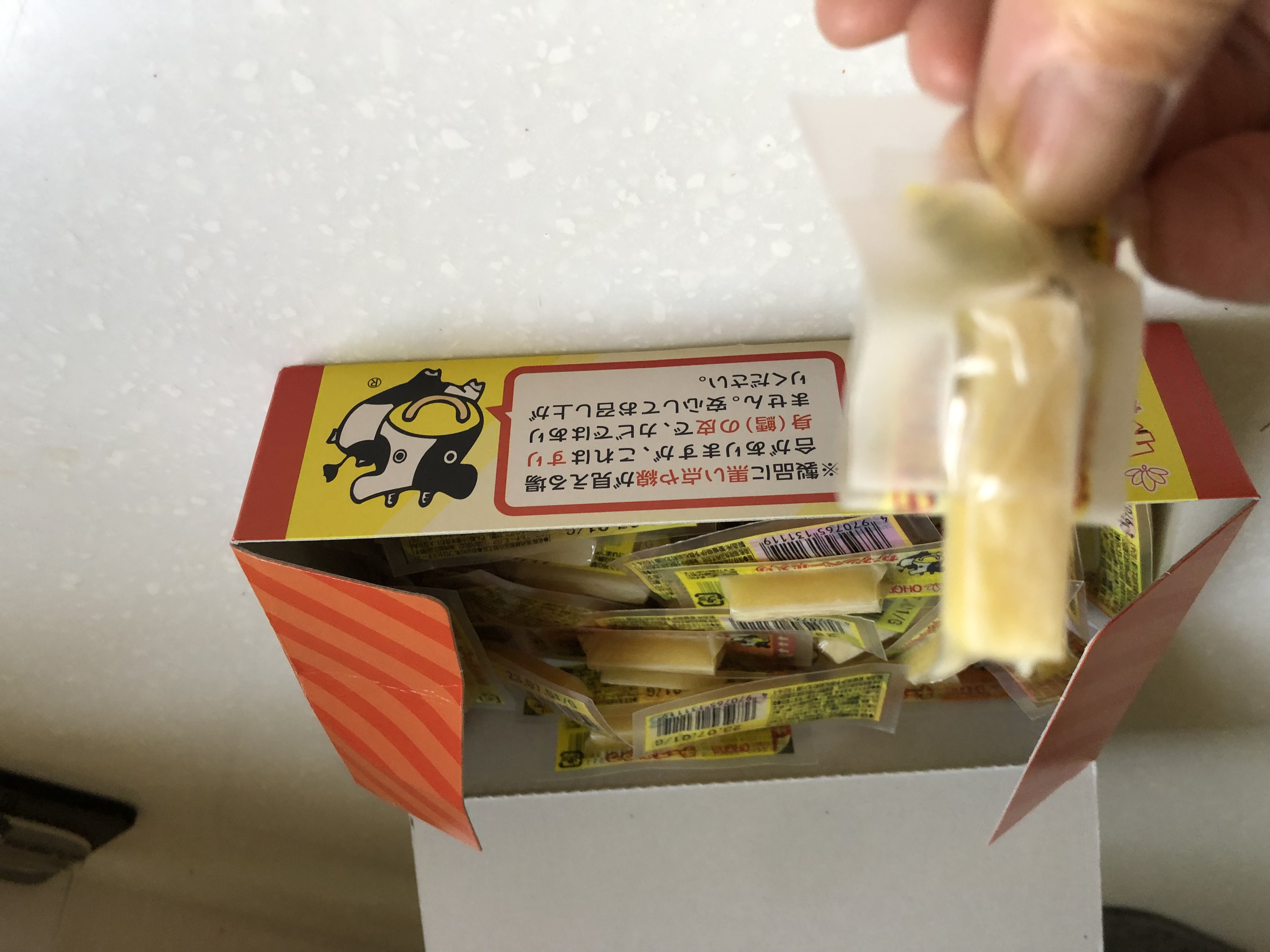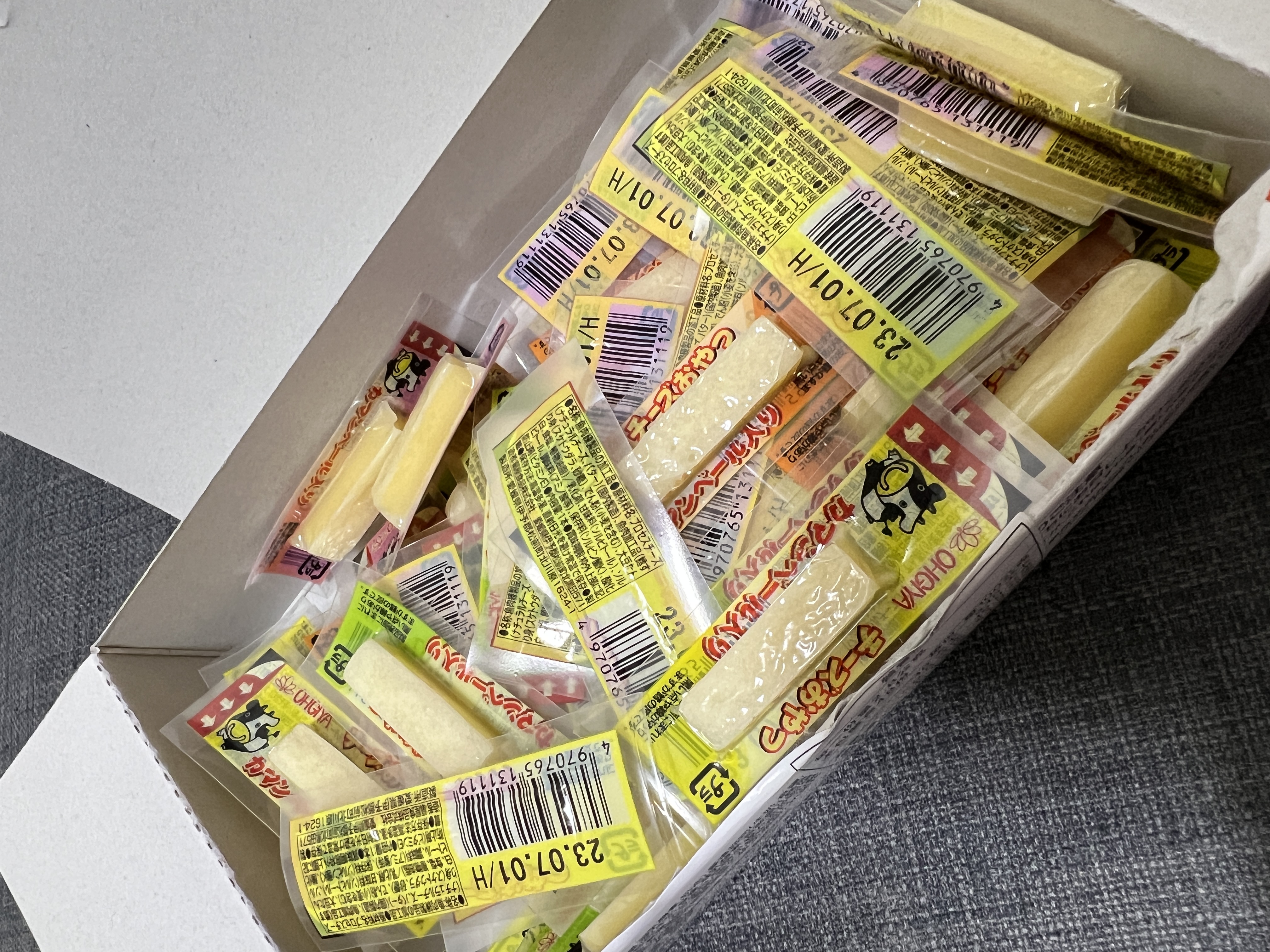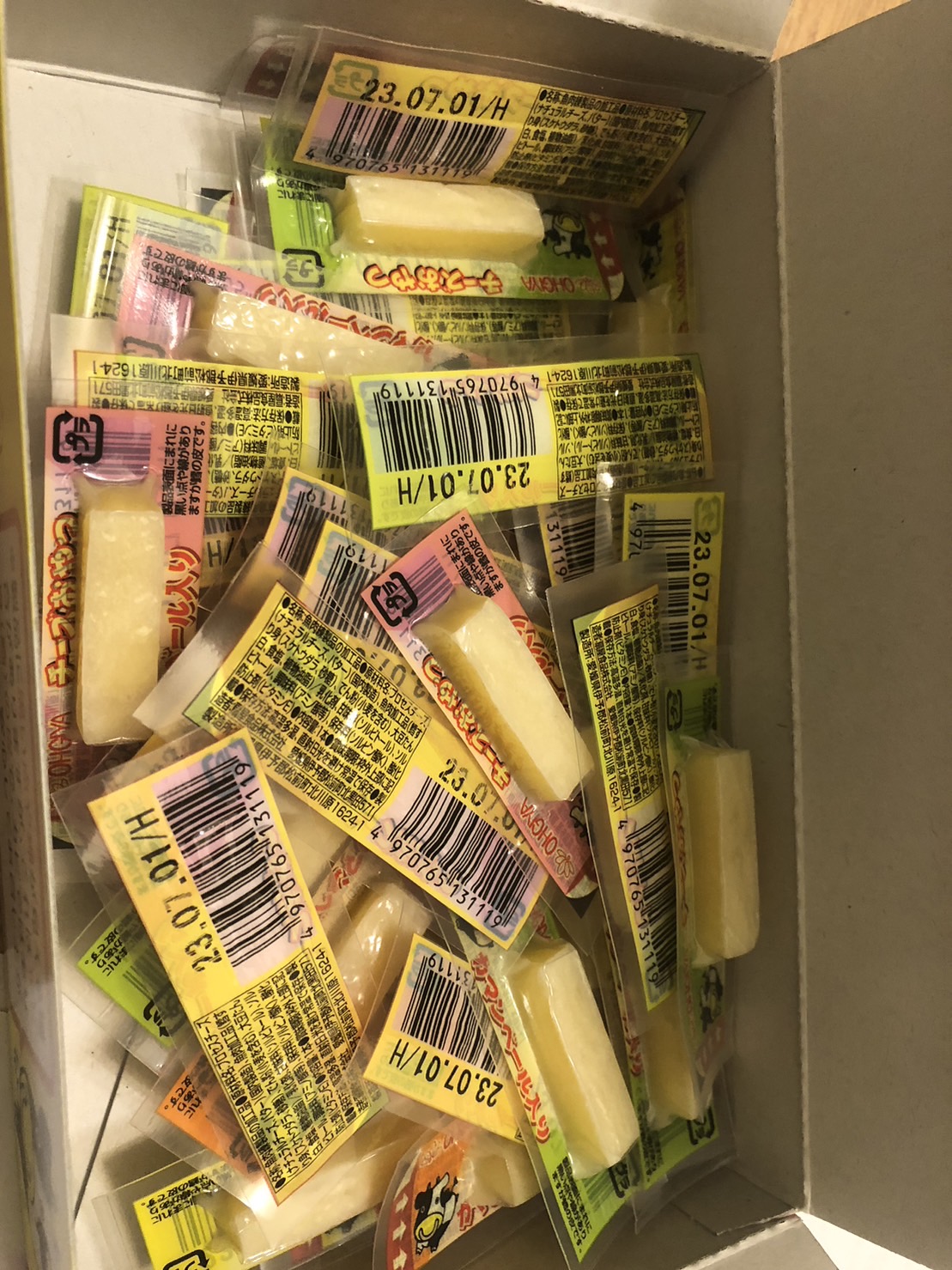 乾酪起司(巧達,豪達,加曼貝爾起司),鱈魚漿,玉米澱粉,小麥澱粉,奶油,食鹽,大豆蛋白,棕櫚油,磷酸鈉,多磷酸鈉,焦磷酸鈉(無水),磷酸二氫鈉(無水),甜味劑(D-山梨醇),L-麩酸鈉,5’-次黃嘌呤核磷酸二鈉,乳酸鈉,抗氧化劑(維生素E),防腐劑(己二烯酸鉀)