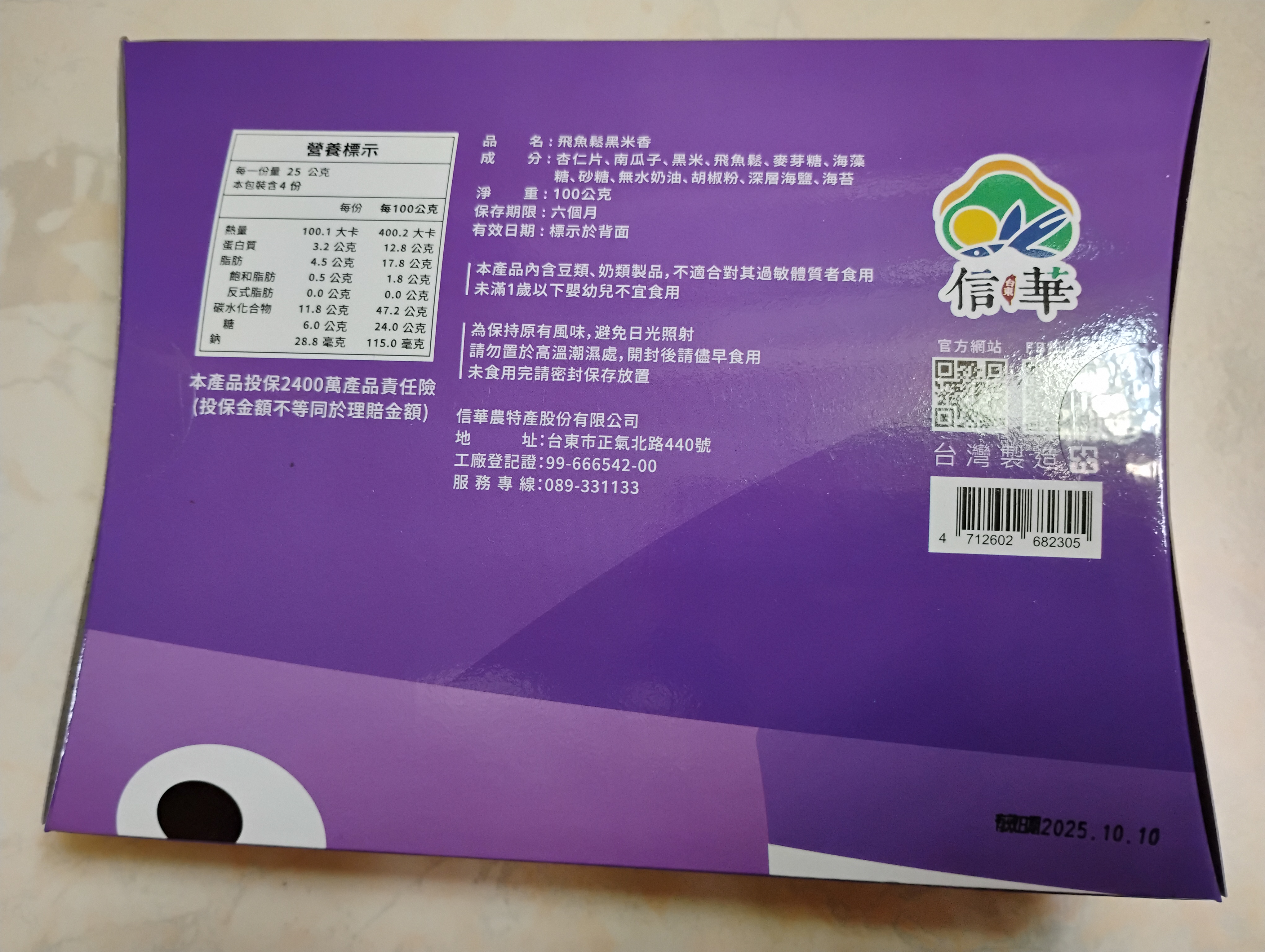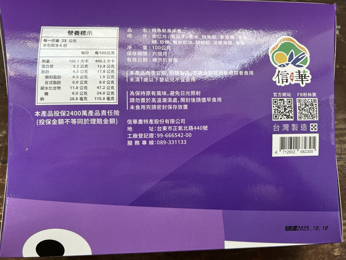 回列表 信華食品 飛魚鬆黑米香 一同回味兒時記憶 市價150元 (免費申請) 所需等級 一般會員以上 所需學分 50 體驗份數 15 關注人數 3967 申請人數 451 申請截止 品牌業者:信華農特產股份有限公司 負責廠商 信華農特產股份有限公司 廠商地址 台東市正氣北路440號 產地 台灣 試用產品規格 100g/包 食品業者登錄字號 V-112900701-00000-9 心得分享 商品介紹 商品成分 使用方法 注意事項 體驗名單 8.4 信華食品 飛魚鬆黑米香 口感層次豐富 8.4 小塊狀方便食用 8.6 獨立包裝易存放 9.1 美味 8.3 建議推薦 8.2 心得分享 14則 Allen Ho 鑽石達人 41歲 臺中市 2025/04/18 對信華食品 飛魚鬆黑米香留下評價 9 米香是許多人小時候的回憶,白米蹦得蓬蓬的再加入一些花生和麥芽糖黏在一起,就是好吃的一道傳統點心了。這次體驗一個極為創新的產品,以黑米取代白米或糙米,以南瓜子和杏仁片取代了花生,整體的黑米香不僅質感提升,營養也提升了不少,另外還加入了台東特產-飛魚鬆,讓黑米香有不同層次的味道,剛入口是飛魚鬆的鹹味與海鮮香氣,再來就是堅果香以及米香甜味,裡面的黑米香切的小小的好入口,又是獨立小包裝不怕吃不完而導致受潮而影響之後的食用意願 李佩臻 銀食達人 39歲 臺中市 2025/04/18 對信華食品 飛魚鬆黑米香留下評價 10 很開心獲選為試用者名單,超喜歡魚鬆類的食品,這個信華飛魚鬆黑米香,裡面有10小包獨立包裝很方便保存不用擔心受潮,口感變質的問題,外包裝非常特別可愛,左右邊是內縮的對折,包裝看起來膨膨的,很適合做為節日送禮,或者探訪親戚朋友的伴手禮,米香包裝打開能看到外層裹上的魚鬆,一口咬下,口感層次非常豐富,有米果堅果,海苔,魚鬆,這種多層次的口感在嘴巴裡咀嚼,非常適合嘴饞的夥伴,泡杯熱茶,當點心或下午茶,綜合食用感覺是道偏鹹味類的零食,這個感覺還是比較健康的不用怕貪嘴甜食過後,增加身體的負擔,超解饞,超喜歡,超推薦 蔡欣妤 鑽石達人 32歲 臺南市 2025/04/19 對信華食品 飛魚鬆黑米香留下評價 7 這次品嚐的是飛魚鬆米香,首先必須讚賞一下它的外盒設計,整體包裝相當精緻,盒內為獨立包裝設計,無論是自己慢慢享用還是外出攜帶都非常方便且衛生。打開包裝後,可以看到一塊可以一口塞進嘴巴裡的方正米香,吃起來口感酥脆,甜度也很剛好,不會讓人覺得膩。不過比較可惜的是,飛魚鬆的味道並不明顯,甚至有點難以察覺,如果沒有特別告知成分,可能很難聯想到裡面有加入飛魚鬆。此外,米香本身的味道也與傳統記憶中的米香有所差異,少了一點香氣和熟悉的風味。整體來說,這款飛魚鬆米香在外觀與便利性方面表現亮眼,但在味道層次上略顯平淡,不過如果喜歡低甜度的朋友,或許會覺得它是一款還不錯的零食選擇。 黃靖予 金食達人 34歲 新北市 2025/04/20 對信華食品 飛魚鬆黑米香留下評價 9 包裝很可愛,雖然內容物只有十包,但每塊大小不算太小,大概兩口的量,作為簡單伴手禮或拜拜用的禮品還蠻適合的,定價有點小貴,但如果有機會配合商場促銷打個八五折就會願意回購。米香相當酥脆而且不黏牙,雖然主要成分是杏仁、南瓜子和黑米,但飛魚鬆的魚香還是相當明顯,鹹甜鹹甜的吃起來不膩口,也不突兀,而且並不會有魚腥味,唯有要小心不要太好吃吃太多。大概是因為口感和氣味考量,但看到成分表不是用最便宜的南瓜子或腰果充分量感覺挺好的。獨立包裝很好保存,想帶一兩顆出門當點心也非常方便,是會推薦人購買的產品。 July 鑽石達人 49歲 臺中市 2025/04/21 對信華食品 飛魚鬆黑米香留下評價 9 本次試吃的[飛魚鬆黑米香]是一款兼具統與創新的零食。切分成小塊的黑米香採獨立小包裝,一盒共有10小塊。每塊的大小適中,比十元硬幣略大些,大約兩、三口可吃完。從透明的獨立小包裝可清楚看到黑米香的組成豐富,有綠色的葵瓜子、米白色杏仁片、海苔、爆開後從裂紋中透出米色內裡的黑米、飛魚鬆則是黏合在這些堅果與黑米香之間。無論是外觀或吃起來的口感,[ 飛魚鬆黑米香]都介於傳統米香與近期流行的堅果穀物棒之間。吃起來的口感是酥鬆多於硬脆,且越咬越香,對牙口較弱的人也不至於造成太多負擔,雖然使用麥芽糖與海藻糖來黏合各種組成材料,但米香本身並不黏牙;口味上則是鹹甜交錯、層次豐富,雖然不算是重口味但調味平衡清爽,吃起來不易膩。從營養成分與熱量來看,每一獨立小包裝換算起來約10克,熱量40.02大卡、糖2.4公克、鈉11.5毫克,當成點心的話,每次吃兩到三個應該熱量還在可接受範圍。但含糖量還是稍高一些,較適合搭配無糖茶。相較於一般零食,[飛魚鬆黑米香]並非只有碳水化合物,每一小塊獨立包裝也都含1.28公克蛋白質與1.78公克的脂肪,也很適合上班族隨身攜帶,在來不及用餐時先墊墊胃,會比吃單純的甜食更合適。最後,在包裝上或許可以更精簡,因為已經有個別獨立小包裝了,似乎不需要在紙盒與獨立小包裝之間,又額外多加一個鋁箔袋包裝。另外,偶爾會咬到較硬的小型粒狀物,不太確定是否是黑米外殼爆香後的碎屑,咬食過程還是要留心。 陳則源 金食達人 45歲 新北市 2025/04/21 對信華食品 飛魚鬆黑米香留下評價 8 很開心這次有入選飛魚鬆黑米香的試吃,收到產品時,覺得包奘很簡單大方,不會過於花俏,打開盒子後,看到類似錫箔包裝的袋子,想說是不是為了可以保存久一點,所以採用這種材質,