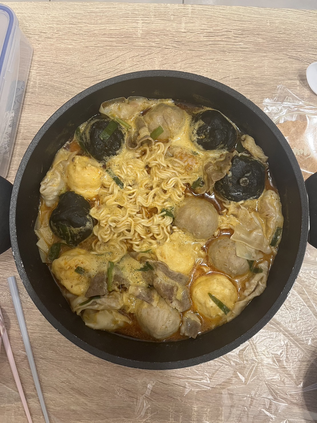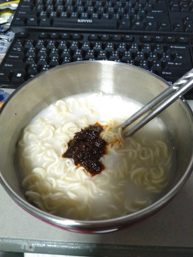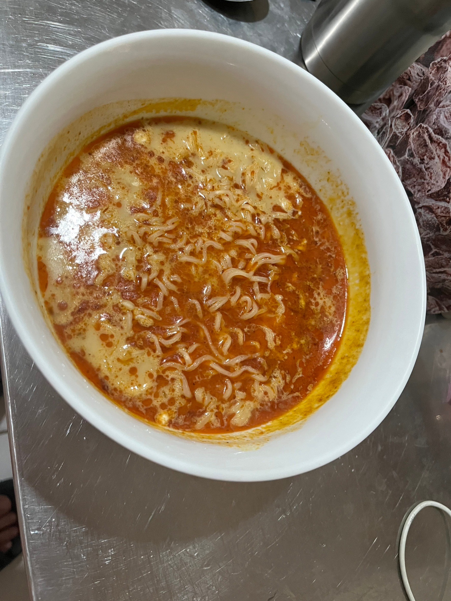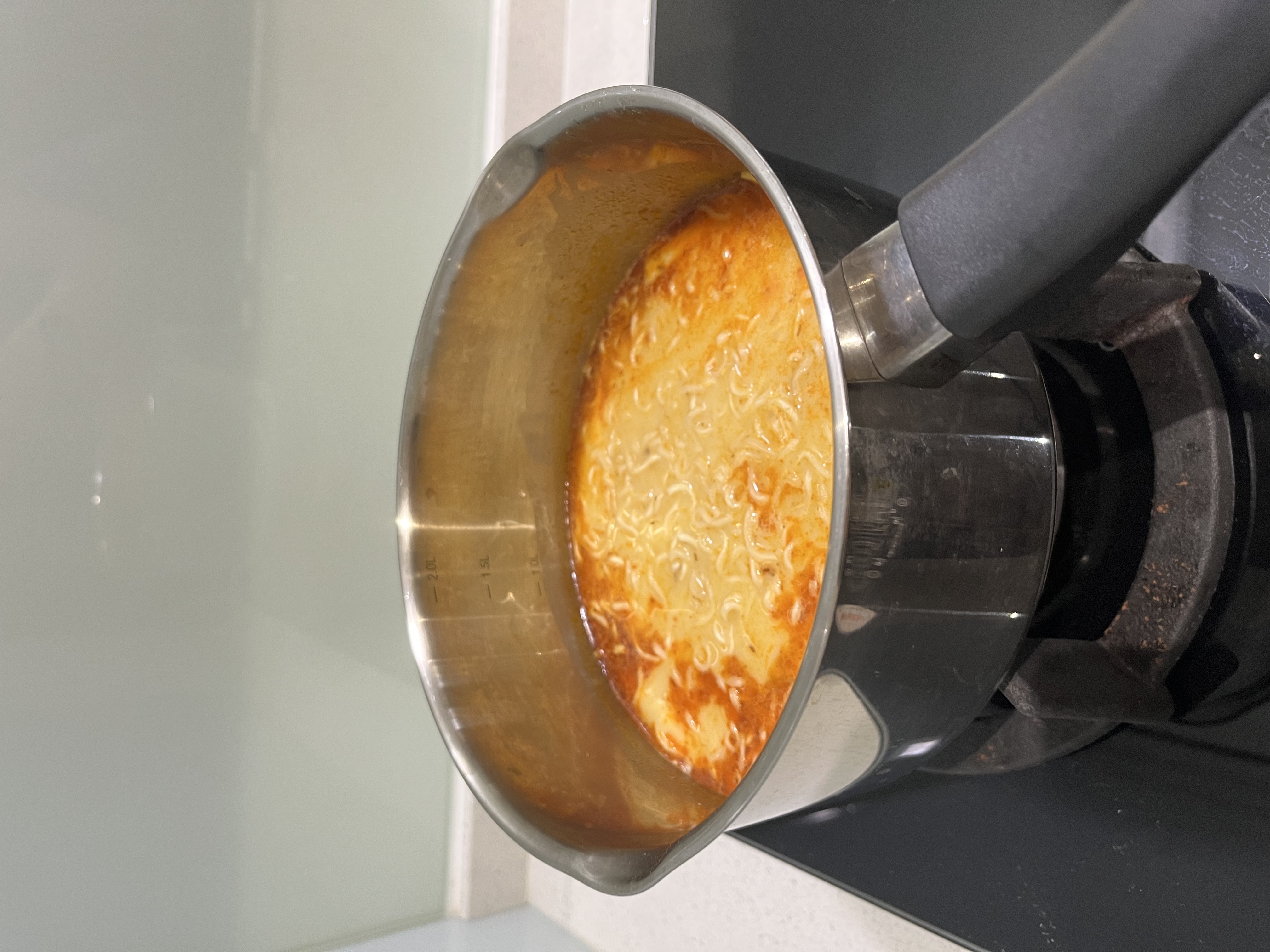 大約煮3分鐘,加入調味粉,奶精,辣椒醬慢慢攪拌。