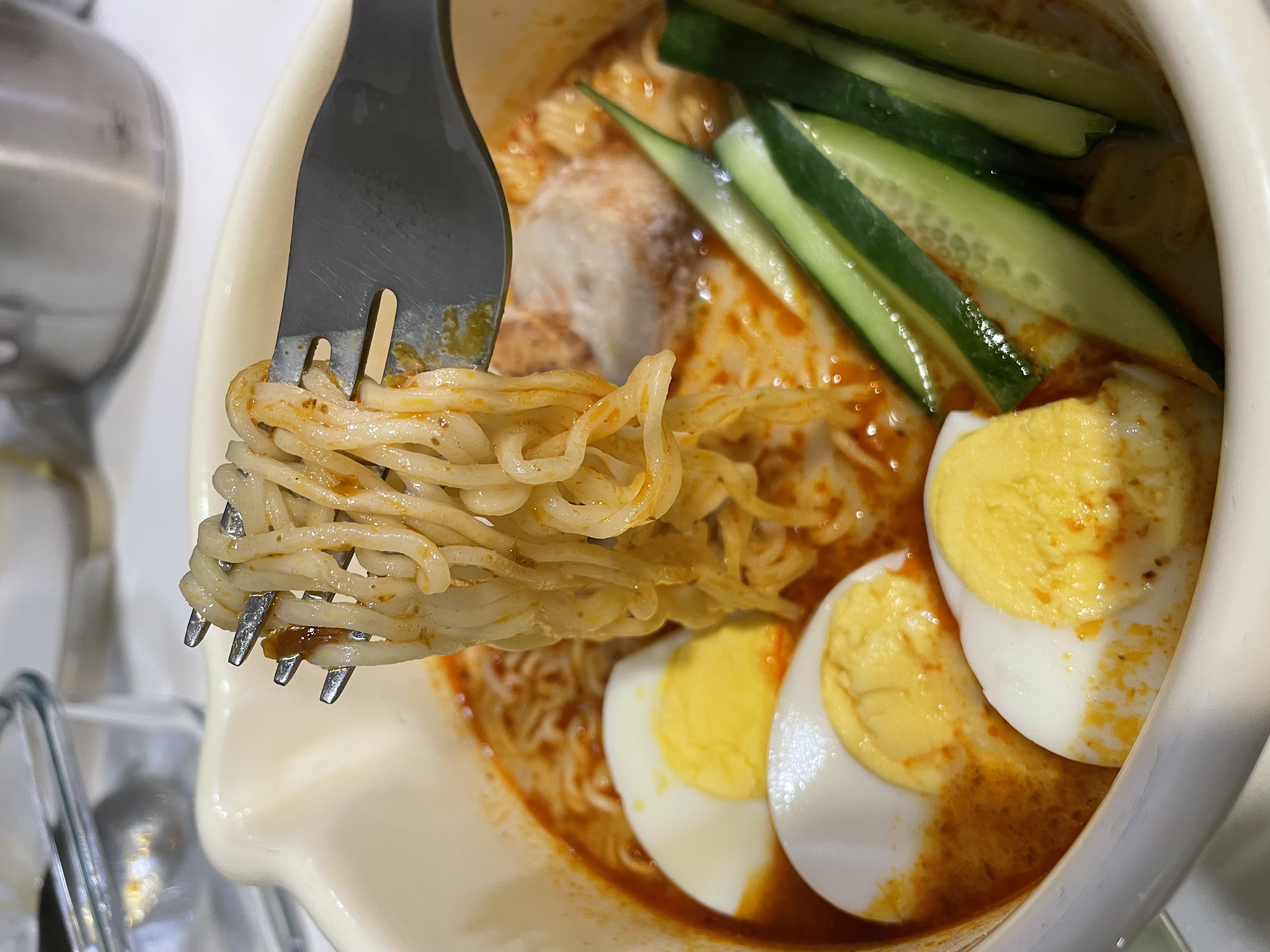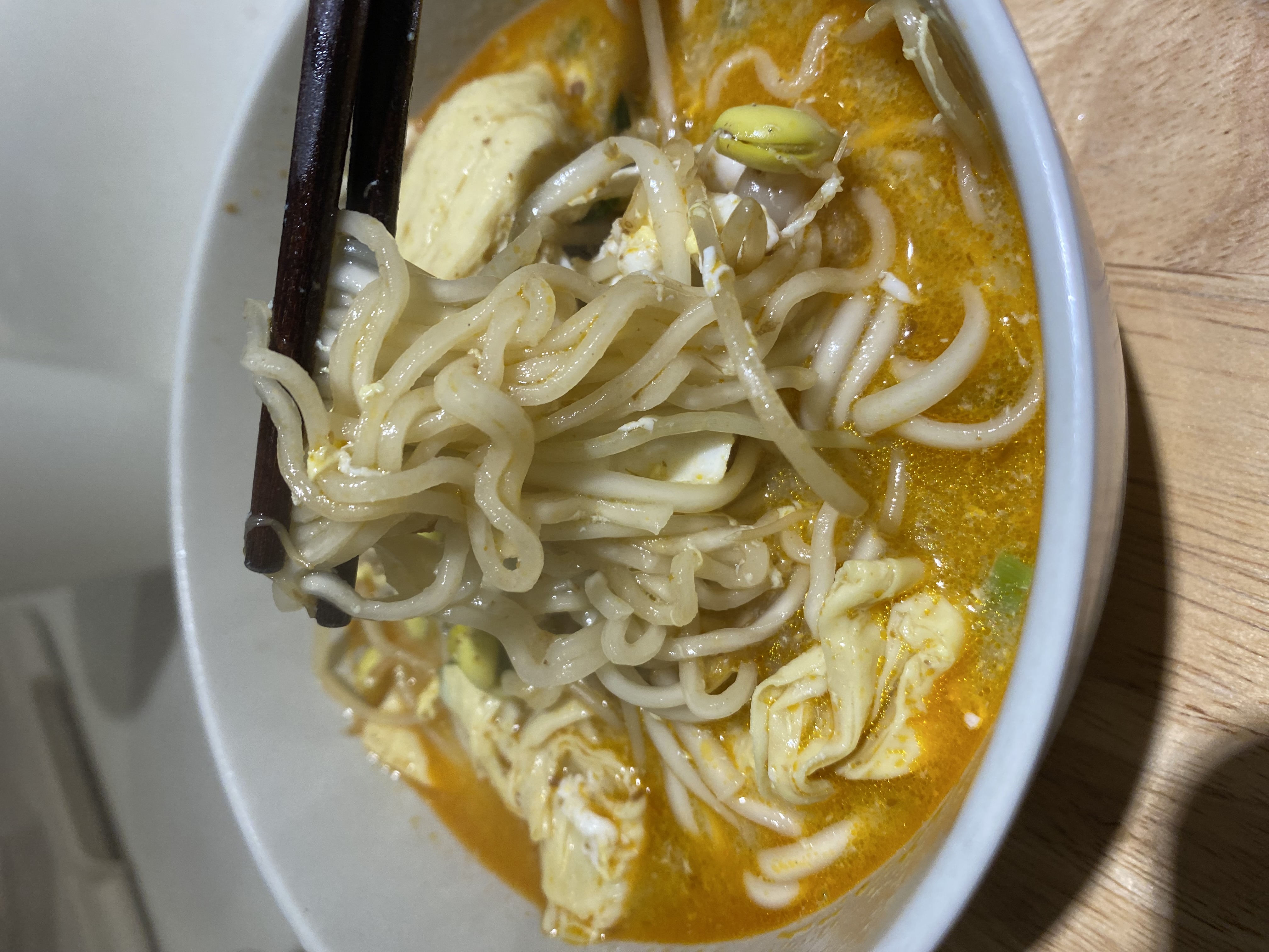 拌勻後即可享受美味的檳城白咖哩湯麵。