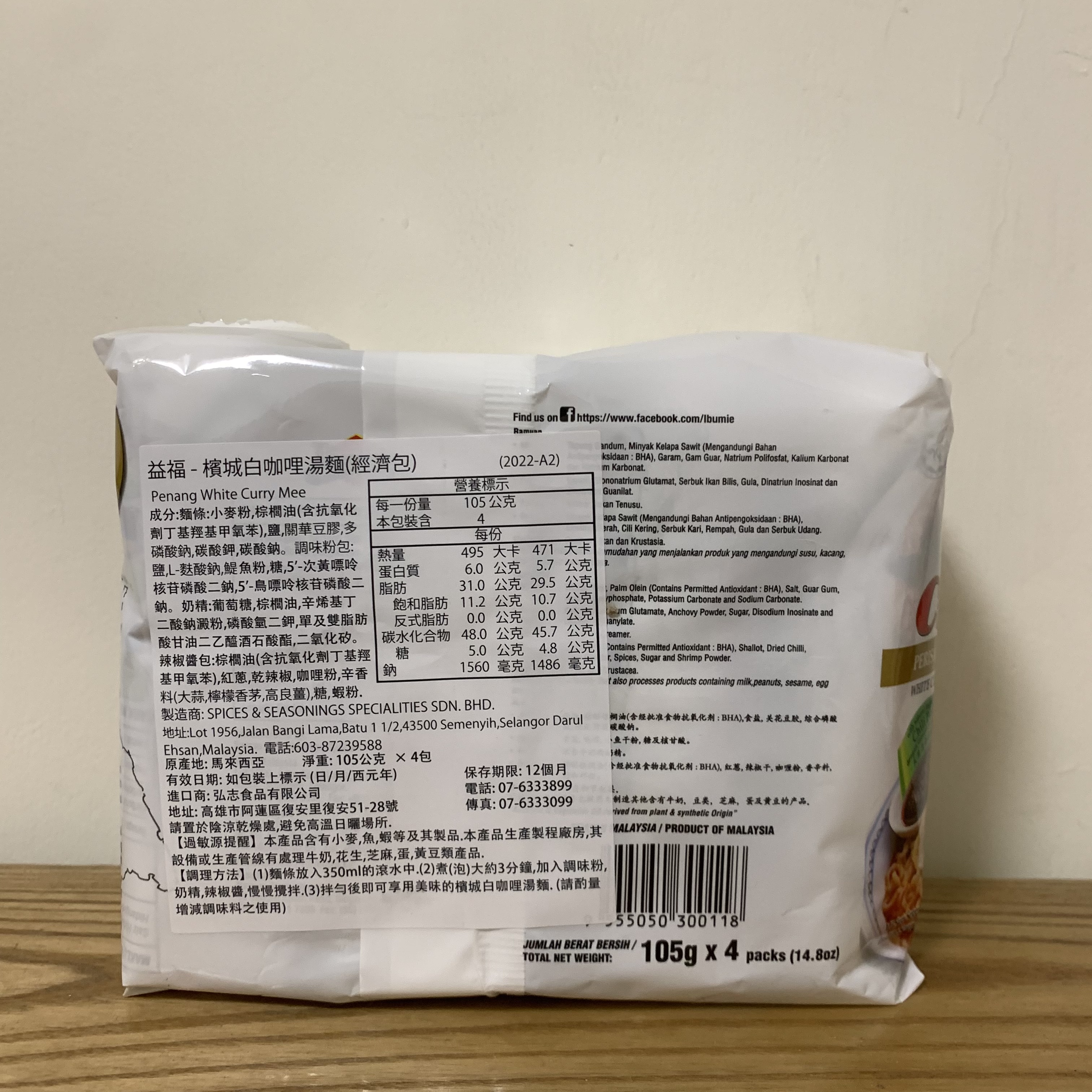 益福 檳城白咖哩湯麵 馬來西亞道地古早味 使用天然辛香料 口味獨特