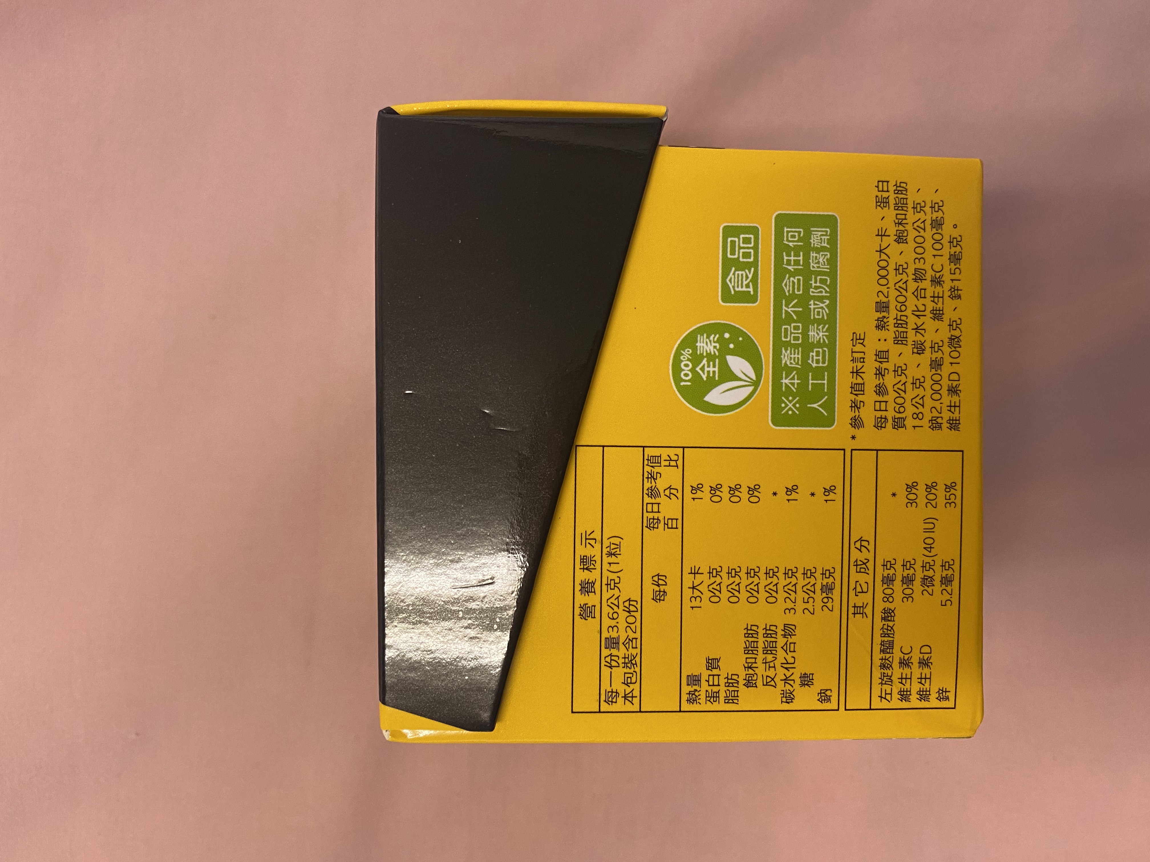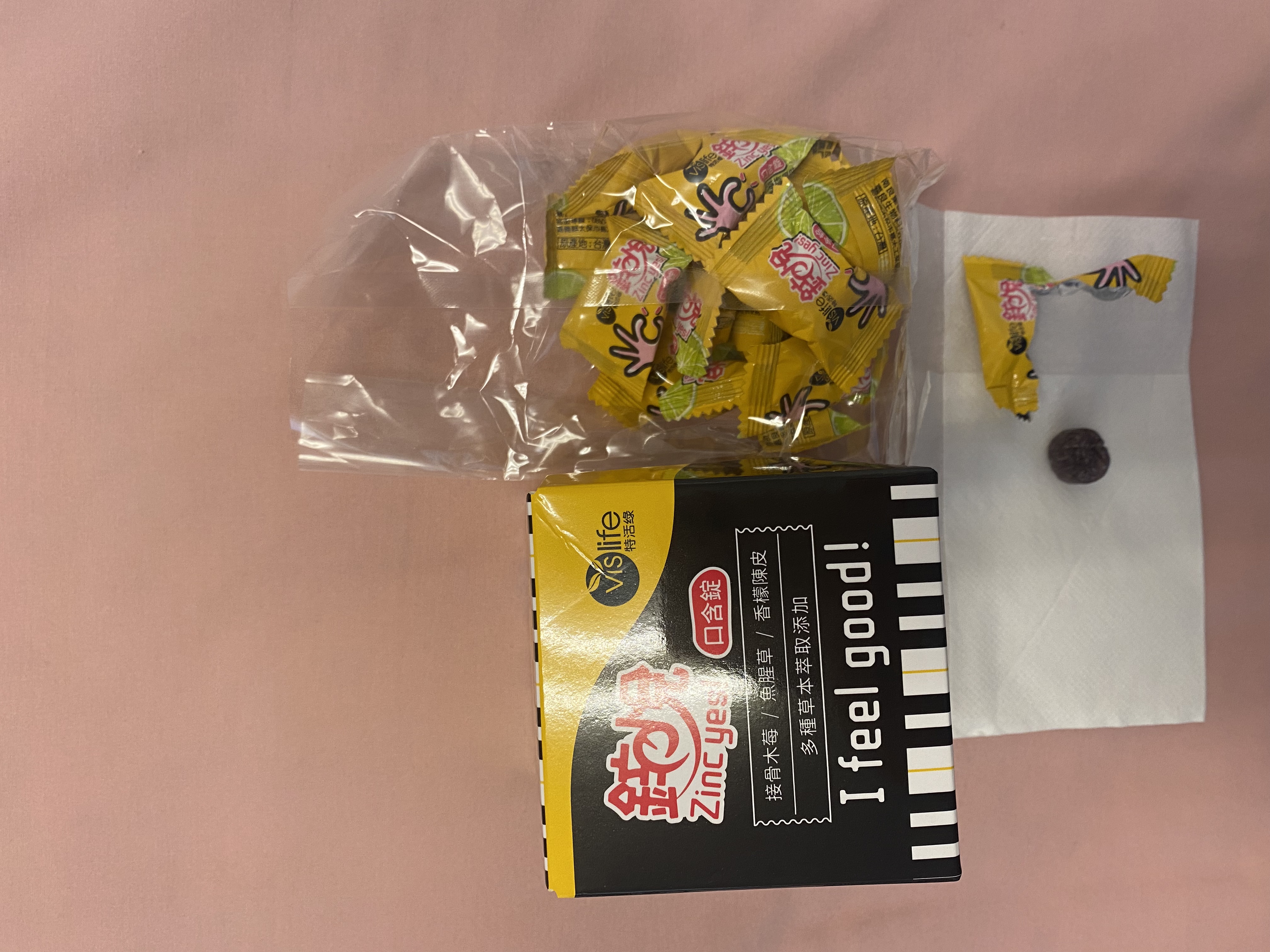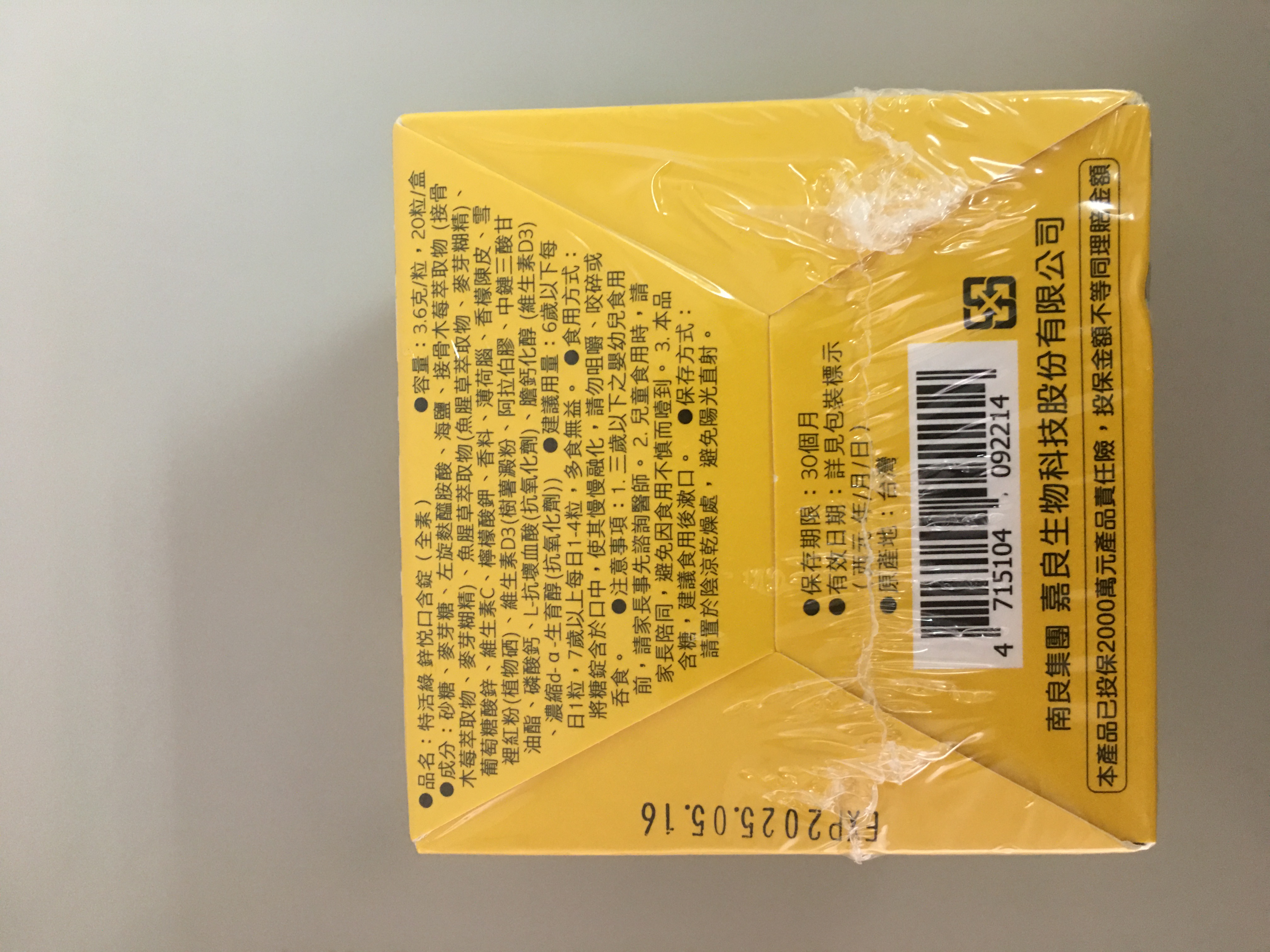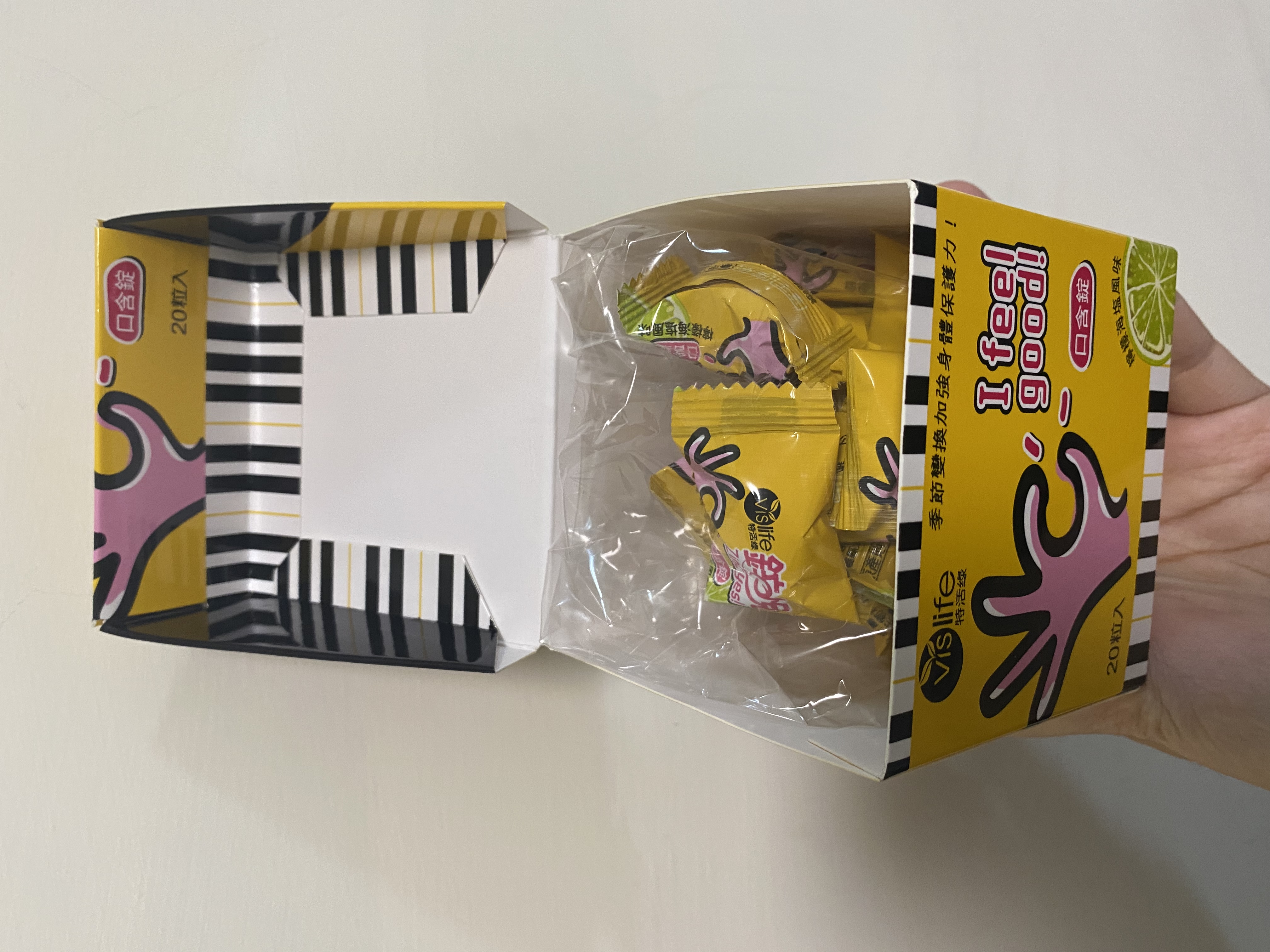 砂糖、麥芽糖、左旋麩醯胺酸、海鹽、接骨木莓萃取物 (接骨木莓萃取物、麥芽糊精)、魚腥草萃取物(魚腥草萃取物、麥芽糊精)、葡萄糖酸鋅、維生素C、檸檬酸鉀、香料、薄荷腦、香檬陳皮、雪裡紅粉(植物硒)、維生素D3(樹薯澱粉、阿拉伯膠、中鏈三酸甘油酯、磷酸鈣、L-抗壞血酸(抗氧化劑)、膽鈣化醇 (維生素D3)、濃縮d-α-生育醇(抗氧化劑))