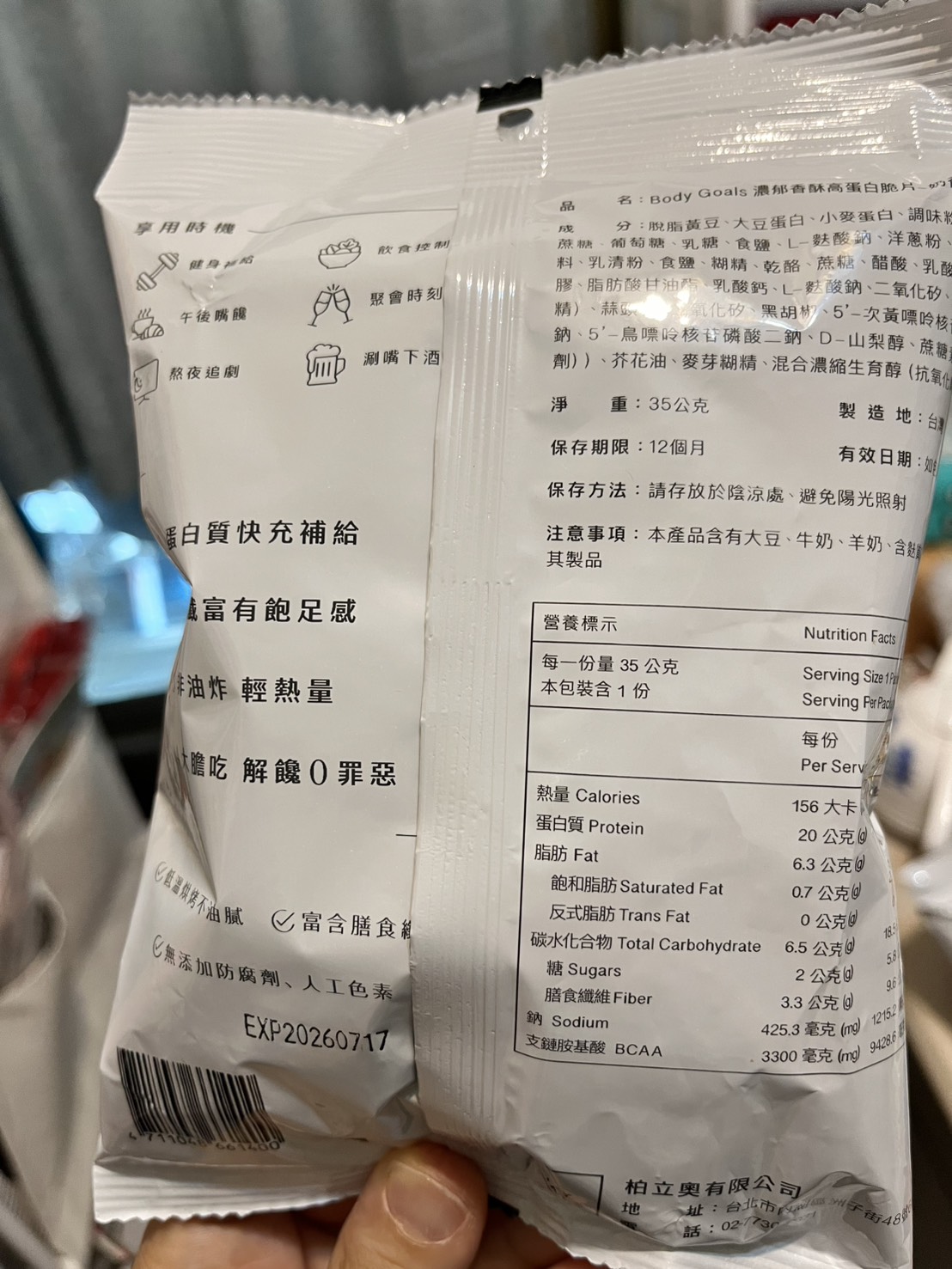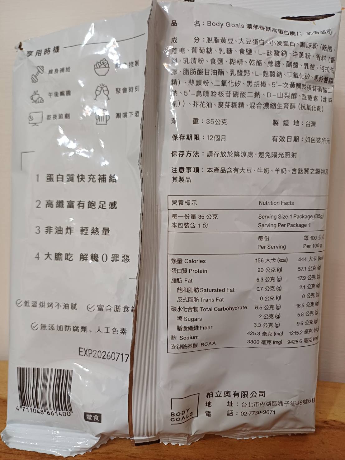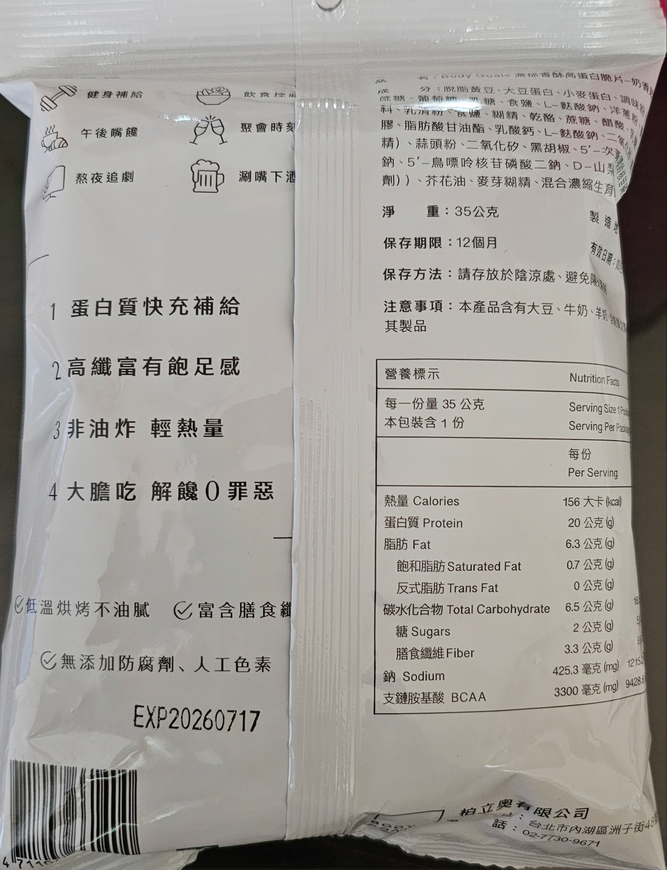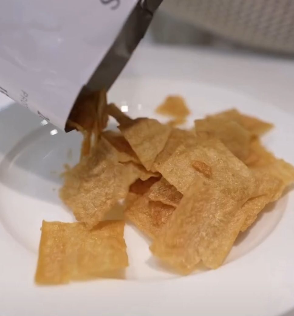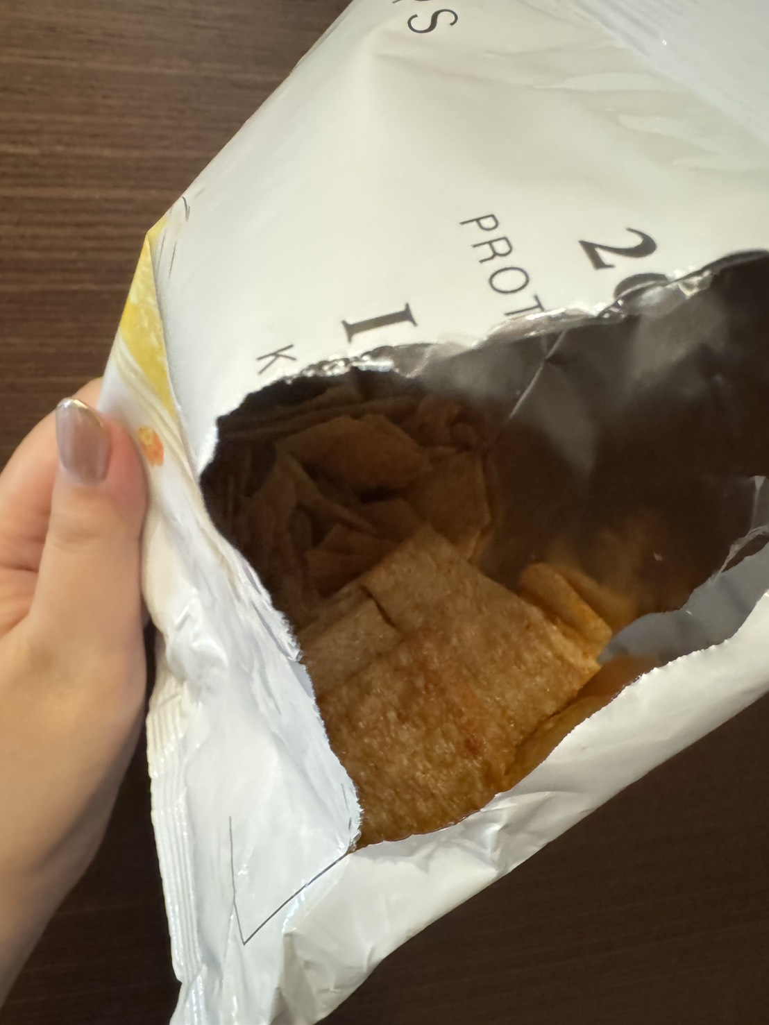脫脂黃豆、大豆蛋白、小麥蛋白、調味粉(乾酪、蔗糖、葡萄糖、乳糖、食鹽、L-麩酸鈉、洋蔥粉、香料(香料、乳清粉、食鹽、糊精、乾酪、蔗糖、醋酸、乳酸、阿拉伯膠、脂肪酸甘油酯、乳酸鈣、L-麩酸鈉、二氧化矽、馬鈴薯糊精)、蒜頭粉、二氧化矽、黑胡椒、5’-次黃嘌呤核苷磷酸二鈉、5’-鳥嘌呤核苷磷酸二鈉、D-山梨醇、蔗糖素(甜味劑))、芥花油、麥芽糊精、混合濃縮生育醇(抗氧化劑)