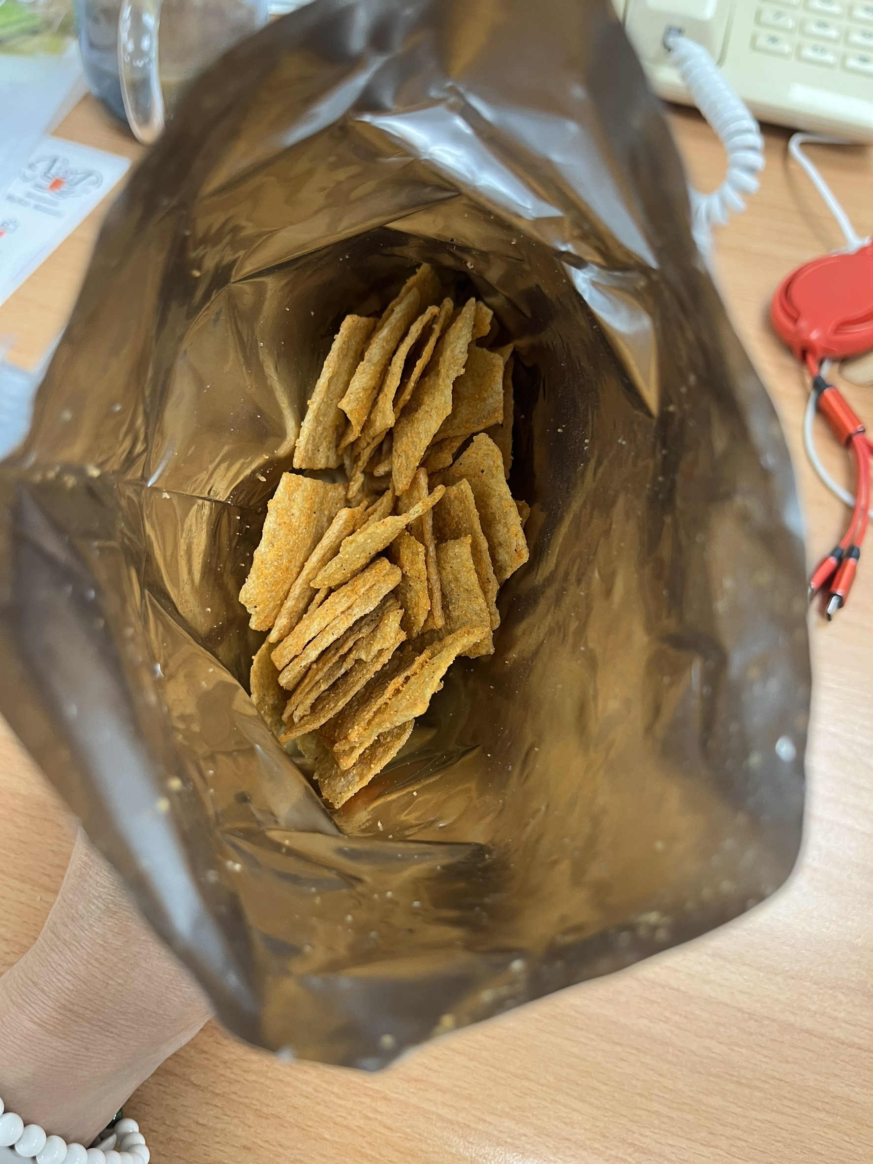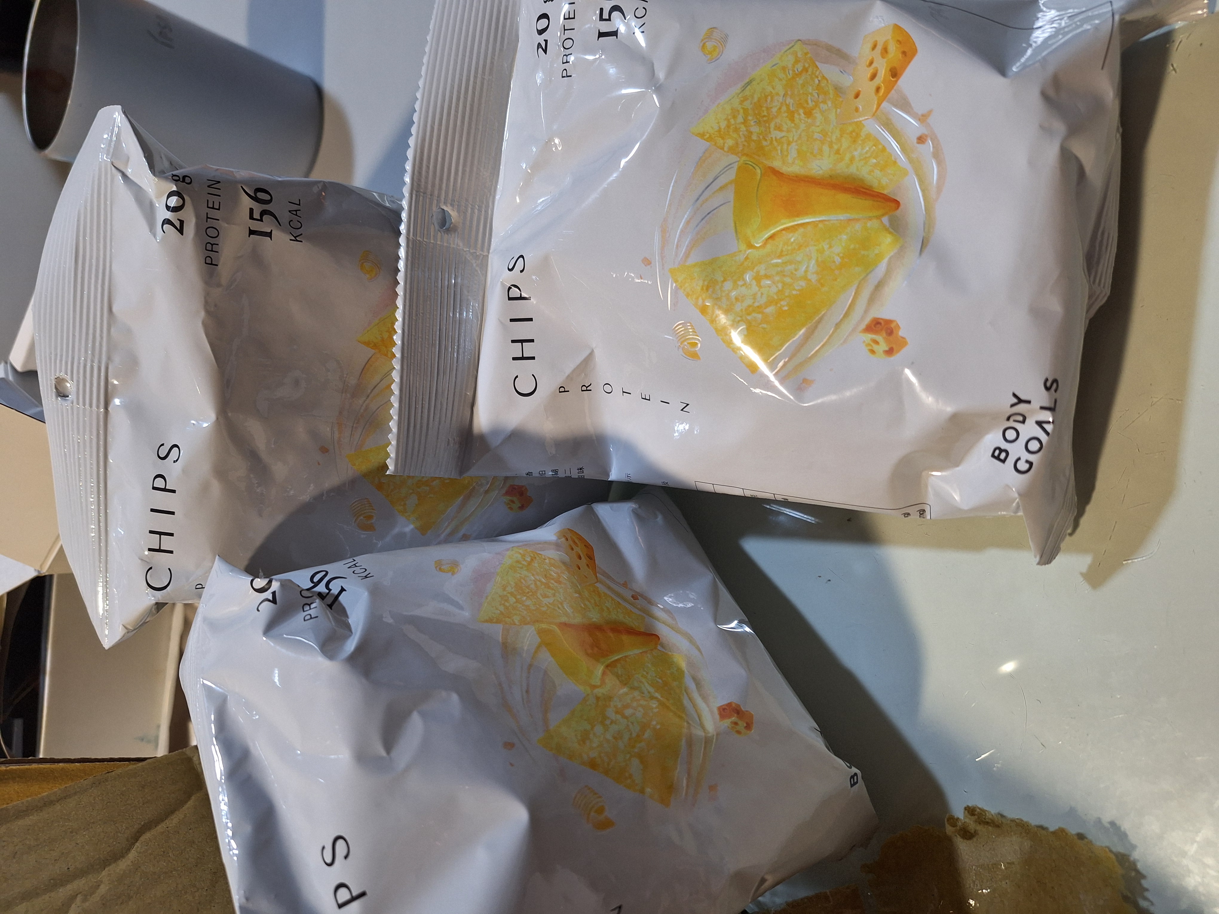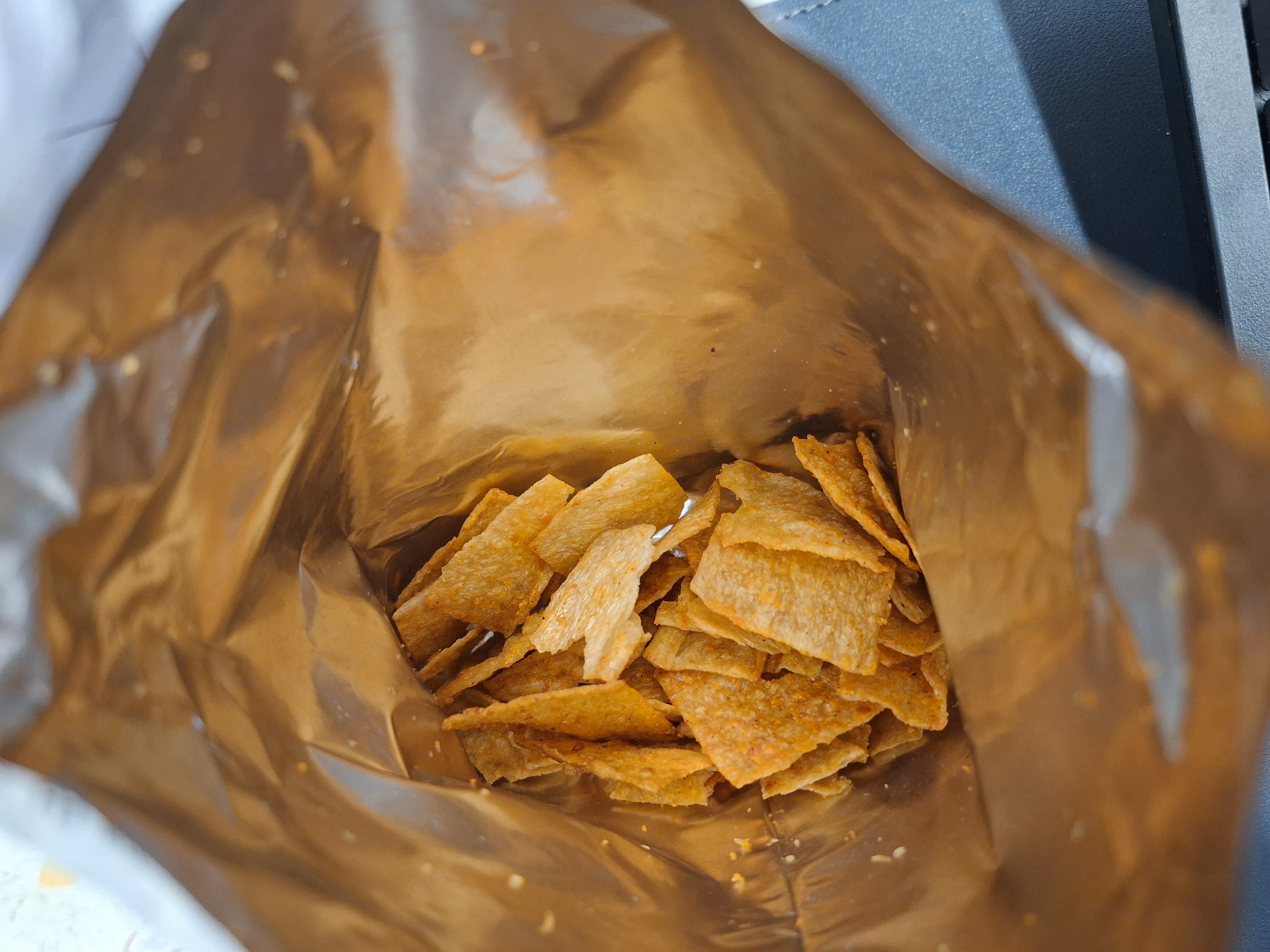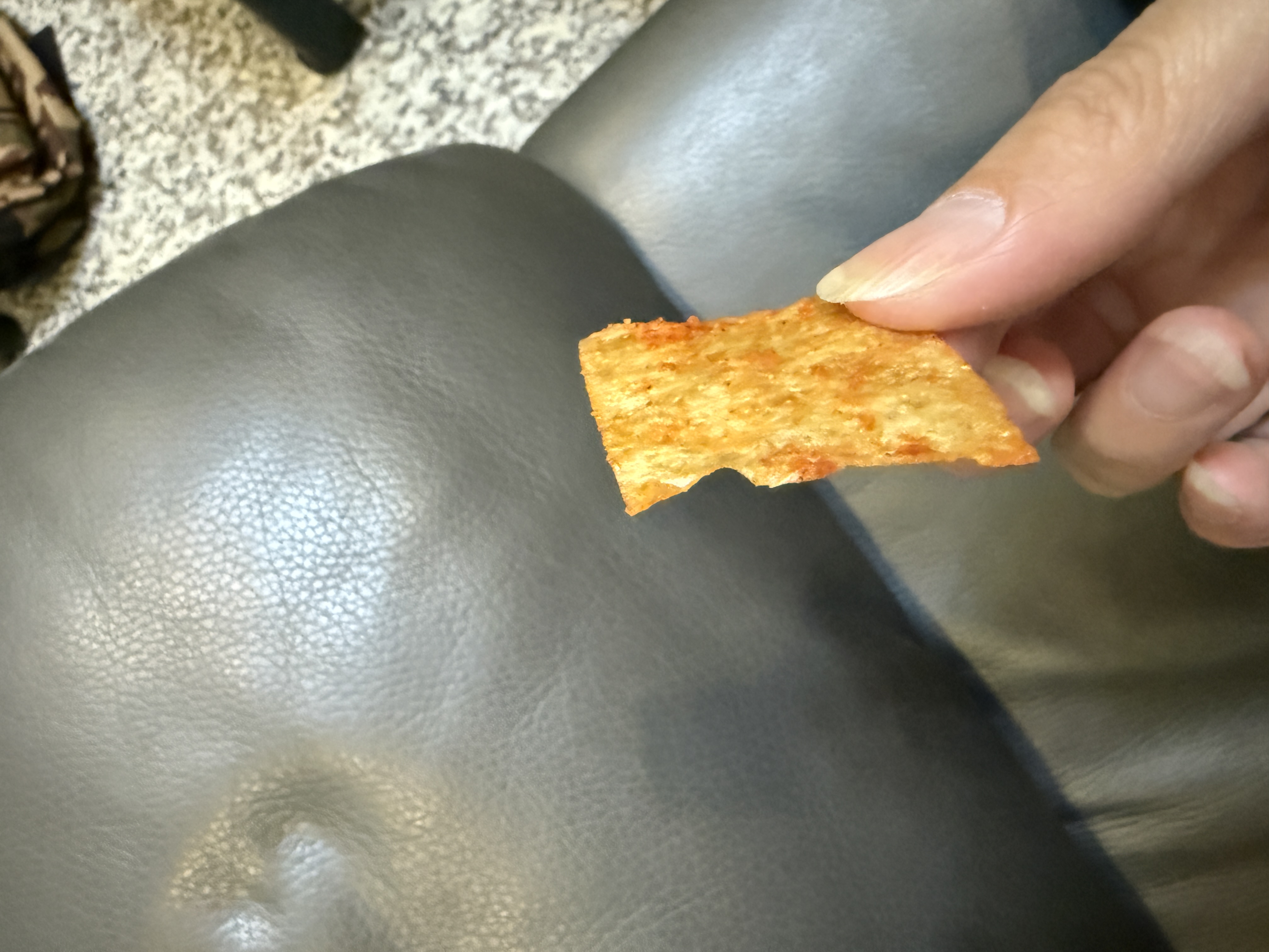脫脂黃豆、大豆蛋白、小麥蛋白、調味粉(乾酪、蔗糖、葡萄糖、乳糖、食鹽、L-麩酸鈉、洋蔥粉、香料(香料、乳清粉、食鹽、糊精、乾酪、蔗糖、醋酸、乳酸、阿拉伯膠、脂肪酸甘油酯、乳酸鈣、L-麩酸鈉、二氧化矽、馬鈴薯糊精)、蒜頭粉、二氧化矽、黑胡椒、5’-次黃嘌呤核苷磷酸二鈉、5’-鳥嘌呤核苷磷酸二鈉、D-山梨醇、蔗糖素(甜味劑))、芥花油、麥芽糊精、混合濃縮生育醇(抗氧化劑)