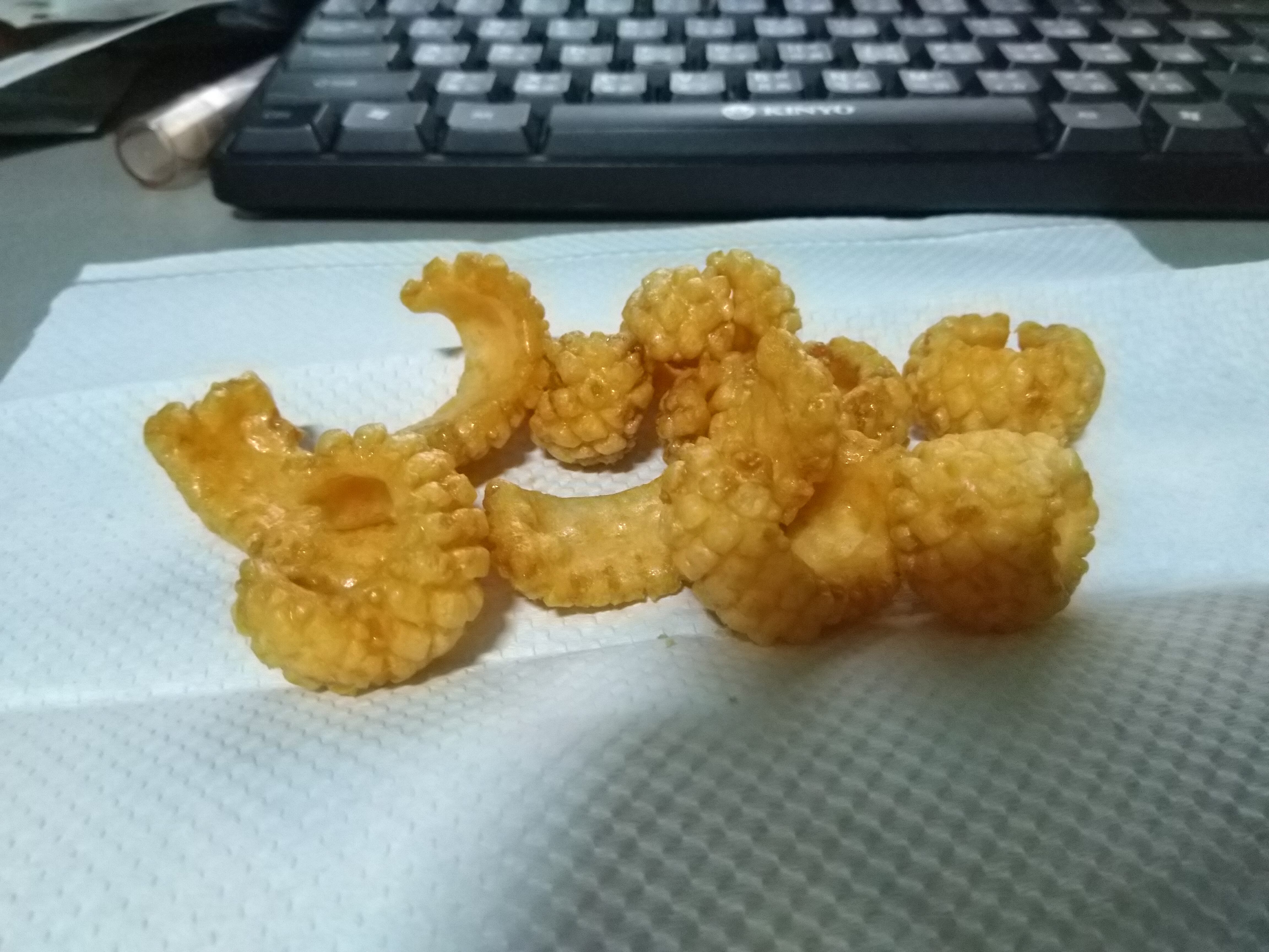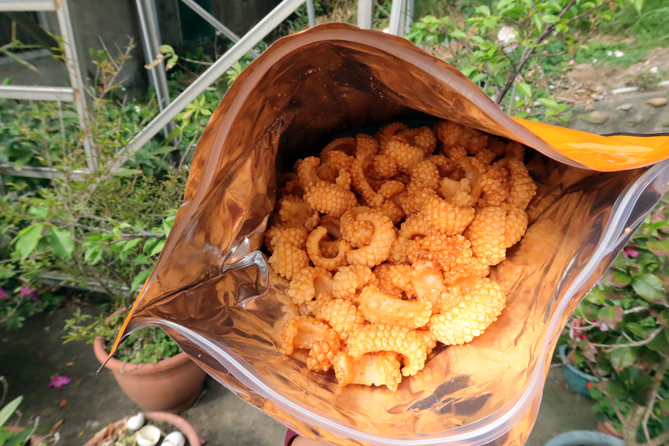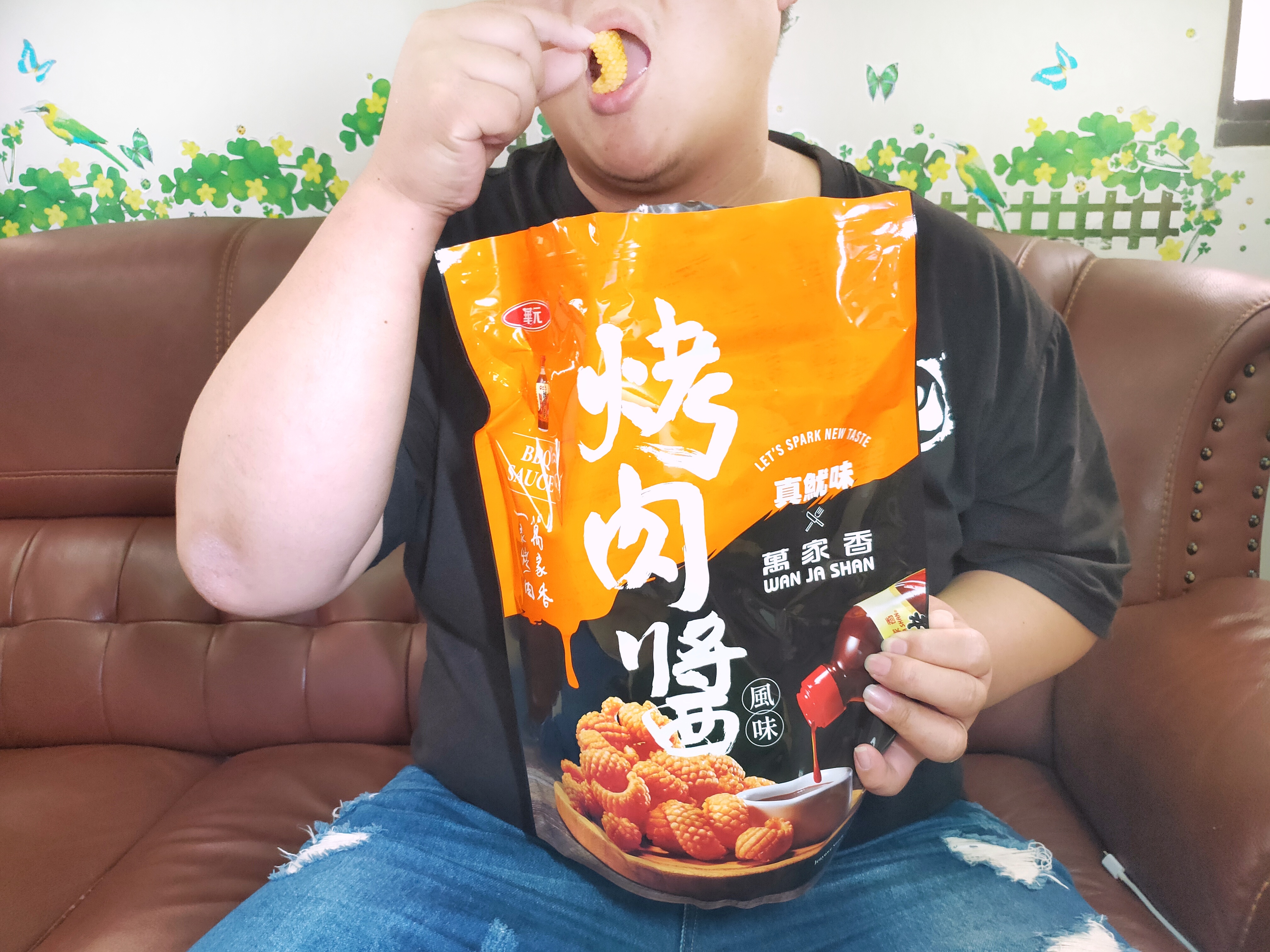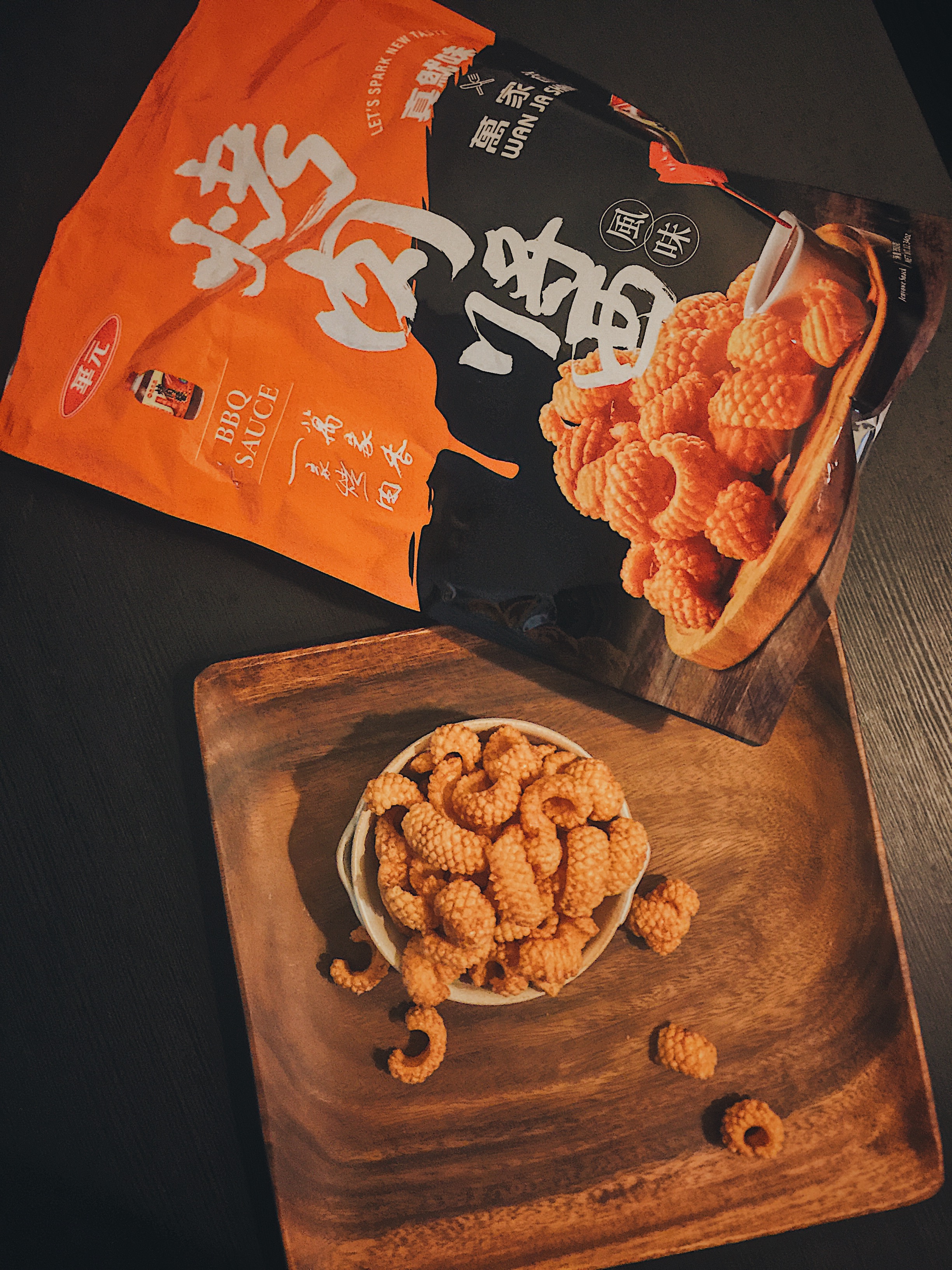 產品成份:麵粉 、棕櫚油、樹薯澱粉、 蝦醬(蝦、鹽、麥芽糊精、L-麩酸鈉、胺基乙酸、5’-核?隞臚G鈉) 精鹽、調味劑(L-麩酸鈉、5’-次黃嘌呤核?靾C酸二鈉、5’-鳥嘌呤核?靾C酸二鈉、胺基乙酸、琥珀酸二鈉、DL-胺基丙酸) 魷魚粉(水解蛋白、氧化澱粉、麥芽糊精、魷魚) 砂糖 萬家香烤肉醬(蔗糖轉化液糖、醬油、蒜頭、辣椒、酒精、金桔汁、檸檬汁、釀造醋、非基因改造黃豆、黏稠劑(玉米糖膠、乙醯化己二酸二澱粉)、酵母抽出物) 麥芽糖、醬油、麥芽糊精、蒜粉、香料、 碳酸氫鈉、 葡萄糖酸-δ-內酯、 酸性焦磷酸鈉 、食用黃色五號(著色劑)