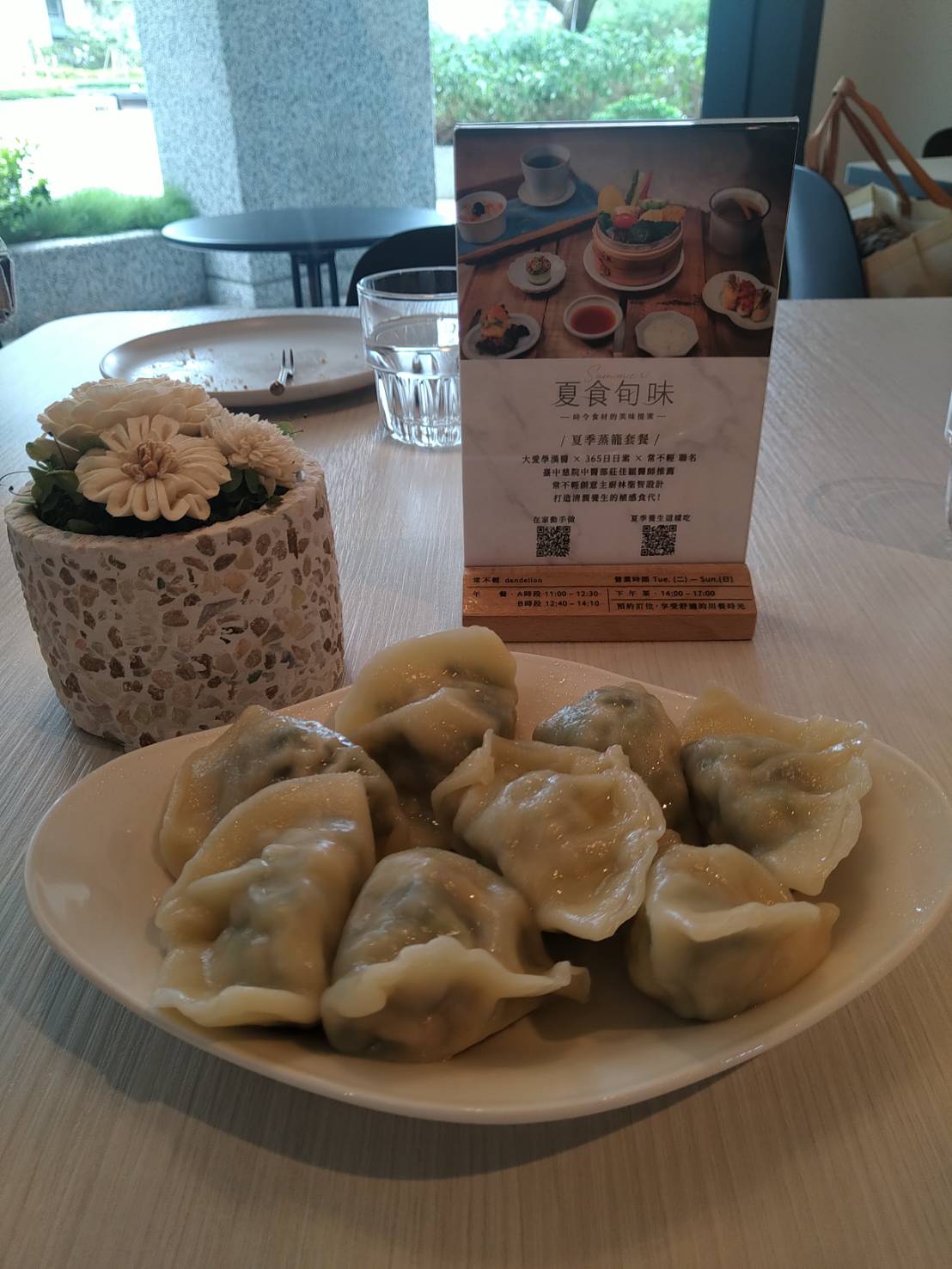 b.手工鮮蔬蕈菇水餃1份+飲品1杯