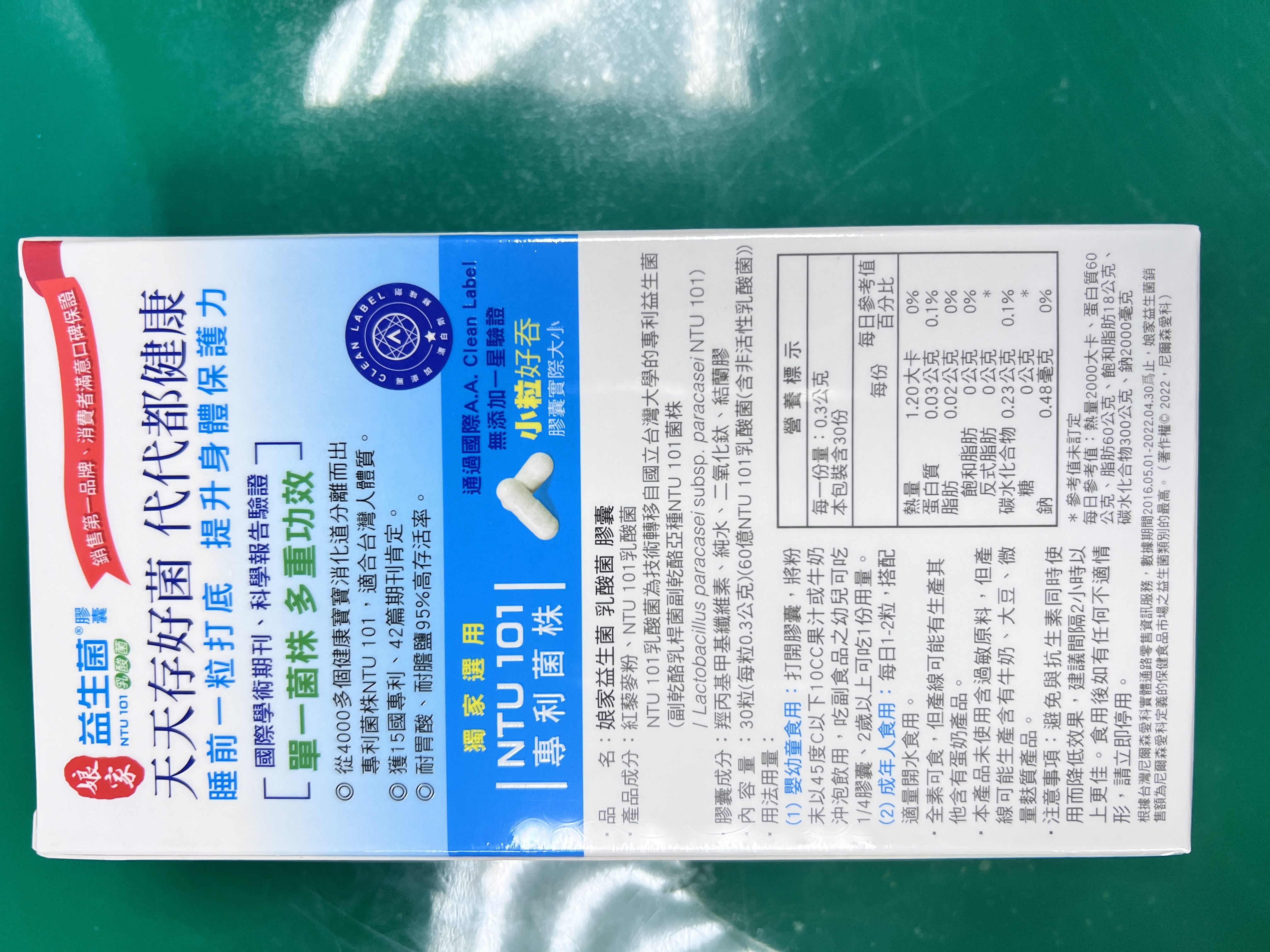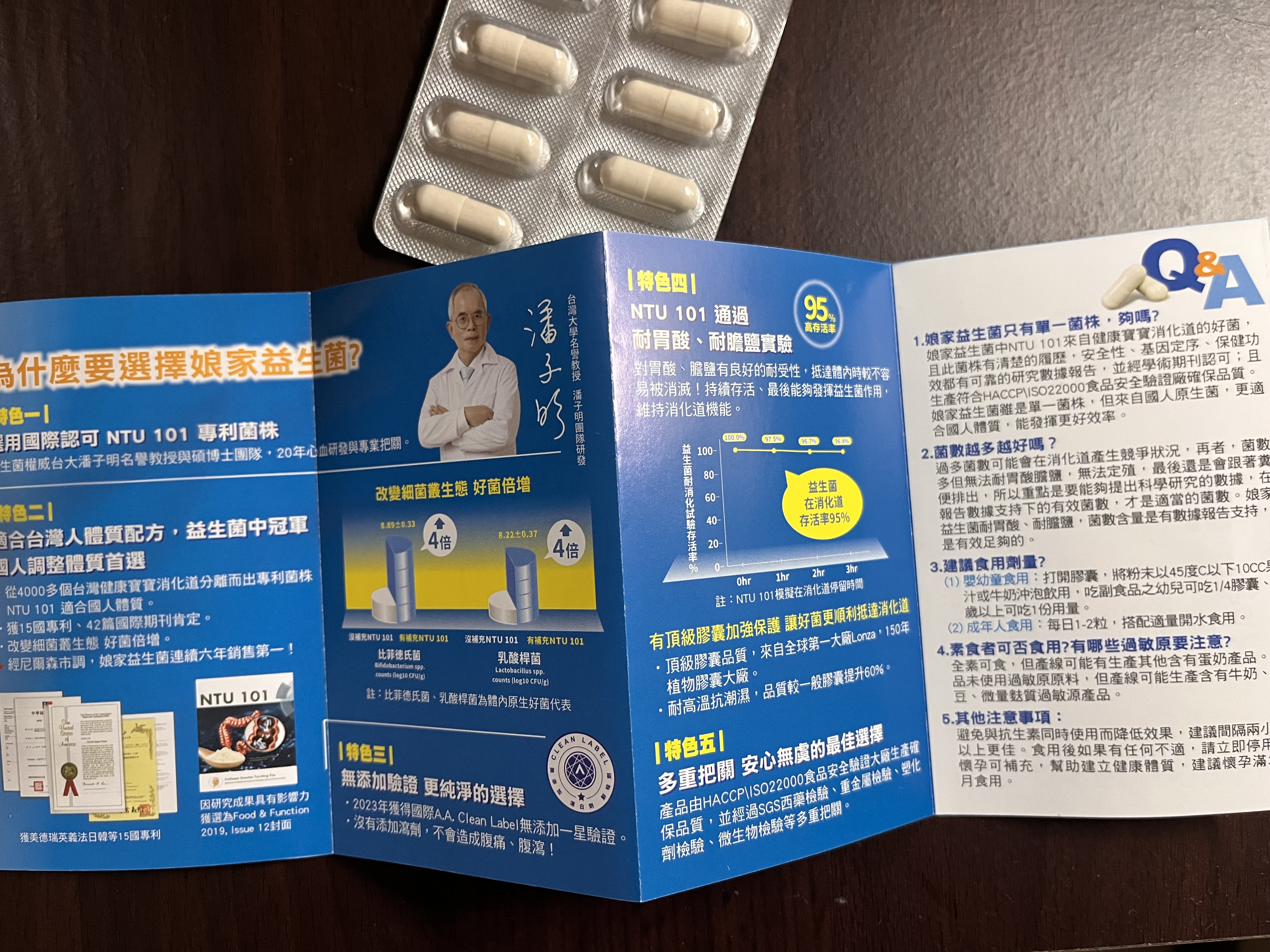 紅藜麥粉、NTU 101乳酸菌(為技術轉移自國立台灣大學的專利益生菌(副乾酪乳桿菌副乾酪亞種NTU 101菌株/Lactobacillus paracasei subsp. paracasei NTU 101)