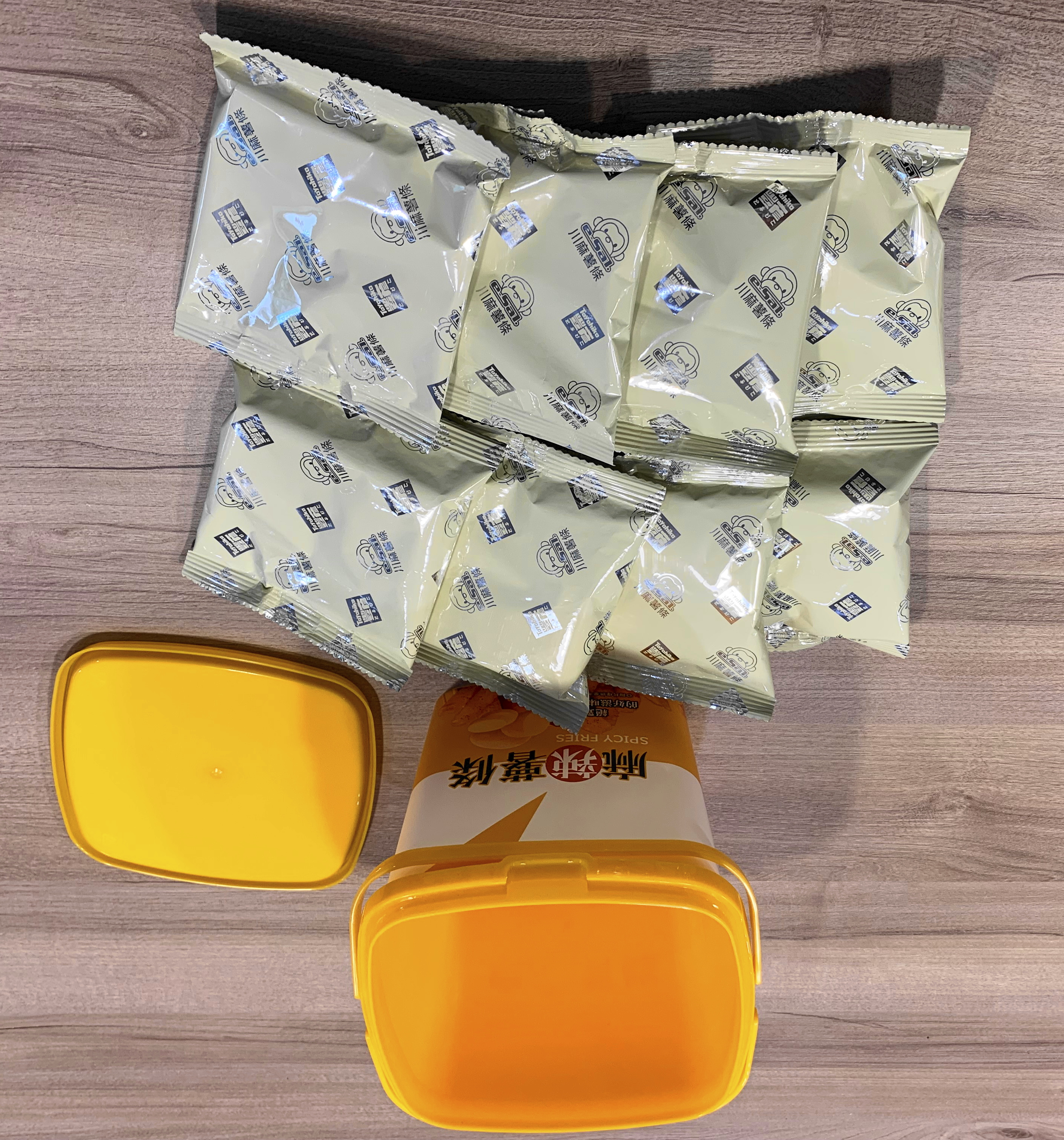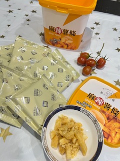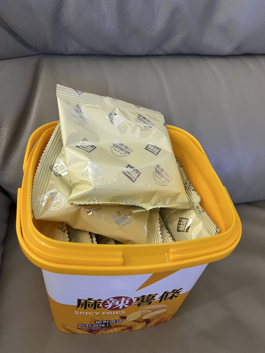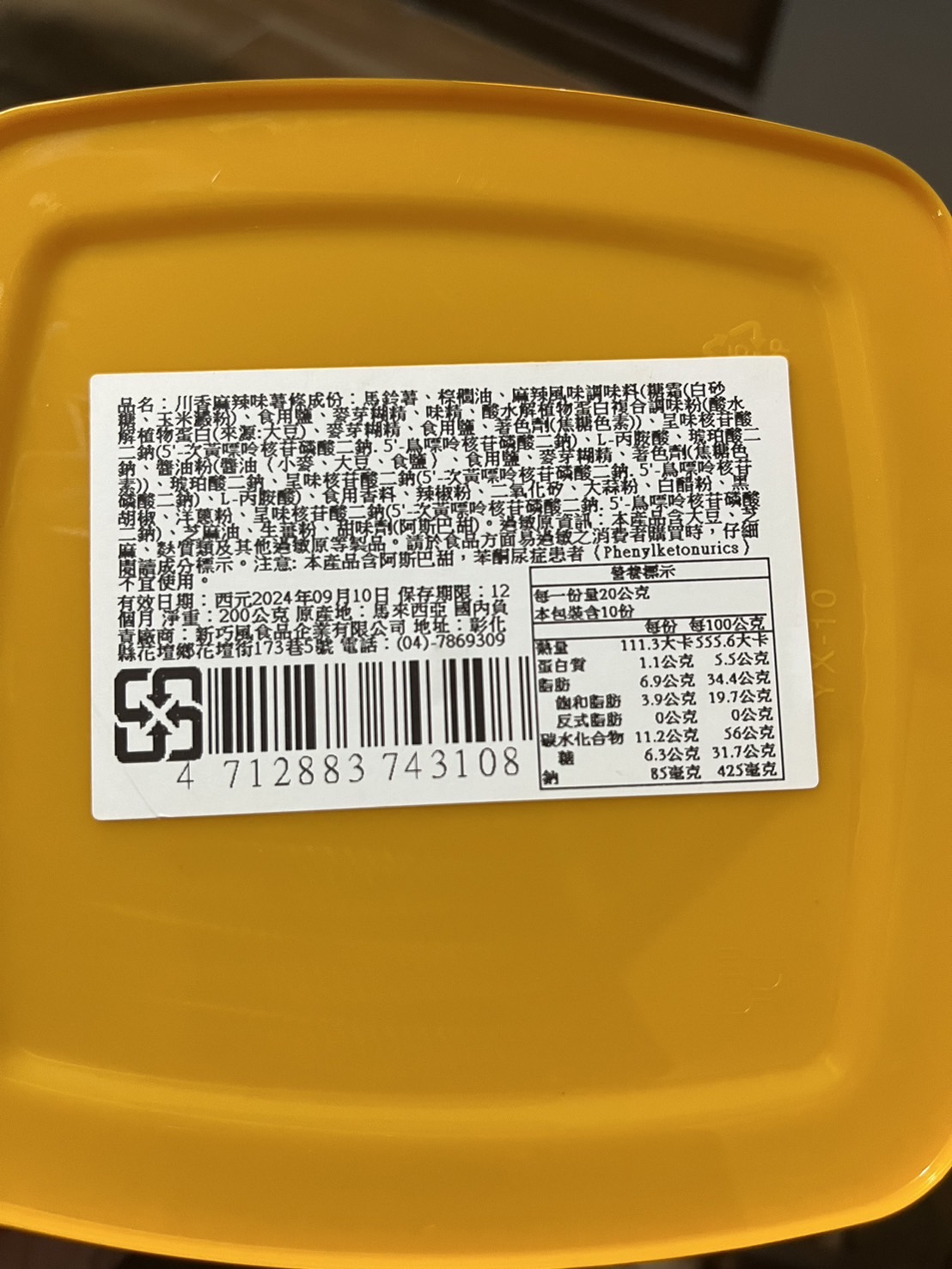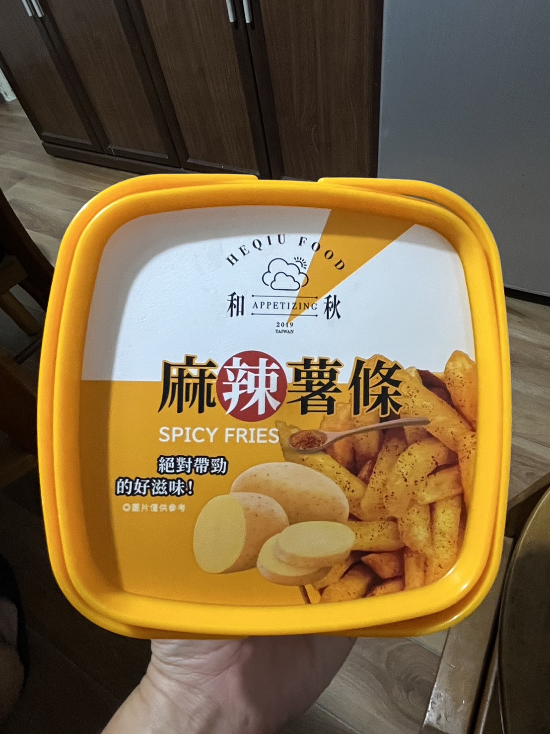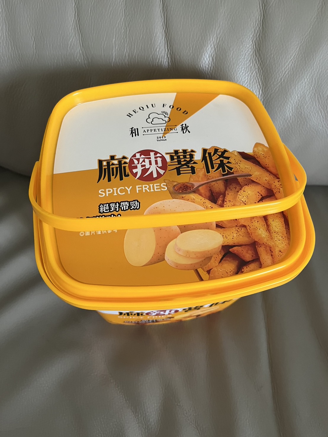 馬鈴薯、棕櫚油麻辣風味調味料(糖霜(白砂糖、玉米澱粉))、食用鹽、麥芽糊精、味精、酸水解植物蛋白複合調味粉(酸水解植物蛋白(來源:大豆)、麥芽糊精、食用鹽、著色劑(焦糖色素)、呈味核昔酸二鈉(5'-次黃哈核苷磷酸二鈉.5'-鳥嘌呤核昔磷酸二鈉)、L-丙胺酸、琥珀酸二鈉、 醬油粉(醬油(小麥、大豆、食鹽)、食用鹽、麥芽糊精、著色劑(焦糖色素)、琥珀酸二鈉、呈味核酸二鈉(5'-次黃哈核昔磷酸二鈉、5'-鳥嘌哈核昔磷酸二鈉)、L-丙胺酸、食用香料、辣椒粉、二氧化矽、大蒜粉、白醋粉、黑胡椒、洋蔥粉、星味核酸二鈉(5-次黃嘌呤核昔磷酸二鈉、5-鳥嘌哈核昔磷酸二鈉)、芝麻油、生粉、甜味劑(阿斯巴甜)