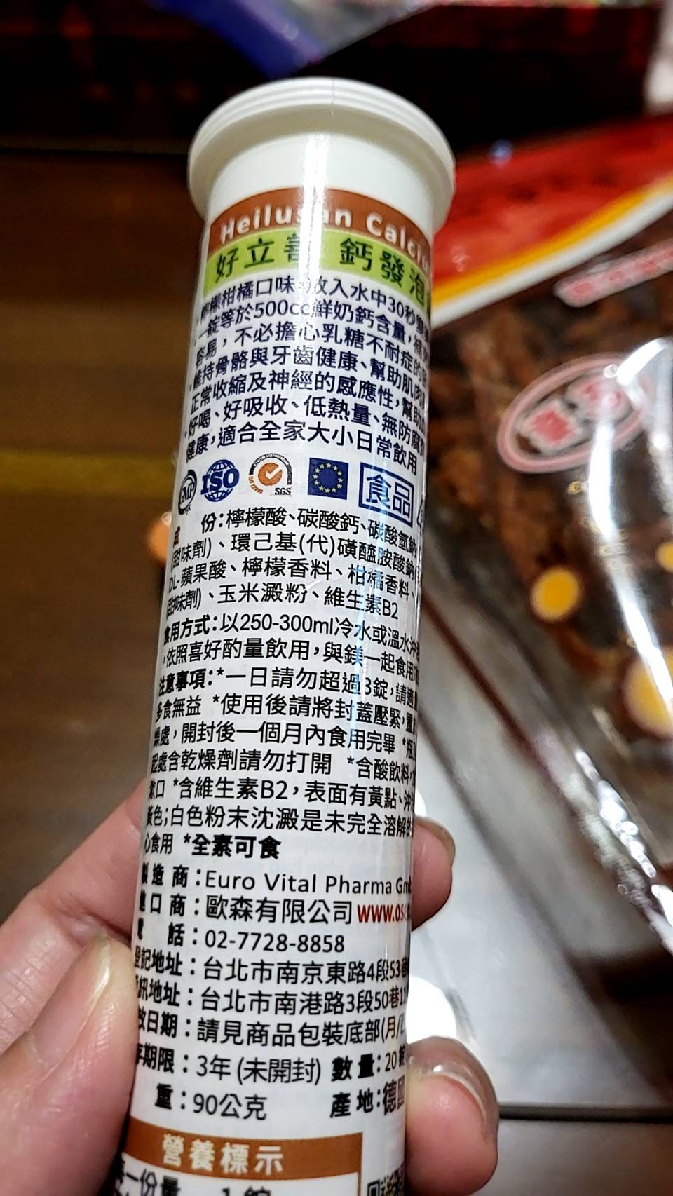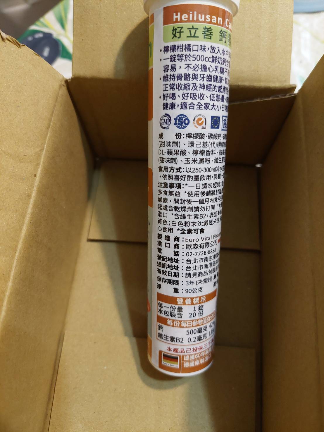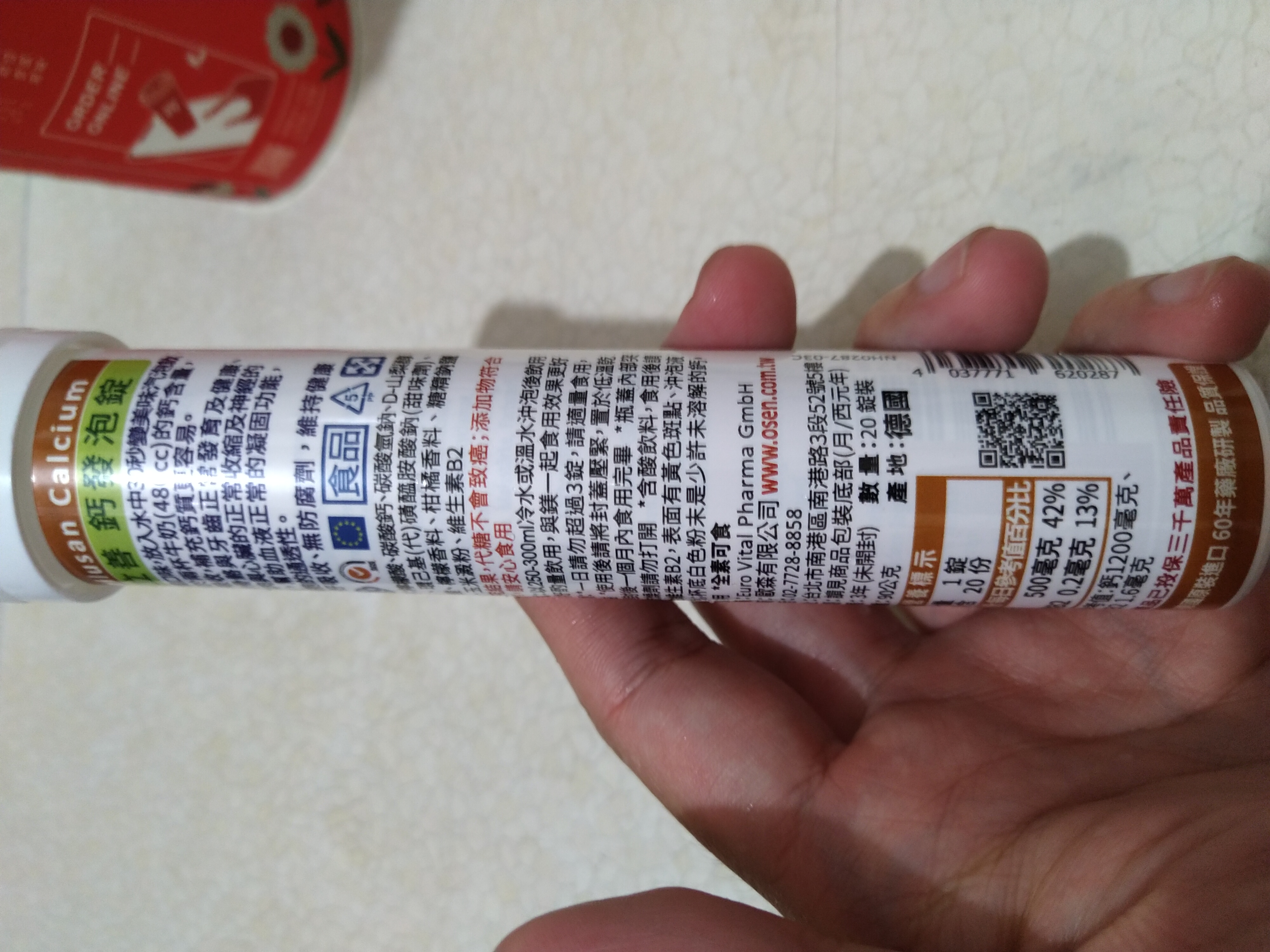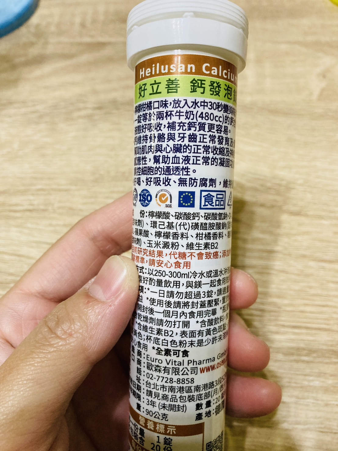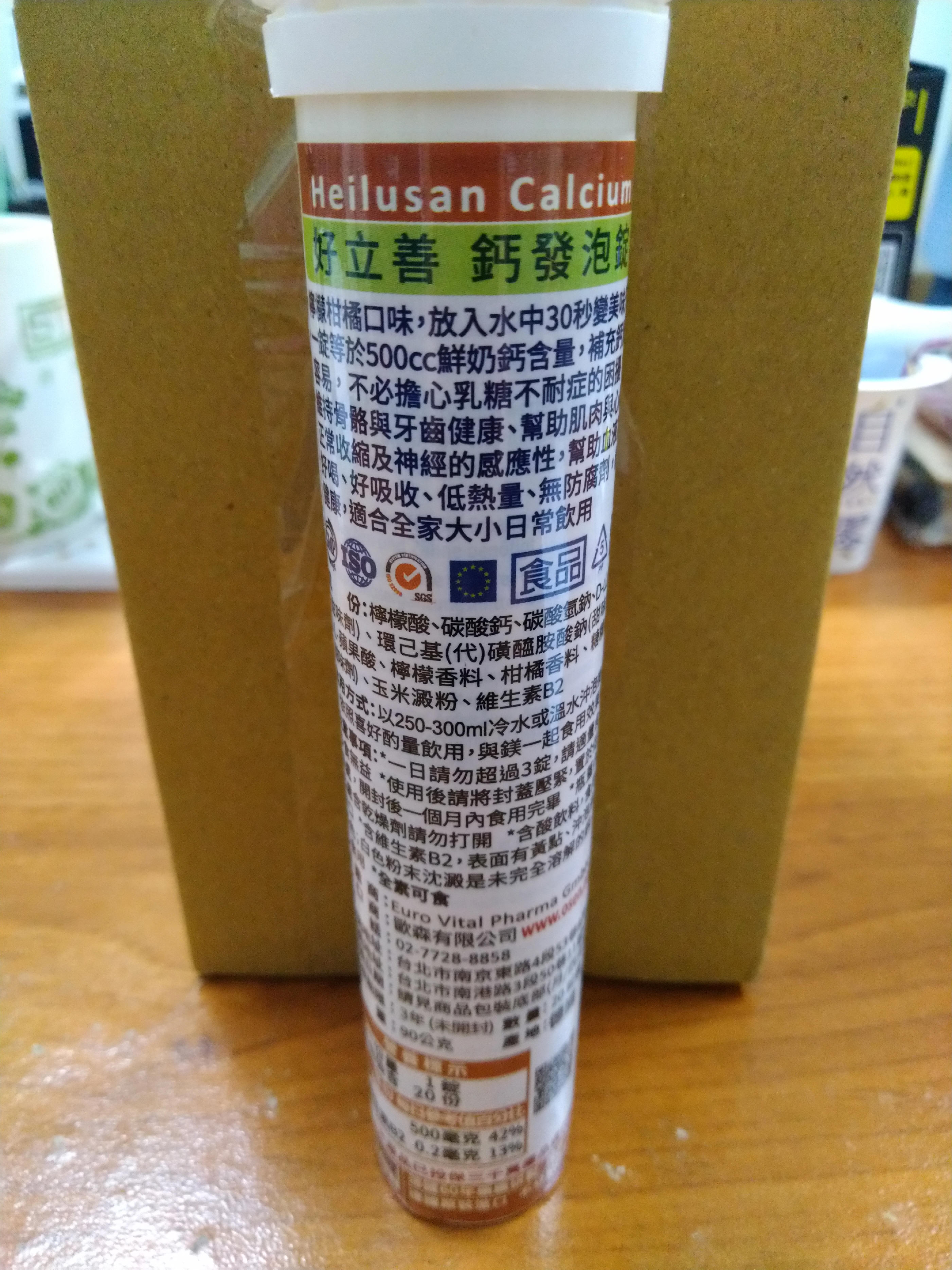 檸檬酸、碳酸鈣、碳酸氫鈉、D-山梨醇、甜味劑 (環己基(代)磺醯胺酸鈉)、DL-蘋果酸、檸檬香料 、柑橘香料、糖精鈉鹽、玉米澱粉、維生素B2