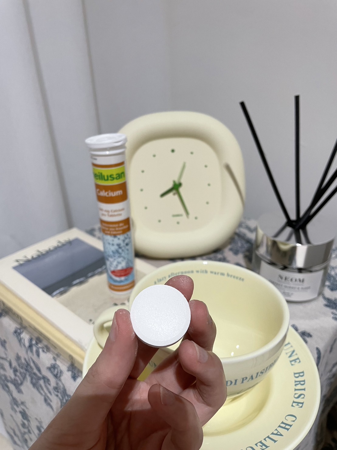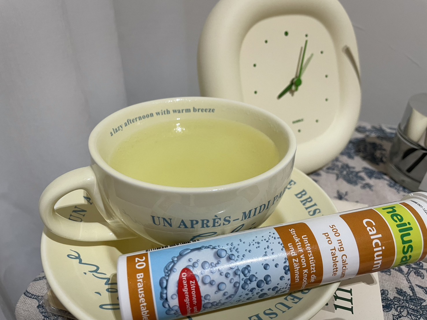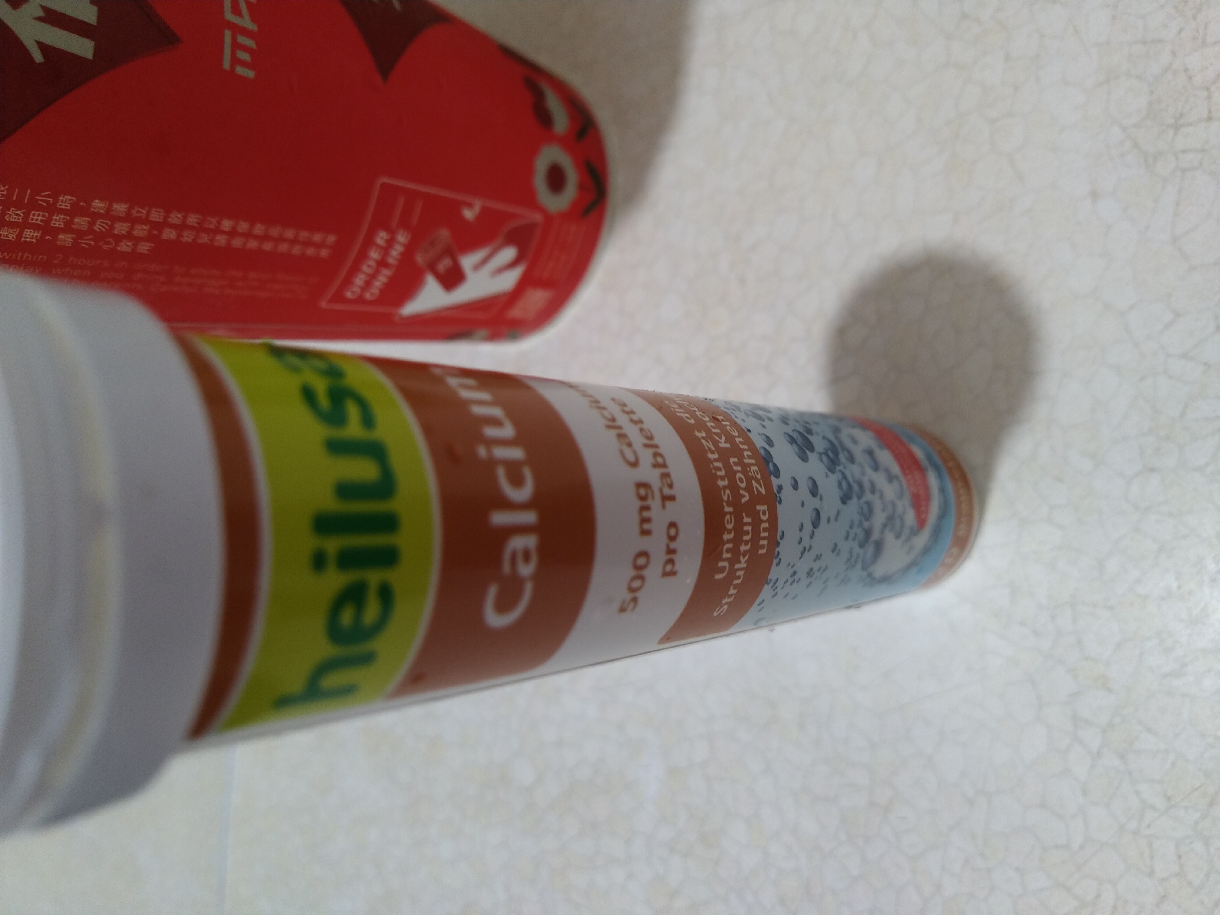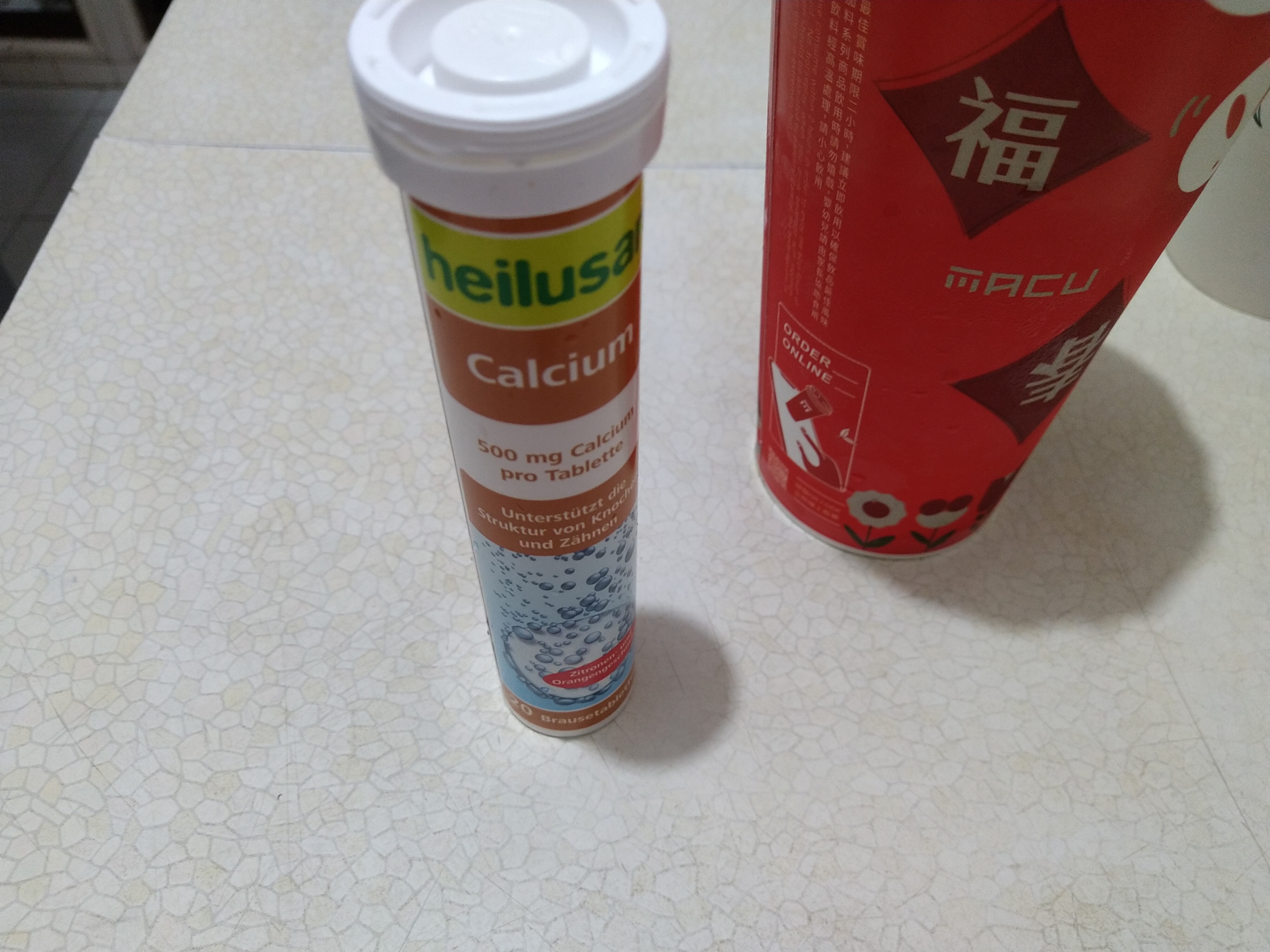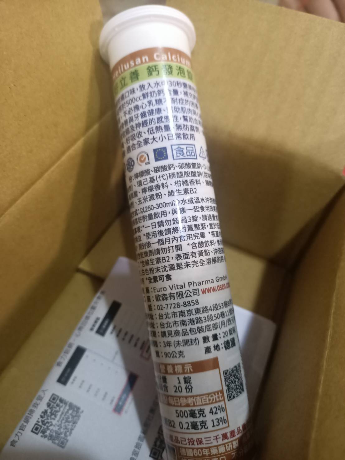 檸檬酸、碳酸鈣、碳酸氫鈉、D-山梨醇、甜味劑 (環己基(代)磺醯胺酸鈉)、DL-蘋果酸、檸檬香料 、柑橘香料、糖精鈉鹽、玉米澱粉、維生素B2