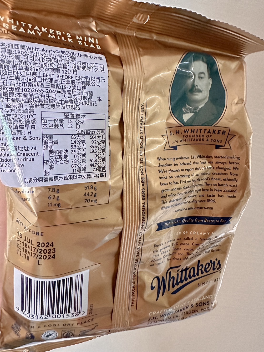 回列表 Whittakers 牛奶巧克力磚形分享包 紐西蘭家喻戶曉的國寶級巧克力品牌 市價235元 (免費申請) 所需等級 一般會員以上 所需學分 70 體驗份數 15 關注人數 1319 申請人數 327 申請截止 品牌業者:Whittakers 負責廠商 正暉股份有限公司 廠商地址 台北市南港區三重路19-2號11樓 產地 紐西蘭 試用產品規格 180g/包 食品業者登錄字號 A-184293851-00000-8 投保產品責任險字號 富邦 0525字第22AML000735號 心得分享 商品介紹 商品成分 使用方法 注意事項 體驗名單 8.9 Whittakers 牛奶巧克力磚形分享包 巧克力香氣 8.6 口感滑順 9.3 方便攜帶 9.4 包裝美學 8.9 建議推薦 8.8 心得分享 14則 宋牧橙 金食達人 37歲 臺中市 2024/04/12 對Whittakers 牛奶巧克力磚形分享包留下評價 10 香氣濃郁、口感滑順🤩重點是不會太甜,單包裝出門更方便攜帶👍出門肚子餓或天氣炎熱吃不下的時候,吃一顆滿能緩解飢餓感,而且天氣熱也不太會融化變扁,放入冰箱冷藏再拿出來吃更別有一番風味🥰是之後會非常願意回購的好商品,分享給來家裡玩耍的大小朋友們都很喜歡😘真的超讚的 莊毓麟 鑽石達人 34歲 臺中市 2024/04/13 對Whittakers 牛奶巧克力磚形分享包留下評價 8 第一次抽到食力體驗品Whittakers牛奶巧克力磚形分享包 是紐西蘭家喻戶曉國寶級巧克力品牌適合當作下午茶小點解嘴饞且原料採用永續栽種法友善保護環境愛護大自然包裝設計非常貼心拆開後是獨立包裝方便外出時攜帶採用自由牧場飼養草食奶牛使牛奶口感濃郁絲滑採用五倍研磨機打磨製的可可使巧克力入口更加細膩 葉惠裕 金食達人 41歲 臺北市 2024/04/14 對Whittakers 牛奶巧克力磚形分享包留下評價 5 外包裝挺普通,但裡面藍色小包裝還挺有漂亮有點質感,巧克力不會硬,吃進去很滑順綿密,但重點是…太甜了!超級甜阿,完全吃不出巧克力的味道,只覺得好甜!原以為是紐西蘭牛奶,會有很濃的牛奶味加上可可味道,結果只有甜味和滑順綿密的口感…這適合螞蟻人吧。 郭家雯 金食達人 37歲 臺南市 2024/04/14 對Whittakers 牛奶巧克力磚形分享包留下評價 9 Whittakers 牛奶巧克力的口感很滑順,牛奶的香氣也十分足夠,缺點是甜度稍微高一些,適合配著無糖茶一起食用,或是放在辦公室的抽屜裡,當事情比較多心情煩悶的時候,吃一塊甜滋滋的牛奶巧克力真的會讓心情瞬間從低谷到天堂,也很適合生理期期間身體不舒服的時候來一塊,馬上可以撫慰心靈和身體。而且包裝易撕設計,讓人可以輕鬆的撕開,連小朋友也可以自己打開食用,另外單獨包裝的設計,不論是自己私藏還是跟大家分享都很方便攜帶和食用,不用擔心一大塊巧克力拆開,沒有封好會引來螞蟻和蟑螂。 紀依汝 金食達人 38歲 南投縣 2024/04/15 對Whittakers 牛奶巧克力磚形分享包留下評價 8 收到巧克力是溶化的狀態,趕緊拿去冰箱冷藏,讓他恢復原狀,此款巧克力是添加牛奶口味,所以整體巧克力香氣是很足夠的,且口感滑順但就是還是甜了點,要小口小口吃就相對比較能接受,覺得可以丟到中深焙的黑咖啡裡,讓他溶化後再飲用,應該蠻搭的,個人覺得獨立包裝還蠻便利的,比起整塊的巧克力,感謝食力提供這次的試吃機會。 曾筱晴 金食達人 36歲 基隆市 2024/04/15 對Whittakers 牛奶巧克力磚形分享包留下評價 8 一口咬下去立馬就是那種甜甜濃郁巧克力味在你口中的感覺吃一口接著一口,溶化的奶香和巧克力的組合是完美啊香甜的味道小小包裝好攜帶,可以隨時分享給家人朋友女孩子月經來也能準備幾個放在包包,總能在需要時吃上一個 吳采樺 金食達人 34歲 高雄市 2024/04/16 對Whittakers 牛奶巧克力磚形分享包留下評價 10 🇳🇿𝐖𝐡𝐢𝐭𝐭𝐚𝐤𝐞𝐫‘𝐬牛奶巧克力磚形分享包 是來自紐西蘭的百年巧克力品牌,在紐西蘭幾乎沒有人不認識它,也是許多遊客必買的伴手禮之一🤩獨特的磚型是Whittaker’s相當具有特色的巧克力系列商品🤎包裝小巧可愛一包裡面有12顆,非常方便攜帶不佔空間,隨時要吃都可以,出門遊玩非常合適~方便攜帶🍫牛奶巧克力味道濃郁,多了一些奶香味,口感滑順,因為台灣天氣炎熱巧克力容易融化會較軟,我喜歡放冷藏或冷凍後再吃😋如果怕太甜的話可以配無糖茶或來杯咖啡一起品嚐直接來場美味的下午茶饗宴☕️ Meng Huang 鑽石達人 48歲 臺中市 2024/04/17 對Whittakers 牛奶巧克力磚形分享包留下評價 9 使用優質原料,製作出濃郁滑順的巧克力,適口性佳,分量剛好,一次一小包,不用擔心吃太多造成負擔。不過個人覺得口感偏甜,雖然家中小孩覺得OK可接受,不過泡上一杯麥茶或是咖啡,就會非常的完美。成分相對單純,令人安心。獨立小包裝,外出攜帶方便。 CHEN 金食達人 28歲 臺中市 2024/04/17 對Whittakers 牛奶巧克力磚形分享包留下評價 9 外包裝很有高級感,內部的小包裝也很有質感且易開。總共有12個巧克力,一顆的量很剛好,作為點心或臨時充飢的用途都很不錯。剛打開時就可以聞到一股淡淡的、自然的巧克力味,味道不會重到非常明顯,巧克力本身口感絲滑、甜度適中,帶有非常少許的焦糖味,總體來說十分美味。唯一缺點可能就是太容易融化,在台灣炎熱的天氣下要攜帶可能會有點不便。 林嬋詩(製一林嬋語) 金食達人 41歲 高雄市 2024/04/18 對Whittakers 牛奶巧克力磚形分享包留下評價 10 超開心獲得食力舉辦的Whittakers 牛奶巧克力磚形分享包 試吃活動,Whittaker’s是來自紐西蘭的百年巧克力