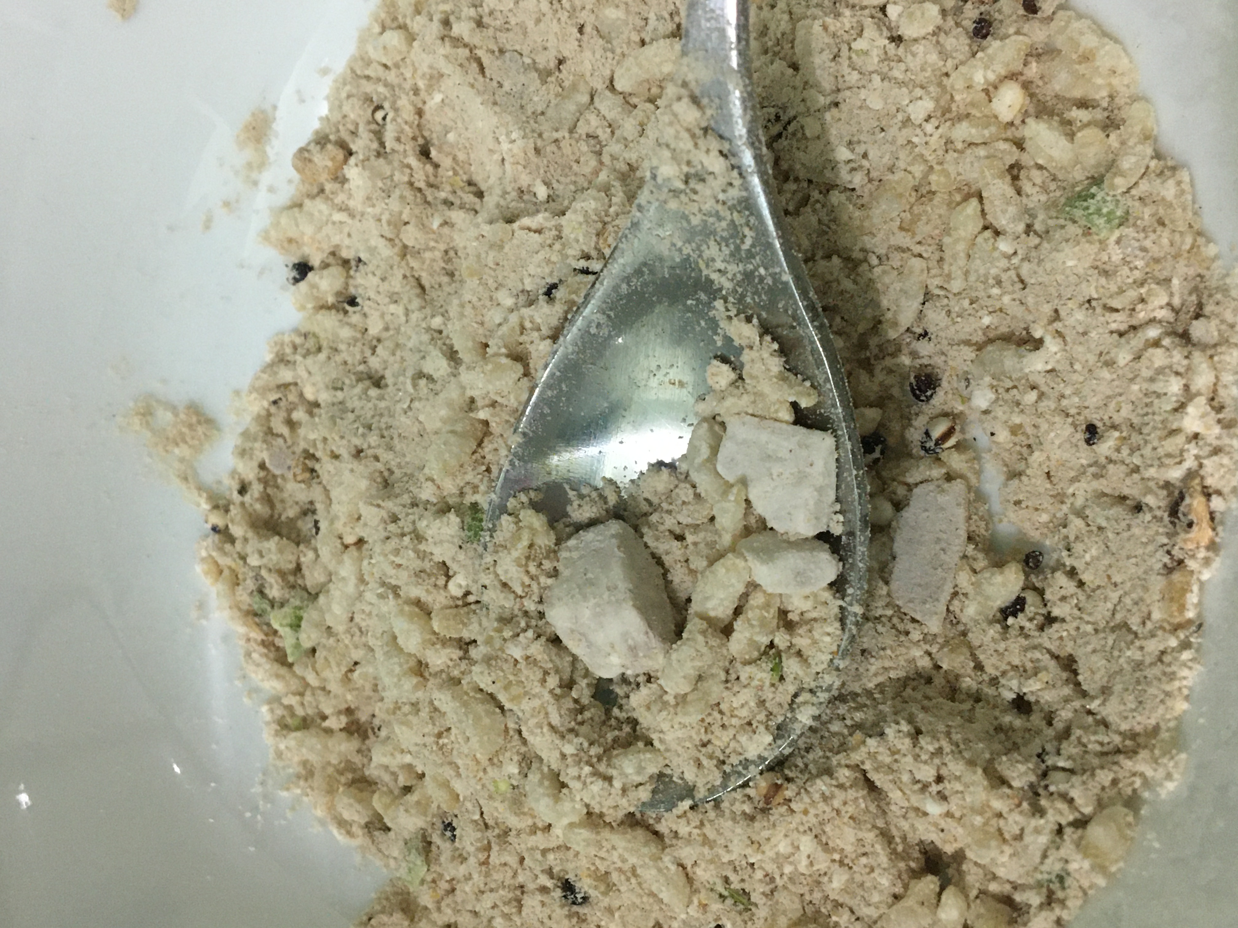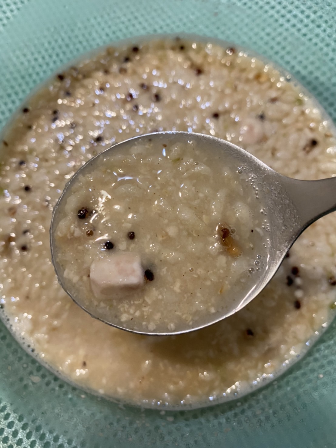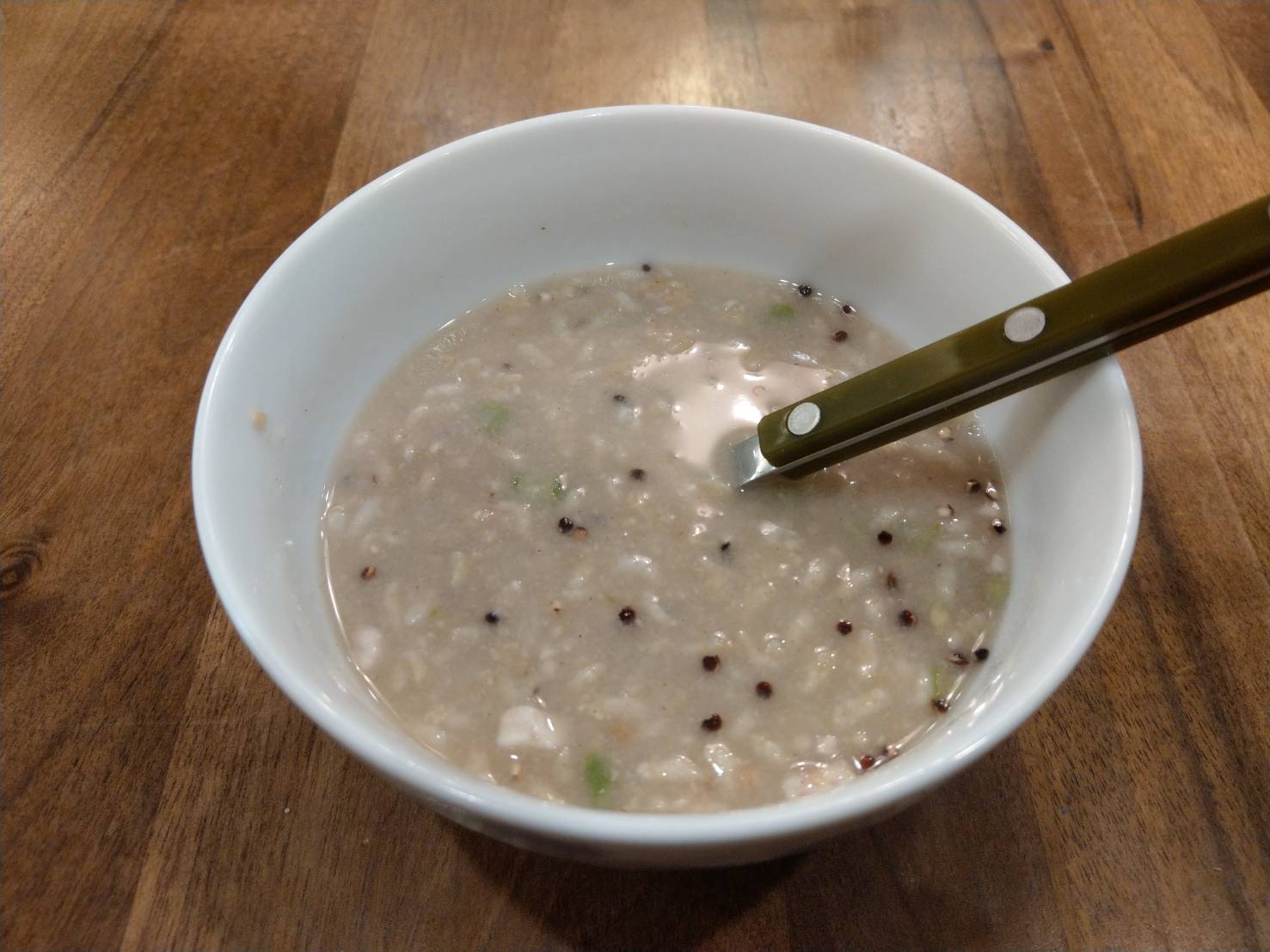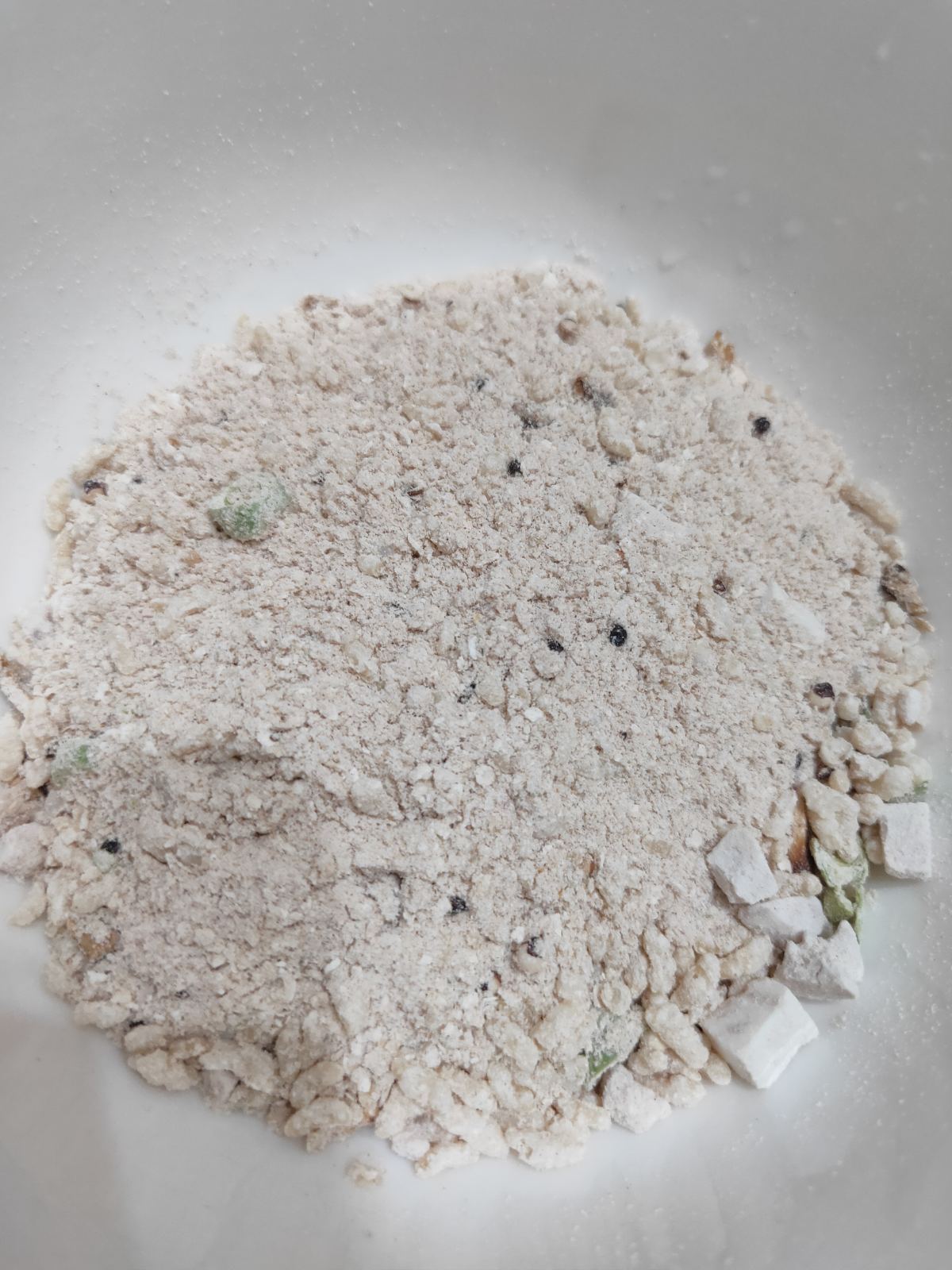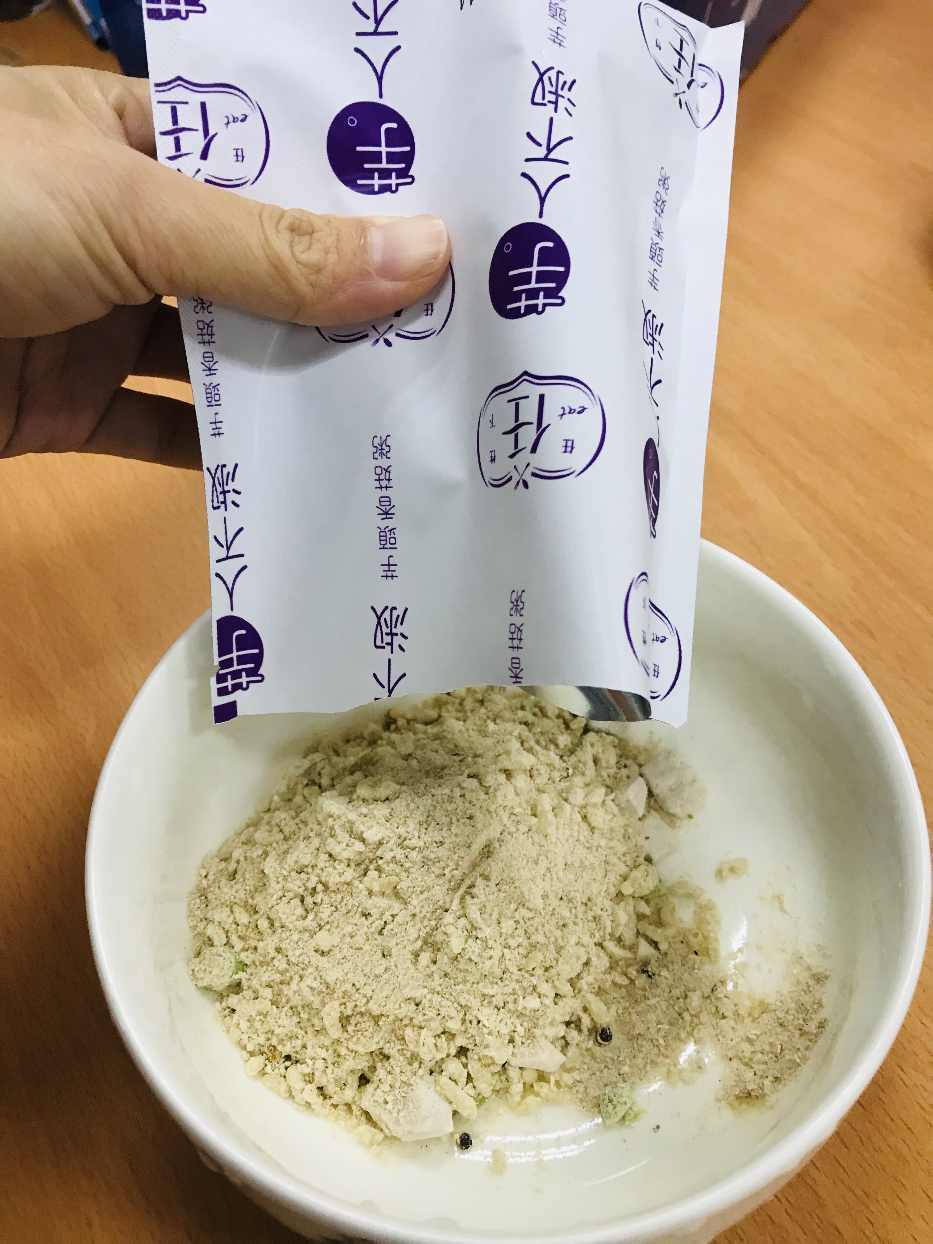 糙米粒、燕麥片、馬鈴薯澱粉、米、芋頭粉、鮮蔬調味粉、黃豆粉、燕麥粉、 砂糖、香菇粉、芋頭、香菇、敏豆、紅藜麥、玫瑰鹽、紫地瓜粉、酵母抽出物、 洋蔥粉、白胡椒粉、地瓜澱粉、辣椒、 花椒、黑胡椒粉、葡萄糖