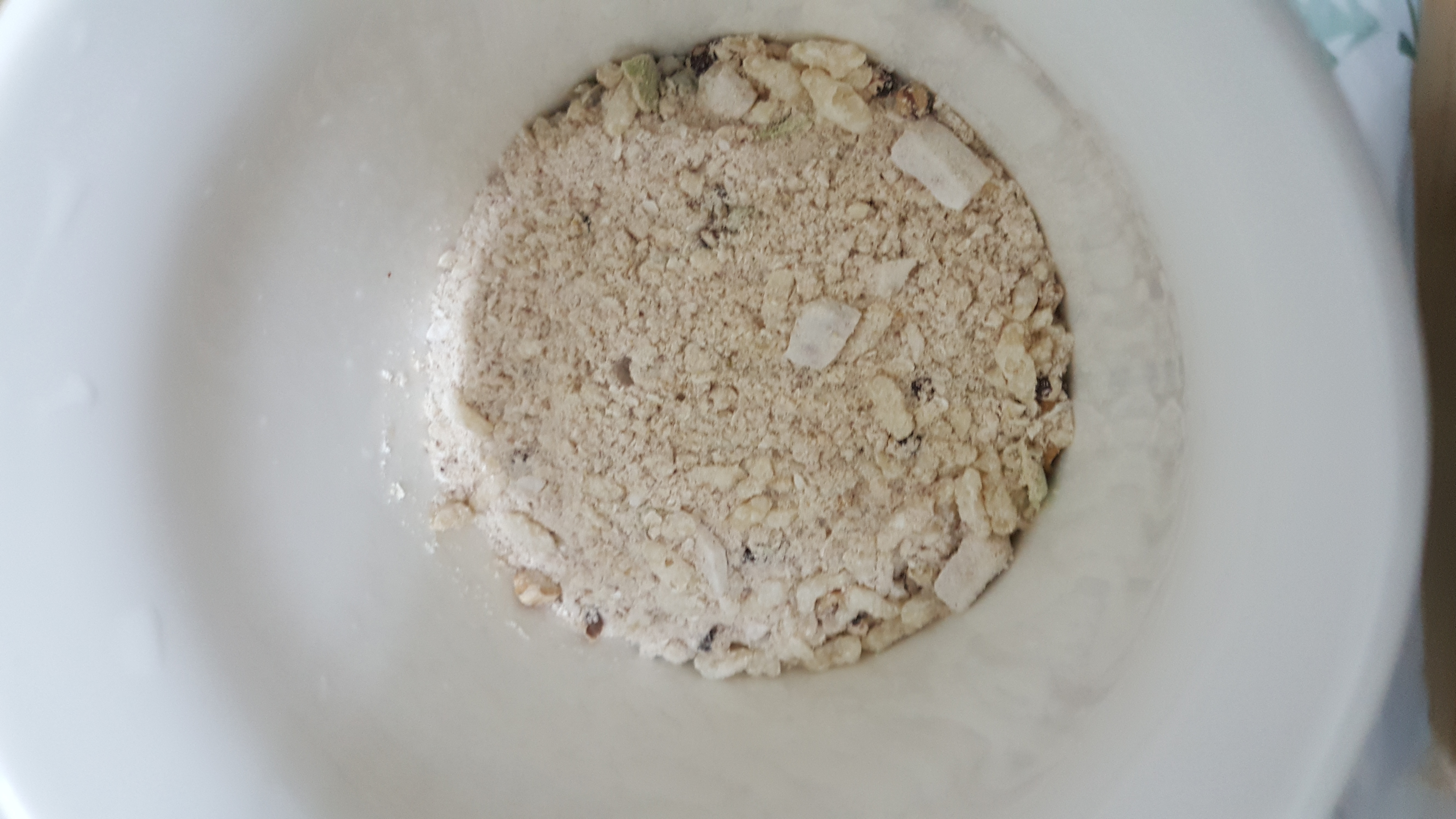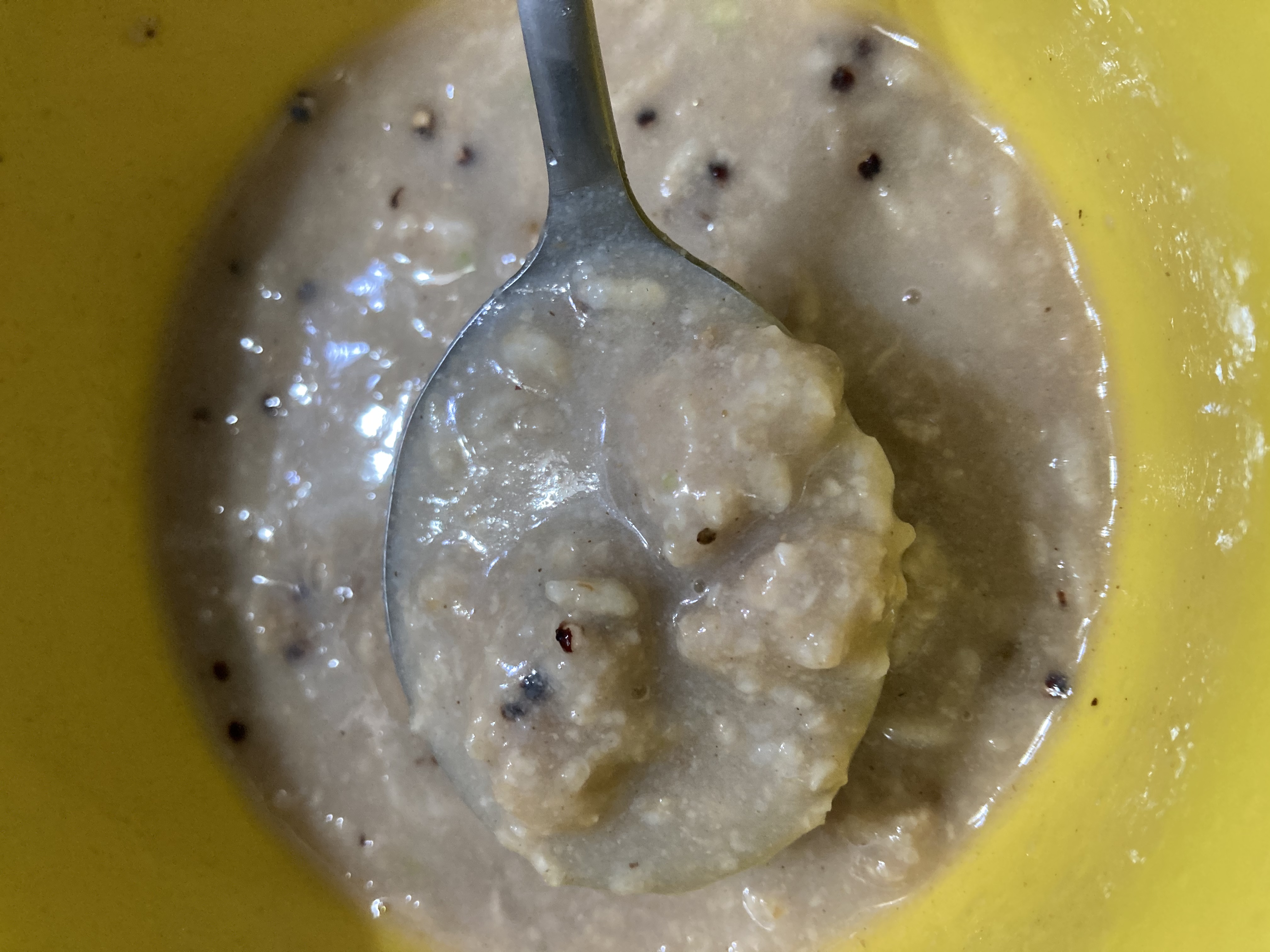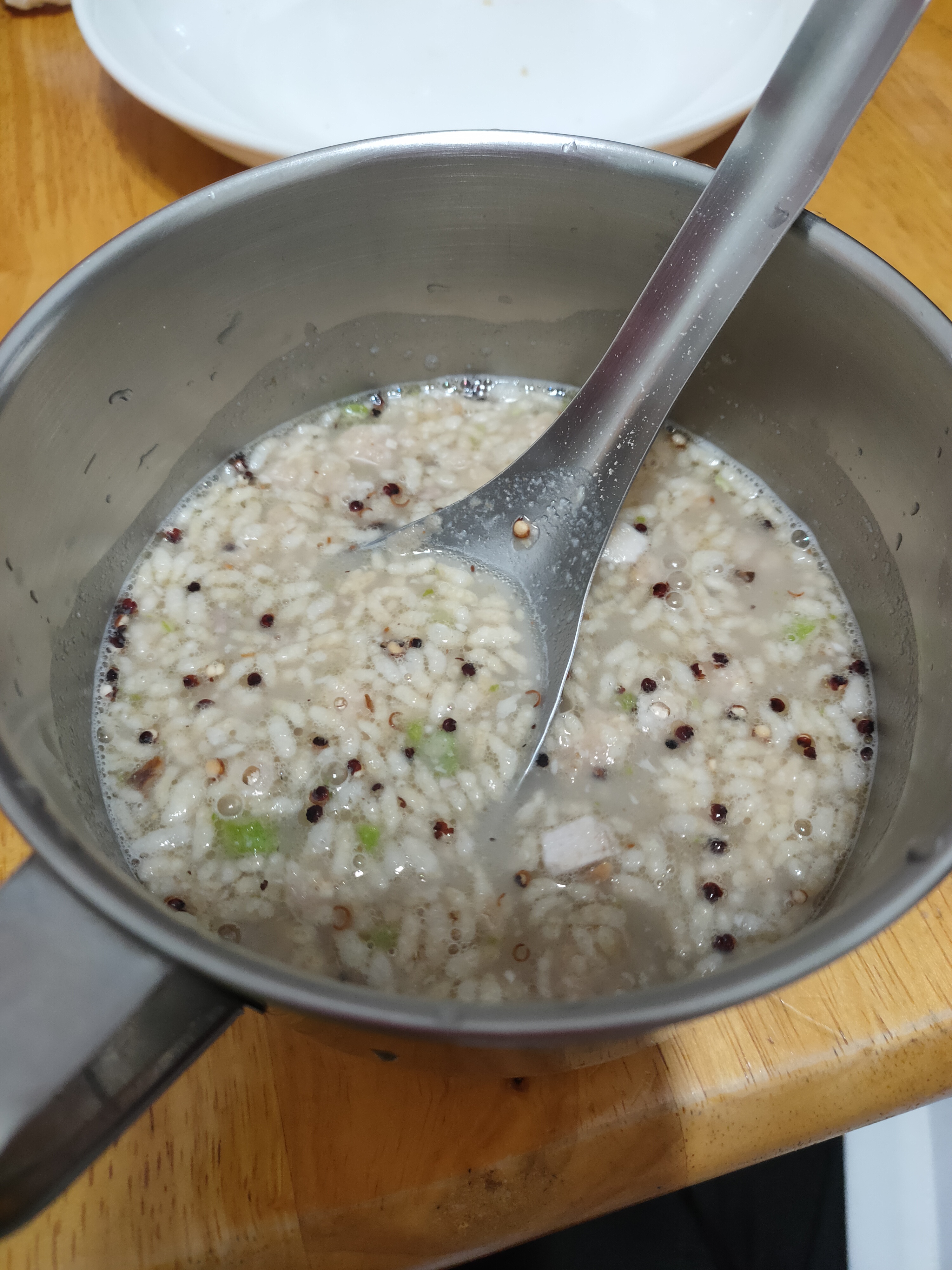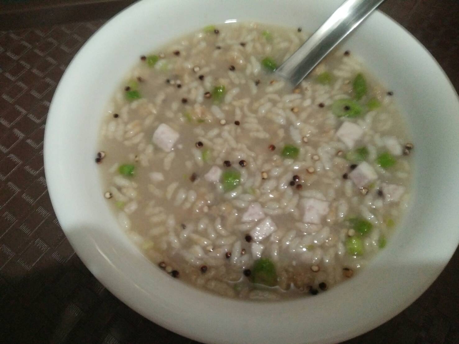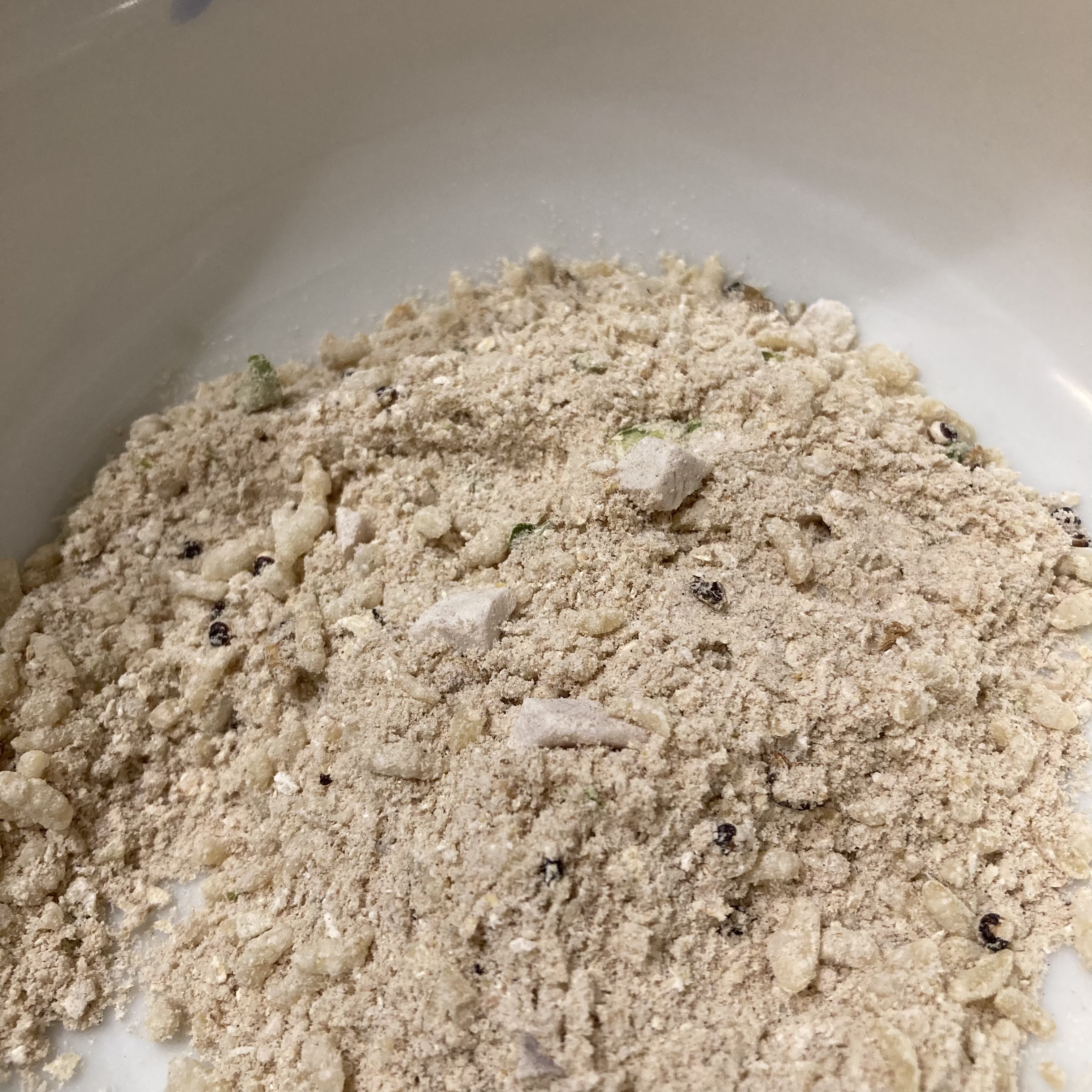 糙米粒、燕麥片、馬鈴薯澱粉、米、芋頭粉、鮮蔬調味粉、黃豆粉、燕麥粉、 砂糖、香菇粉、芋頭、香菇、敏豆、紅藜麥、玫瑰鹽、紫地瓜粉、酵母抽出物、 洋蔥粉、白胡椒粉、地瓜澱粉、辣椒、 花椒、黑胡椒粉、葡萄糖
