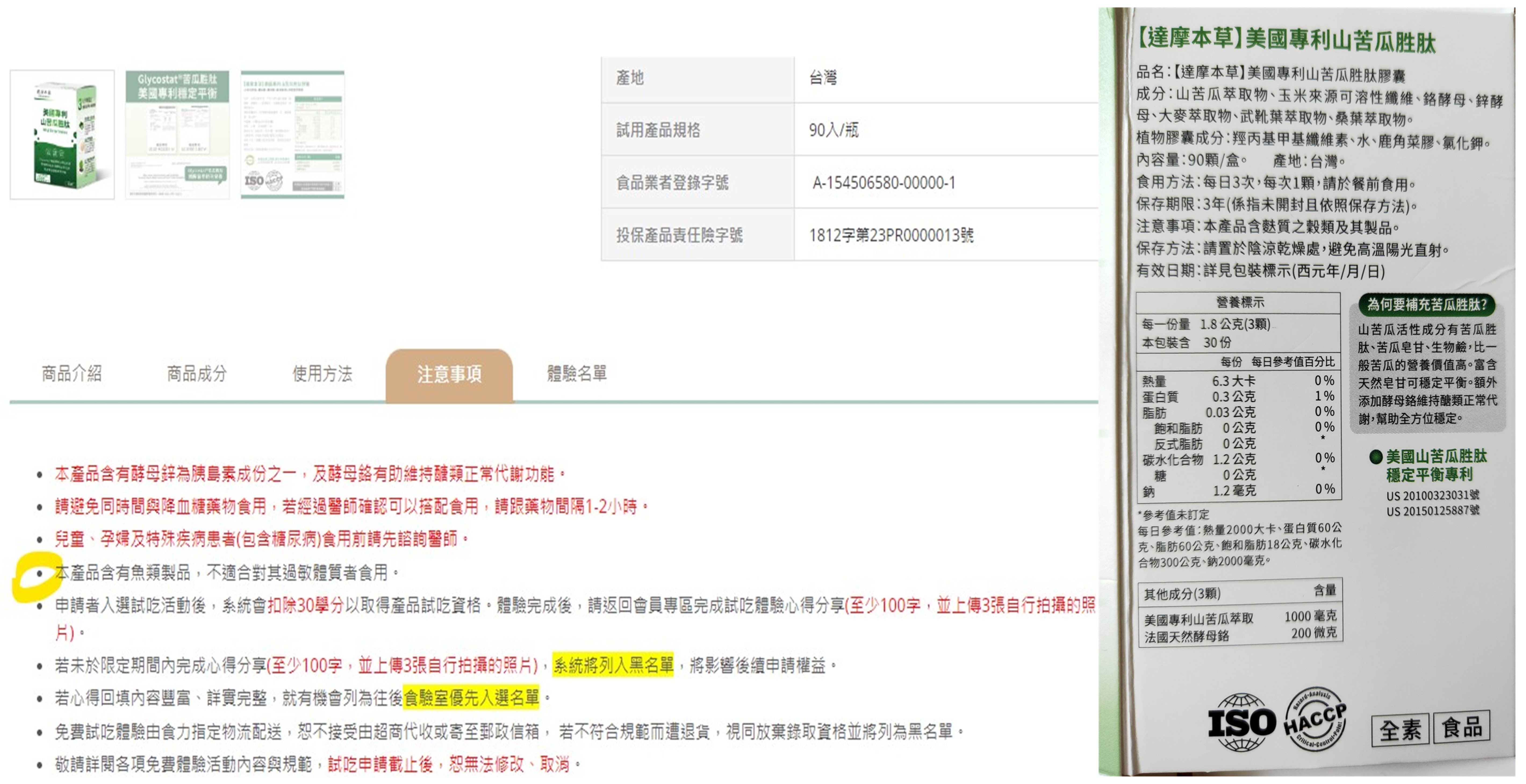 回列表 達摩本草 美國專利山苦瓜胜肽 國家級博士團隊研發 有助維持醣類正常代謝 茹素者可食用 市價$1,990元 / 瓶 所需等級 一般會員以上 所需學分 30 體驗份數 50 關注人數 1305 申請人數 301 申請截止 品牌業者:騰勢股份有限公司 負責廠商 騰勢股份有限公司 廠商地址 242新北市新莊區新北大道三段218號16樓 產地 台灣 試用產品規格 90入/瓶 食品業者登錄字號 A-154506580-00000-1 投保產品責任險字號 1812字第23PR0000013號 心得分享 商品介紹 商品成分 使用方法 注意事項 體驗名單 8.8 達摩本草 美國專利山苦瓜胜肽 平衡調整體質 8.6 有助維持正常食慾 8.5 有助醣類正常代謝 8.6 維持健康代謝 8.7 茹素者可食 9.3 建議推薦 8.6 心得分享 50則 蘇采彤 金食達人 47歲 臺北市 2023/10/13 對達摩本草 美國專利山苦瓜胜肽留下評價 10 收到本次試吃品-達摩本草 美國專利山苦瓜胜肽,先研究一下使用方式,其中「國家級博士團隊研發 有助維持醣類正常代謝」非常吸引我,因本身是遺傳性糖尿病患者,所以醣類代謝非常重要,在每餐餐前使用,可以在飲食間更加放心享受,食用迄今,雖時間不算長,但身體有感受到非常舒暢,飯後腸胃也較不容易感到撐脹,待上市後可推薦給身旁親友一起體驗。 Ruby 金食達人 44歲 臺中市 2023/10/15 對達摩本草 美國專利山苦瓜胜肽留下評價 10 身為一位美食愛好者,我對於達摩本草的美國專利山苦瓜胜肽EX PLUS的發現感到欣喜。這款由國家級博士團隊研發,並榮獲國際品質獎項Monde section銀獎的保健食品,特別注重促進體質的平衡和新陳代謝。這款產品的主要成分「山苦瓜胜肽」,透過專利的低溫水萃技術,將山苦瓜內的珍貴活性胜肽完整地保留下來。加上天然來源的鋅酵母和鉻酵母,讓我能更好地吸收和補充營養。自從服用達摩本草的山苦瓜胜肽EX PLUS後,我明顯感到身體的平衡和新陳代謝都有所提升。在享受美食的同時,我也能照顧到自己的健康。我覺得這是一款非常值得推薦的保健食品,尤其適合我這種愛好美食,又注重健康的人。 nini 金食達人 43歲 花蓮縣 2023/10/17 對達摩本草 美國專利山苦瓜胜肽留下評價 10 達摩本草美國專利山苦瓜胜肽是一款採用美國專利山苦瓜胜肽、法國天然酵母鉻、酵母鋅以及大麥、桑葉和武靴葉萃取製成的保健品。鉻可以幫助維持醣類正常代謝,調節生理機能,每天早中晚飯前1顆,膠囊沒有苦味,很好服用。最令我意外有感的是飽足感,讓我不會攝取過量的餅乾、麵包和甜食。 洪碧珍 鑽石達人 70歲 彰化縣 2023/11/17 對達摩本草 美國專利山苦瓜胜肽留下評價 10 關於產品我認為有以下幾點:1.促進新陳代謝,維持健康穩定,真的感覺好像有精力便旺盛的感覺。2.會有種調節生理機能,維持精神滿滿的狀態。3.滋補強身的部分,連走路都大步往前了都4.退火、降火氣,提升保護力綜合以上幾點個人覺得是非常適合自己的養生商品,如果有這個機會,會想要再繼續服用。 夏鳳月 鑽石達人 61歲 臺南市 2023/11/20 對達摩本草 美國專利山苦瓜胜肽留下評價 10 標本著草本健康,美國專利的山苦瓜胜肽穩定維持醣類正常代謝,幫助全方面的穩定,此養身寶典的產品服用覺得安心,放心, 達摩本草的團隊,致力于研發好的產品給消費者試用,讓我放心大膽的服用,維護個人在最好的狀態下,養生,甚至可以藉其穩定的成份使醣類保持其穩定值,而不是用藥物的化學鏈做治療保健,此次很幸運可試用達摩本草的山苦瓜胜肽,謝謝團隊的辛苦,非常感謝 陳惠雅 鑽石達人 50歲 新北市 2023/11/25 對達摩本草 美國專利山苦瓜胜肽留下評價 10 收到「達摩本草美國專利山苦瓜胜肽 」的體驗非常開心,依照上面說明每日3餐各一顆會非常有感,因為自己是久坐上班族,循環代謝就比較差,體重一直無法下降,不管怎麼少吃或是運動,體重一直都不變,吃了山苦瓜胜肽短短的一個半月瘦了3公斤,試驗的過程中也沒有特別的刻意節食或做大量的運動,就這樣慢慢地看到體重的改變,真是太開心了!山苦瓜胜肽讓我的代謝變好了,非常推薦想控制體重的的人,我會願意掏錢再次回購,推薦給朋友! 洪信雄 金食達人 44歲 臺中市 2023/11/25 對達摩本草 美國專利山苦瓜胜肽留下評價 10 首先謝謝食力與達摩本草,提供優質產品體驗,廠商大方提供整瓶30天份! 由於今年定期體檢時,發現糖化血色素於臨界值5.6-5.8;醫生建議改善飲食習慣、搭配天然保健品調整,所以申請體驗。一個月試用後複檢醣化有改善為5.2,確實有助於調節醣類代謝。本產品成份精純,低溫水萃保留胜肽活性(3顆1000毫克)、天然酵母鋅/鉻助醣類代謝(酵母鋅比氧化鋅/葡萄糖酸鋅更天然與高吸收率)、更搭配有阿育吠陀草本抗糖尿病植物武靴葉、與本草綱目止消渴的桑葉。融合中西印方對醣類代謝的良方,幫助維持餐前/後血糖、三酸甘油酯、醣化血色素。很推薦的一款天然保健品! Li-Jen Wang 金食達人 38歲 新北市 2023/11/26 對達摩本草 美國專利山苦瓜胜肽留下評價 10 偶爾也會想吃點甜食餅乾來解解饞,特別是在冬天比較冷的時候,起初只是當保健食品很平常心的在吃,大概第一週就會開始有感,不會在正餐以外的時間想吃零嘴,在大餐過後也會莫名的覺得食物沒有停留在身體裡太久,腸胃不會像之前大餐後有不適感,雖然沒有睡眠的問題,但好像入睡又更深層,很像慢慢在調整你的身體一般,整體來說,很喜歡。 吳靜宜 金食達人 47歲 臺南市 