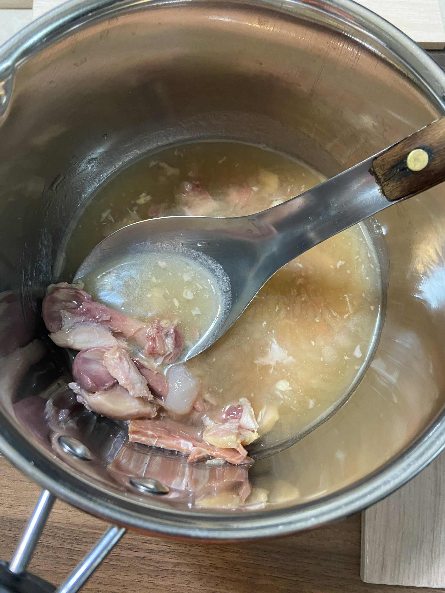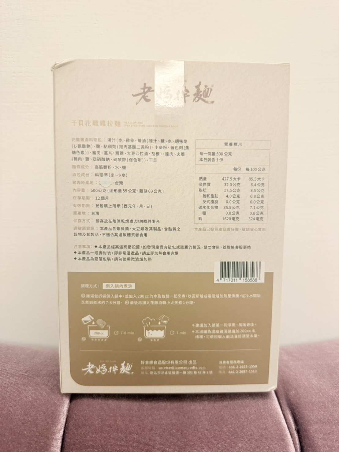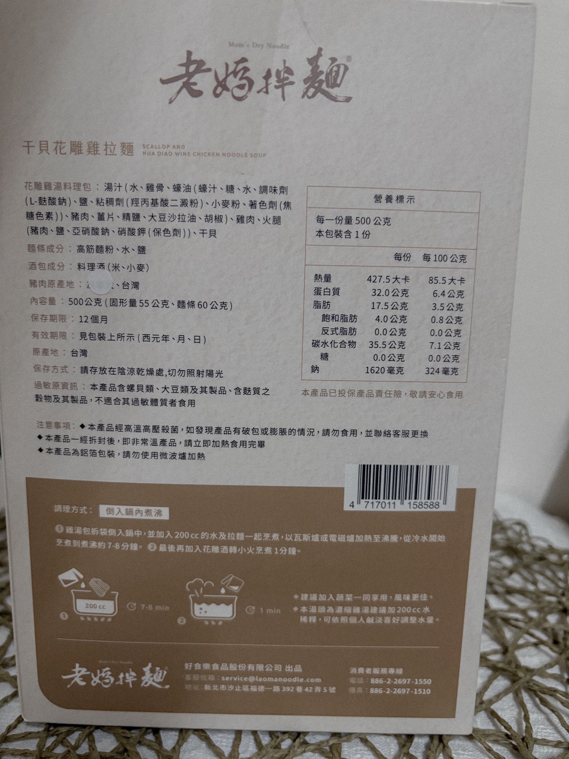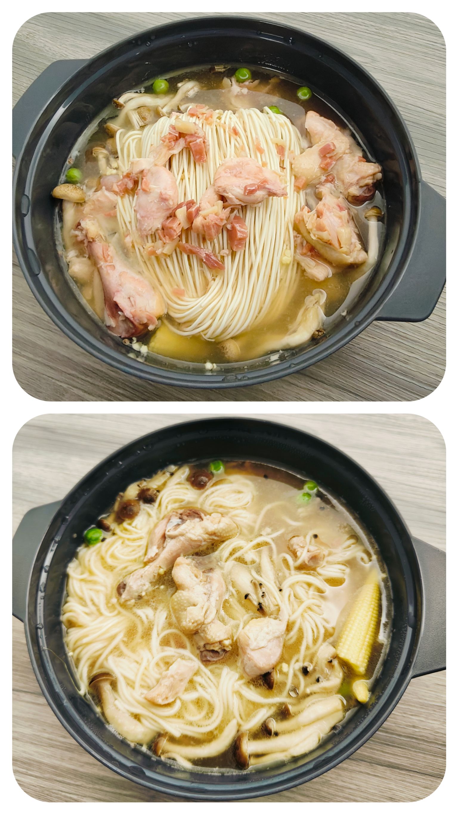 湯汁(水、雞骨、蠔油(蠔汁、糖、水、調味劑(L-麩酸鈉)、鹽、粘稠劑(羥丙基酸二澱粉)、小麥粉、著色劑(焦糖色素))、豬肉、薑片、精鹽、大豆沙拉油、胡椒)、雞肉、火腿(豬肉、鹽、亞硝酸鈉、硝酸鉀(保色劑))、干貝