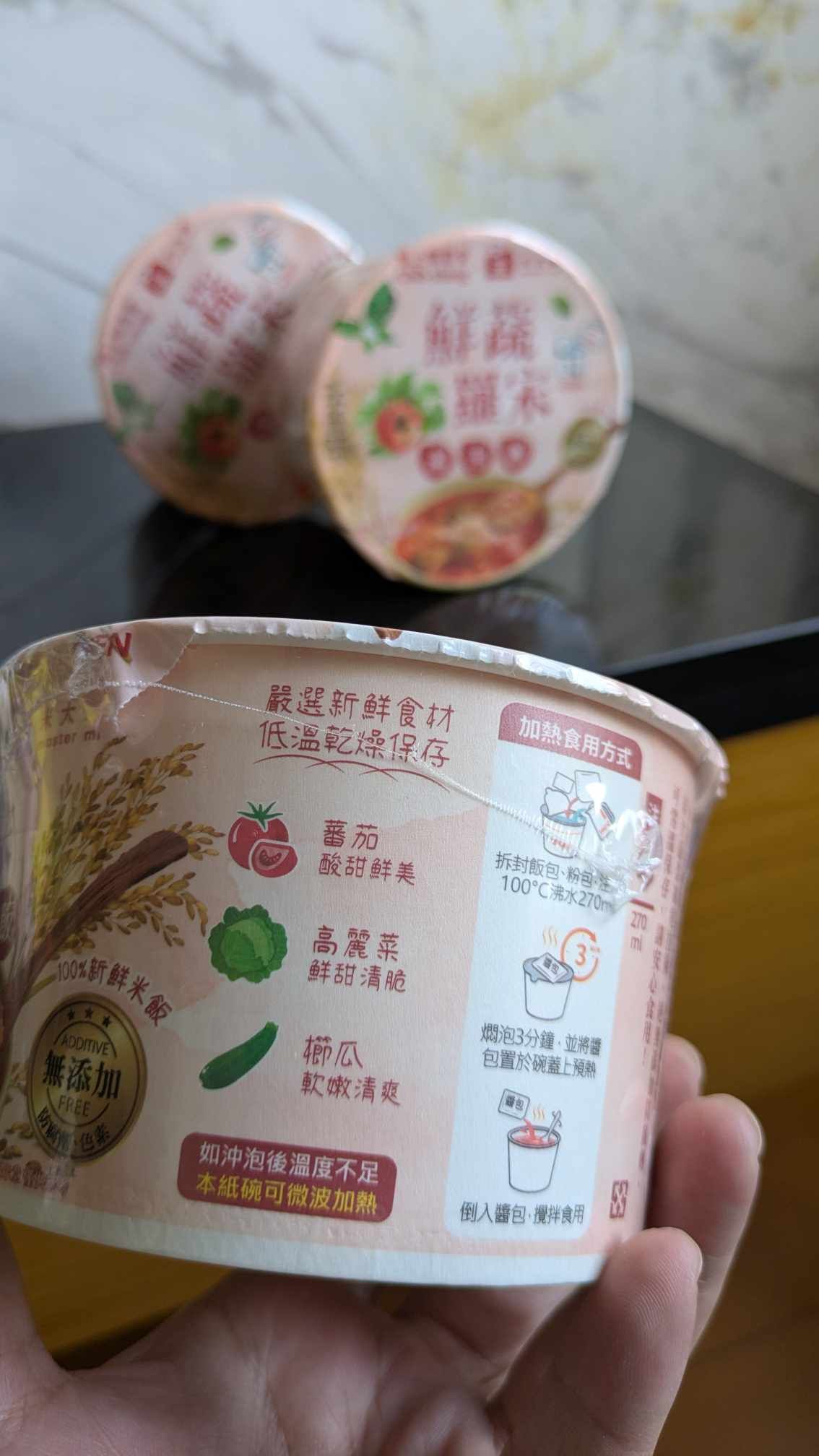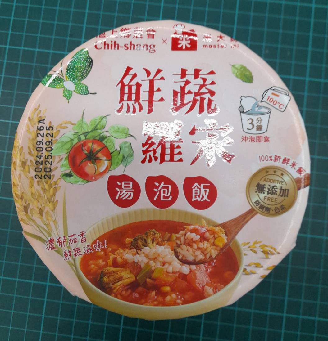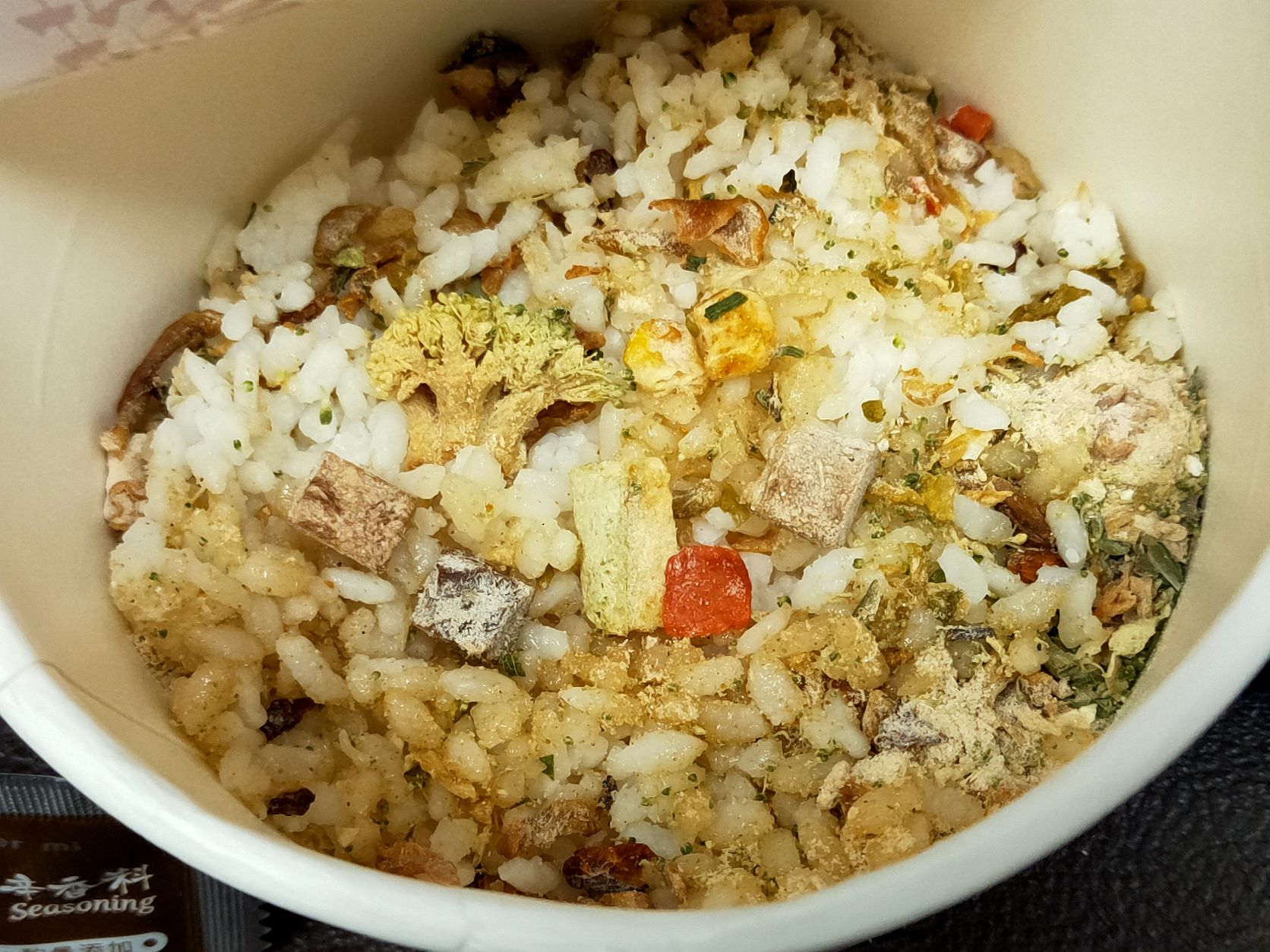 【飯包】水、白米、玄米油、米醋 ( 糯米、水 ) 【醬包】番茄醬 [ 水、番茄糊、蔗糖、釀造醋、食鹽、辛香料( 白胡椒、肉桂、紅辣椒、薑、丁香、肉豆蔻、月桂葉、眾香子 )、切角番茄 ( 番茄、番茄汁、檸檬酸 )、番茄糊、蔗糖、洋蔥、香料 { 牛肉萃取物 [ 牛肉 ( 產地:巴拉圭 )、水、乳糖、麥芽糊精 ]、碘鹽、牛肉熱反應香料 ( 牛油、葡萄糖、脂肪酸蔗糖酯、蒜粉、洋蔥粉、香料、陳皮末、DL-胺基丙酸、八角粉、花椒末、荳蔻末、小茴末、油桂末、丁香末、檸檬酸鈉 )、水解植物蛋白、酵母抽出物、胺基乙酸、關華豆膠、呈味核甘酸二鈉 ( 5'–鳥嘌呤核苷磷酸二鈉、5'–次黃嘌呤核苷磷酸二鈉 )、琥珀酸二鈉 ]、香料 ( 棕櫚油、大豆油、蔥萃取物 )、香料 ( 葵花油、紅椒萃取物 )、辛香料 ( 奧勒岡葉、羅勒葉、迷迭香葉、蒜粒、辣椒、馬郁蘭葉、洋香菜葉 ) 【蔬菜調味粉包】脫水高麗菜 ( 高麗菜、葡萄糖 )、複方調味粉 [ 鹽、L-麩酸鈉、糖、牛肉 ( 原產地:紐西蘭)、麥芽糊精、辛香料 ( 蔥、薑、桂皮 )、胺基乙酸、DL-胺基丙酸、5'–次黃嘌呤核苷磷酸二鈉、5'–鳥嘌呤核苷磷酸二鈉、香料、二氧化矽、牛油、檸檬酸 ]、乾燥牛肉 [ 牛肉 ( 原產地:澳洲、紐西蘭 )、玉米澱粉、鹽、味精、特磷素、混合濃生育醇 ]、複方調味粉 ( 麥芽糊精、鹽、L-麩酸鈉、糖、雞肉抽出物、5'–次黃嘌呤核苷磷酸二鈉、5'–鳥嘌呤核苷磷酸二鈉、玉米澱粉、軟質棕油、二氧化矽、檸檬酸、胺基乙酸、DL-胺基丙酸、洋蔥粉、香料 )、乾燥青花菜、調味劑 ( L-麩酸鈉、胺基乙酸、琥珀酸二鈉、碘鹽、DL-胺基丙酸、5'–鳥嘌呤核苷磷酸二鈉、5'–次黃嘌呤核苷磷酸二鈉、二氧化矽 )、食鹽、乾燥甜玉米粒、脫水紅蘿蔔、香料 ( 乳糖、葵花油、大蒜香料、芥花油、二氧化矽 )、乾燥櫛瓜、脫水青蔥、非活性酵母、香芹粉、二氧化矽 【胡椒粉包】黑胡椒