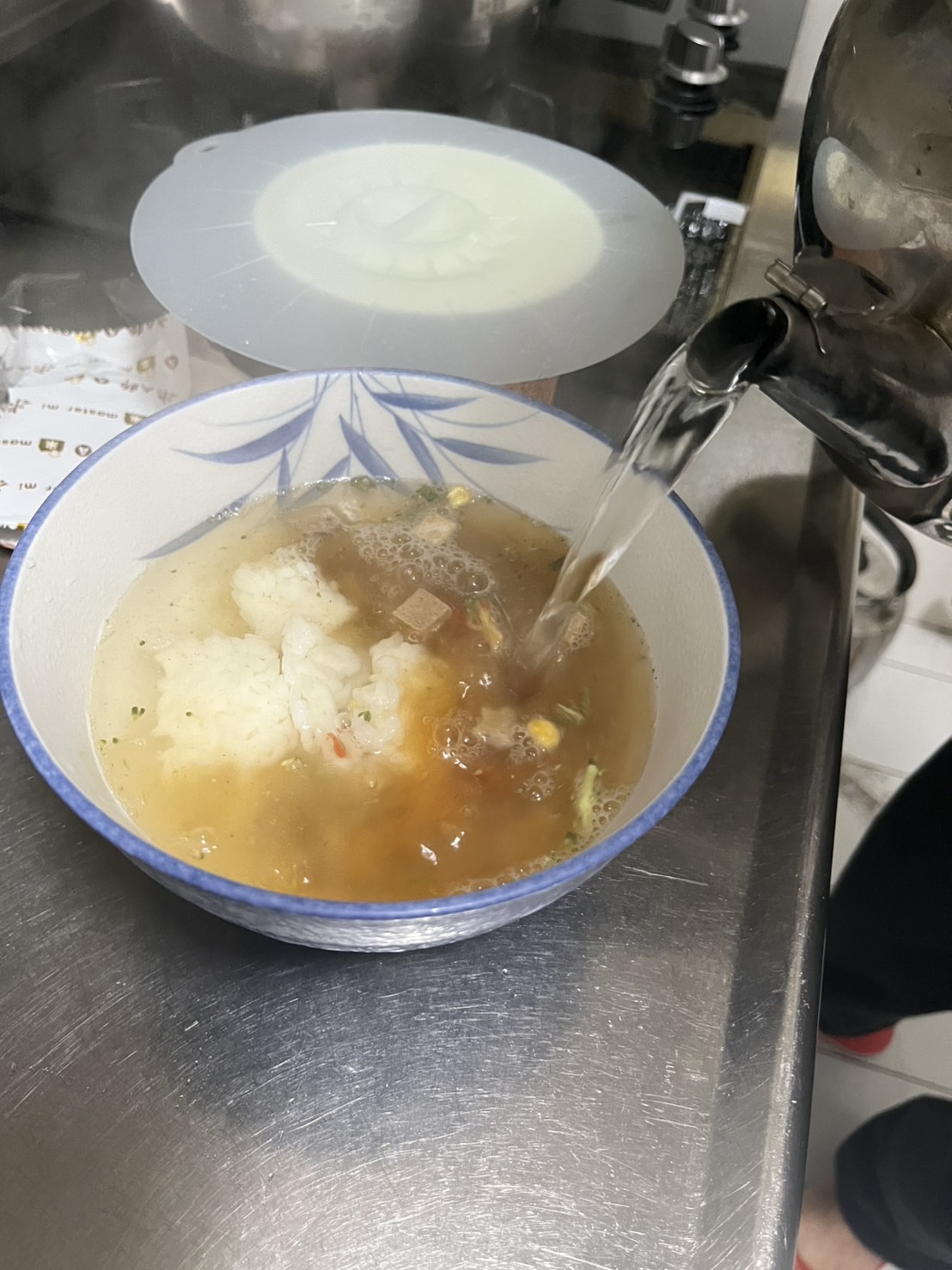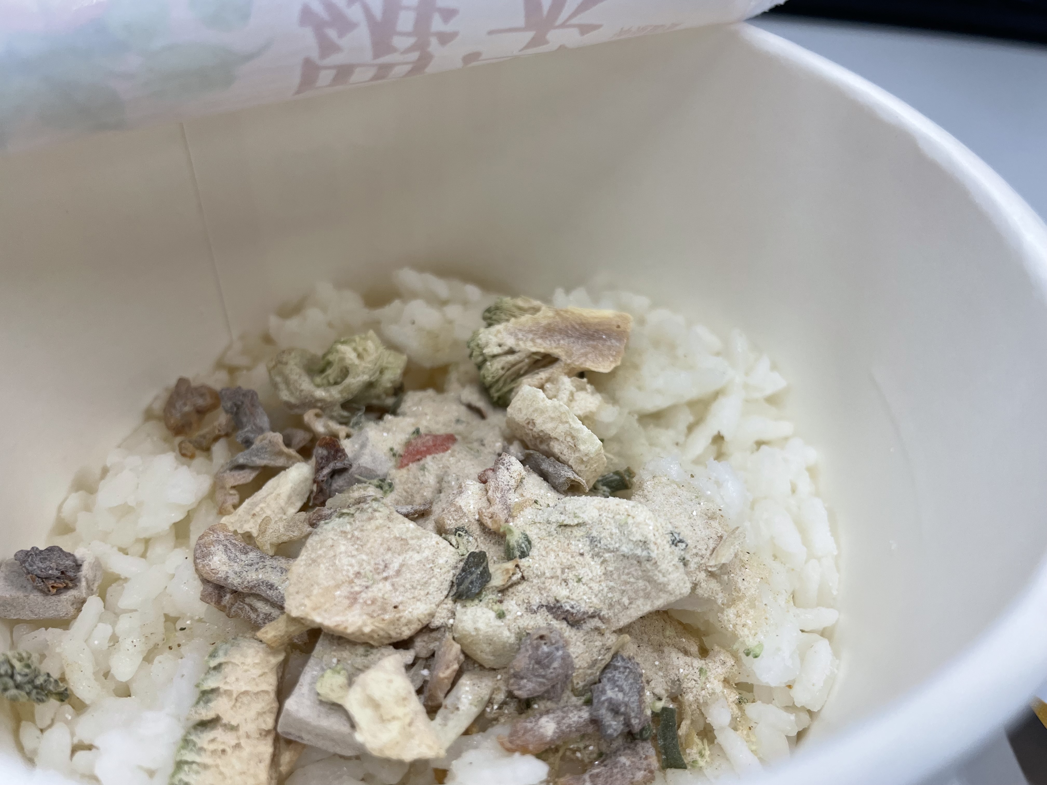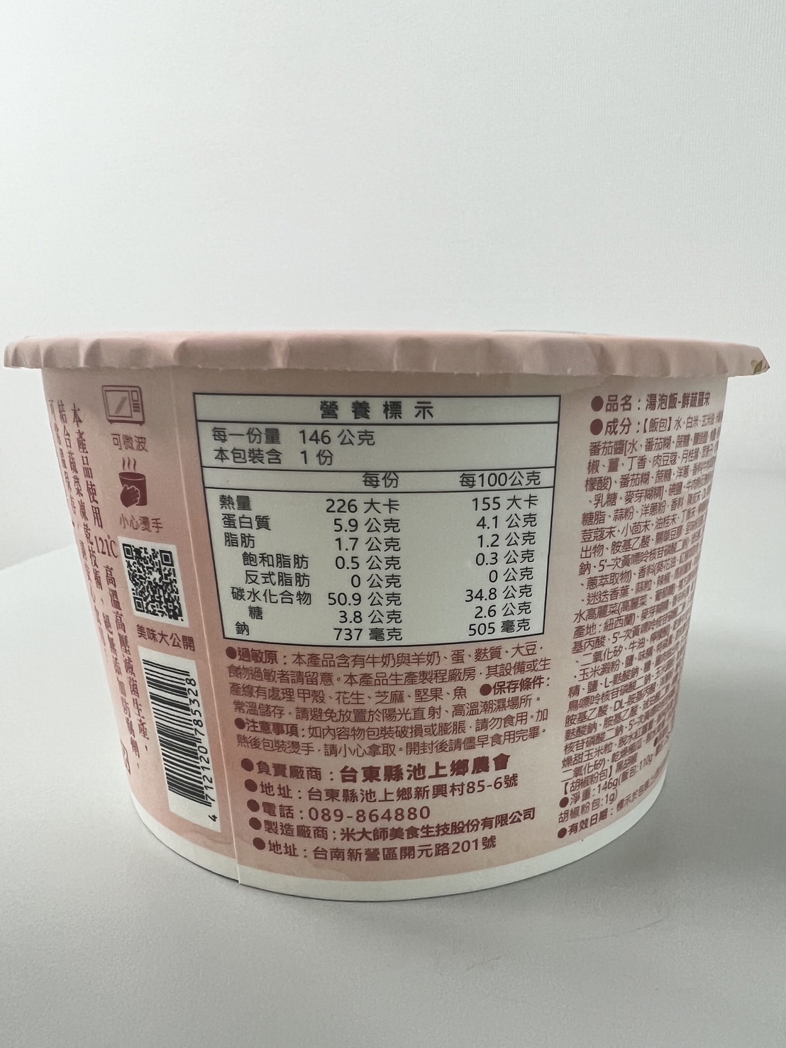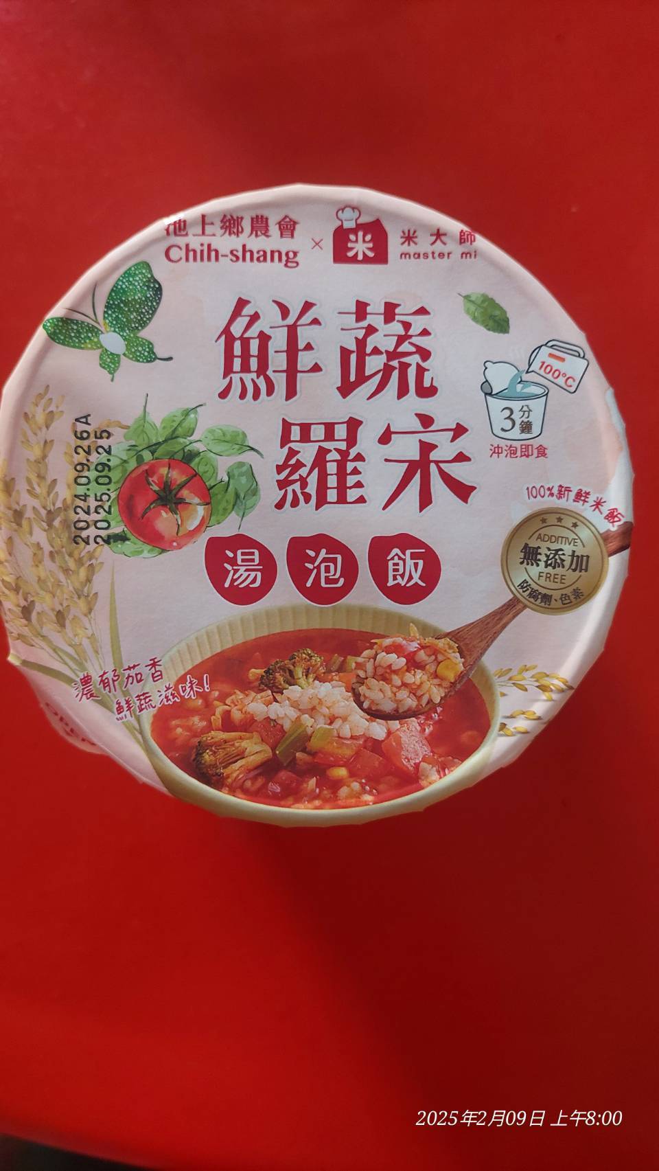 【飯包】水、白米、玄米油、米醋 ( 糯米、水 ) 【醬包】番茄醬 [ 水、番茄糊、蔗糖、釀造醋、食鹽、辛香料( 白胡椒、肉桂、紅辣椒、薑、丁香、肉豆蔻、月桂葉、眾香子 )、切角番茄 ( 番茄、番茄汁、檸檬酸 )、番茄糊、蔗糖、洋蔥、香料 { 牛肉萃取物 [ 牛肉 ( 產地:巴拉圭 )、水、乳糖、麥芽糊精 ]、碘鹽、牛肉熱反應香料 ( 牛油、葡萄糖、脂肪酸蔗糖酯、蒜粉、洋蔥粉、香料、陳皮末、DL-胺基丙酸、八角粉、花椒末、荳蔻末、小茴末、油桂末、丁香末、檸檬酸鈉 )、水解植物蛋白、酵母抽出物、胺基乙酸、關華豆膠、呈味核甘酸二鈉 ( 5'–鳥嘌呤核苷磷酸二鈉、5'–次黃嘌呤核苷磷酸二鈉 )、琥珀酸二鈉 ]、香料 ( 棕櫚油、大豆油、蔥萃取物 )、香料 ( 葵花油、紅椒萃取物 )、辛香料 ( 奧勒岡葉、羅勒葉、迷迭香葉、蒜粒、辣椒、馬郁蘭葉、洋香菜葉 ) 【蔬菜調味粉包】脫水高麗菜 ( 高麗菜、葡萄糖 )、複方調味粉 [ 鹽、L-麩酸鈉、糖、牛肉 ( 原產地:紐西蘭)、麥芽糊精、辛香料 ( 蔥、薑、桂皮 )、胺基乙酸、DL-胺基丙酸、5'–次黃嘌呤核苷磷酸二鈉、5'–鳥嘌呤核苷磷酸二鈉、香料、二氧化矽、牛油、檸檬酸 ]、乾燥牛肉 [ 牛肉 ( 原產地:澳洲、紐西蘭 )、玉米澱粉、鹽、味精、特磷素、混合濃生育醇 ]、複方調味粉 ( 麥芽糊精、鹽、L-麩酸鈉、糖、雞肉抽出物、5'–次黃嘌呤核苷磷酸二鈉、5'–鳥嘌呤核苷磷酸二鈉、玉米澱粉、軟質棕油、二氧化矽、檸檬酸、胺基乙酸、DL-胺基丙酸、洋蔥粉、香料 )、乾燥青花菜、調味劑 ( L-麩酸鈉、胺基乙酸、琥珀酸二鈉、碘鹽、DL-胺基丙酸、5'–鳥嘌呤核苷磷酸二鈉、5'–次黃嘌呤核苷磷酸二鈉、二氧化矽 )、食鹽、乾燥甜玉米粒、脫水紅蘿蔔、香料 ( 乳糖、葵花油、大蒜香料、芥花油、二氧化矽 )、乾燥櫛瓜、脫水青蔥、非活性酵母、香芹粉、二氧化矽 【胡椒粉包】黑胡椒