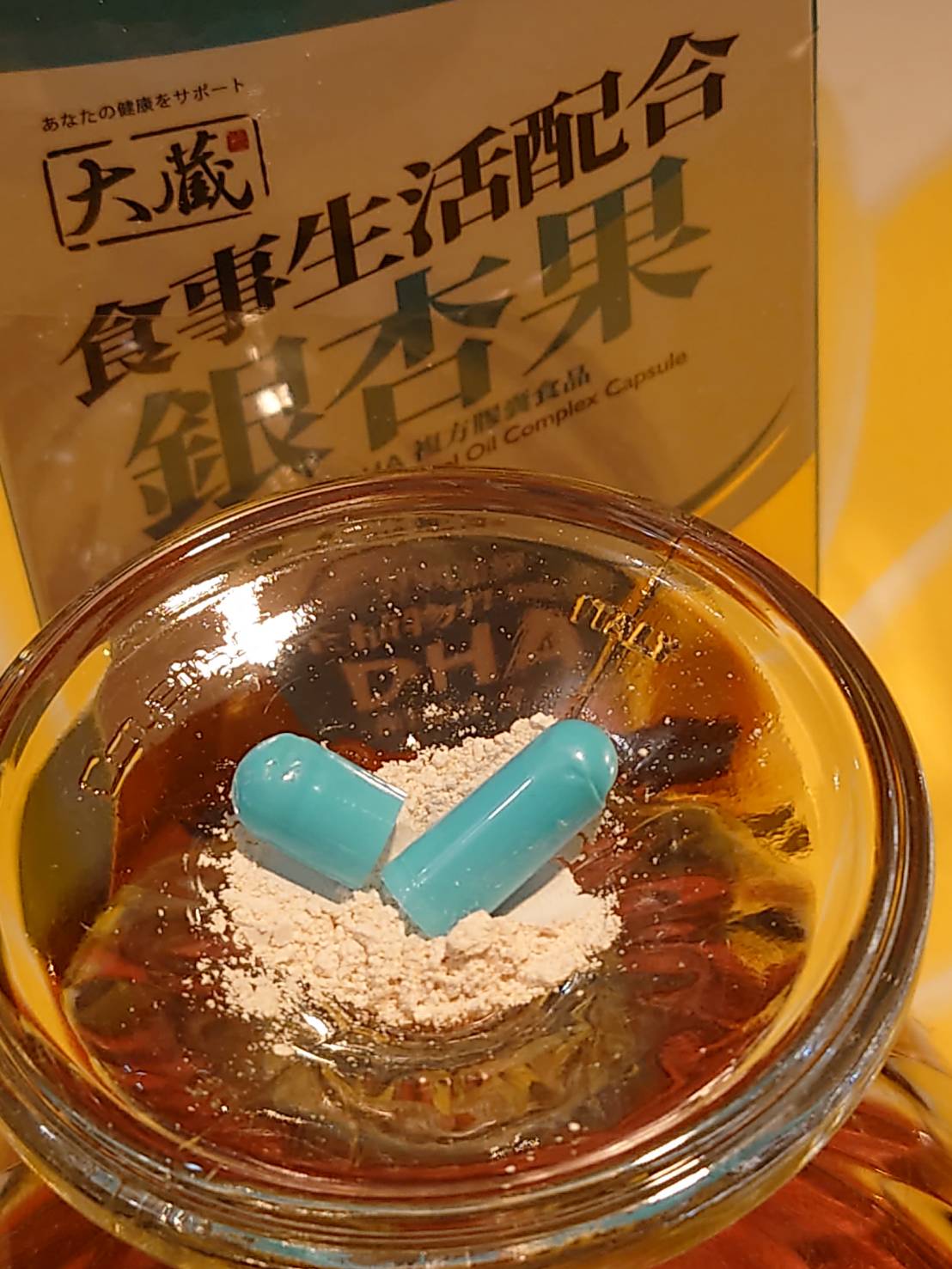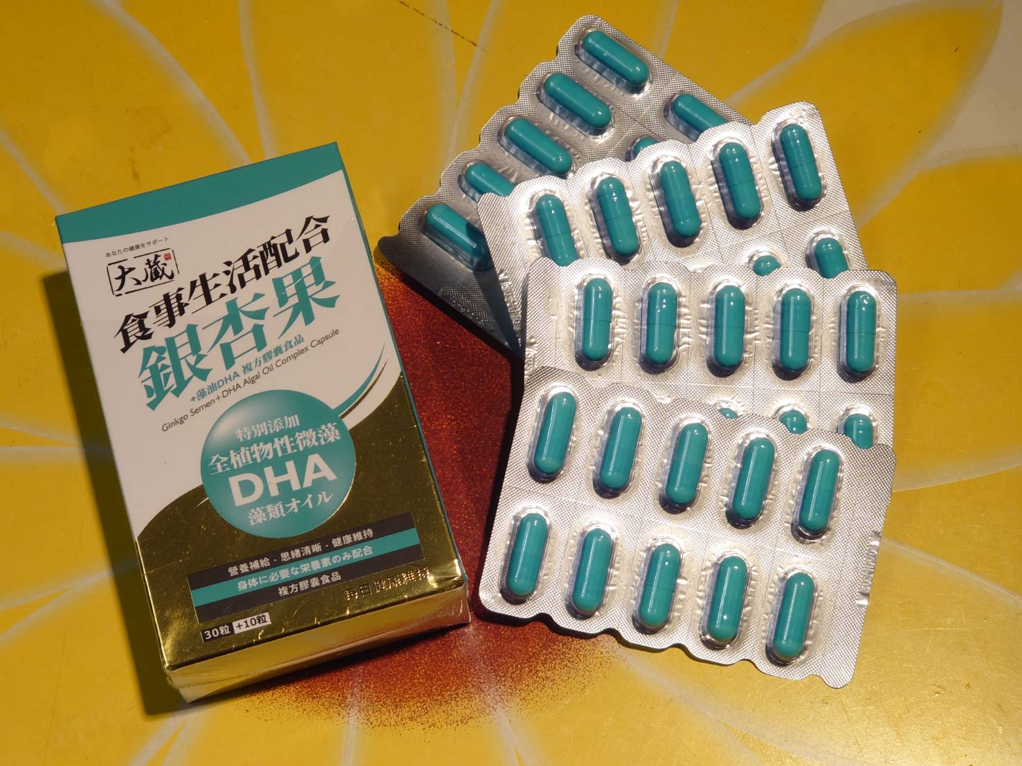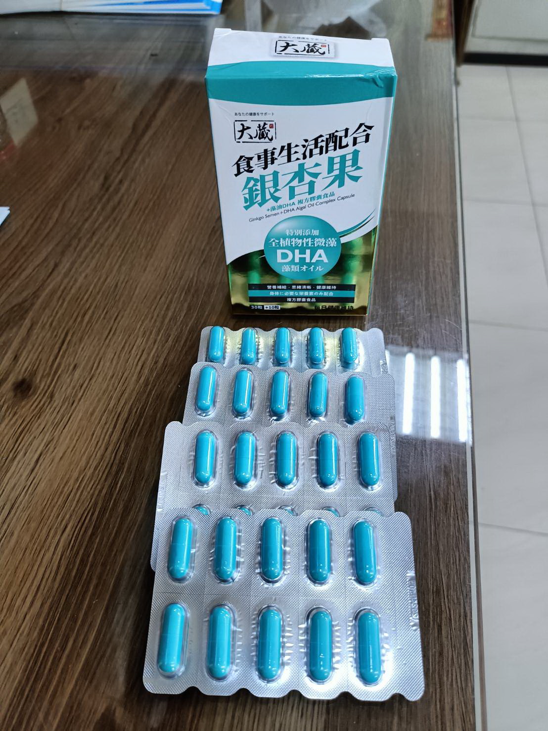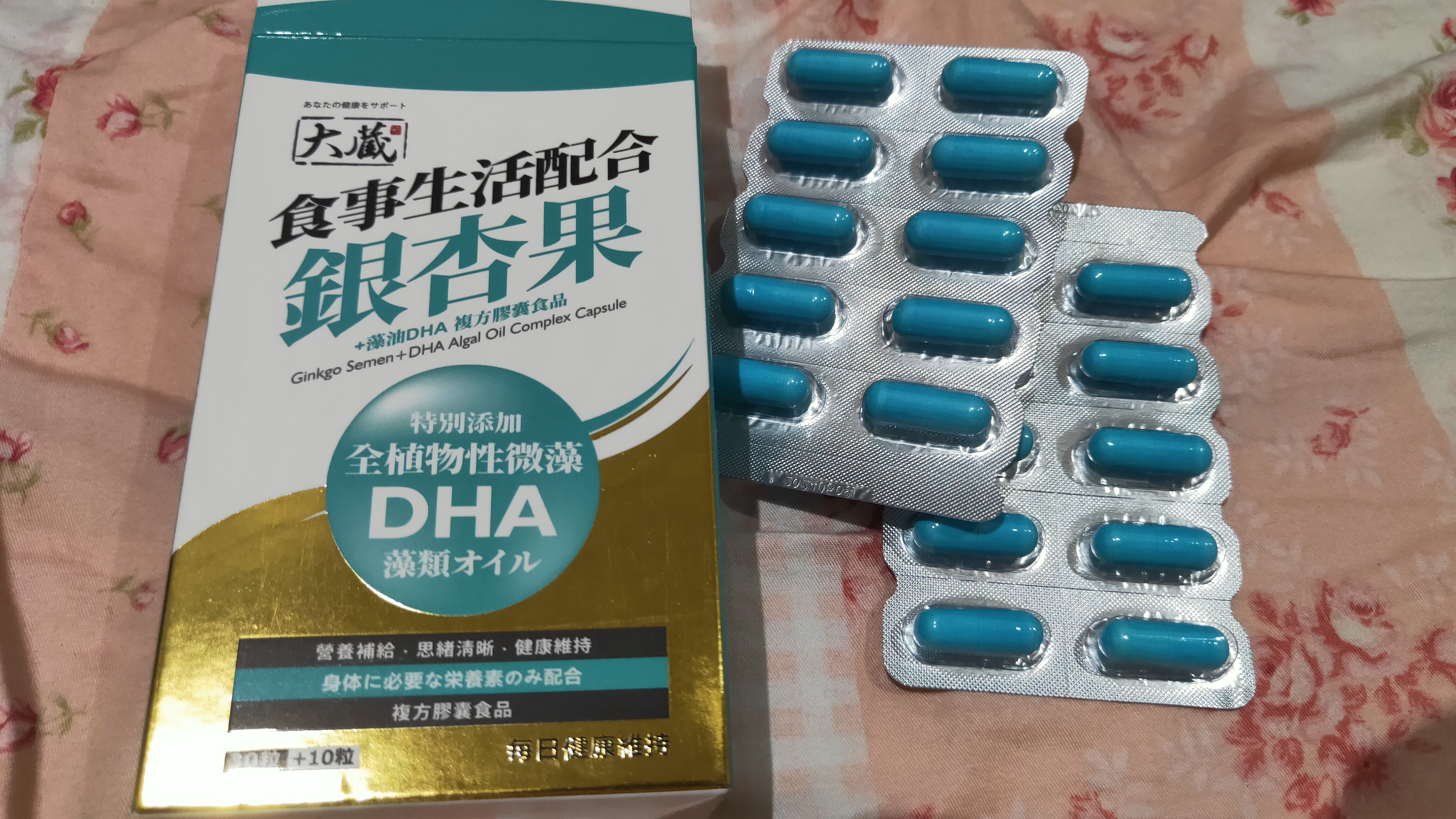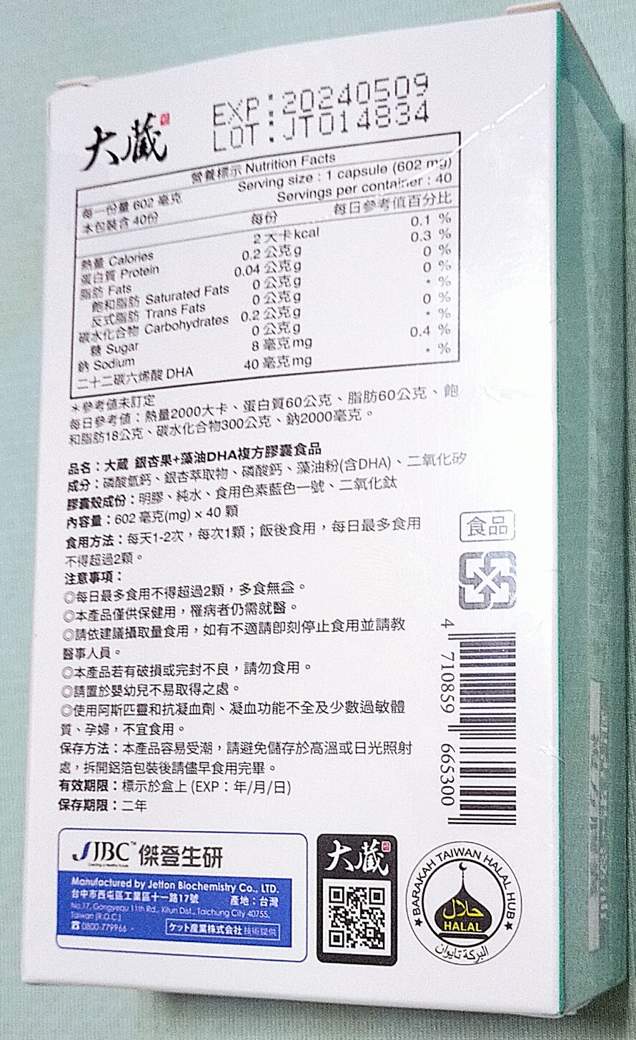 磷酸二鈣、銀杏萃取物、磷酸三鈣、藻油粉 (含40% DHA)、二氧化矽。