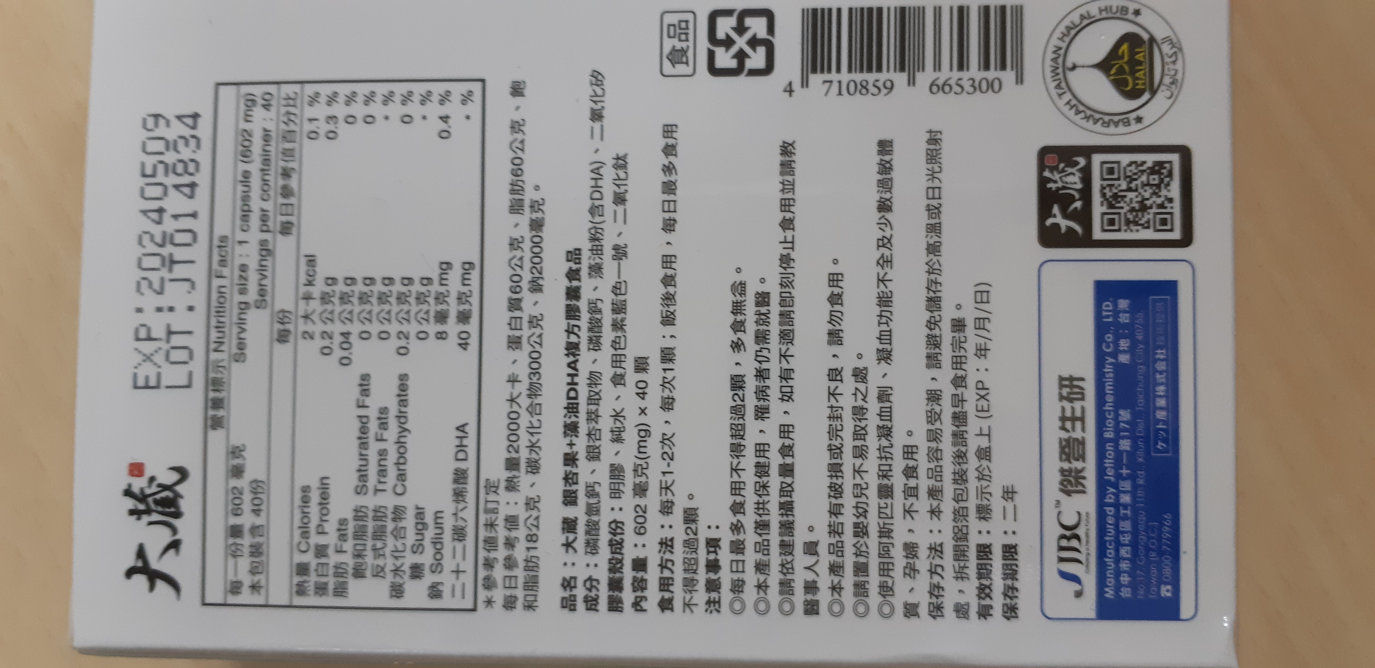 | 試用產品規格 | 1盒(602mg X 40 顆/盒) |