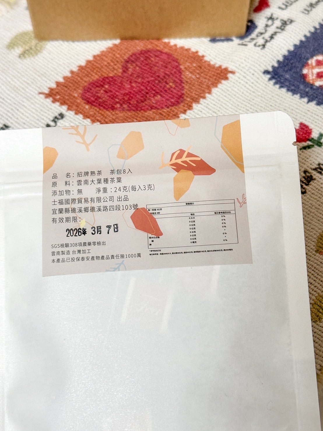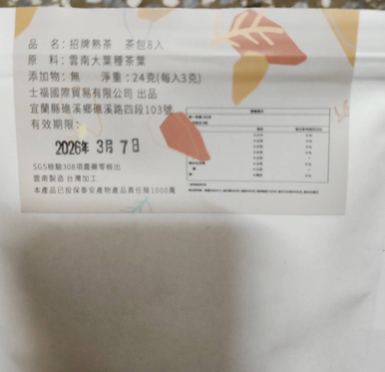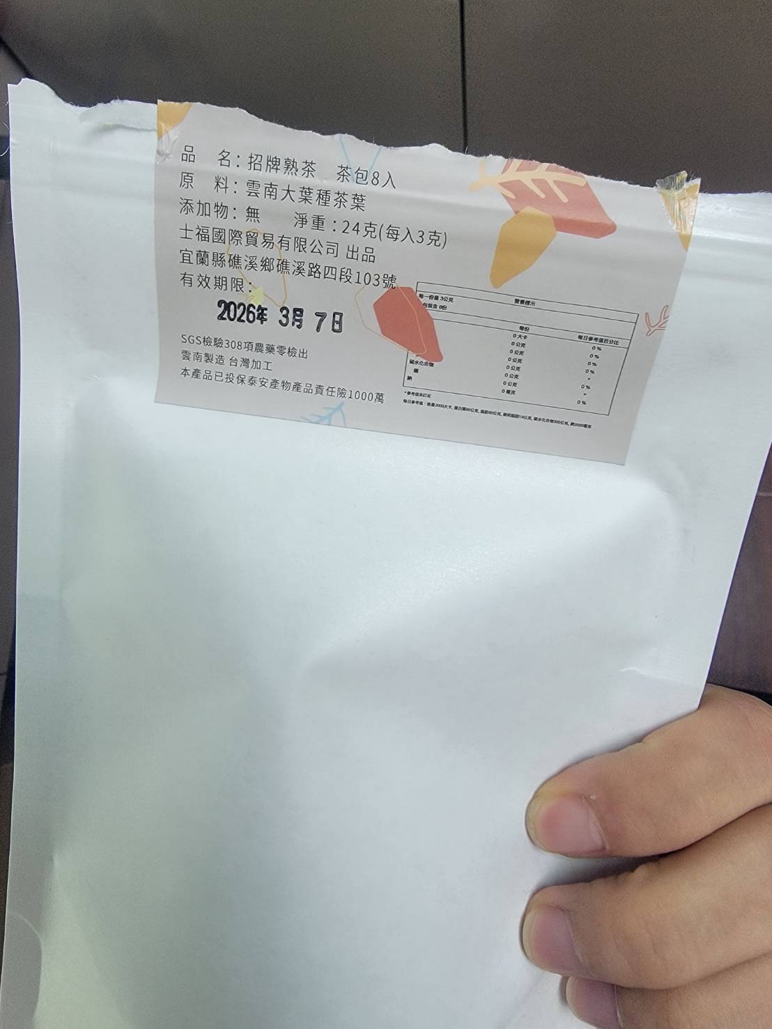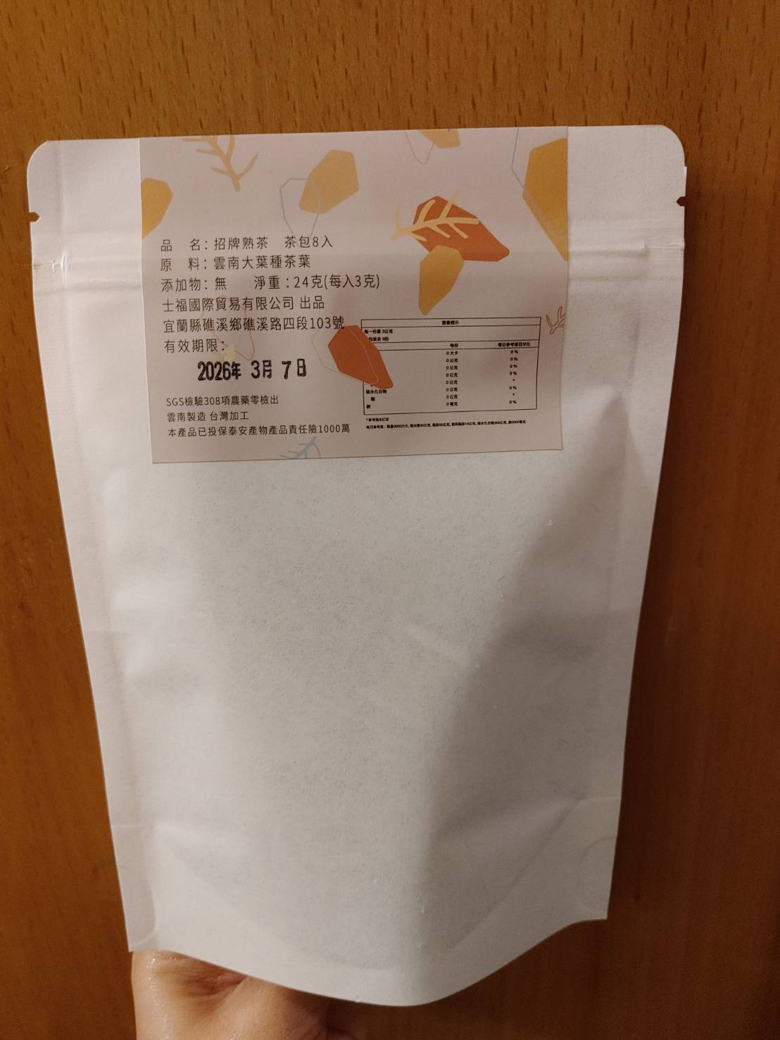 回列表 士福 招牌熟茶 茶包8入 來體驗真正普洱茶該有的溫潤陳香和回甘韻味 市價$200元(免費申請) 所需等級 一般會員以上 所需學分 30 體驗份數 60 關注人數 1050 申請人數 302 申請截止 品牌業者:水屋厚茶 負責廠商 士福國際貿易有限公司 廠商地址 宜蘭縣礁溪鄉礁溪路四段103號 產地 臺灣 試用產品規格 3g*8/包 食品業者登錄字號 G-124642659-00000-2 投保產品責任險字號 07 062212C10222 心得分享 商品介紹 商品成分 使用方法 注意事項 體驗名單 8.7 士福 招牌熟茶 茶包8入 來體驗真正普洱茶該有的溫潤陳香和回 回甘不苦澀 8.9 體感舒適度 8.7 沒有霉味 9.1 茶包的耐泡度高 8.9 建議推薦 8.7 心得分享 59則 闕素純 金食達人 58歲 新北市 2024/06/27 對士福 招牌熟茶 茶包8入 來體驗真正普洱茶該有的溫潤陳香和回留下評價 10 根據研究顯示,普洱消脂素能夠增強腸道蠕動,促進消化,有助於改善腸道健康和防治肥胖症。 此外,普洱消脂素還具有抗氧化、抗炎、降血壓、預防心血管疾病等作用。 總之,喝普洱茶可以提神醒腦、幫助減肥、好處多多,但是一般普洱茶餅,要喝的時候,都會聞到一股霉味,這次收到的士福招牌熟茶-普洱茶包,沖泡很簡單,只要有馬克杯或保溫杯,裝好熱開水,放入一個茶包,就能輕鬆享用一杯好茶,還能依照各人喜好濃度回沖,完全沒有難聞的霉味,茶湯芳醇甜潤,帶有怡人荷香,推薦給喜愛喝茶的大家,一定要試試看喔~ 洪鼎軒 金食達人 31歲 臺中市 2024/06/27 對士福 招牌熟茶 茶包8入 來體驗真正普洱茶該有的溫潤陳香和回留下評價 10 今天喜獲由食力公司寄送:品名:招牌熟茶提供廠商:士褔國際貿易有限公司試喝心得: 來自雲南大葉種普洱茶葉,用宜興壺溫泡,泡出純厚的參香氣,喝入口中回甘,甜潤厚實,溫胃。普洱茶中天然的酵素和微生物,可以幫助促進腸道的健康,並且減少脂肪的吸收,並減輕胃部不適和腹脹等問題。茶多酚有助於降低膽固醇水平,進而減少動脈硬化的風險。茶多酚一樣可以幫助降低心臟病的風險,並有助於保護心臟健康。 茶多酚和咖啡因有助於促進新陳代謝,幫助身體燃燒脂肪。說不出的滿足與幸福!#士褔普洱熟茶 Isa 金食達人 45歲 臺南市 2024/06/27 對士福 招牌熟茶 茶包8入 來體驗真正普洱茶該有的溫潤陳香和回留下評價 10 士福普洱/招牌熟茶,第一次看見普洱茶的茶包,普洱茶的茶包,感覺很方便,畢竟普洱的茶葉本就比一般茶葉細,做成立體茶包,就茶具的清潔上真的省事許多…(至少對比較懶惰的我而言,真的方便得很阿)茶味清純,沒有什麼霉味,茶湯的茶色很純、偏紅,味道不苦澀,還蠻順口的,耐泡度還可以。包裝還不錯,簡單的外包裝,乾乾淨淨的感覺,8入小包裝,很快就可以喝完,不容易受潮,也算是方便保存,很適合沒喝過、想試試普洱茶風味的人,也很方便攜帶,有SGS檢驗無農藥,感覺安全有保障。 朱育瑩 鑽石達人 39歲 彰化縣 2024/06/28 對士福 招牌熟茶 茶包8入 來體驗真正普洱茶該有的溫潤陳香和回留下評價 10 感謝士福抽中此次試用機會,「招牌熟茶」普洱茶,原本以為喝起來會苦澀,但實際沖泡之後,喝起來很順口,還帶有淡淡的茶葉香氣,不再是以前印象中普洱茶的苦澀味道,當用熱水沖泡下去時,就會有一股茶香開始四溢,有股清香,對於喜好品茗之士,可以嘗試看看喔! 產品還有附上沖泡的方法,對於初次嘗試的人,提供一個良好的體驗機會。我個人喜愛普洱茶浸泡久一點,讓茶香較濃、茶色較深一點,但是有時會造成苦澀味很重,然而這款「招牌熟茶」及時浸泡久了也不會苦澀且爽口、回甘,還可以回泡個兩三次,真的是物超所值。 YU 金食達人 39歲 高雄市 2024/06/28 對士福 招牌熟茶 茶包8入 來體驗真正普洱茶該有的溫潤陳香和回留下評價 10 士福 招牌熟茶(普洱茶) 茶包8入來源: 雲南普洱茶(中國)內容: 裸三角茶包茶包材質:PLA玉米澱粉普洱熟茶,有著熟茶孕有溫潤醇厚的口感,絲滑的茶湯流入口中,回甘於口舌中製作茶葉也是一門學問,士福有自己的茶葉精製場,不是委託他人代工,茶品都會送驗,可安心享用士福說熟茶因經過渥堆,咖啡因會在渥堆的過程中被降解,加上時間存放,大部分的熟茶咖啡因都是偏低的士福之前還有出過茶膠囊,是一個有創意的品牌 蘇泱毓 鑽石達人 26歲 臺北市 2024/06/30 對士福 招牌熟茶 茶包8入 來體驗真正普洱茶該有的溫潤陳香和回留下評價 10 這次試用的是士福普洱茶的招牌熟茶,是雲南產的大葉種茶。想說喝茶對身體好沒有熱量,沒想到就抽中了,開心~我對茶的印象一般都是不適合空腹喝,因為蠻澀的,同時也解油膩。第一次喝這款茶我是放在飯後喝,蠻意外它喝起來沒有任何澀感(當然感覺解膩效果就沒那麼好),腸胃不會有任何不適感(舒適度有),才理解為何說明書上會說「隨時都可以喝」,而非「不適合空腹飲用」哈哈~查了一下熟茶顏色會比較深,第一次泡顏色比紅茶還深黑!我自己覺得沖泡三次都還是有味道附圖為第一ㄧ泡跟第三泡),但第四次之後味道會淡一些,應該算耐泡(平常只沖兩次)?。味道的部分感覺很溫和,不知為何有種泡溫泉喝的那種味道?包裝的部分是三角的茶包,線的部分有沾在茶包上要拉開一下(有兩個點)。整體推薦這個產品,給想喝茶的人。 吳瓊蕙 金食達人 62歲 臺南市 2024/07/01 對士福 招牌熟茶 茶包8入 來體驗真正普洱茶該有的溫潤陳香和回留下評價 10 我有個同學以前在高雄崛江賣中國進