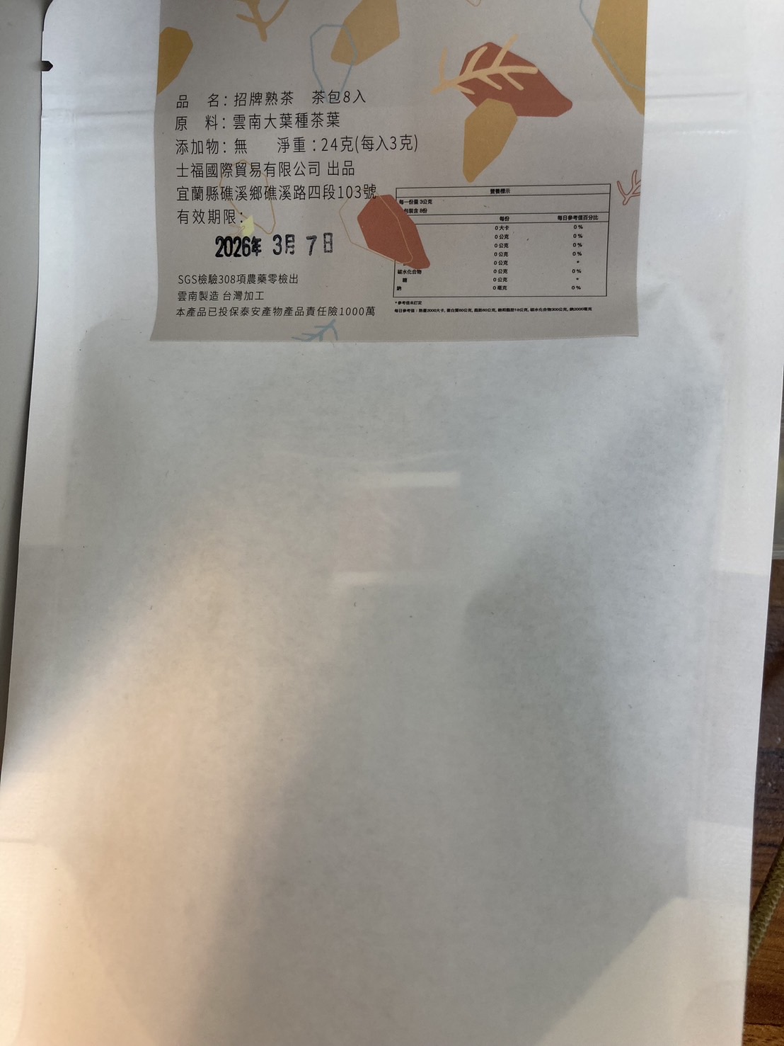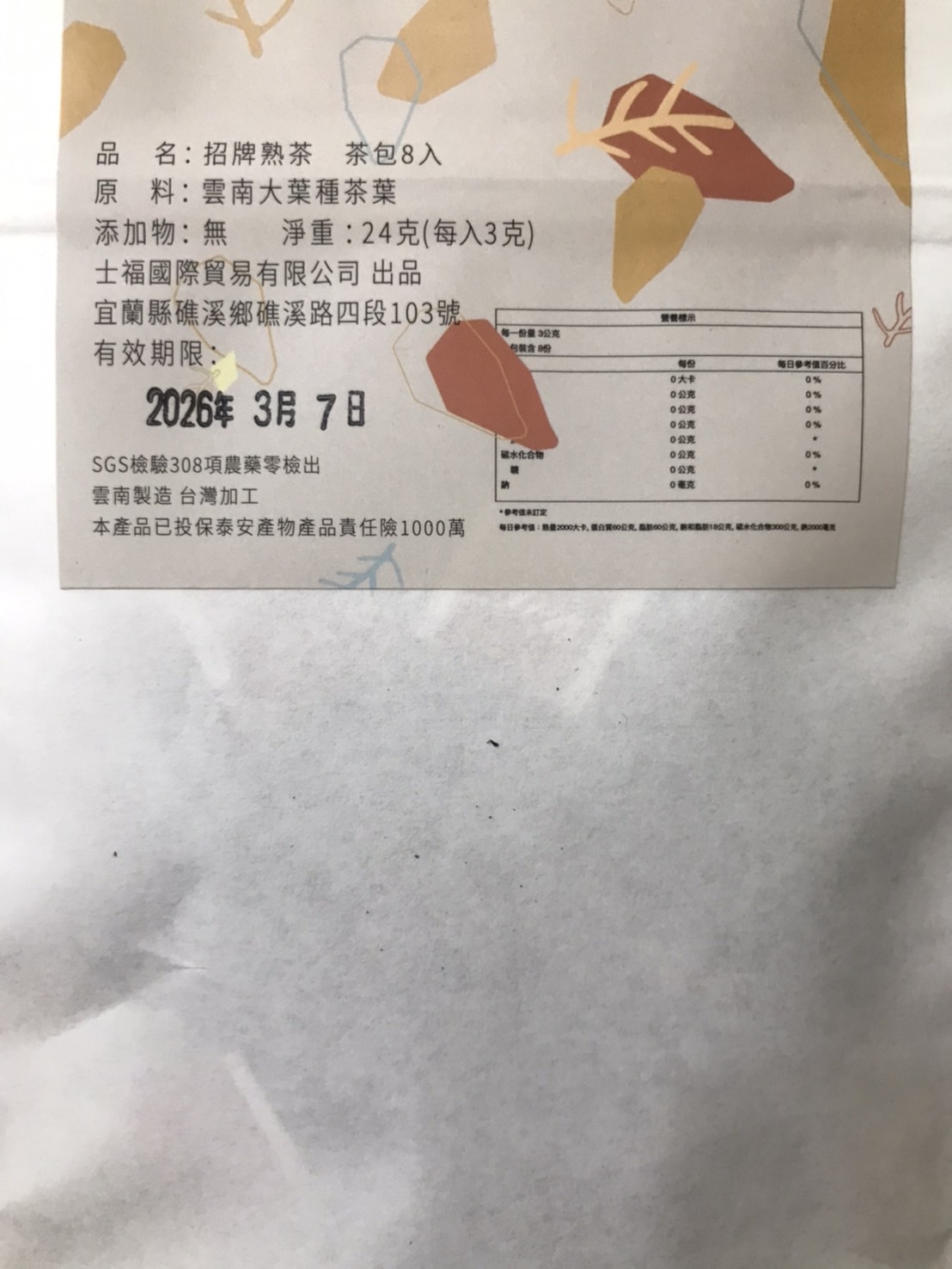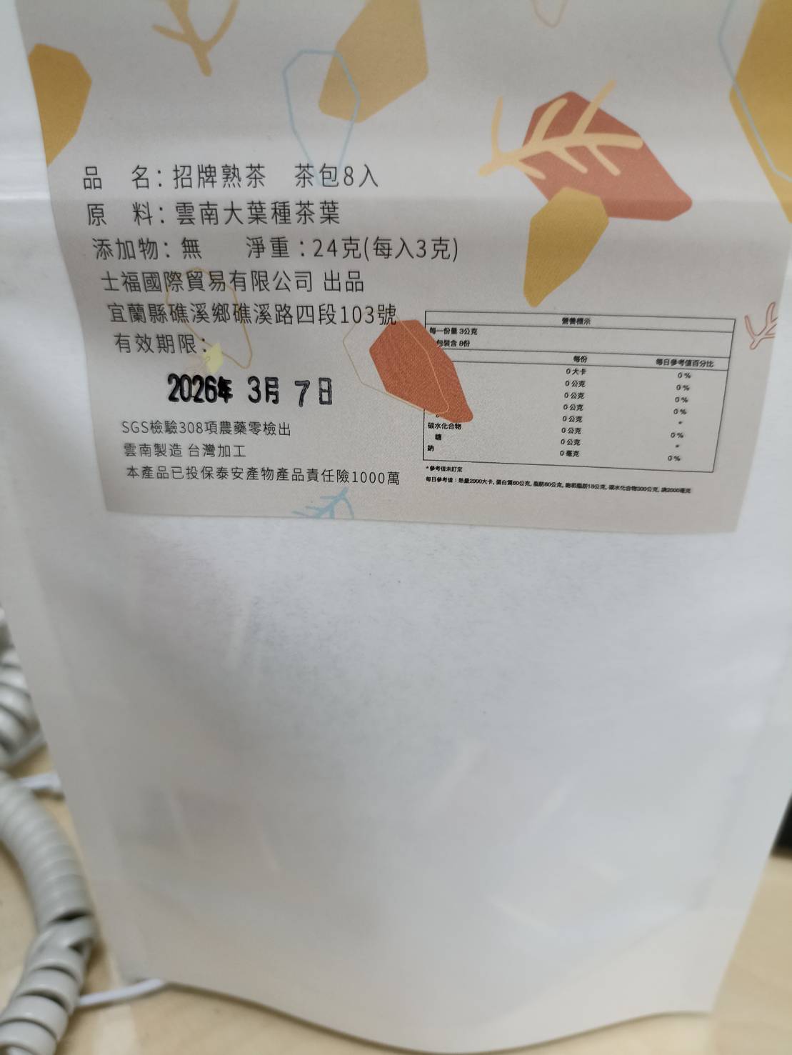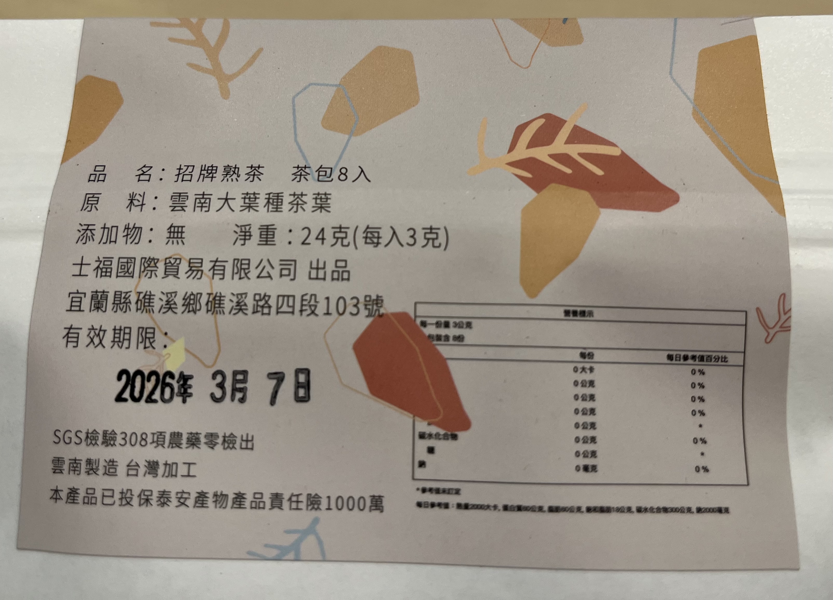 回列表 士福 招牌熟茶 茶包8入 來體驗真正普洱茶該有的溫潤陳香和回甘韻味 市價$200元(免費申請) 所需等級 一般會員以上 所需學分 30 體驗份數 60 關注人數 1050 申請人數 302 申請截止 品牌業者:水屋厚茶 負責廠商 士福國際貿易有限公司 廠商地址 宜蘭縣礁溪鄉礁溪路四段103號 產地 臺灣 試用產品規格 3g*8/包 食品業者登錄字號 G-124642659-00000-2 投保產品責任險字號 07 062212C10222 心得分享 商品介紹 商品成分 使用方法 注意事項 體驗名單 8.7 士福 招牌熟茶 茶包8入 來體驗真正普洱茶該有的溫潤陳香和回 回甘不苦澀 8.9 體感舒適度 8.7 沒有霉味 9.1 茶包的耐泡度高 8.9 建議推薦 8.7 心得分享 59則 闕素純 金食達人 58歲 新北市 2024/06/27 對士福 招牌熟茶 茶包8入 來體驗真正普洱茶該有的溫潤陳香和回留下評價 10 根據研究顯示,普洱消脂素能夠增強腸道蠕動,促進消化,有助於改善腸道健康和防治肥胖症。 此外,普洱消脂素還具有抗氧化、抗炎、降血壓、預防心血管疾病等作用。 總之,喝普洱茶可以提神醒腦、幫助減肥、好處多多,但是一般普洱茶餅,要喝的時候,都會聞到一股霉味,這次收到的士福招牌熟茶-普洱茶包,沖泡很簡單,只要有馬克杯或保溫杯,裝好熱開水,放入一個茶包,就能輕鬆享用一杯好茶,還能依照各人喜好濃度回沖,完全沒有難聞的霉味,茶湯芳醇甜潤,帶有怡人荷香,推薦給喜愛喝茶的大家,一定要試試看喔~ 洪鼎軒 金食達人 31歲 臺中市 2024/06/27 對士福 招牌熟茶 茶包8入 來體驗真正普洱茶該有的溫潤陳香和回留下評價 10 今天喜獲由食力公司寄送:品名:招牌熟茶提供廠商:士褔國際貿易有限公司試喝心得: 來自雲南大葉種普洱茶葉,用宜興壺溫泡,泡出純厚的參香氣,喝入口中回甘,甜潤厚實,溫胃。普洱茶中天然的酵素和微生物,可以幫助促進腸道的健康,並且減少脂肪的吸收,並減輕胃部不適和腹脹等問題。茶多酚有助於降低膽固醇水平,進而減少動脈硬化的風險。茶多酚一樣可以幫助降低心臟病的風險,並有助於保護心臟健康。 茶多酚和咖啡因有助於促進新陳代謝,幫助身體燃燒脂肪。說不出的滿足與幸福!#士褔普洱熟茶 Isa 金食達人 45歲 臺南市 2024/06/27 對士福 招牌熟茶 茶包8入 來體驗真正普洱茶該有的溫潤陳香和回留下評價 10 士福普洱/招牌熟茶,第一次看見普洱茶的茶包,普洱茶的茶包,感覺很方便,畢竟普洱的茶葉本就比一般茶葉細,做成立體茶包,就茶具的清潔上真的省事許多…(至少對比較懶惰的我而言,真的方便得很阿)茶味清純,沒有什麼霉味,茶湯的茶色很純、偏紅,味道不苦澀,還蠻順口的,耐泡度還可以。包裝還不錯,簡單的外包裝,乾乾淨淨的感覺,8入小包裝,很快就可以喝完,不容易受潮,也算是方便保存,很適合沒喝過、想試試普洱茶風味的人,也很方便攜帶,有SGS檢驗無農藥,感覺安全有保障。 朱育瑩 鑽石達人 39歲 彰化縣 2024/06/28 對士福 招牌熟茶 茶包8入 來體驗真正普洱茶該有的溫潤陳香和回留下評價 10 感謝士福抽中此次試用機會,「招牌熟茶」普洱茶,原本以為喝起來會苦澀,但實際沖泡之後,喝起來很順口,還帶有淡淡的茶葉香氣,不再是以前印象中普洱茶的苦澀味道,當用熱水沖泡下去時,就會有一股茶香開始四溢,有股清香,對於喜好品茗之士,可以嘗試看看喔! 產品還有附上沖泡的方法,對於初次嘗試的人,提供一個良好的體驗機會。我個人喜愛普洱茶浸泡久一點,讓茶香較濃、茶色較深一點,但是有時會造成苦澀味很重,然而這款「招牌熟茶」及時浸泡久了也不會苦澀且爽口、回甘,還可以回泡個兩三次,真的是物超所值。 YU 金食達人 39歲 高雄市 2024/06/28 對士福 招牌熟茶 茶包8入 來體驗真正普洱茶該有的溫潤陳香和回留下評價 10 士福 招牌熟茶(普洱茶) 茶包8入來源: 雲南普洱茶(中國)內容: 裸三角茶包茶包材質:PLA玉米澱粉普洱熟茶,有著熟茶孕有溫潤醇厚的口感,絲滑的茶湯流入口中,回甘於口舌中製作茶葉也是一門學問,士福有自己的茶葉精製場,不是委託他人代工,茶品都會送驗,可安心享用士福說熟茶因經過渥堆,咖啡因會在渥堆的過程中被降解,加上時間存放,大部分的熟茶咖啡因都是偏低的士福之前還有出過茶膠囊,是一個有創意的品牌 蘇泱毓 鑽石達人 26歲 臺北市 2024/06/30 對士福 招牌熟茶 茶包8入 來體驗真正普洱茶該有的溫潤陳香和回留下評價 10 這次試用的是士福普洱茶的招牌熟茶,是雲南產的大葉種茶。想說喝茶對身體好沒有熱量,沒想到就抽中了,開心~我對茶的印象一般都是不適合空腹喝,因為蠻澀的,同時也解油膩。第一次喝這款茶我是放在飯後喝,蠻意外它喝起來沒有任何澀感(當然感覺解膩效果就沒那麼好),腸胃不會有任何不適感(舒適度有),才理解為何說明書上會說「隨時都可以喝」,而非「不適合空腹飲用」哈哈~查了一下熟茶顏色會比較深,第一次泡顏色比紅茶還深黑!我自己覺得沖泡三次都還是有味道附圖為第一ㄧ泡跟第三泡),但第四次之後味道會淡一些,應該算耐泡(平常只沖兩次)?。味道的部分感覺很溫和,不知為何有種泡溫泉喝的那種味道?包裝的部分是三角的茶包,線的部分有沾在茶包上要拉開一下(有兩個點)。整體推薦這個產品,給想喝茶的人。 吳瓊蕙 金食達人 62歲 臺南市 2024/07/01 對士福 招牌熟茶 茶包8入 來體驗真正普洱茶該有的溫潤陳香和回留下評價 10 我有個同學以前在高雄崛江賣中國進