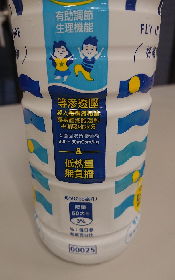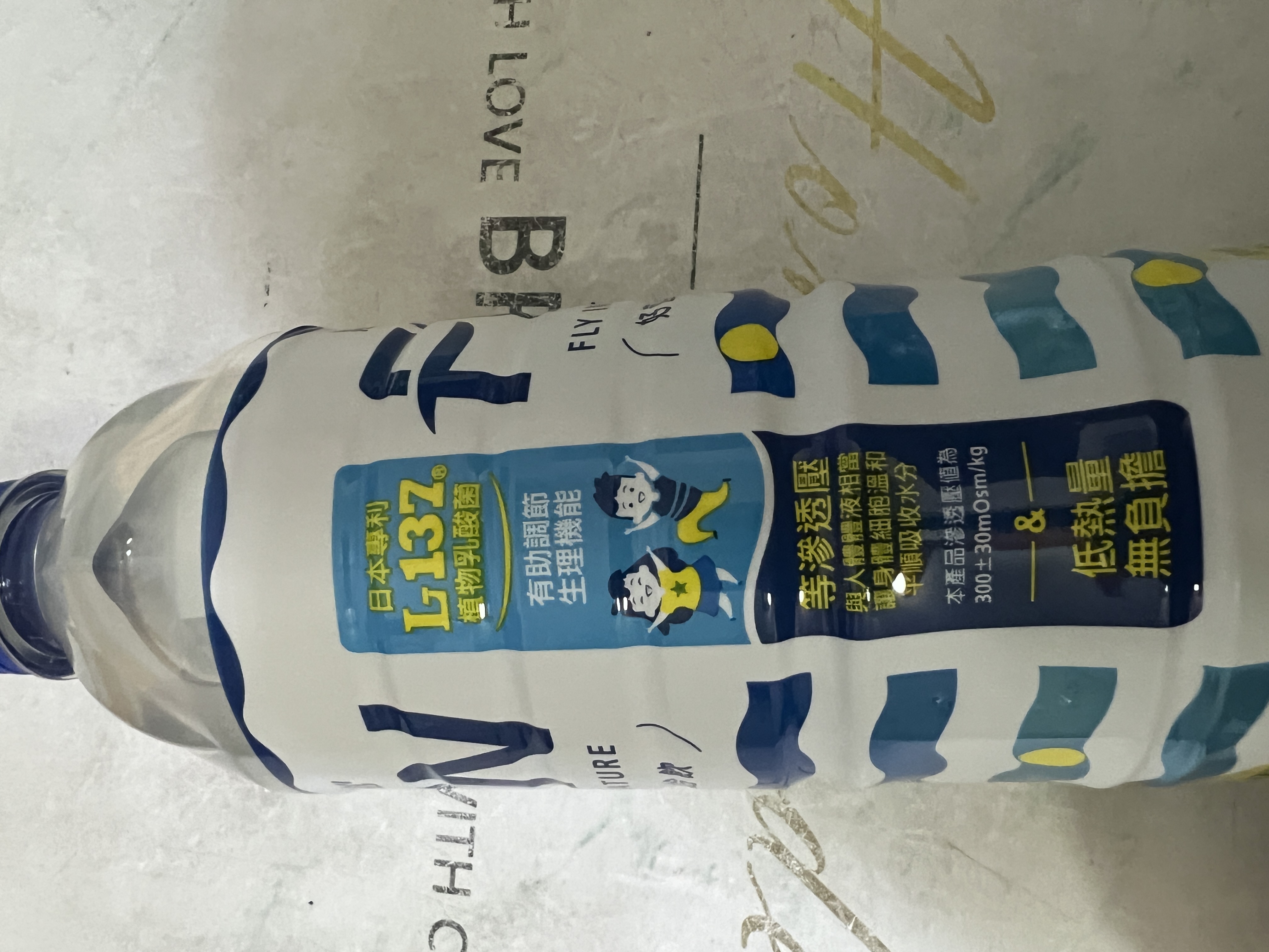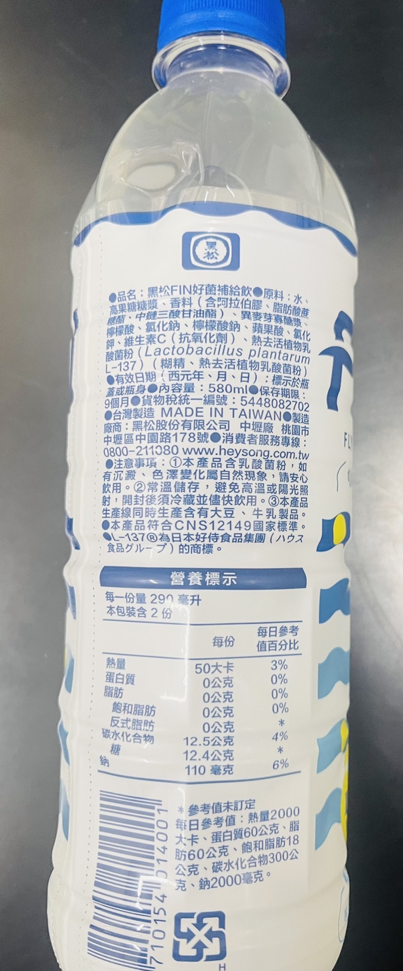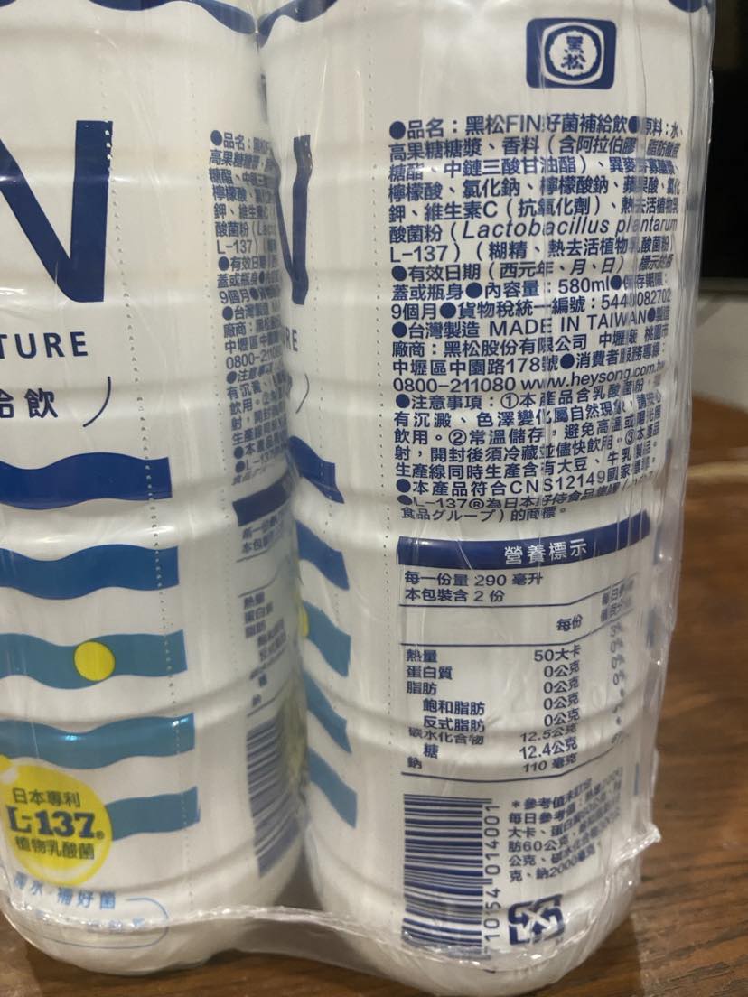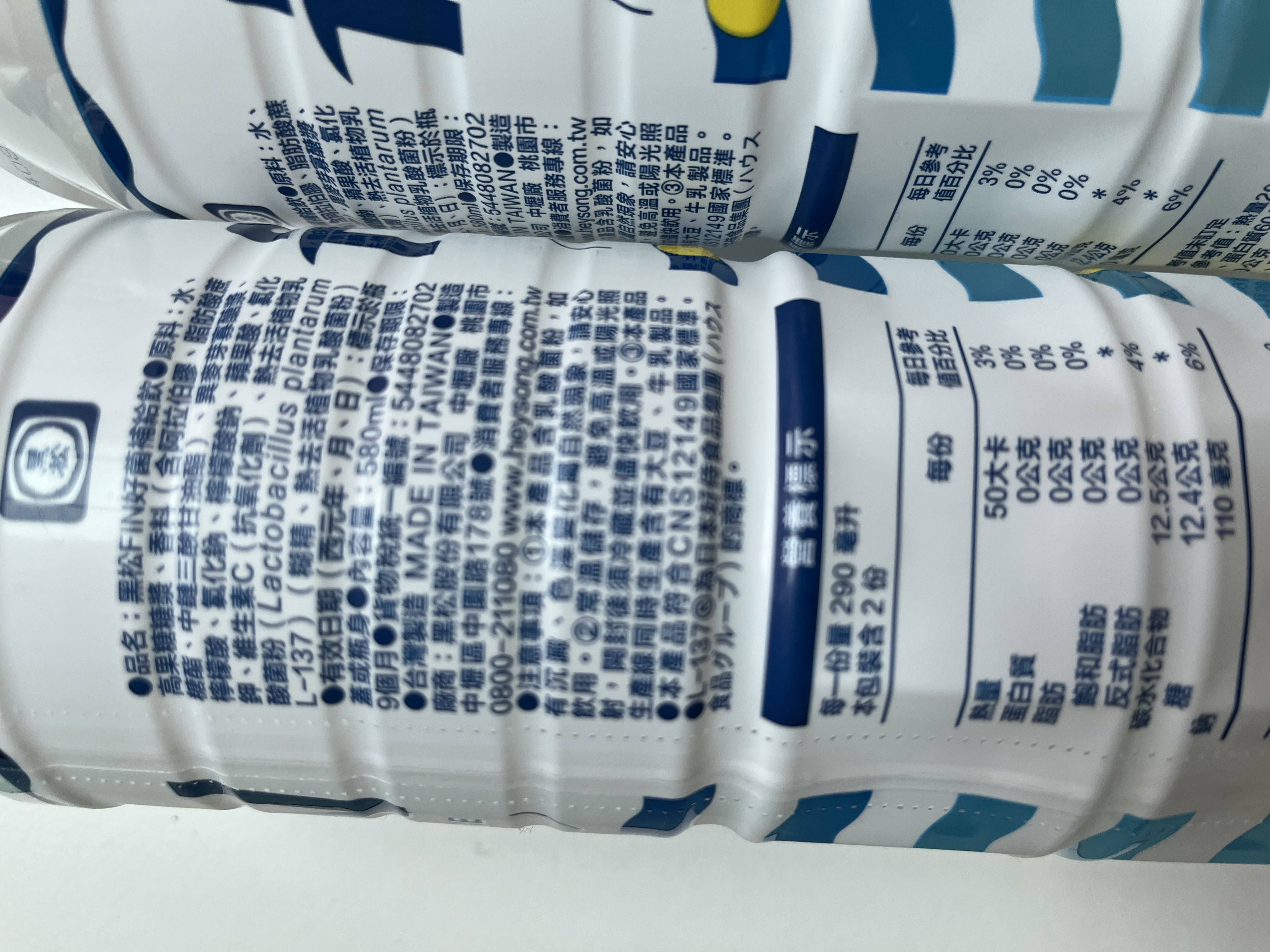 水、高果糖糖漿、香料(含阿拉伯膠、脂肪酸蔗糖酯、中鏈三酸甘油酯)、異麥芽寡醣漿、檸檬酸、氯化鈉、檸檬酸鈉、DL-蘋果酸、氯化鉀、維生素C (抗氧化劑)、熱去活植物乳酸菌粉(Lactobacillus plantarum L-137)(糊精、熱去活植物乳酸菌粉)