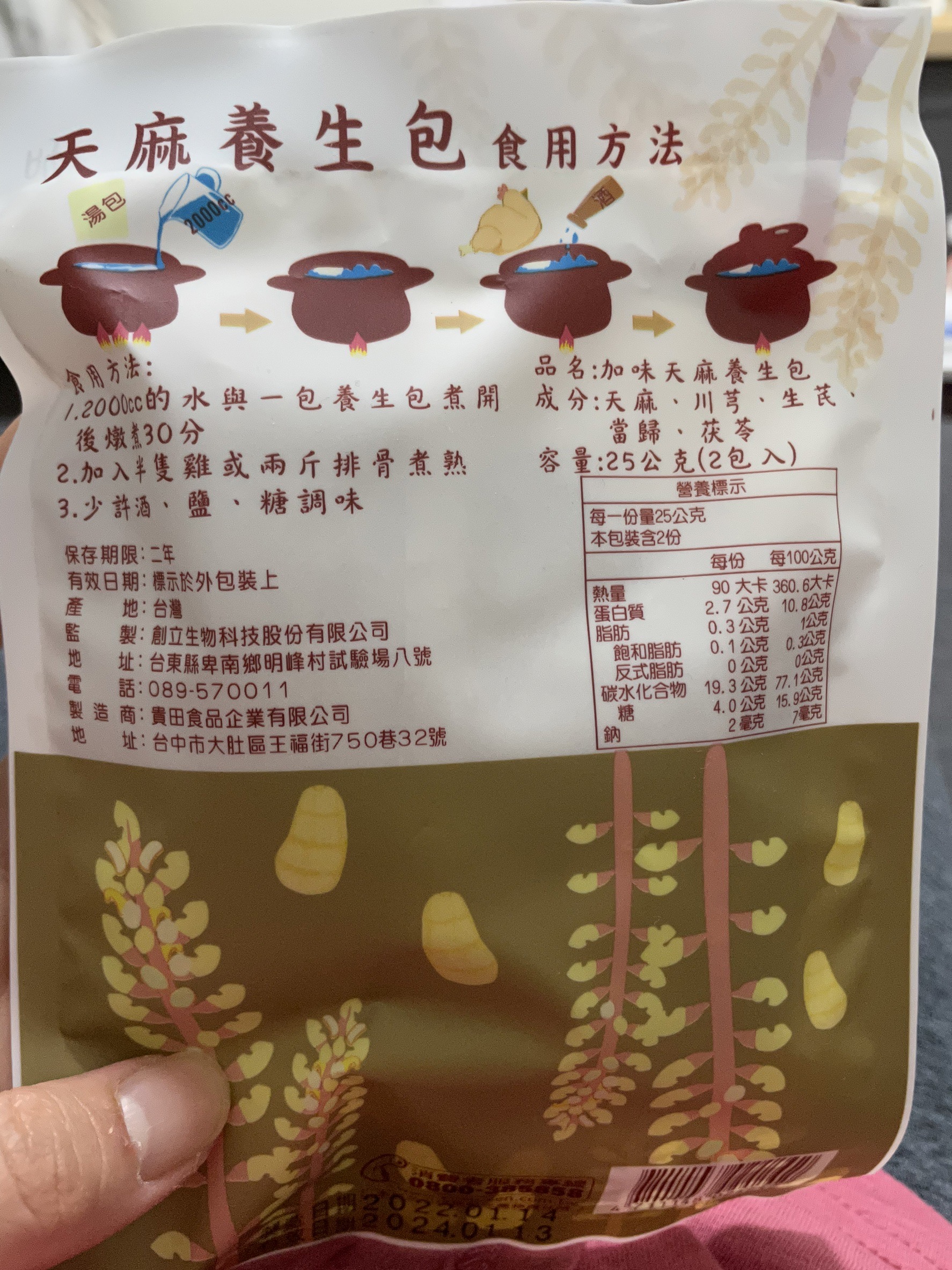 回列表 台東原生應用植物園 加味天麻養生包 有機天然草本香氣濃郁 甘甜不苦 市價150元 所需等級 一般會員以上 所需學分 50 體驗份數 15 關注人數 1661 申請人數 295 申請截止 品牌業者:創立生物科技股份有限公司 負責廠商 創立生物科技股份有限公司 廠商地址 台東縣卑南鄉8號 產地 台灣 試用產品規格 25公克/2包 心得分享 商品介紹 商品成分 使用方法 注意事項 體驗名單 8.6 台東原生應用植物園 加味天麻養生包 包裝美學 8.1 風味香氣 9.1 成分天然 9.2 烹調便利 9.4 建議推薦 8.8 心得分享 14則 謝宜蓁 金食達人 34歲 臺北市 2022/02/11 對台東原生應用植物園 加味天麻養生包留下評價 9 這次體驗的品項是天麻養生包,打開包裝可以聞到清香的中藥味,很像藥燉排骨的味道。包裝上清楚標示了成分有天麻、川芎、生芪、當歸、茯苓,上網查資料發現天麻有祛風、鎮靜的功效,在冷冷的冬天真的非常適合喝碗熱湯。商品包裝背面有烹煮方式的教學,對於不擅長下廚的上班族,真的是很方便。一包養生包再加上土雞腿,放到電鍋裡煮,完全不需要技巧,就能喝到藥膳湯,在疫情期間,不用到夜市,也能喝到好喝的藥膳排骨喔! 劉小黑 金食達人 36歲 高雄市 2022/02/12 對台東原生應用植物園 加味天麻養生包留下評價 9 包裝完整 還未拆封的時候就有聞到濃濃的中藥味 拆封前要先看一下中藥成份因為沒有紅棗、枸杞 (代替糖)所以我有自己加入(第二包)藥燉湯前有先用水沖一下 再加入雞肉燉煮加一點米酒、鹽巴完成後 喝起來中藥味沒有當時拆封的濃厚是淡淡地清香味真心覺得要加紅棗+枸杞 不然會覺得少一味建議也可以加入一點點薑片提味 Liu Hao 鑽石達人 43歲 屏東縣 2022/02/13 對台東原生應用植物園 加味天麻養生包留下評價 10 拆開外包裝,一包養生包裡面有兩小包,聞起來有淡淡的中藥香氣,看了他的成份,包含天麻、川芎、生芪、當歸、伏苓,都是中藥材,沒有其他添加物,成分很單純,聞起來有種熟悉的味道,但又說不上來是什麼。我參考產品背面的方式來煮湯,因為他草藥的成分都配好了,所以料理方式很簡單,也不需要再去加其他的中藥材,在鍋裡面放入2000cc的水跟幾顆紅棗和枸杞煮滾,再將川燙好的雞腿肉以及菇類放入,加上少許鹽跟一湯匙米酒,稍微煮一下就可以了,嚐了一口,終於想起來是什麼熟悉的味道了,就是燒酒雞,以這樣料理覺得味道清甜,個人是喜歡搭配雞肉來料理,如果燉越久氣味應該會更芳香可口,而且加上菇類,又含有豐富的多醣體及纖維質,不僅美味又養生,非常的健康。 林玉雯 金食達人 51歲 臺北市 2022/02/14 對台東原生應用植物園 加味天麻養生包留下評價 9 加味天麻養生包用雞骨熬燉數小時,加入雞骨頭時,雞骨頭要先用滾水川燙過,再用清水洗一次,才能放入大鍋裡熬煮,並加入杏鮑菇、鴻禧菇、黑美人菇、筍片增添風味,湯頭才會清澈甘甜,湯頭的滋味好不好,不是祇有喝下第一口的香氣,而且在入喉之後回甘的美味,湯品內的杏鮑菇、鴻禧菇及黑美人菇、筍片口味更是甘脆回甜,天麻養生包不但提升了湯頭的鮮味,也保留了各種菇類的口感,這種天然的甘甜滋味是其他化學添加物是無可比擬的味道。 劉瑞菁 金食達人 46歲 高雄市 2022/02/14 對台東原生應用植物園 加味天麻養生包留下評價 8 一袋裡裝有2包,中藥全部裝在網狀小濾包裡,可以直接拿一包丟進鍋子裡,煮好要喝時也不用撈料很方便,打開包裝後立刻香味四溢,聞起來中藥味十足,不會嗆鼻反倒相當好聞;煮好後依然香味撲鼻,喝起來甘甜不苦,而且中藥味很濃,加一點白胡椒很好喝,整體來說很像肉骨茶湯包,喜歡喝中藥補湯的話也非常推薦。 郭鴻諭 金食達人 28歲 臺中市 2022/02/15 對台東原生應用植物園 加味天麻養生包留下評價 9 這次是我第一次吃到天麻,味道上有股中藥的清香,加上當季的蘿蔔及排骨,讓整體風味上更加醇厚,而且更溫馴。這款天麻調理包我認為非常百搭,可以做成火鍋,高湯,甚至是把高湯跟白米一起煮,相信味道一定很高雅。這邊給個小建議,因為湯包的味道較為濃郁,可以加上夾鏈袋讓保存上更加方便。 許耘彰 鑽石達人 44歲 彰化縣 2022/02/15 對台東原生應用植物園 加味天麻養生包留下評價 8 抽到天麻養生包,看了天氣預報剛好週一天氣變冷家裡可以燉隻雞來吃,打開包裝裡面有2包像是茶包的包裝,依照包裝指示加水後燉煮30分鐘,時間到後撈起茶包,這點蠻方便的不用再過濾,煮好湯底顏色像是麥茶那樣淡淡的褐黃色,味道是天麻獨有的草藥味道,喝起來帶點甘,和雞肉一併煮好,因此湯也帶著雞肉的鮮香精華,相對的雞肉也帶著天麻與當歸川芎的特有的中藥香氣,喝口熱呼呼的湯配口美味雞肉在驟冷的天氣非常養生,自己在家煮美食搭配養生中藥包感覺身體都舒爽起來。 shinchi 銀食達人 35歲 新北市 2022/02/15 對台東原生應用植物園 加味天麻養生包留下評價 10 很開心能寫試吃心得,晚上就立馬煮來吃 煮的時候廚房都是濃濃的中藥味,非常適合天氣冷的時候煮,中藥香氣濃厚 搭配排骨下去燉煮,非常方便 養生包打開後加水與食材丟入鍋裡後就可以燉煮,非常方便 時間大概30分鐘左右 香氣就會慢慢飄出來了,喝了湯幾口 中藥味道不會很重也沒有過多的鹹 不需要過多的調味 單純的中藥味就很可以 ,家人都很喜歡,也很適合拿來煮火鍋 方便又健康,包裝的外觀也蠻文青風的 表達也明顯這是養