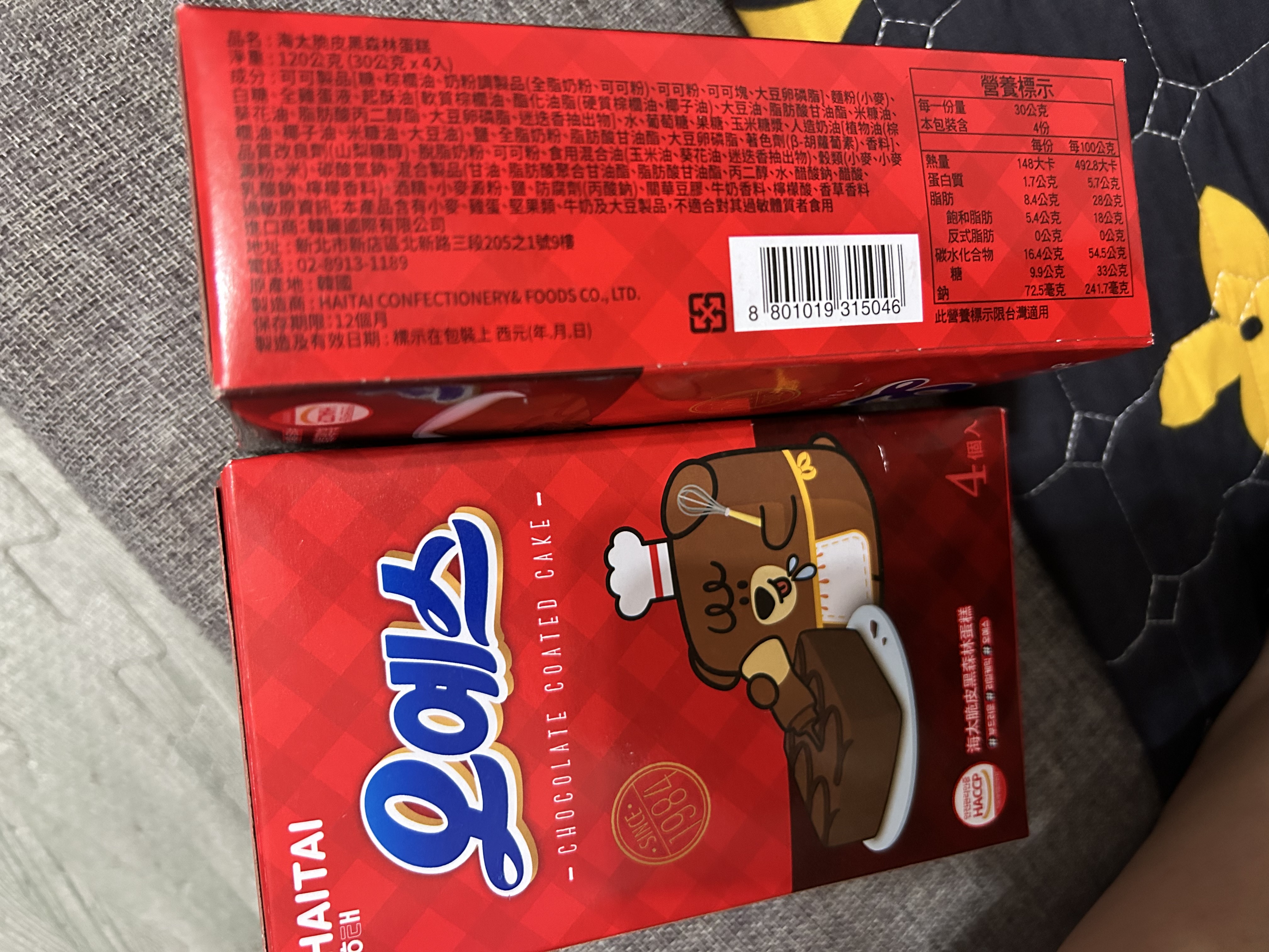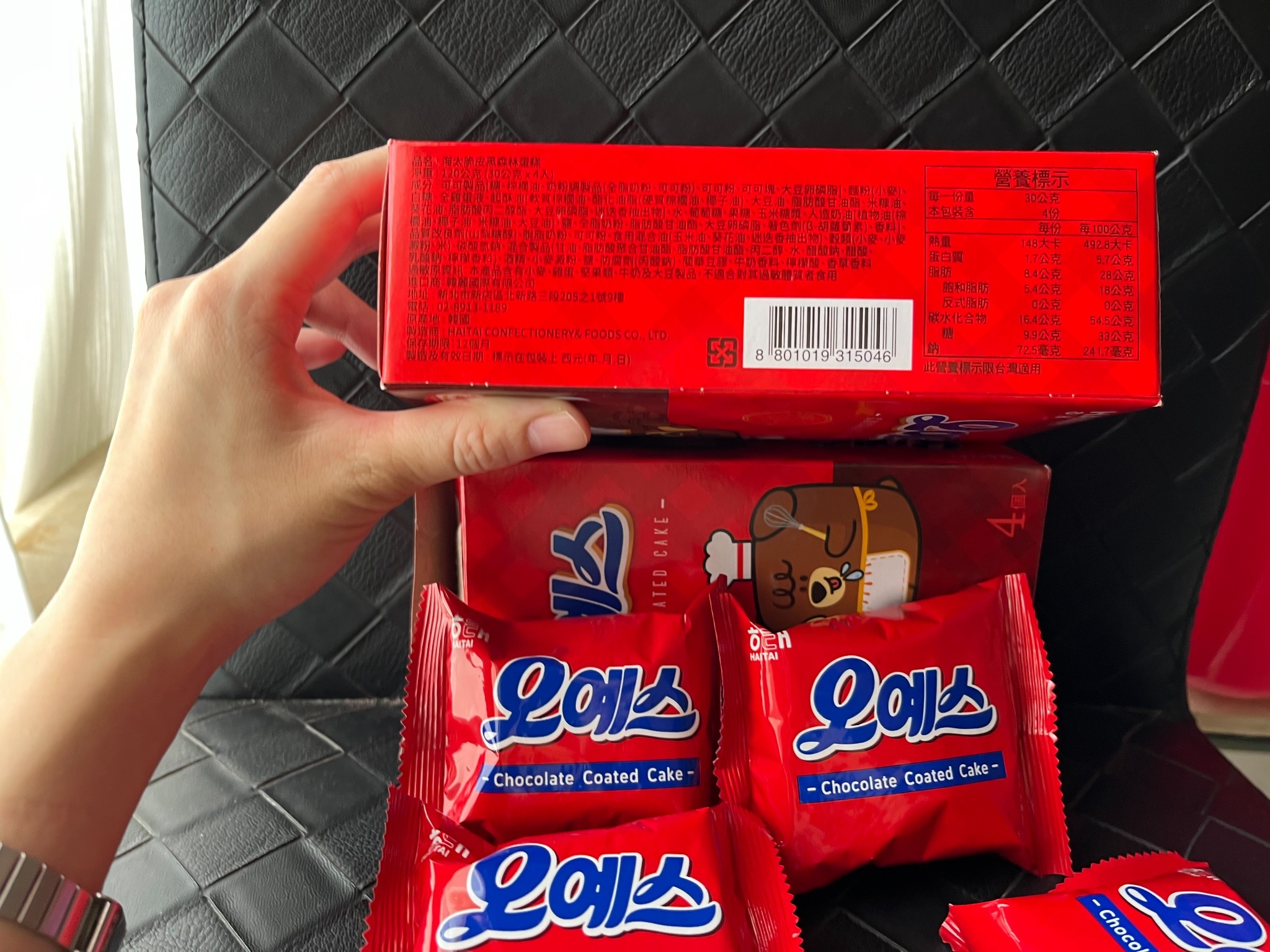 巧克力(糖、棕櫚油、奶粉調製品(全脂奶粉、可可粉)、可可粉、可可塊、卵磷脂)、麵粉(小麥)、白糖、全雞蛋液、起酥油(軟質棕櫚油、酯化油脂(硬質棕櫚油、椰子油)、大豆油、脂肪酸甘油酯、米糠油、葵花油、脂肪酸丙二醇酯、大豆卵磷脂、迷迭香抽出物)、水、葡萄糖、果糖、玉米糖漿、人造奶油[植物油(棕櫚油、椰子油、米糠油、大豆油)、鹽、全脂奶粉、脂肪酸甘油酯、大豆卵磷脂、著色劑((β-胡蘿蔔素)、香料)、品質改良劑(山梨糖醇)、脫脂奶粉、可可粉、食用混合油(玉米油、葵花油、迷迭香抽出物)、穀類(小麥、小麥澱粉、米)、碳酸氫鈉、混合製品(甘油、脂肪酸聚合甘油酯、脂肪酸甘油酯、丙二醇、水、醋酸鈉、醋酸、乳酸鈉、檸檬香料)、酒精、小麥澱粉、鹽、防腐劑(丙酸鈉)、關華豆膠、牛奶香料、檸檬酸、香草香料