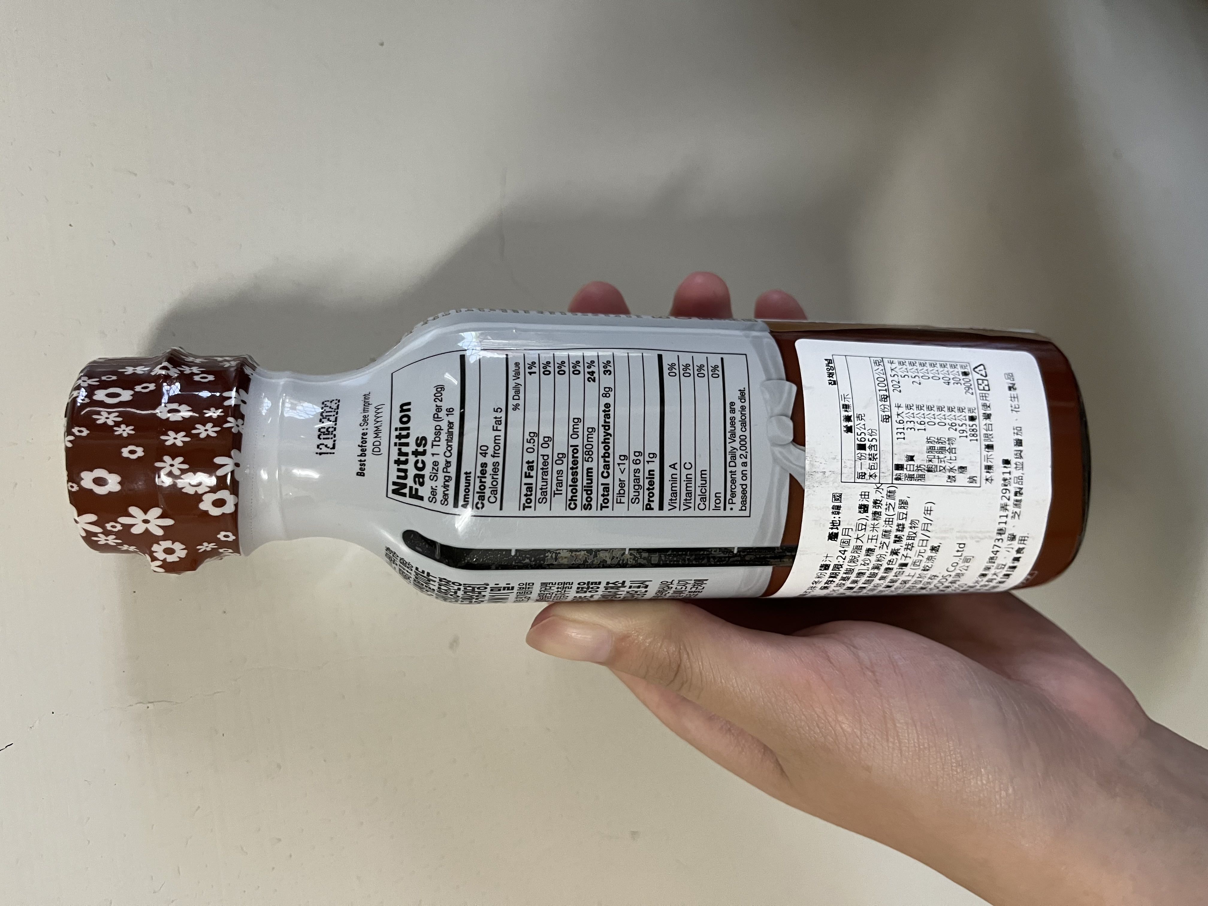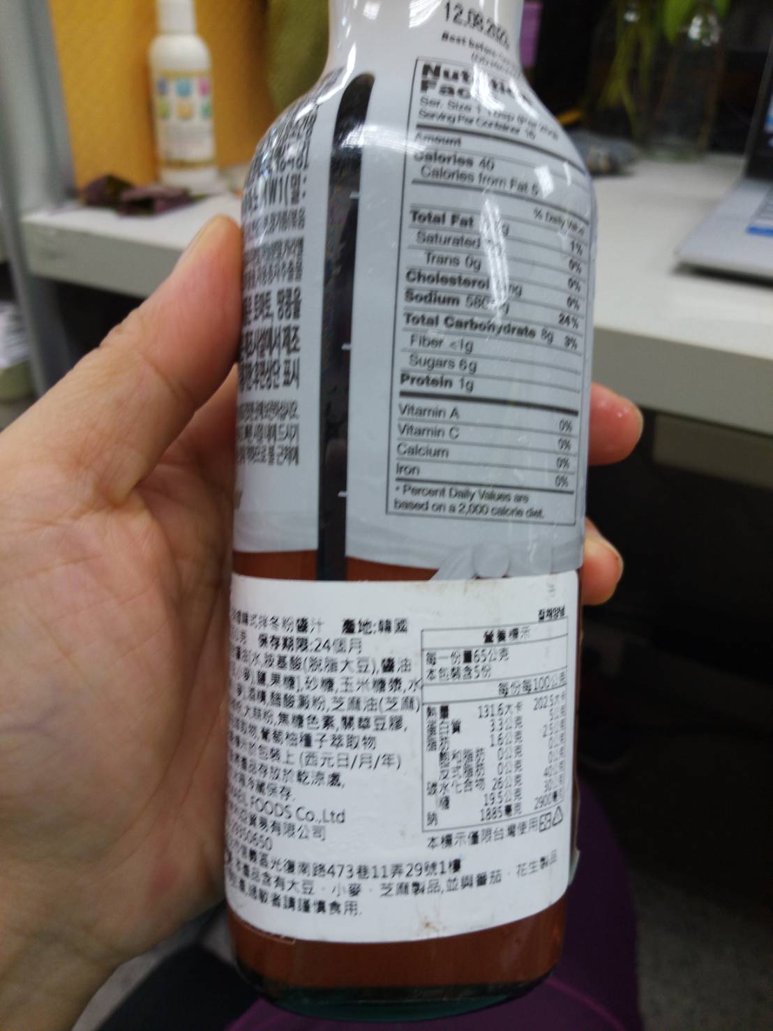 水、麥芽糖、砂糖、辣椒粉、辣椒醬[麥芽糖、綜合醬料(辣椒粉、胡椒粉、水、麵粉)、小麥、鹽]、醬油(水、胺基酸、脫脂大豆、釀造醬油原液(大豆、小麥)、鹽、果糖)、混合醬料(辣椒粉、水、鹽、大蒜、洋蔥)、酒精、鹽、大蒜粉、洋蔥粉、檸檬酸、蘋果酸