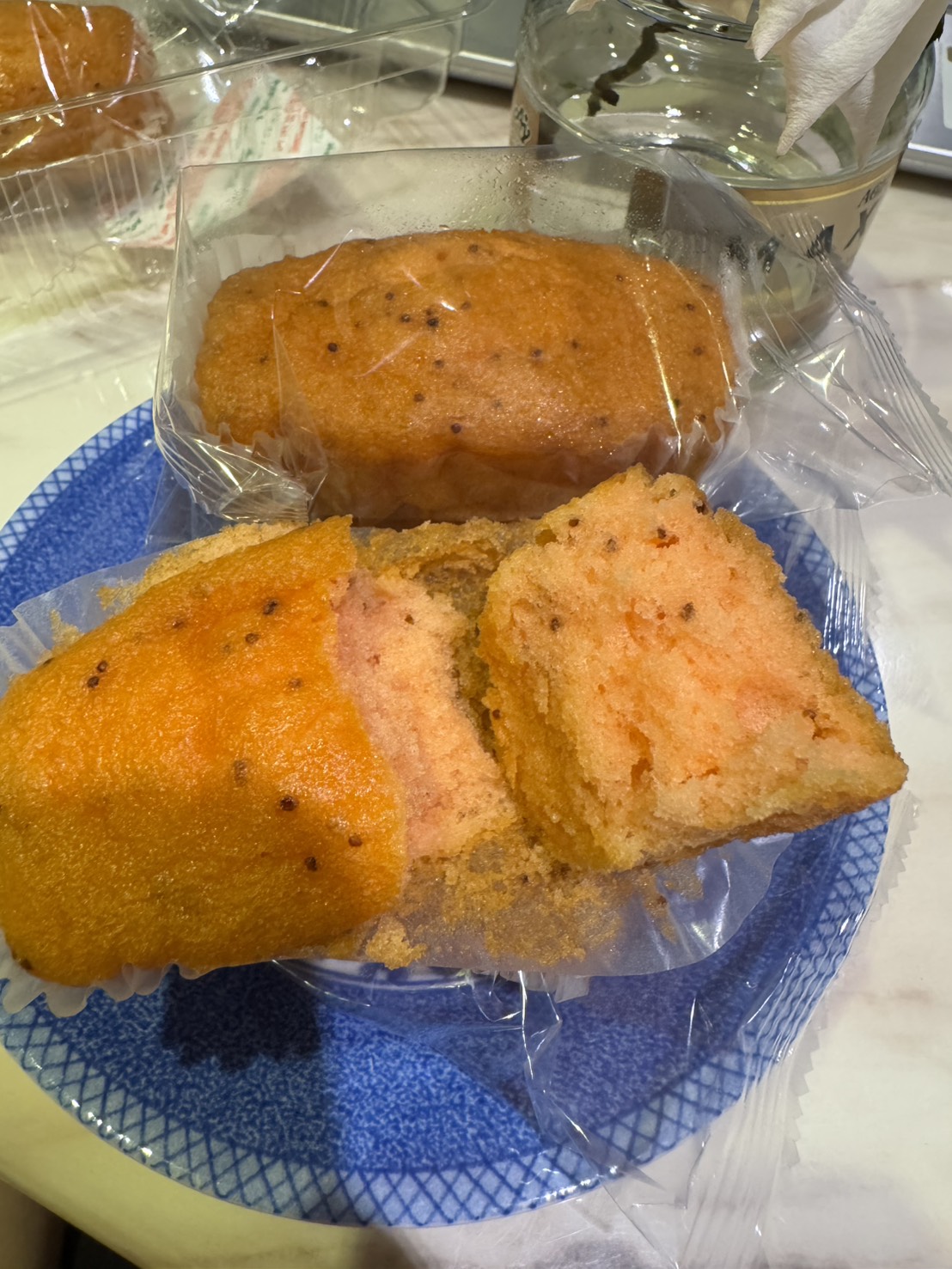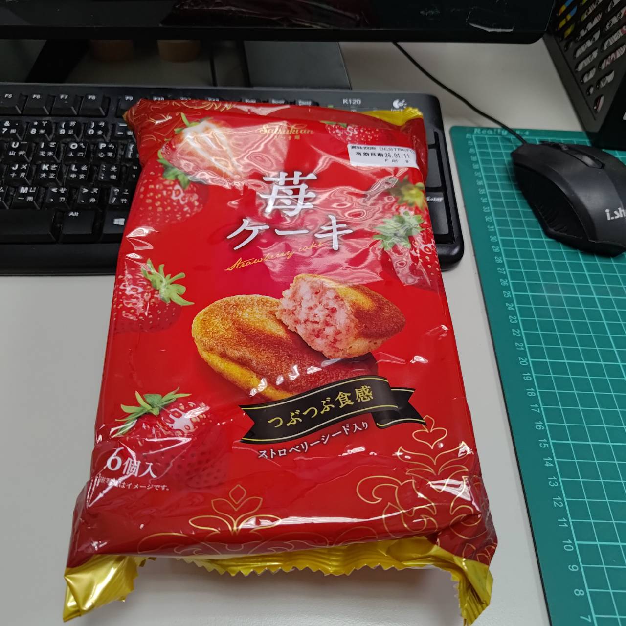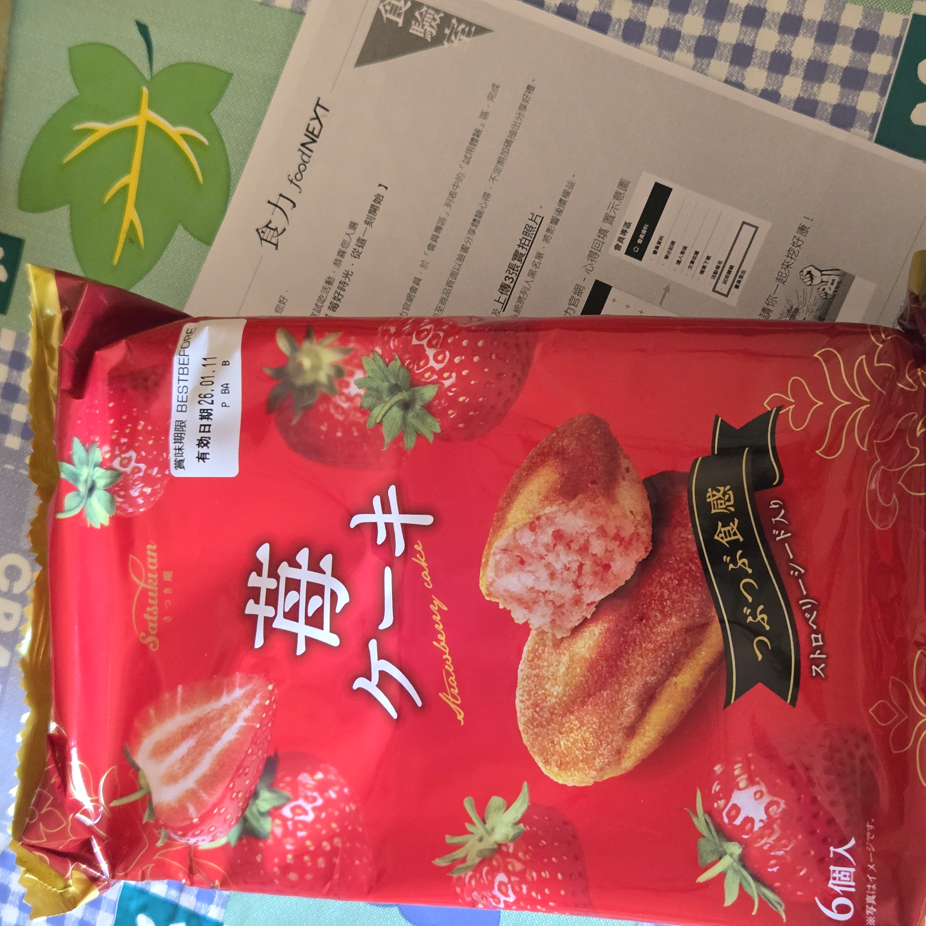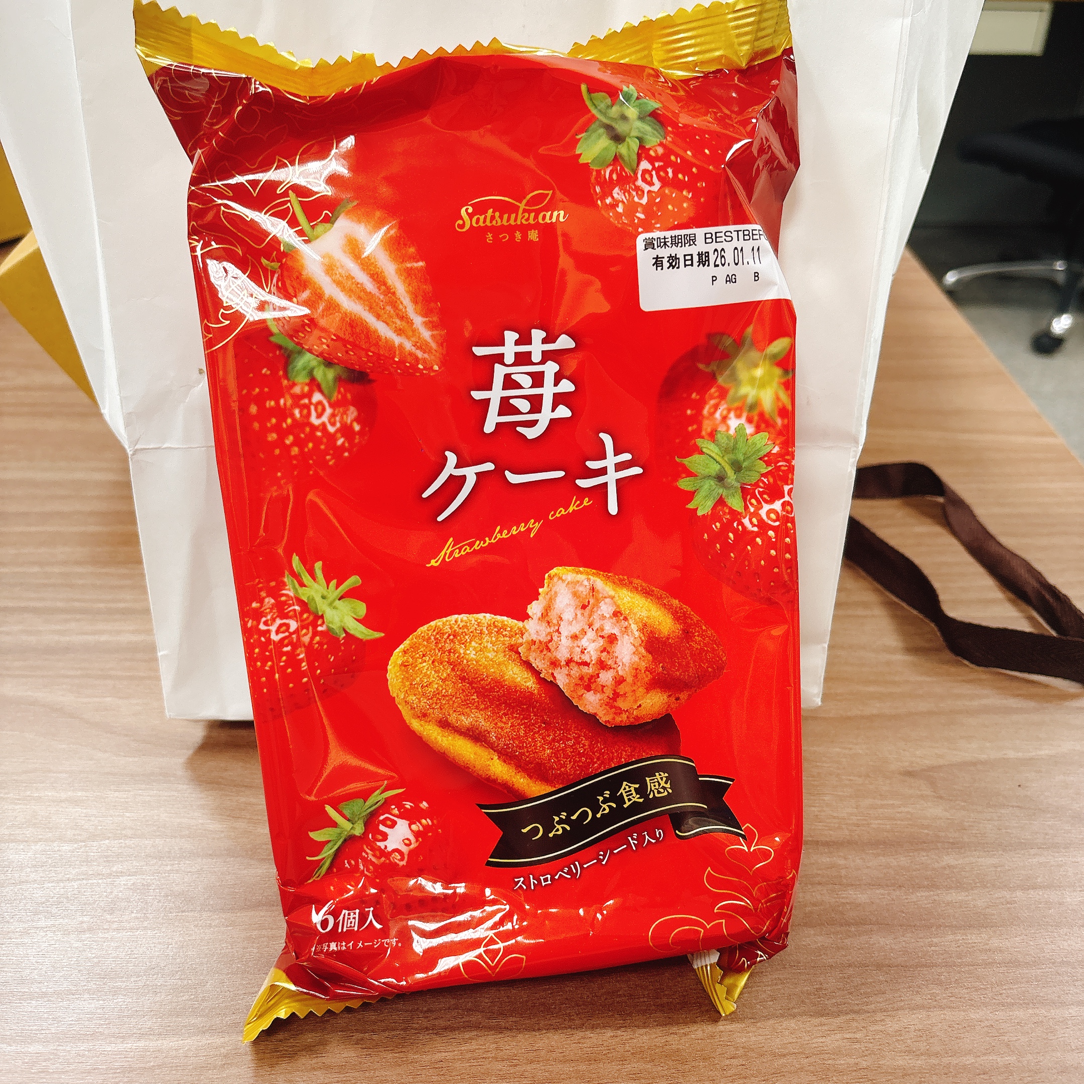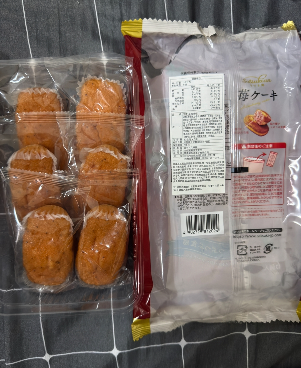 砂糖,雞蛋液,小麥粉,植物油(棕櫚油、菜籽油、大豆油、玉米油),人造奶油,酥油(棕櫚油、菜籽油、大豆油、玉米油),葡萄糖,羥丙基磷酸二澱粉,複方膨脹劑(酸性焦磷酸鈉、碳酸氫鈉),香料,山梨糖醇,複方乳化劑(脂肪酸丙二醇酯、脂肪酸甘油酯、大豆卵磷脂),水飴,草莓籽,玉米糖膠,食鹽,草莓汁,調味劑(檸檬酸、檸檬酸鈉),食用色素(食用紅色6號、胡蘿蔔色素),乳蛋白。