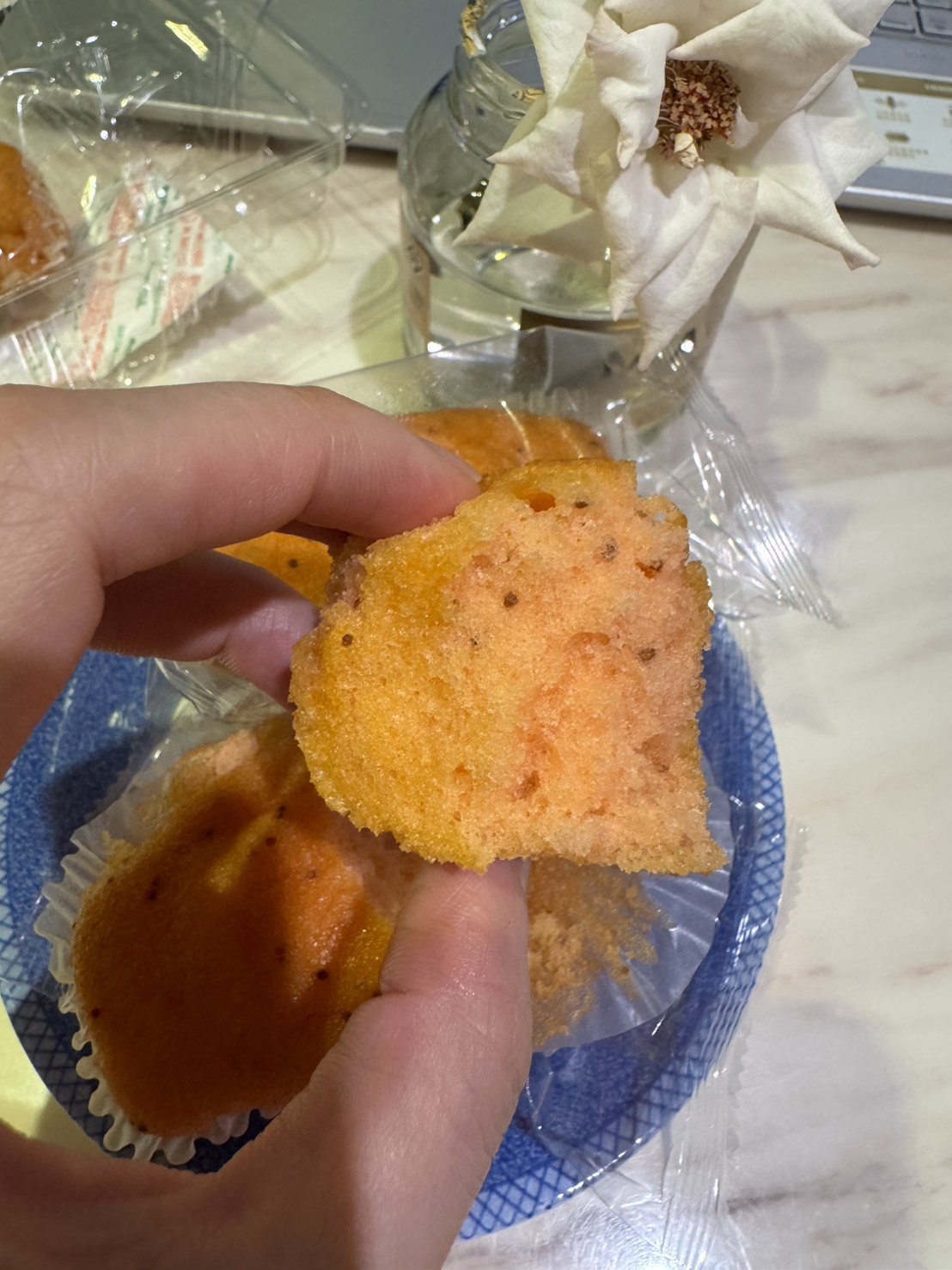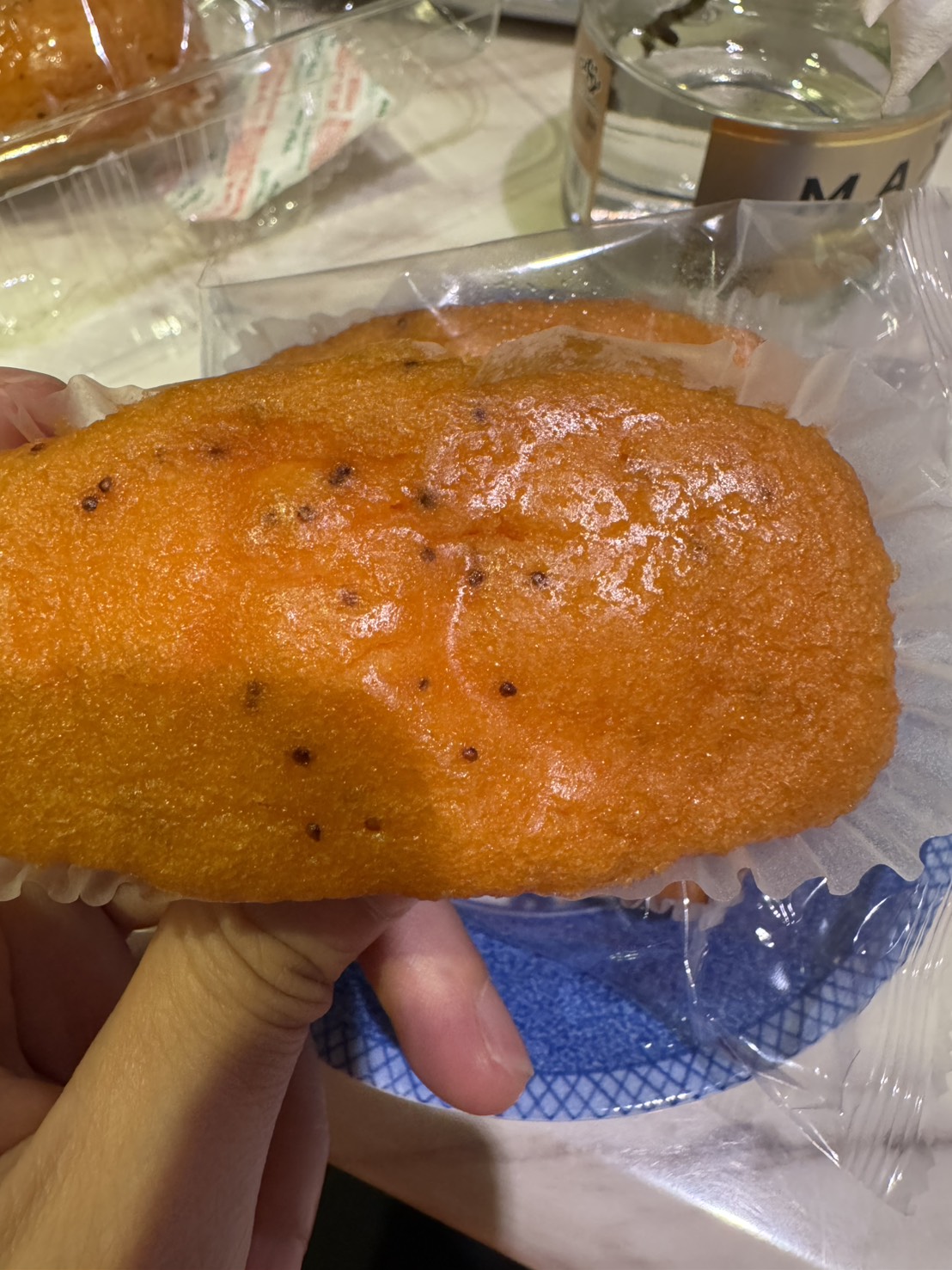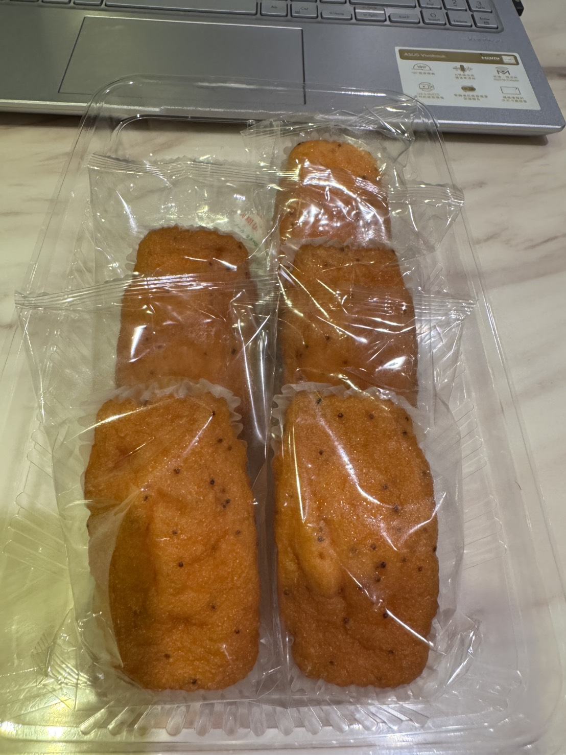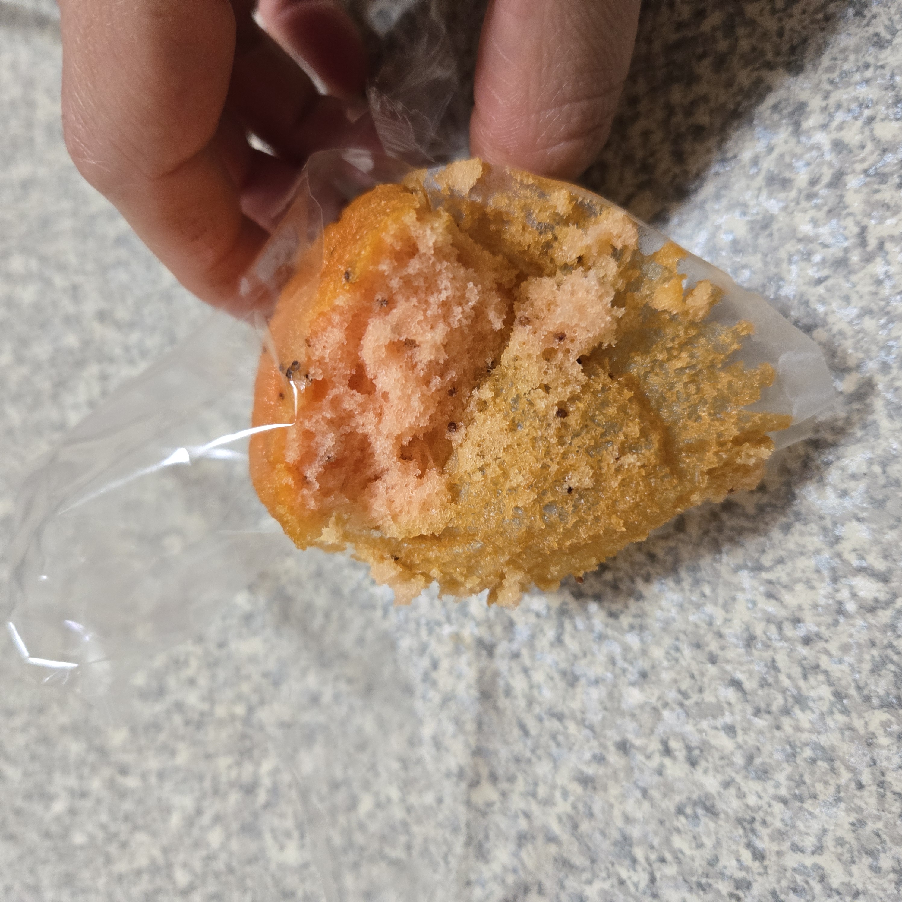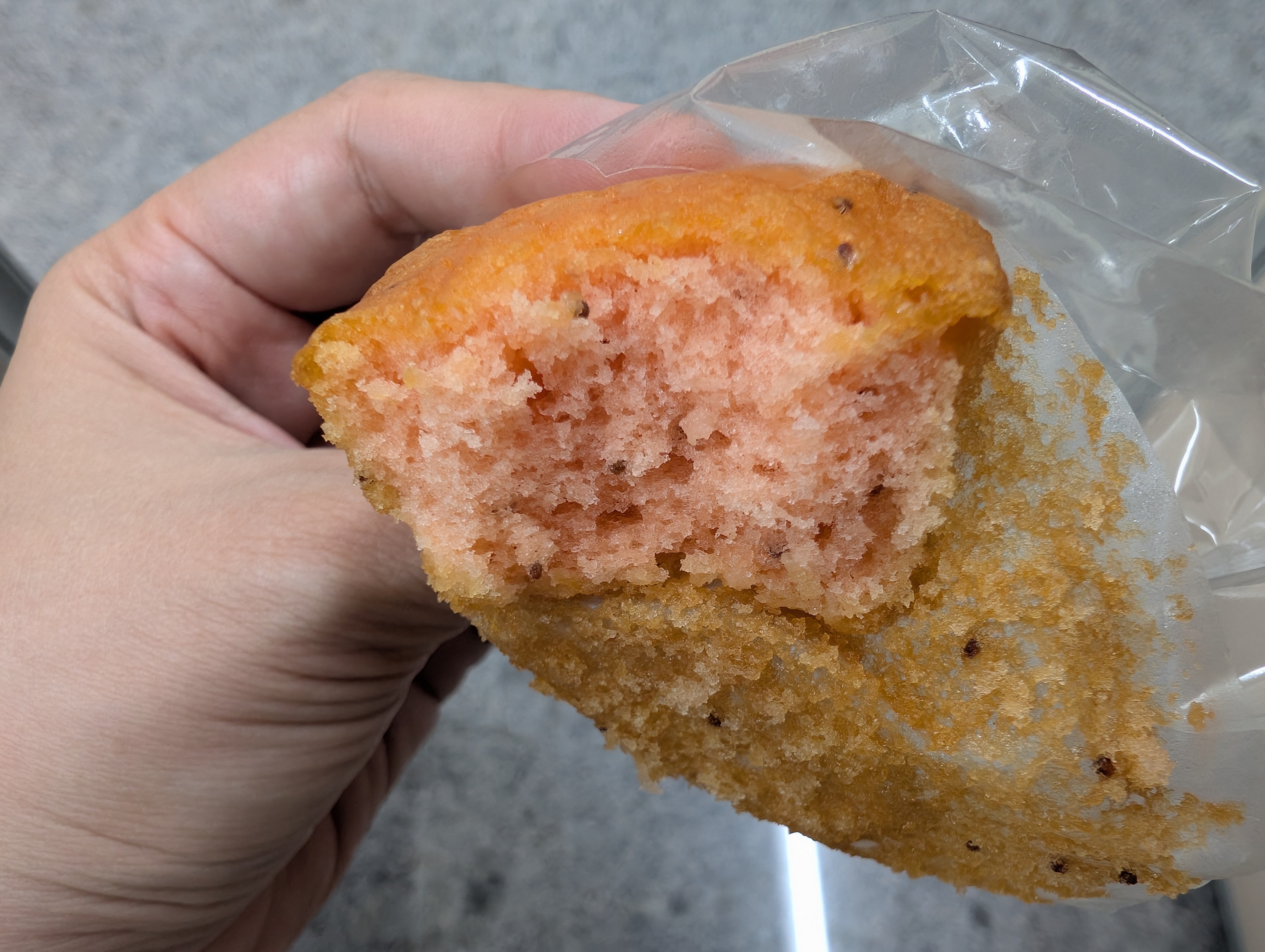 砂糖,雞蛋液,小麥粉,植物油(棕櫚油、菜籽油、大豆油、玉米油),人造奶油,酥油(棕櫚油、菜籽油、大豆油、玉米油),葡萄糖,羥丙基磷酸二澱粉,複方膨脹劑(酸性焦磷酸鈉、碳酸氫鈉),香料,山梨糖醇,複方乳化劑(脂肪酸丙二醇酯、脂肪酸甘油酯、大豆卵磷脂),水飴,草莓籽,玉米糖膠,食鹽,草莓汁,調味劑(檸檬酸、檸檬酸鈉),食用色素(食用紅色6號、胡蘿蔔色素),乳蛋白。