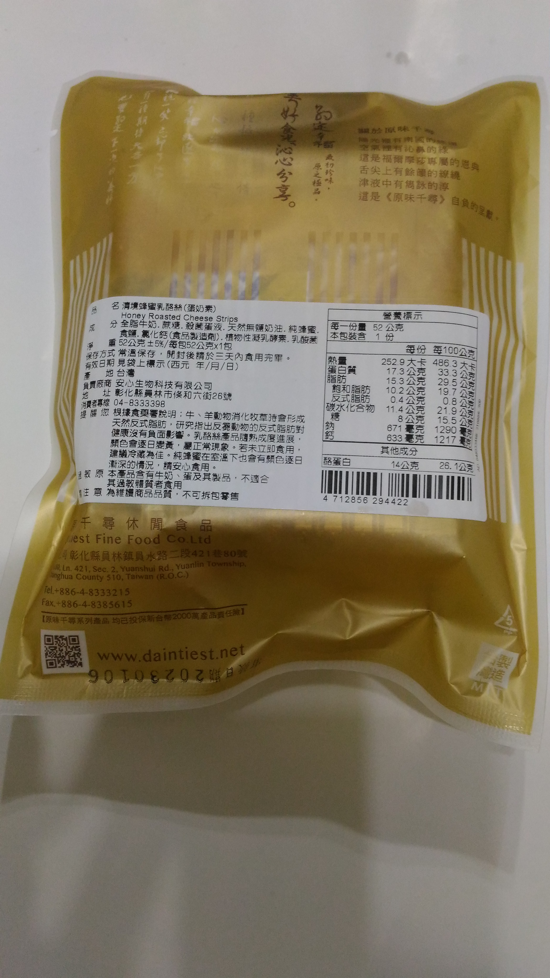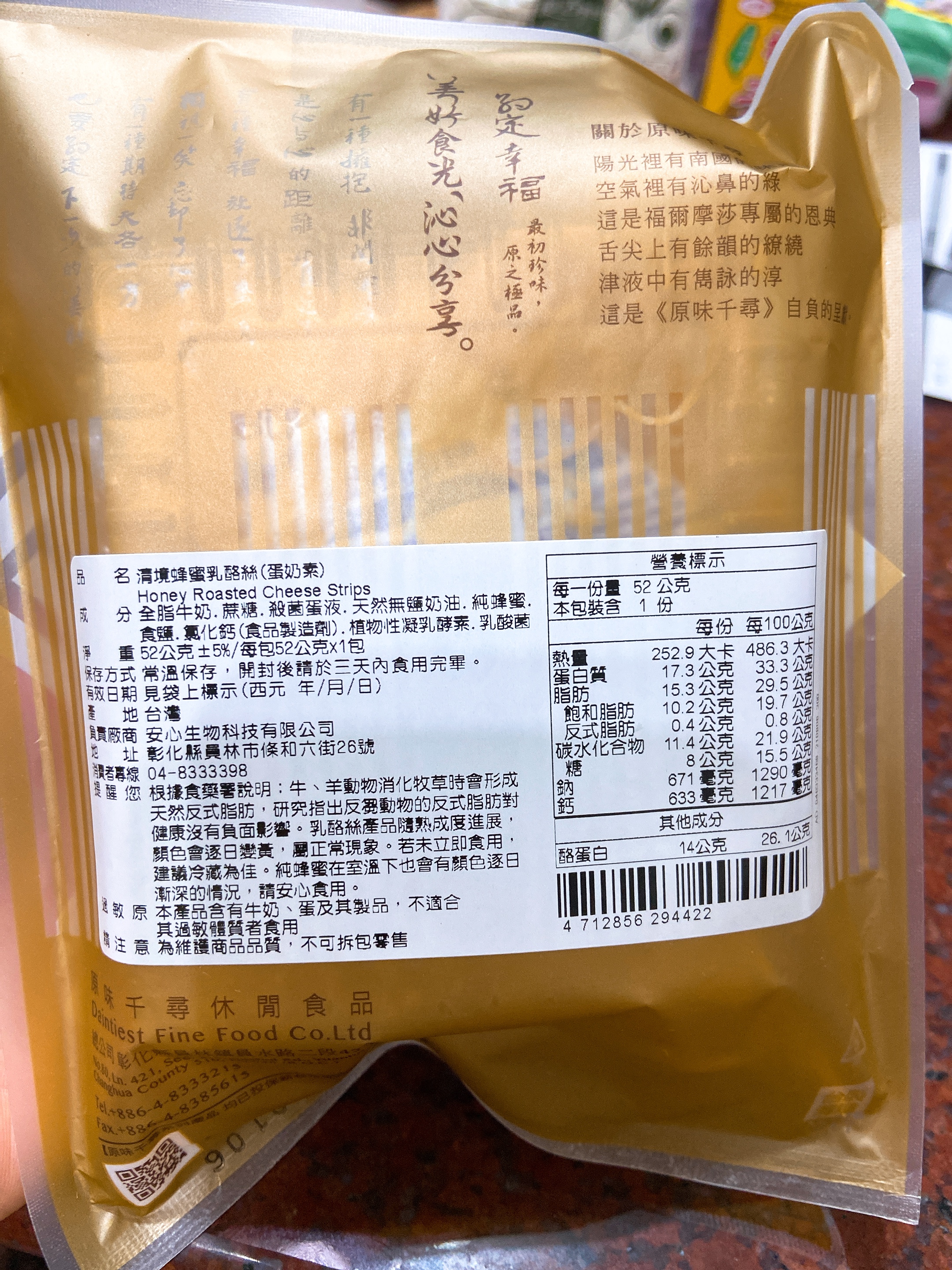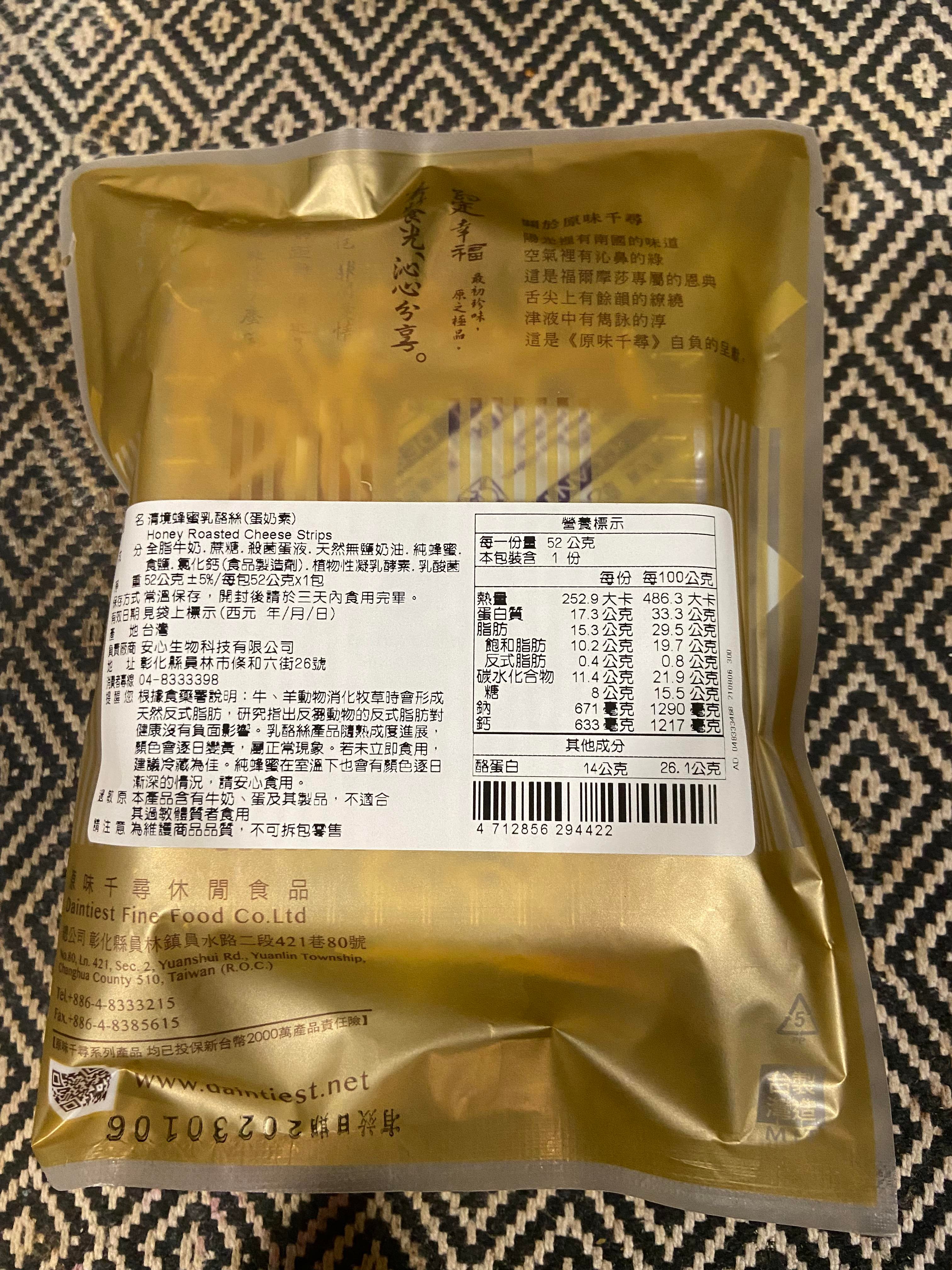 回列表 原味千尋 清境蜂蜜乳酪絲 不可能這麼涮嘴吧!每口的香醇濃郁都是職人的用心 市價150元 所需等級 一般會員以上 所需學分 60 體驗份數 15 關注人數 1708 申請人數 482 申請截止 品牌業者:原味千尋 負責廠商 安心生物科技有限公司 廠商地址 彰化縣員林市條和六街26號 產地 台灣 試用產品規格 52公克/包 食品業者登錄字號 N-153488260-00000-7 投保產品責任險字號 0508PDT00090 心得分享 商品介紹 商品成分 使用方法 注意事項 體驗名單 8.7 原味千尋 清境蜂蜜乳酪絲 包裝美學 8.6 涮嘴程度 9.4 乳香香氣 9.3 風味層次 8.3 建議推薦 8.6 心得分享 15則 Erica 金食達人 36歲 臺北市 2022/07/20 對原味千尋 清境蜂蜜乳酪絲留下評價 9 小時候最喜歡邊看電視邊吃乳酪絲了~這次看到食驗室有清境蜂蜜乳酪絲,很快地就按下申請鍵!不要看包裝看起來不大,卻需要使用超過4公升的牛奶,由大量鮮奶製作的乳酪絲真的是又香又涮嘴,一打開沒多久就被家人分食完畢,喜歡烤得香脆,但又保有濕度的口感,外加點蜂蜜甜味,是看劇加分的點心良伴啊~推薦跟我一樣喜歡吃乳酪絲的朋友~~ 黃秀鳳 金食達人 65歲 屏東縣 2022/07/20 對原味千尋 清境蜂蜜乳酪絲留下評價 8 第一口吃下去有微微的苦味,隨之而來的是淡淡的甜味、鹹味慢慢的咀嚼了出來,越咬越香,乳酪味也慢慢的散發出來,會讓人一口接著一口,吃完還想再吃停不下來。連家裡的小小孩也愛吃,,是很適合當下午小點、配劇的零嘴。只是一小絲一小絲的份量,咬起來略顯空虛,如果能有大片、整片的包裝,這樣一定會更香、更好吃。 陳麗婷 鑽石達人 52歲 苗栗縣 2022/07/20 對原味千尋 清境蜂蜜乳酪絲留下評價 9 原味千尋--清境蜂蜜乳酪絲~~原味千尋創立於2006年,目前最夯的產品就是他們家的乳酪絲~從2013年~2019年陸續都有得獎哦,從備料,發酵,剝絲,細烤等費工費時,道道程序都不馬虎,相當厲害~~不愧是人氣團購美食~大量使用牛奶,16公升的牛奶僅能做出1公斤的乳酪絲~~是少數能夠常溫存放6個月的乳酪產品哦~今天收到後,實際試吃時,覺得它的口感紮實有嚼勁,有乳酪濃郁的味道,但是卻不會很鹹,越吃越涮嘴根本停不下來啊~清境蜂蜜乳酪絲~~是與在地小農合作,使用外銷日本等級的冠軍龍眼蜂蜜(可是超過20日齡工蜂所採集的龍眼蜜)除了本身乳酪的香氣外,還多了蜂蜜花香與果香味~鹹中帶甜的乳酪絲,真的好特別耶~~清境蜂蜜乳酪絲是一款蠻特別的乳酪絲,讓我對以往吃的到乳酪絲都偏鹹的既定印象改觀囉~~以前吃到的乳酪絲都偏鹹,但是原味千尋--清境蜂蜜乳酪絲~~鹹鹹甜甜吃起來很涮嘴完全不會膩口~~唯一的缺點就是太小包啦,完全吃不過癮啊~~原味千尋~~清境蜂蜜乳酪絲很涮嘴!每口的香醇濃郁都是職人的用心~真幸福啊~~ 張杏英 鑽石達人 70歲 彰化縣 2022/07/20 對原味千尋 清境蜂蜜乳酪絲留下評價 10 這次食驗原味千尋,清境蜂蜜乳酪絲,打開包裝內容物看像炭烤魷魚絲,一吃哇!每一口都是濃醇香的乳酪味,看介紹是16公升僅能做出1公斤乳酪絲,又用手工現烤,一絲一絲皆是職人的用心,將辮子乳酪手撕成絲,烘焙口感層次豐富,乳酪絲外層酥脆,內層保留濕潤度,無法抗拒的這麼唰嘴,連少吃零食的老公也停不下來,說當下酒菜很適合。 林俐妤 銀食達人 33歲 臺北市 2022/07/21 對原味千尋 清境蜂蜜乳酪絲留下評價 8 很開心可以抽中原味先尋的清境蜂蜜乳酪絲~~就包裝來說,我覺得可再做精緻一點以提高附加價值,就乳酪絲口感而言,乳香味濃厚,但我覺得有稍微比較甜,不過整體來說很不錯吃唷~看電影看電視,配個飲料剛剛好,很涮嘴,謝謝。 doris 鑽石達人 66歲 新北市 2022/07/21 對原味千尋 清境蜂蜜乳酪絲留下評價 10 好期待的原味千尋 清境蜂蜜乳酪絲 收到了!雖然是休閒零食,包裝設計和用色卻很有質感。乍看之下以為是魷魚絲家族,因為長得太像了,所以在吃進嘴裡以前,以為乳酪絲會跟魷魚絲是類似稍硬硬的口感,沒想到完全不同!剛入口時口感有點脆脆的,咬著咬著會慢慢軟化,我覺得有點像冷掉的披薩乳酪絲,吃起來微鹹微甜,蜂蜜的香氣似乎感受較弱些些,但濃厚的乳酪味在咀嚼時慢慢釋出,非常涮嘴!原味千尋乳酪絲..是天然成分,一口接一口也不會膩,真是好吃營養又低卡的休閒小品~ 張佑安(yuanchang) 鑽石達人 63歲 臺中市 2022/07/22 對原味千尋 清境蜂蜜乳酪絲留下評價 10 開封第一印象就是小包裝方便攜帶,初嚐發現具有天然原味,吃下去的每一口都散發出濃郁的風味,厚實且香氣濃郁,吃過就難以忘懷!唰嘴好吃。標示還有「貼心提醒您|根據食藥署說明:牛、羊動物消化牧草時會形成天然反式脂肪,研究指出反芻動物的反式脂肪對健康沒有負面影響。乳酪絲產品隨熟成度進展,顏色會逐日變黃,屬正常現象。若未立即食用,建議冷藏為佳。」及「過敏源|本產品含有牛奶、蛋及其製品,不適合其過敏體質者食用。」是很負責的廠家行為。 何偉嘉 金食達人 27歲 雲林縣 2022/07/22 對原味千尋 清境蜂蜜乳酪絲留下評價 8 此款乳酪絲外觀為小包獨立裝,攜帶便利~論及乳酪絲本體外觀,包裹用的糖漿讓它看起來更加閃耀、味道上也略帶了些層次感,絲也是切得恰到好,不會太粗而讓人咬得很痠。風味上,先聞到濃郁的乳香味,入口後隨之而來的是清甜味的蜂蜜糖漿,接著咀嚼後釋放的乳脂包覆在口腔內,令人回味無窮的是散不去的乳香,讚嘆不已的是鹹甜的比例搭配