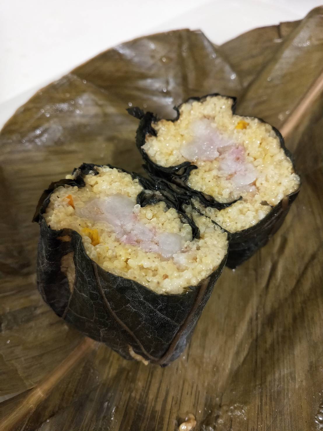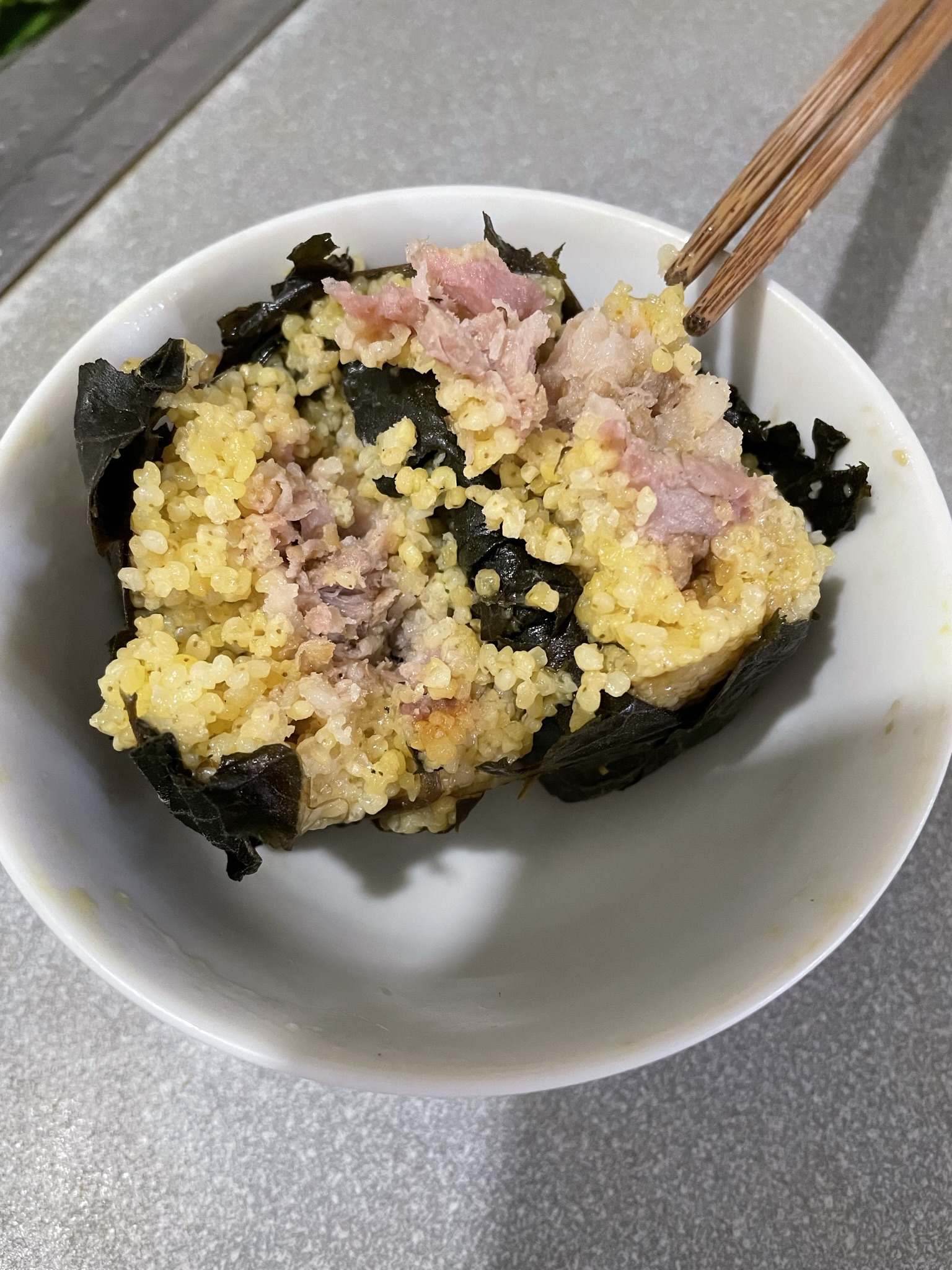小米、豬肉、鹽、油蔥酥、南瓜絲、假酸漿葉、L-麩胺酸