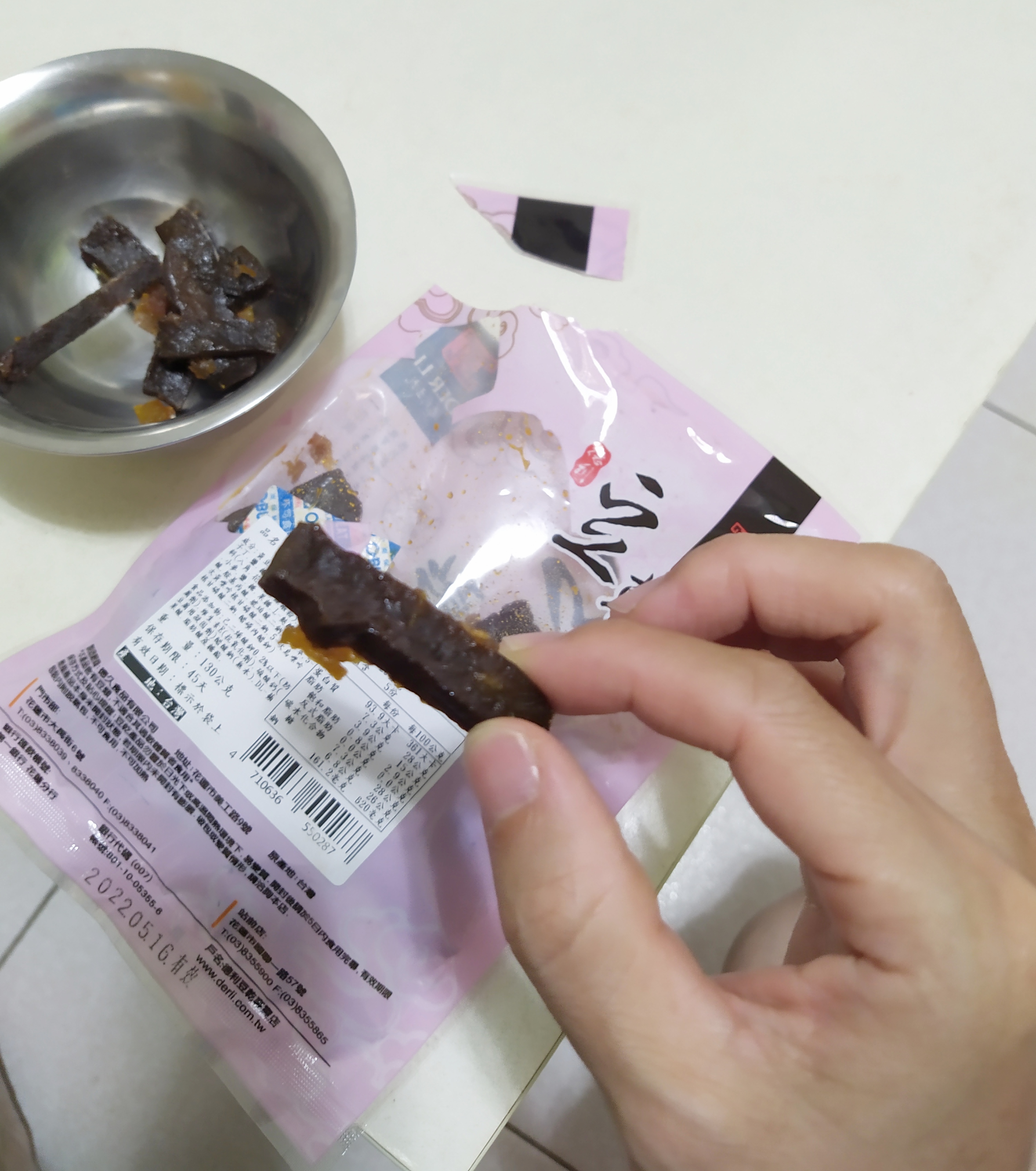 回列表 德利豆乾 柚香豆乾 酸中帶甜的清爽口感 市價160元 所需等級 一般會員以上 所需學分 60 體驗份數 15 關注人數 1322 申請人數 328 申請截止 品牌業者:德利豆乾 負責廠商 德利豆乾 廠商地址 花蓮市大禹街6號 產地 台灣 試用產品規格 130g/包,共2包。 心得分享 商品介紹 商品成分 使用方法 注意事項 體驗名單 8.3 德利豆乾 柚香豆乾 包裝美學 7.6 口感紮實 8.8 調味恰當 8.4 風味香氣 8.7 建議推薦 8.3 心得分享 15則 吳莆馨 銀食達人 38歲 桃園市 2022/04/18 對德利豆乾 柚香豆乾留下評價 6 柚香豆乾的包裝是粉紅色,上面貼有"柚香又香"的貼紙,蠻適合現在春天的氛圍。打開包裝,聞起來是滷豆干加上一股柑橘味,頗為開胃。馬上倒進盤子裡,可以看到豆乾裡有不少蜜漬柚子皮,豆乾的顏色看起來也很入味。先吃一口豆乾,咦好像沒什麼柚子味?豆乾的味道偏甜,有點壓過豆乾的香味及鹹味,稍嫌不平衡。口感紮實有嚼勁,但咬到後來會有點粉粉的。裡面比較小塊及比較薄的碎塊,反而合我愛好,咬起來有韌性又有嚼感。第二條配上裡面的柚子皮一起吃,這樣就有柚子味了。柚子皮帶點酸的香味,跟豆乾很搭,所以接下來我幾乎每一條豆乾都配柚子皮XD整體來說我覺得柚香豆乾單吃豆乾的話,柚子味沒什麼存在感,如果可以讓柚子味更明顯一定會更好吃!另外包裝若可以加入柚子的元素,相信在視覺上也會更吸引人!最後感謝主辦單位及德利豆乾提供試吃~謝謝! hubby 金食達人 43歲 嘉義市 2022/04/21 對德利豆乾 柚香豆乾留下評價 9 很高興獲選【德利豆乾 柚香豆乾 酸中帶甜的清爽口感】試用體驗活動 😊平常就很喜歡飲用富含柚子香氣的柚子茶 😘也很喜歡吃豆乾產品,只是眾多口味的豆乾,還真的沒吃過柚香豆干😆當柚子遇上豆乾,會蹦出什麼火花呢? 🤔【德利柚香豆乾】堅持嚴選優良品質的黃豆,配以獨特漢方香料,和一鍋以純中藥煉成的「德利陳年秘方滷湯」,遵循著古法,用時間誠意細火慢工滷製,讓平凡的豆乾入味變得香Q有嚼勁👍酸中帶甜的柚香果乾和滷的非常入味的鹹香豆乾,堪稱是絕妙的搭配呀!拿出散發柚子香甜氣味的豆乾,咬下一口😋口感非常紮實Q彈,慢慢的咀嚼,瞬間口腔充斥著中藥香料滷汁的鹹香口味又帶點柚子微酸甜蜜的雙重味道,竟然意外的好吃,毫無違和感呀!這柚香柚濃又清爽甘醇的鹹香豆乾,再搭配清爽冰涼的柚子茶🍹,就成了柚香柚濃的下午茶套餐🍽空氣瀰漫著柚子香氣一直挑逗著味蕾,讓我無法自拔的一口接一口!!真是太唰嘴了 😋但……覺得美中不足的是……如果改用夾鏈袋的包裝會更加美好 😊 余敏娜 鑽石達人 62歲 臺北市 2022/04/19 對德利豆乾 柚香豆乾留下評價 8 這次試吃的是德利豆乾「柚香豆乾」,130公克的包裝兩包。包裝粉紅為底,橙色的方塊帶有柚子的意象,包裝正反面皆有透明的部分可見內含的豆乾。豆乾為粗條狀,平均長約5-6公分。初聞香氣是豆乾香中帶有些許柚子蜜餞味,豆乾中亦可見到醃漬柚子絲,滷汁並不油膩,豆乾吃入口中有嚼感,口感紮實,卻又不會太硬,如果沒有搭配醃漬柚子絲,有八角味,若搭配醃漬柚子絲入口,有柚香及糖漬的甜味,柚子味與甜味搭配豆乾的香味很特別。整體的豆香、柚香、鹹香與甜味滿搭配青心烏龍茶。 范雅雯 金食達人 29歲 南投縣 2022/04/21 對德利豆乾 柚香豆乾留下評價 8 通常豆乾都是吃鹹的,第一次吃到這種調味是甜的豆乾,原以為是乾的豆乾,結果是瀑的那種,嚼起來不會乾乾的很讚。聞起來柚子的香氣很足夠,柚香口味也有入味到豆乾本體,而且還有柚子果粒,增添了不一樣的口感,吃起來意外的很和諧,調味也不會很怪或很甜,整體來說贒得蠻好吃的! 周添町 鑽石達人 76歲 彰化縣 2022/04/18 對德利豆乾 柚香豆乾留下評價 9 豆乾很常見,但是豆乾裡加了水果就很特別了,這款豆乾吃起來有是屬於口感較軟的,豆乾本身很入味,味道是鹹甜口味、帶點淡淡的柚子香氣,裡面還有一些柚子肉,果肉與豆乾搭配不會不合適,反倒是帶著果肉香氣與微甜,當作茶點也挺合適,一個下午邊看電視邊喝茶一下子就吃完一包,特別的是裡面的柚子肉有兩種切法,分別是絲與丁,絲狀會黏在豆乾上可以讓人一口嚐到柚子甜香與豆乾鹹香兩種味道,而丁狀則是可以讓人直接嚐到柚子果肉,非常特別卻又很搭的柚子豆乾。 陳昭安 鑽石達人 34歲 雲林縣 2022/04/17 對德利豆乾 柚香豆乾留下評價 8 很開心能參與這次食驗室-「德利豆乾 柚香豆乾」的試吃體驗,*外包裝:一眼可以看的出來商品的內容物有什麼,小包裝輕巧攜帶,適合登山及戶外郊遊攜帶。*豆乾的口感:偏軟,且不會死硬死硬但有彈性,且因為是素食也適合大眾人可食用。*柚子果乾:大片,且不會一口讓人覺得很酸,酸酸甜甜,甜的部分感覺是柚子果醬,果醬的用量適中不會過多。*柚香豆乾整體來說很推薦。 林禹彤 金食達人 27歲 臺北市 2022/04/16 對德利豆乾 柚香豆乾留下評價 8 有別於一般市售的豆乾,多了柚香的風味增添新變化,香氣十足且不會蓋過原有豆乾的味道,適合作為下酒菜或是與朋友暢談的點心,此款豆乾的口感很有Q度,原本以為表面顏色深口感會偏硬,但咬起來是彈而不韌的,濕潤度也足夠,吃完口齒留香,會是一款值得嘗鮮也值得回購的點心。 劉瑞菁 金食達人 46歲 高雄市 2022/04/15 對德利豆乾 柚香豆乾留下評價 9 很棒的豆乾,柚子香味清爽好聞,裡面也有很多柚