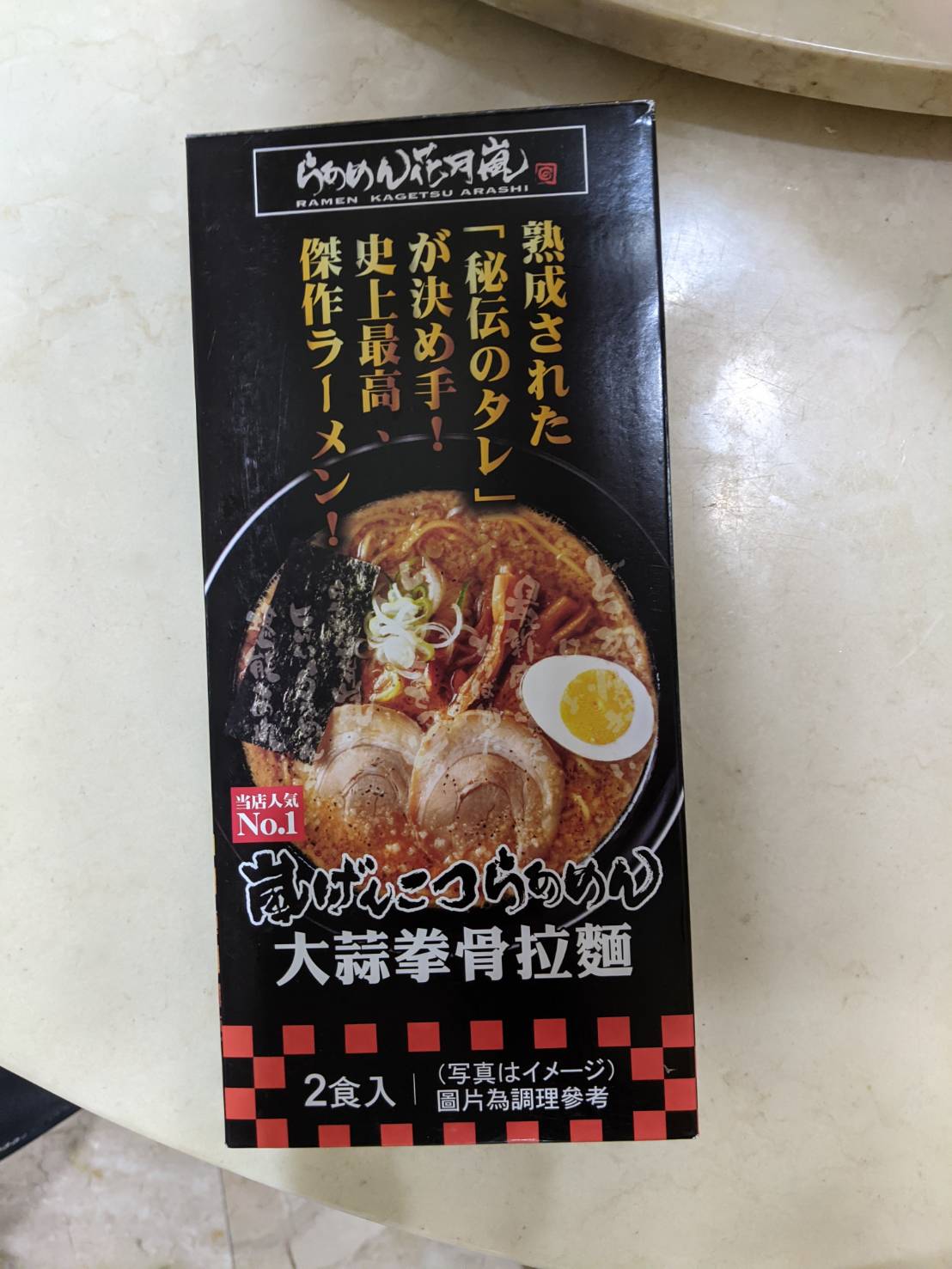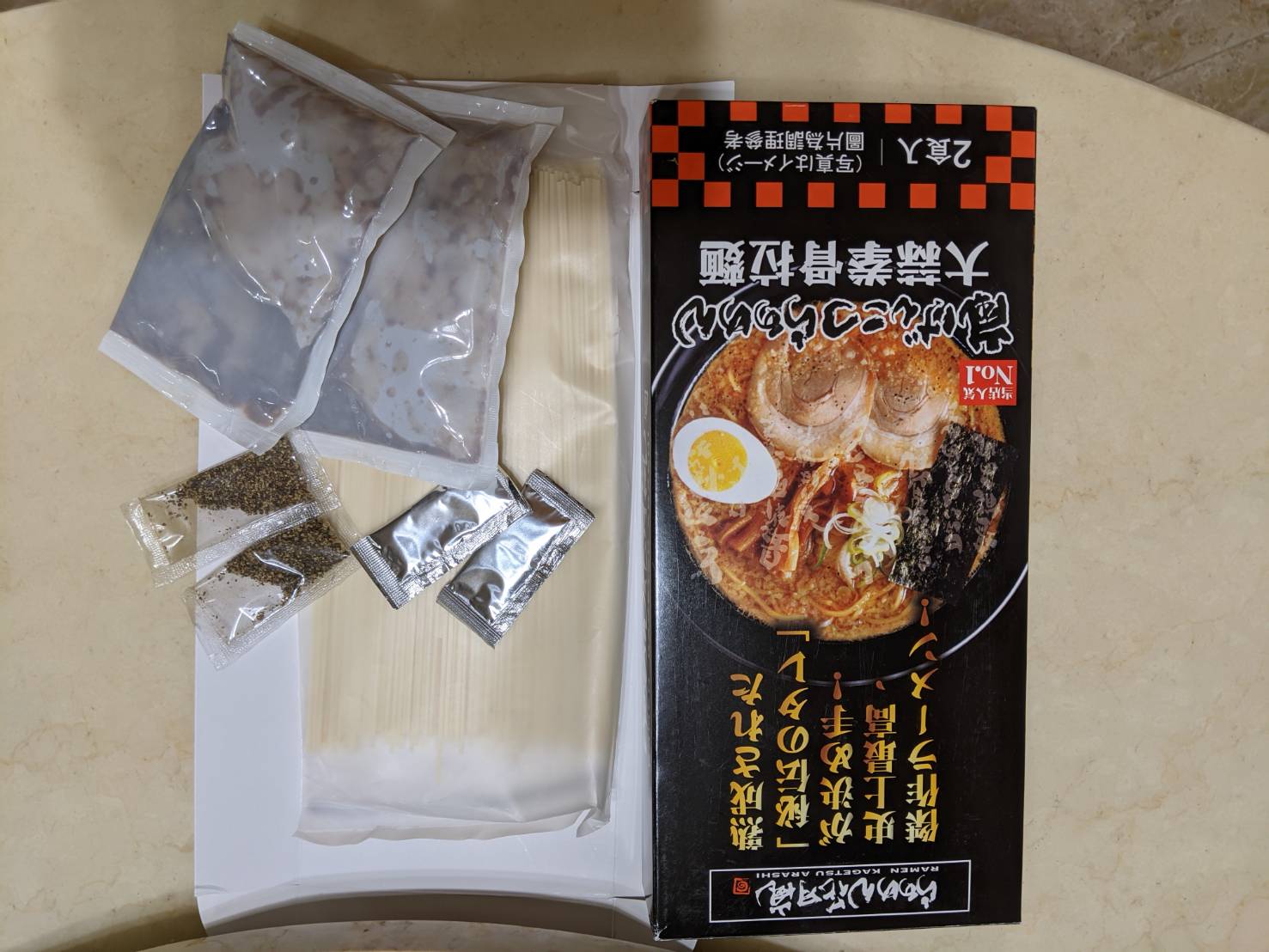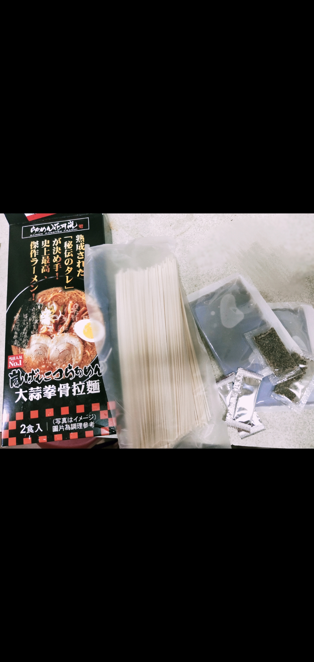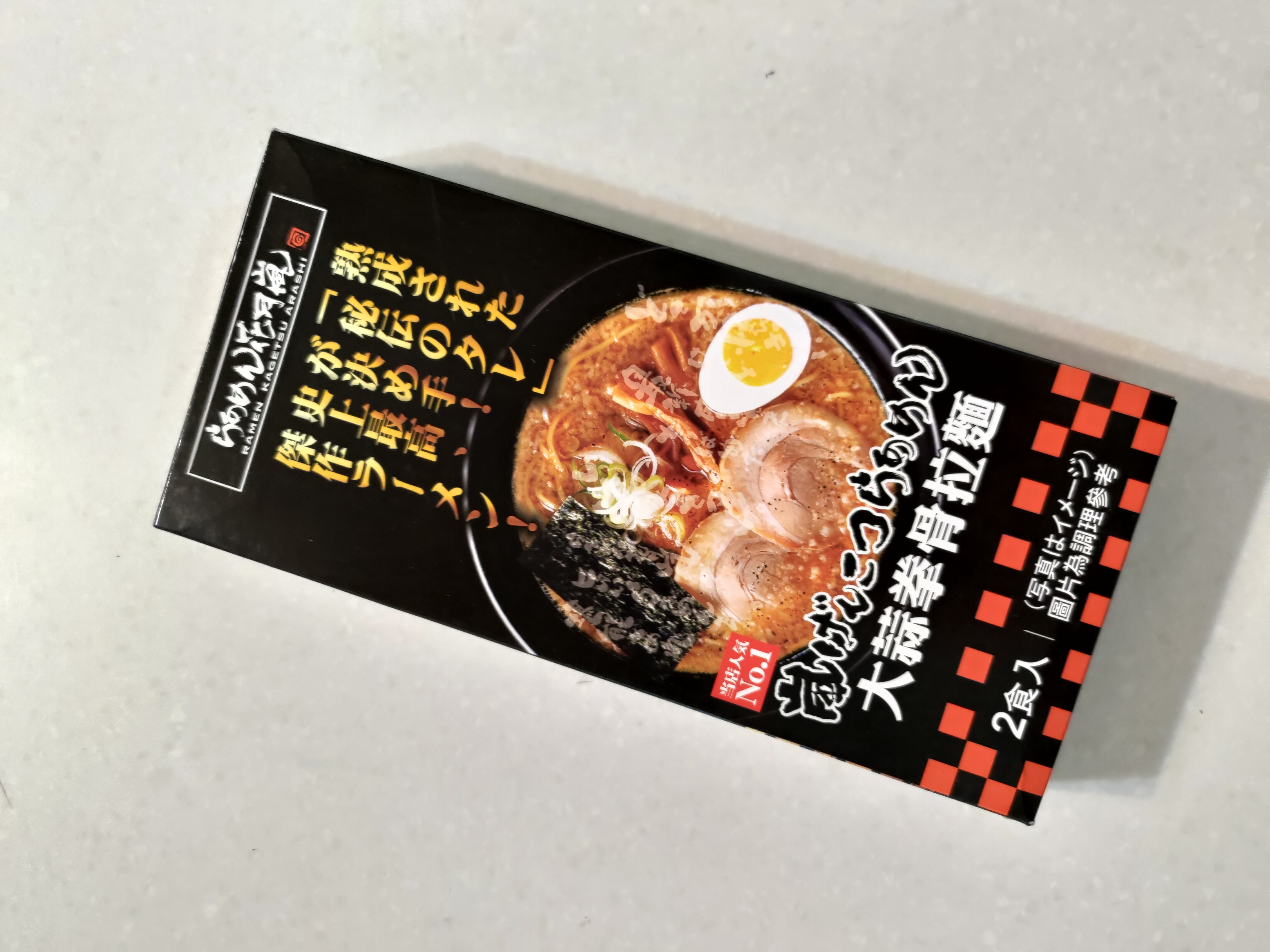 豬高湯、背脂粒、醬油、乳化豬油、蒜油、食鹽、豬油、蒜泥、香蒜粉、砂糖、水、大豆水解蛋白粉、醇米霖、雞肉萃取液、食用酒精。食品添加物:L-麩酸鈉、醋酸澱粉、焦糖色素、5'-次黃嘌呤核苷磷酸二納、5'烏嘌呤核苷磷酸二納。黑胡椒粒、大蒜、麵粉、水、食鹽、蛋白粉