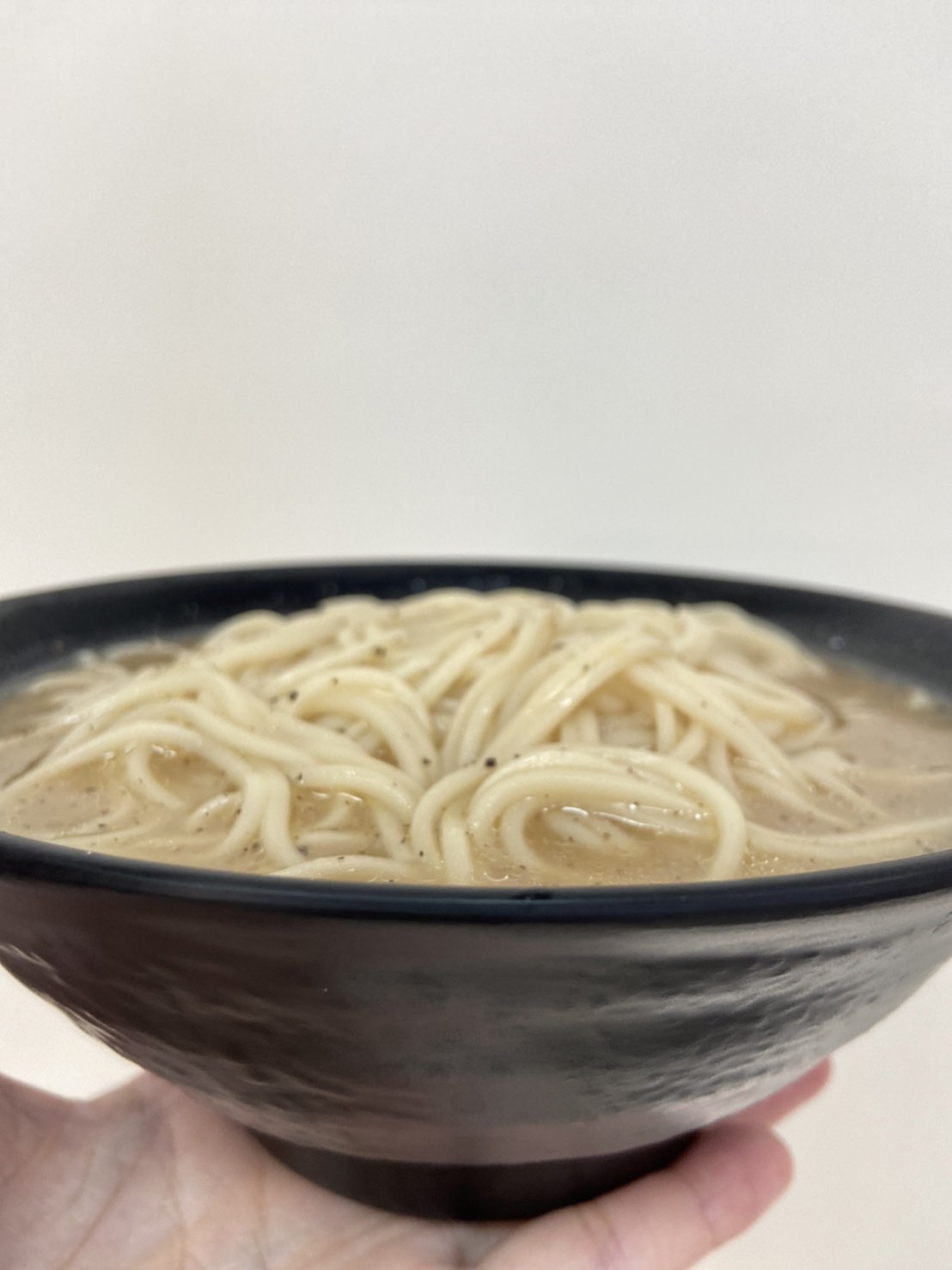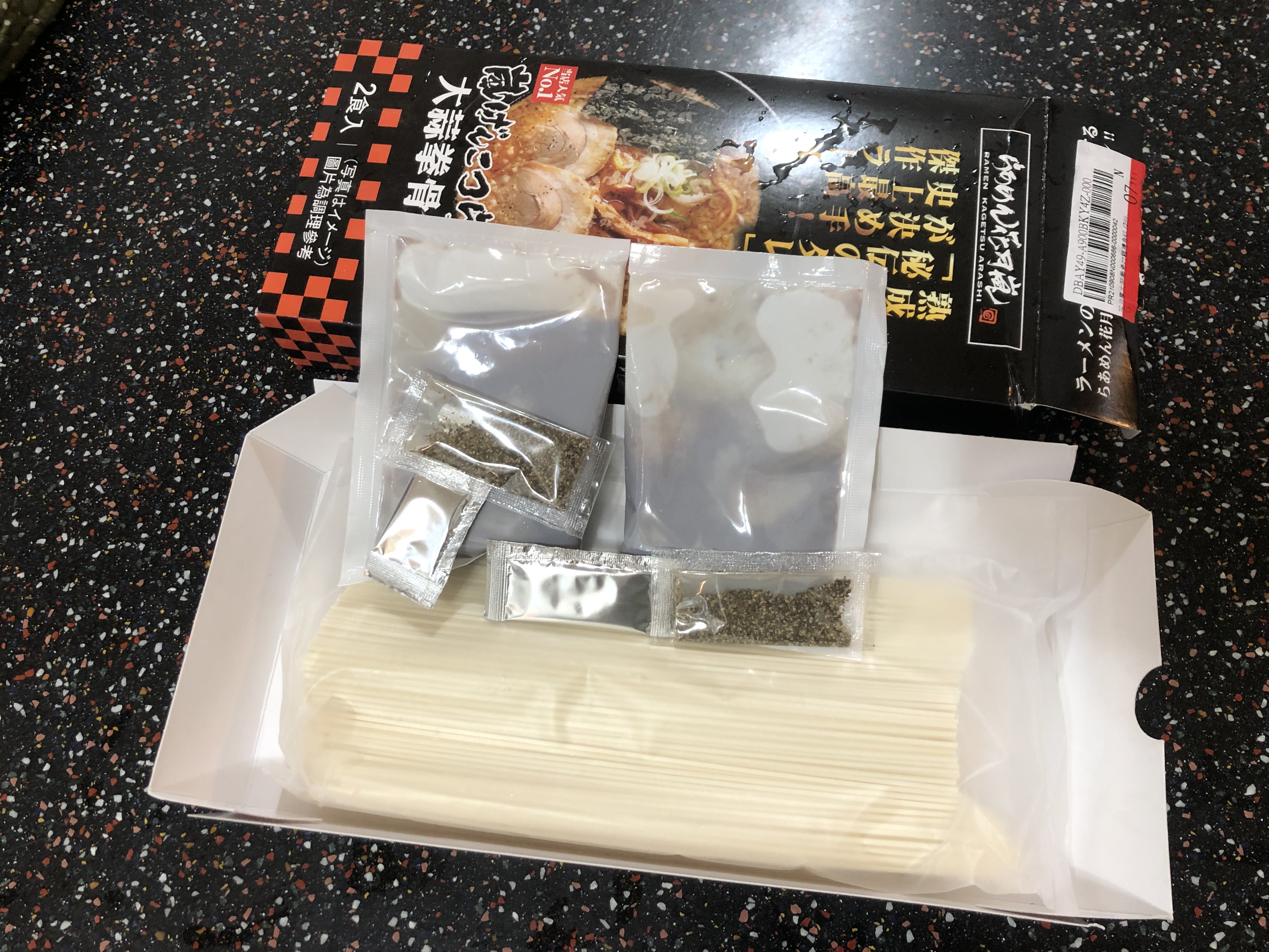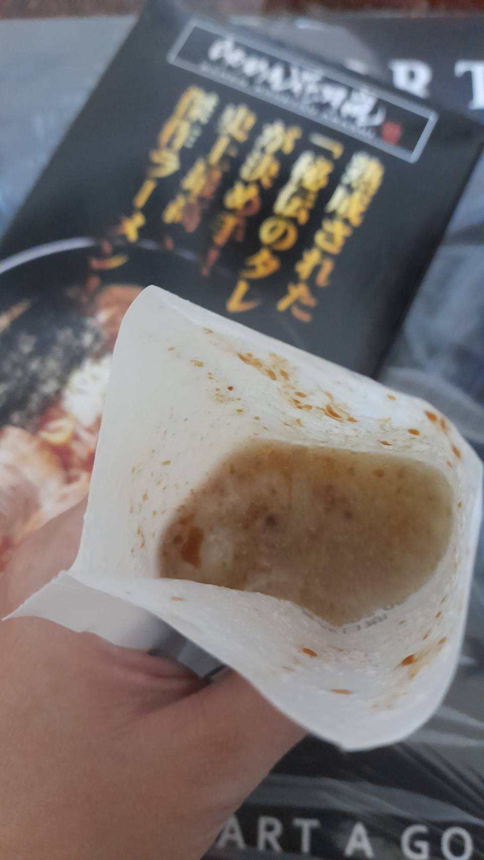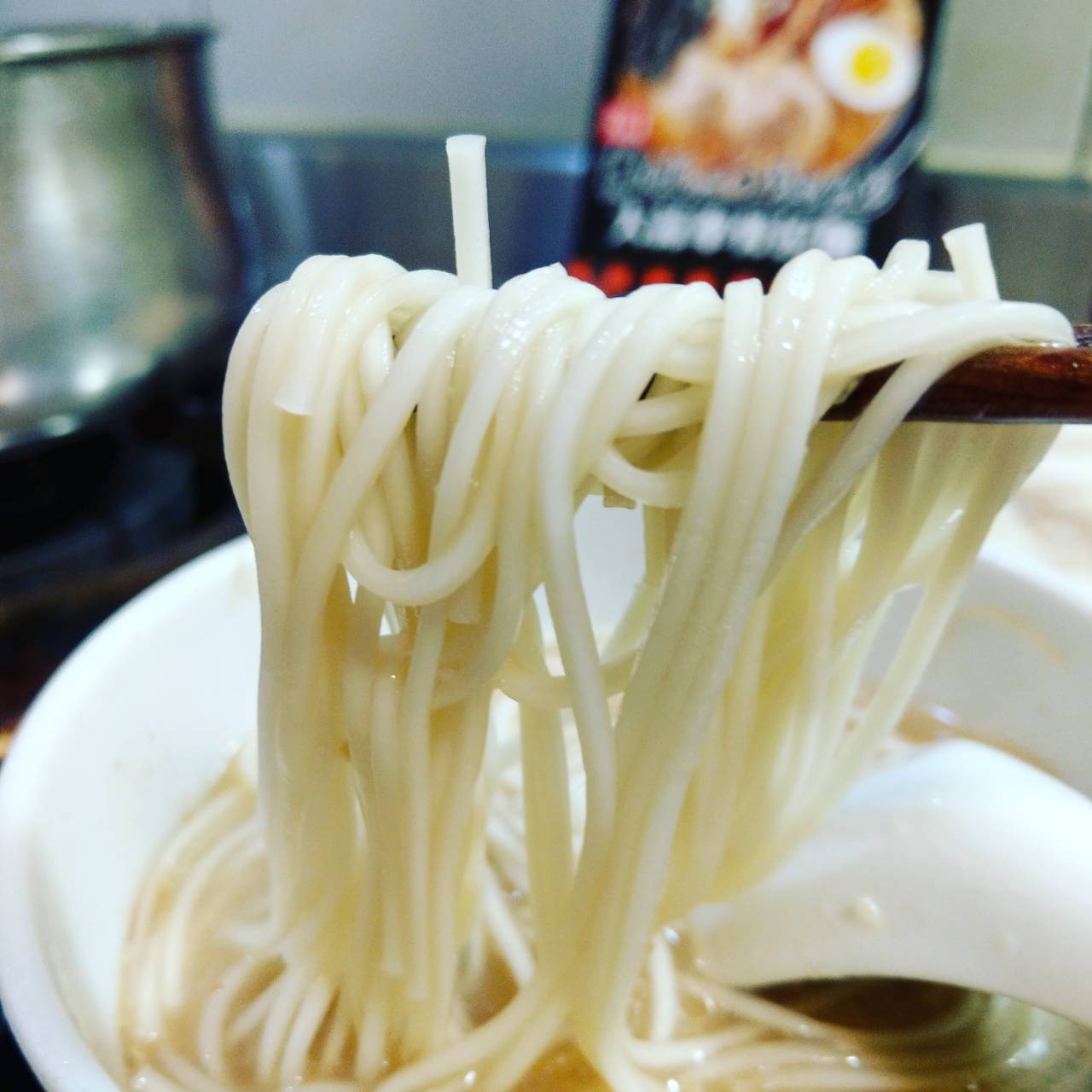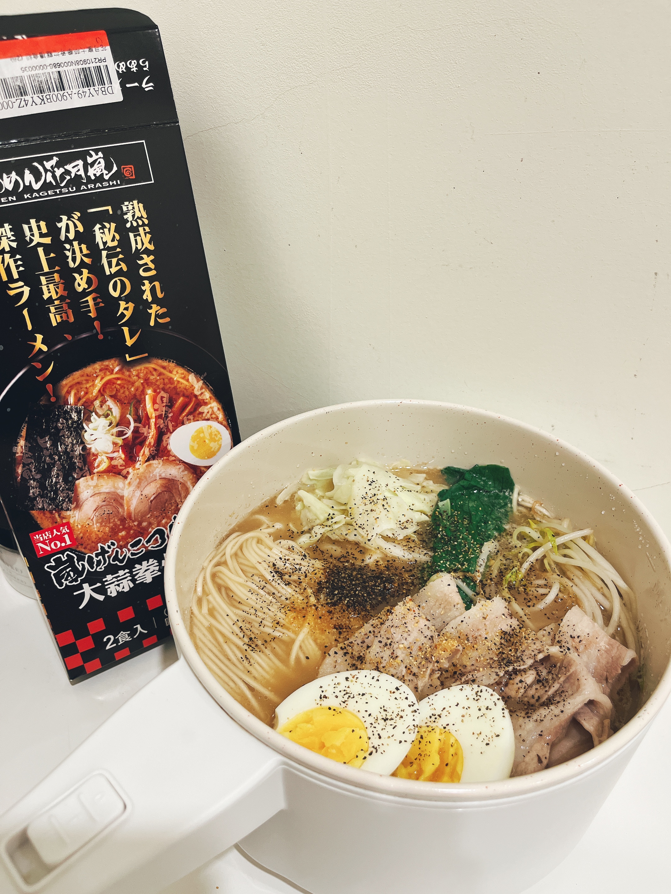 豬高湯、背脂粒、醬油、乳化豬油、蒜油、食鹽、豬油、蒜泥、香蒜粉、砂糖、水、大豆水解蛋白粉、醇米霖、雞肉萃取液、食用酒精。食品添加物:L-麩酸鈉、醋酸澱粉、焦糖色素、5'-次黃嘌呤核苷磷酸二納、5'烏嘌呤核苷磷酸二納。黑胡椒粒、大蒜、麵粉、水、食鹽、蛋白粉